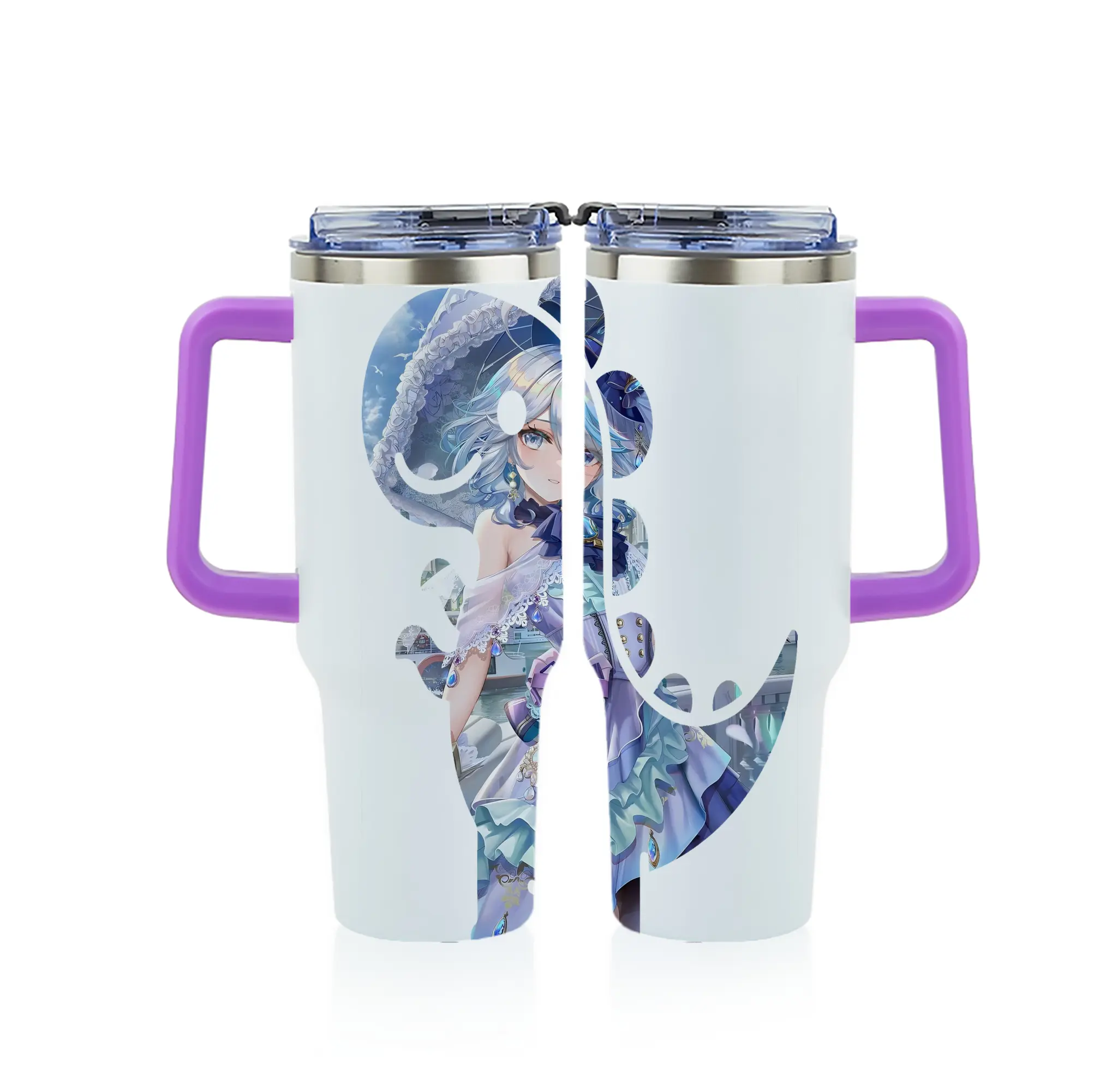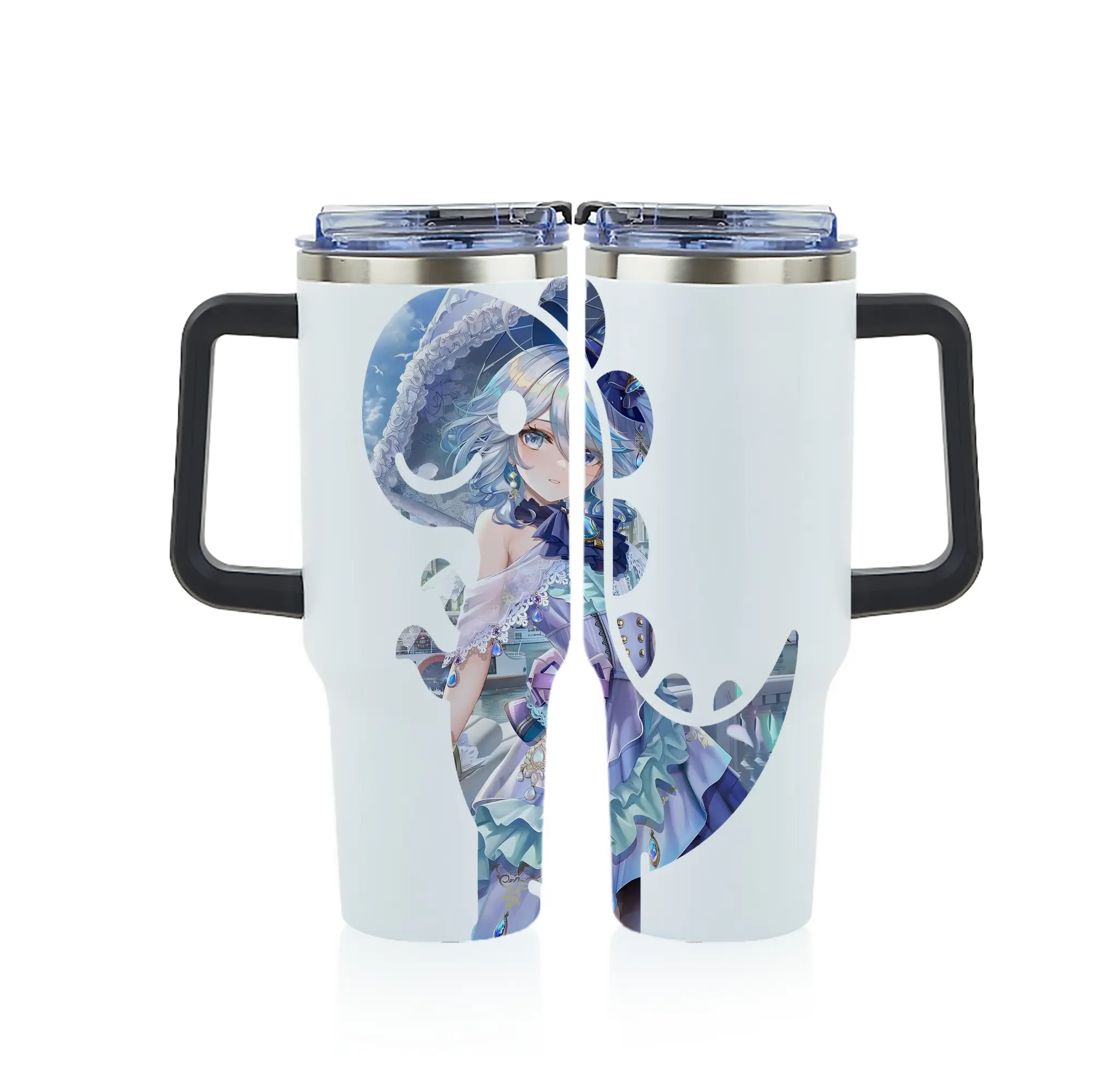 原 神 グッズ フリーナ - 1200mL フルプリント車用タンブラー ・ 304ステンレス 内側 ・ 201ステンレス 外側 ・ 保温 保冷 ・ 通勤 ドライブ アウトドア用
