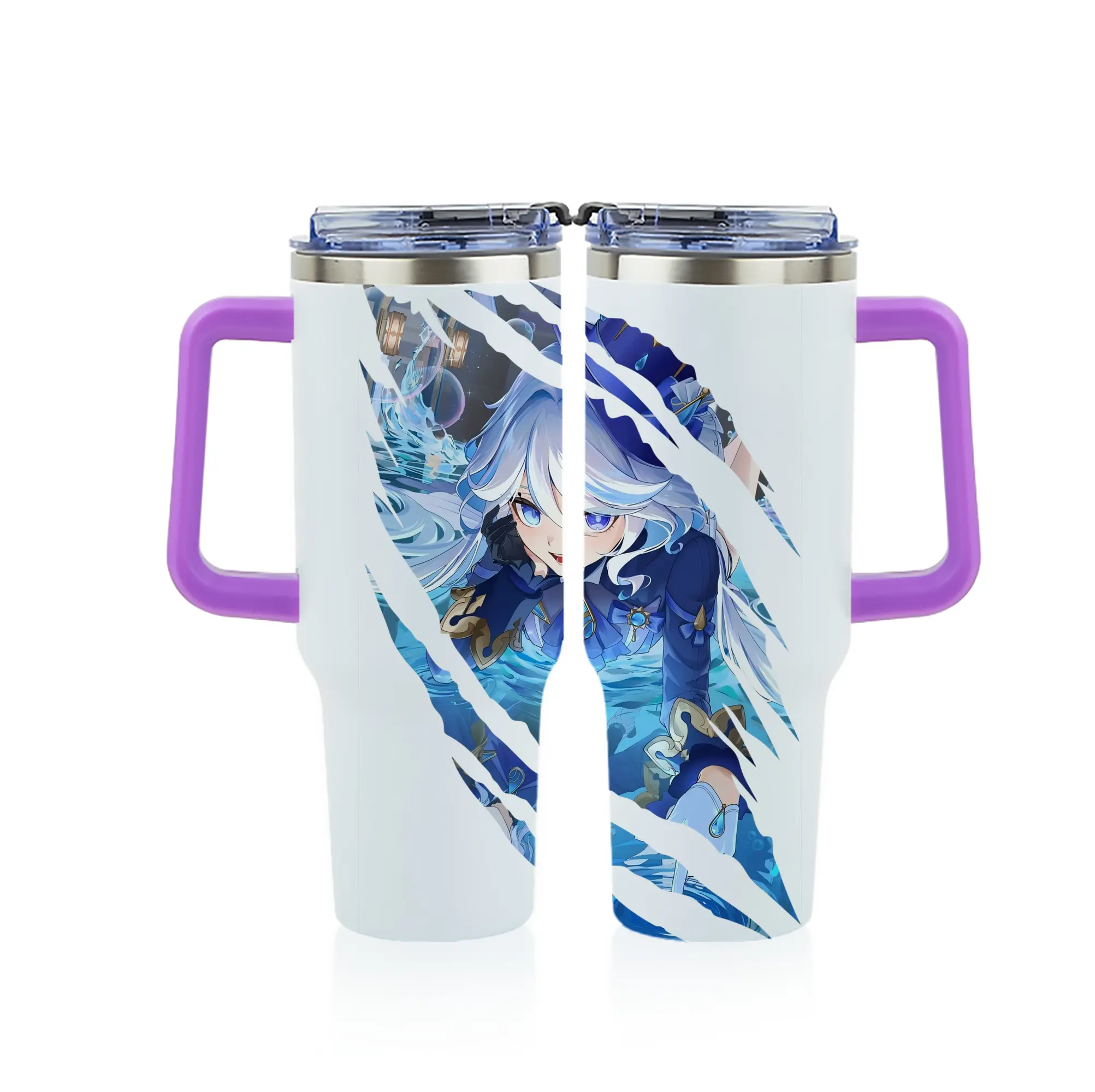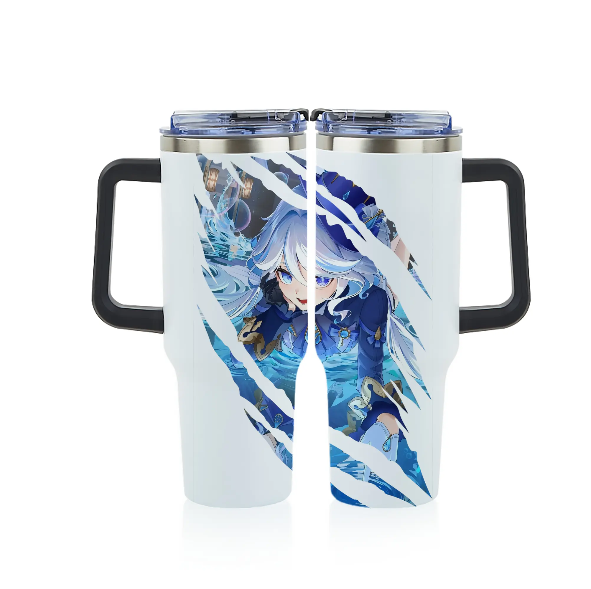 原 神 グッズ フリーナ - 1200mL フルプリント車用タンブラー ・ 304ステンレス 内側 ・ 201ステンレス 外側 ・ 保温 保冷 ・ 通勤 ドライブ アウトドア用
