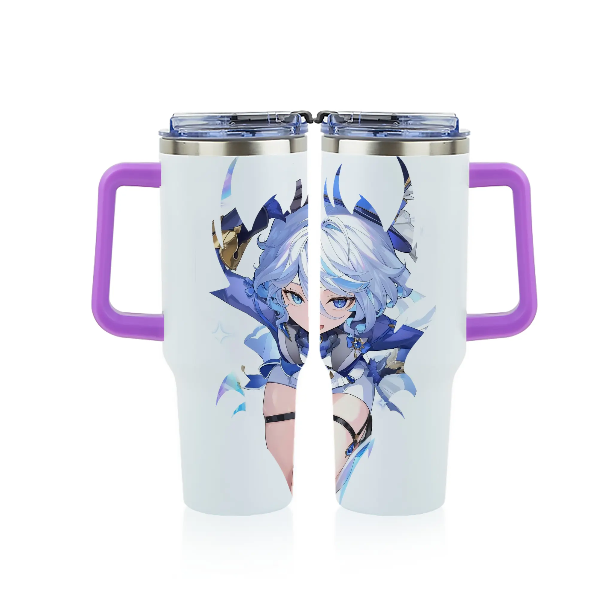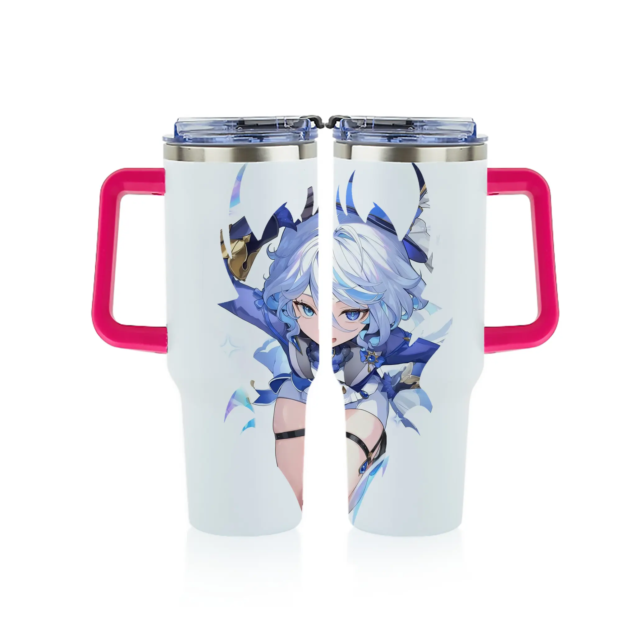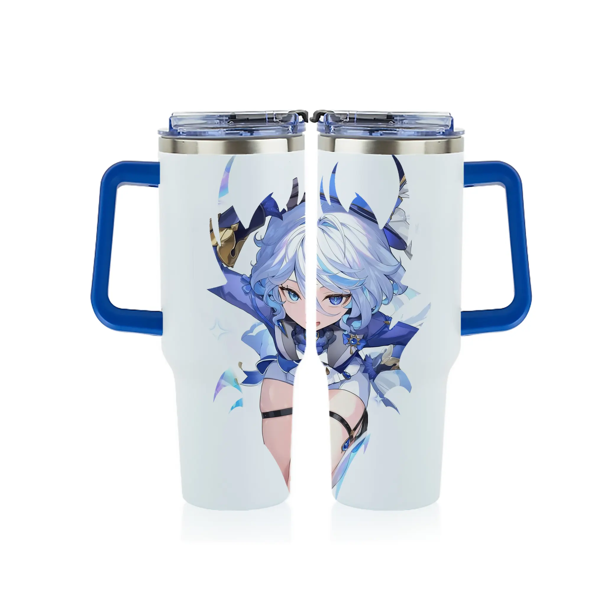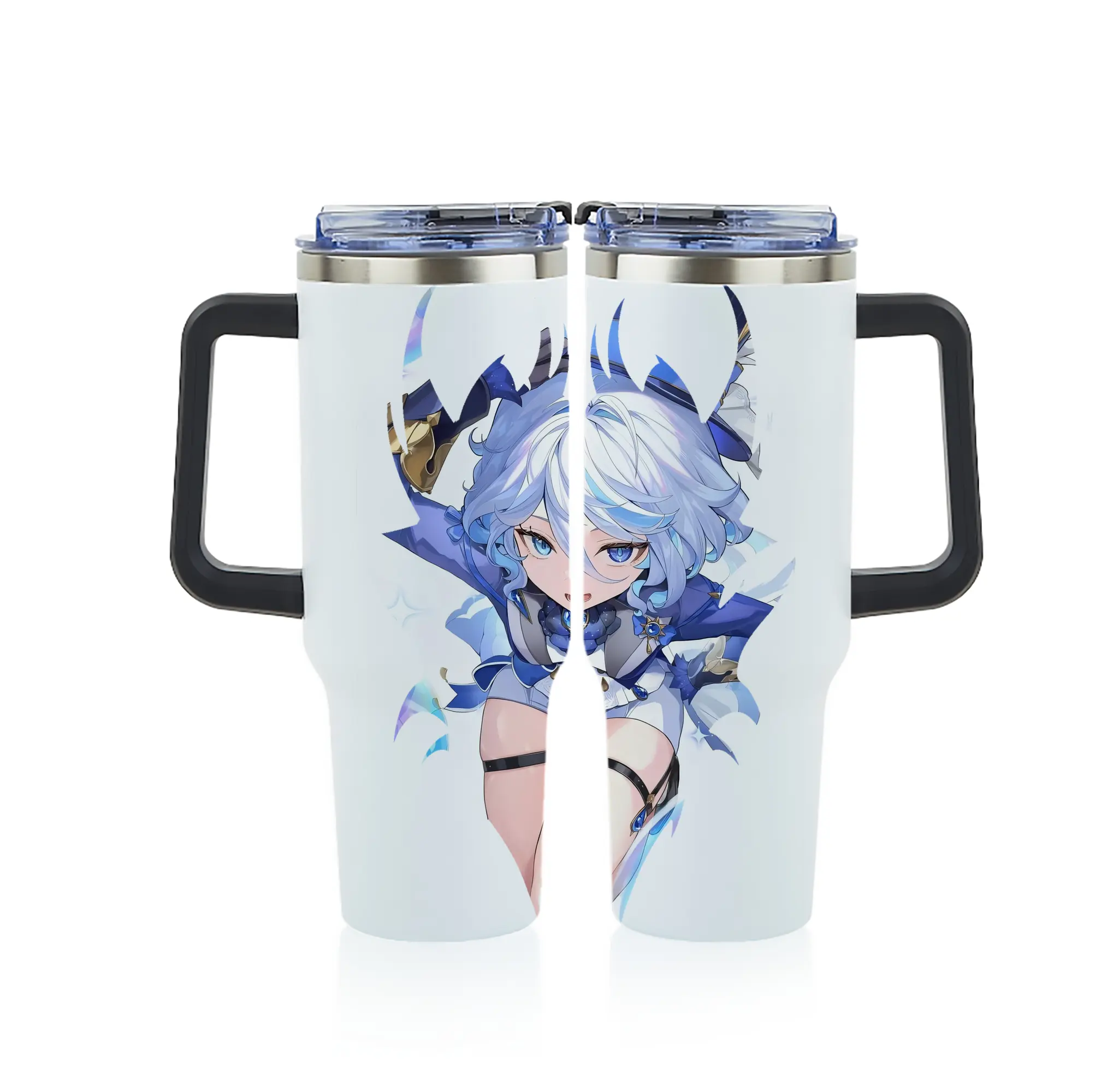 原 神 グッズ フリーナ - 1200mL フルプリント車用タンブラー ・ 304ステンレス 内側 ・ 201ステンレス 外側 ・ 保温 保冷 ・ 通勤 ドライブ アウトドア用