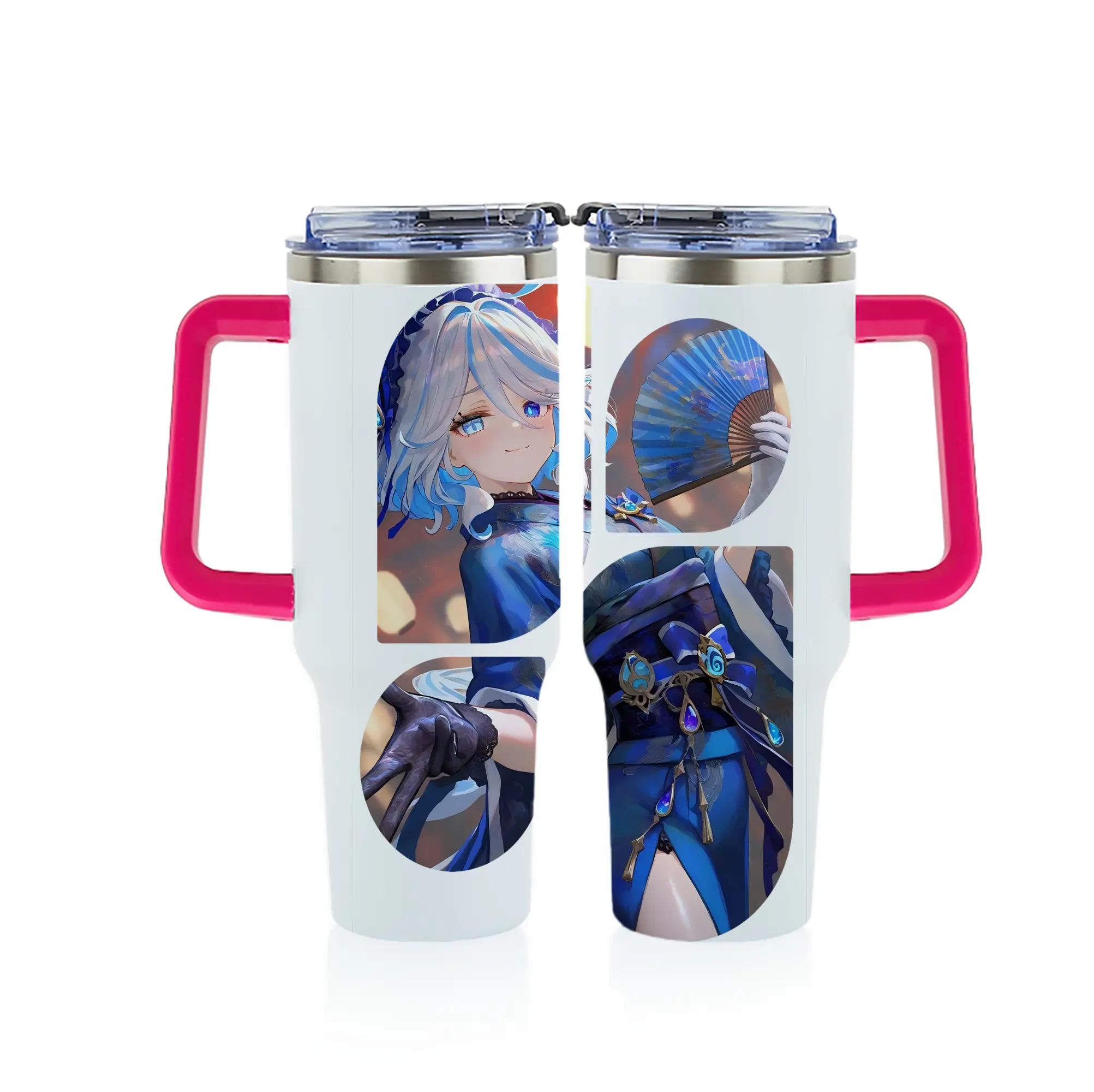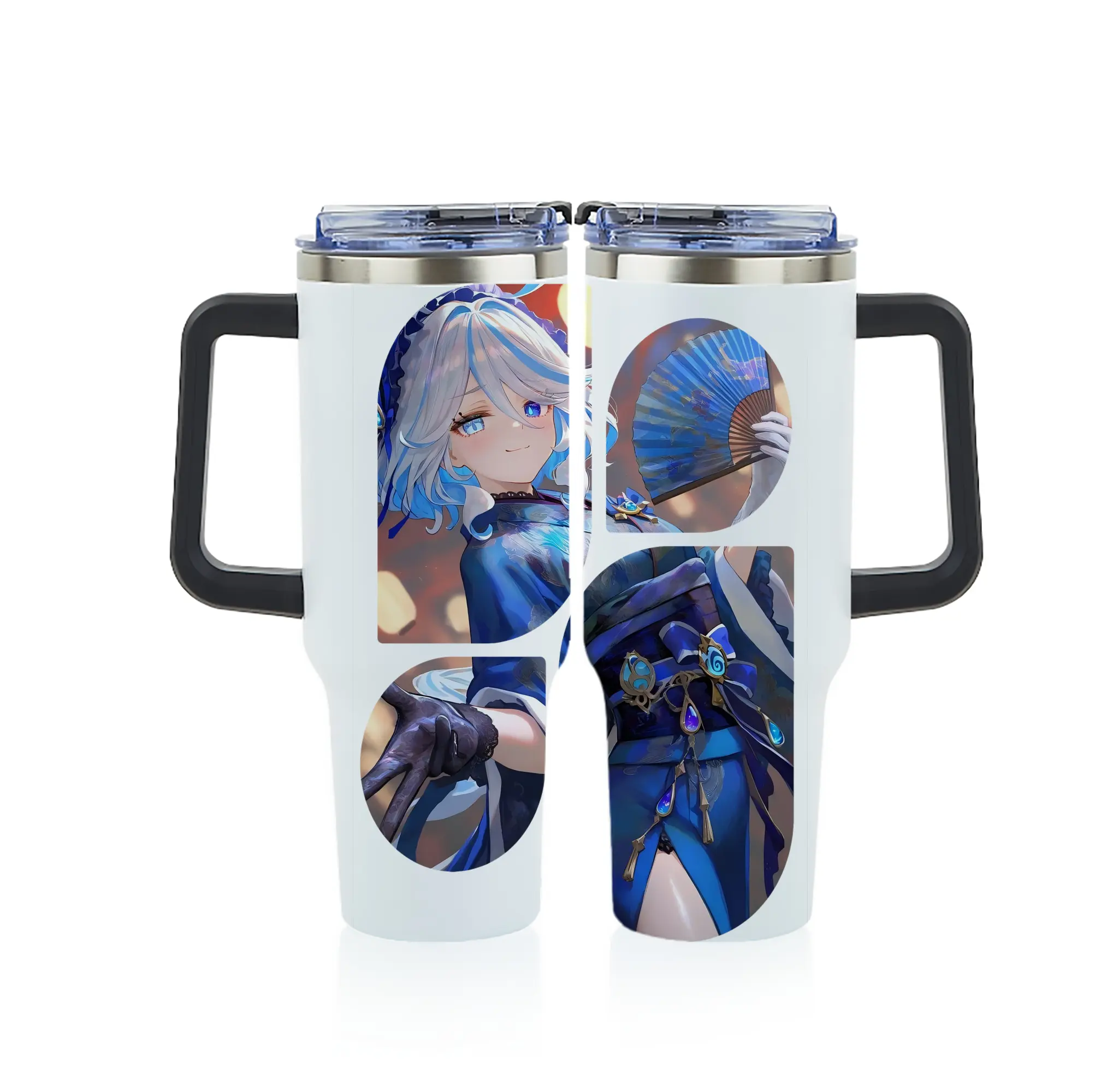原 神 グッズ フリーナ - 1200mL フルプリント車用タンブラー ・ 304ステンレス 内側 ・ 201ステンレス 外側 ・ 保温 保冷 ・ 通勤 ドライブ アウトドア用