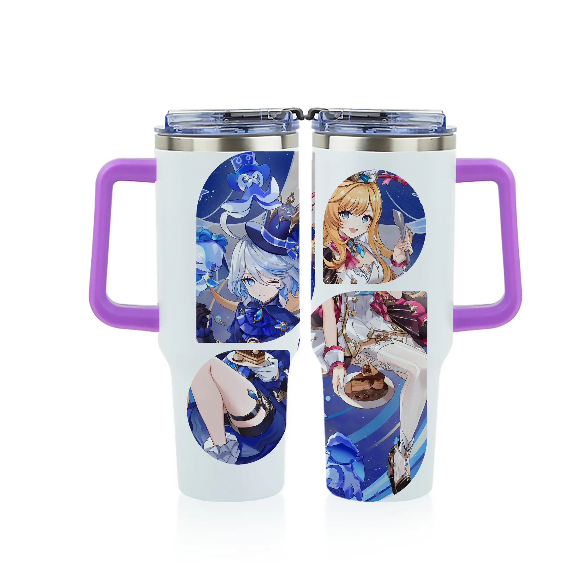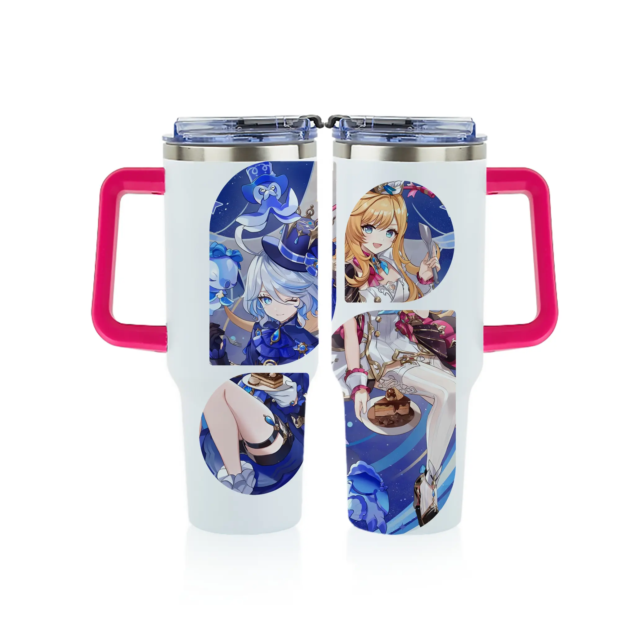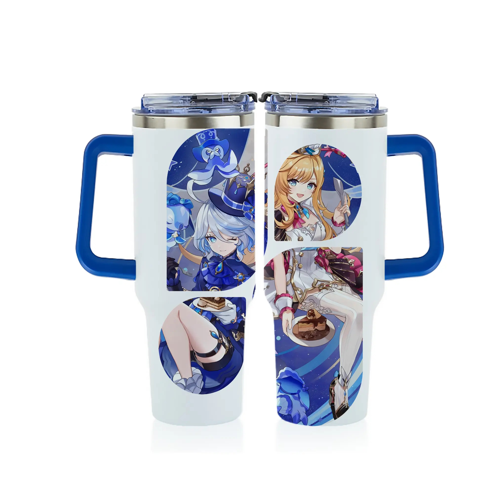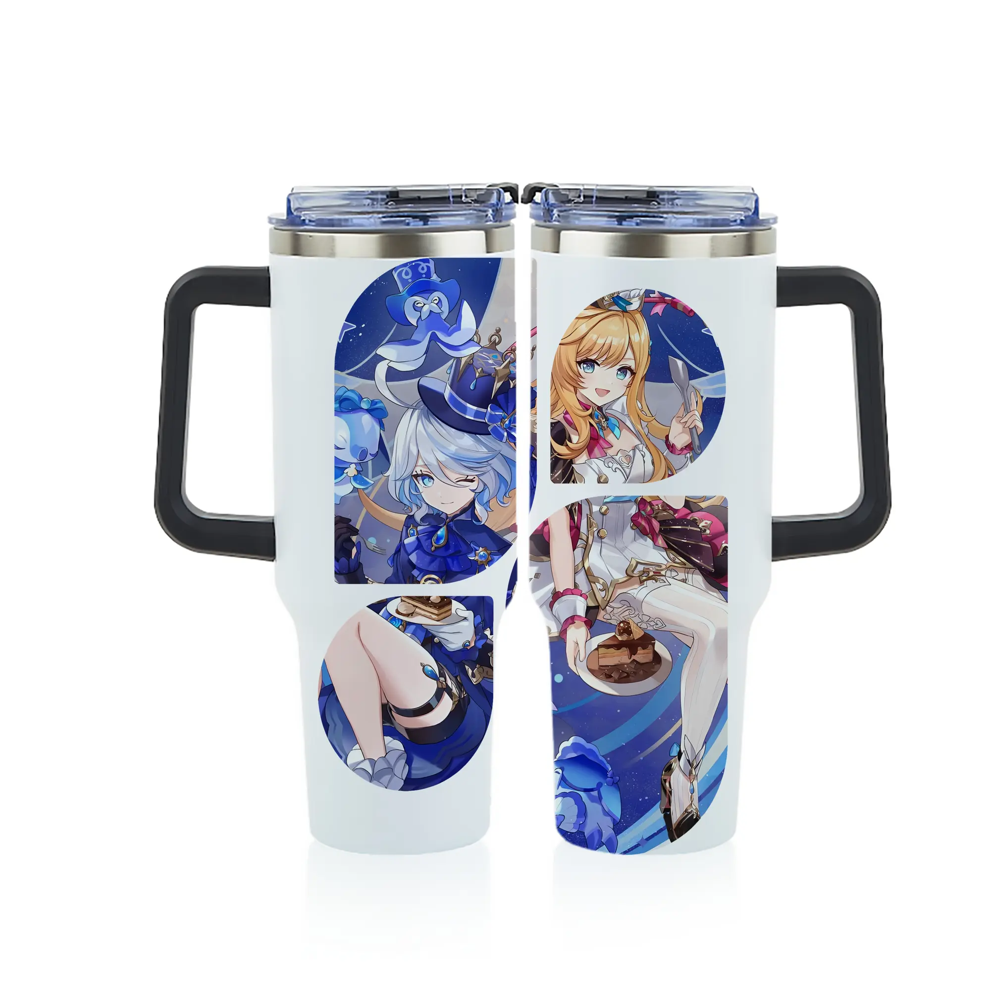 原 神 グッズ フリーナ - 1200mL フルプリント車用タンブラー ・ 304ステンレス 内側 ・ 201ステンレス 外側 ・ 保温 保冷 ・ 通勤 ドライブ アウトドア用