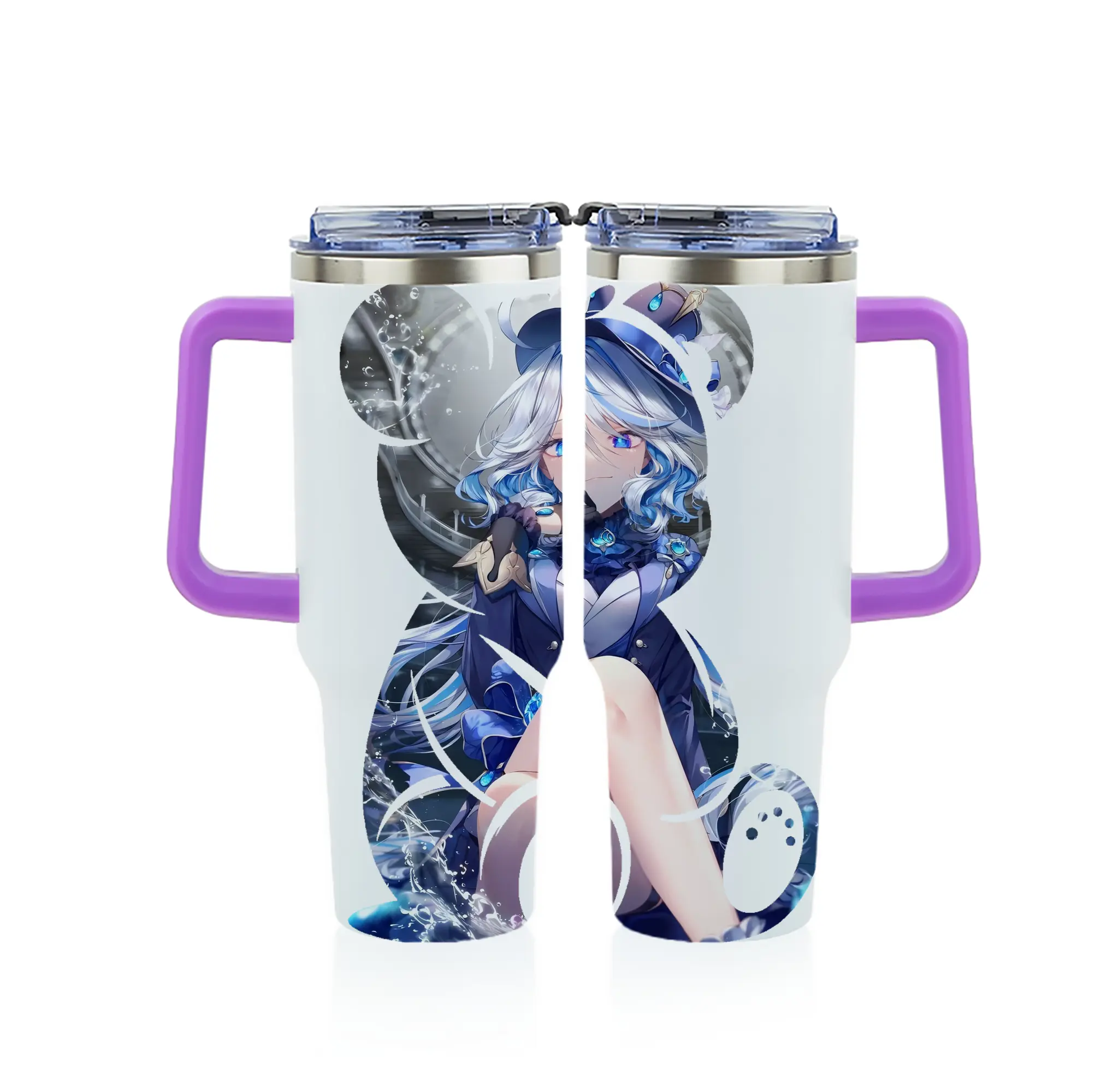 原 神 グッズ フリーナ - 1200mL フルプリント車用タンブラー ・ 304ステンレス 内側 ・ 201ステンレス 外側 ・ 保温 保冷 ・ 通勤 ドライブ アウトドア用