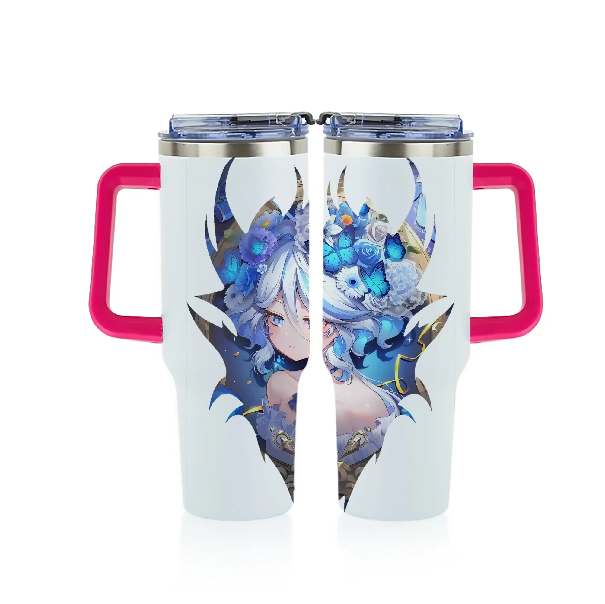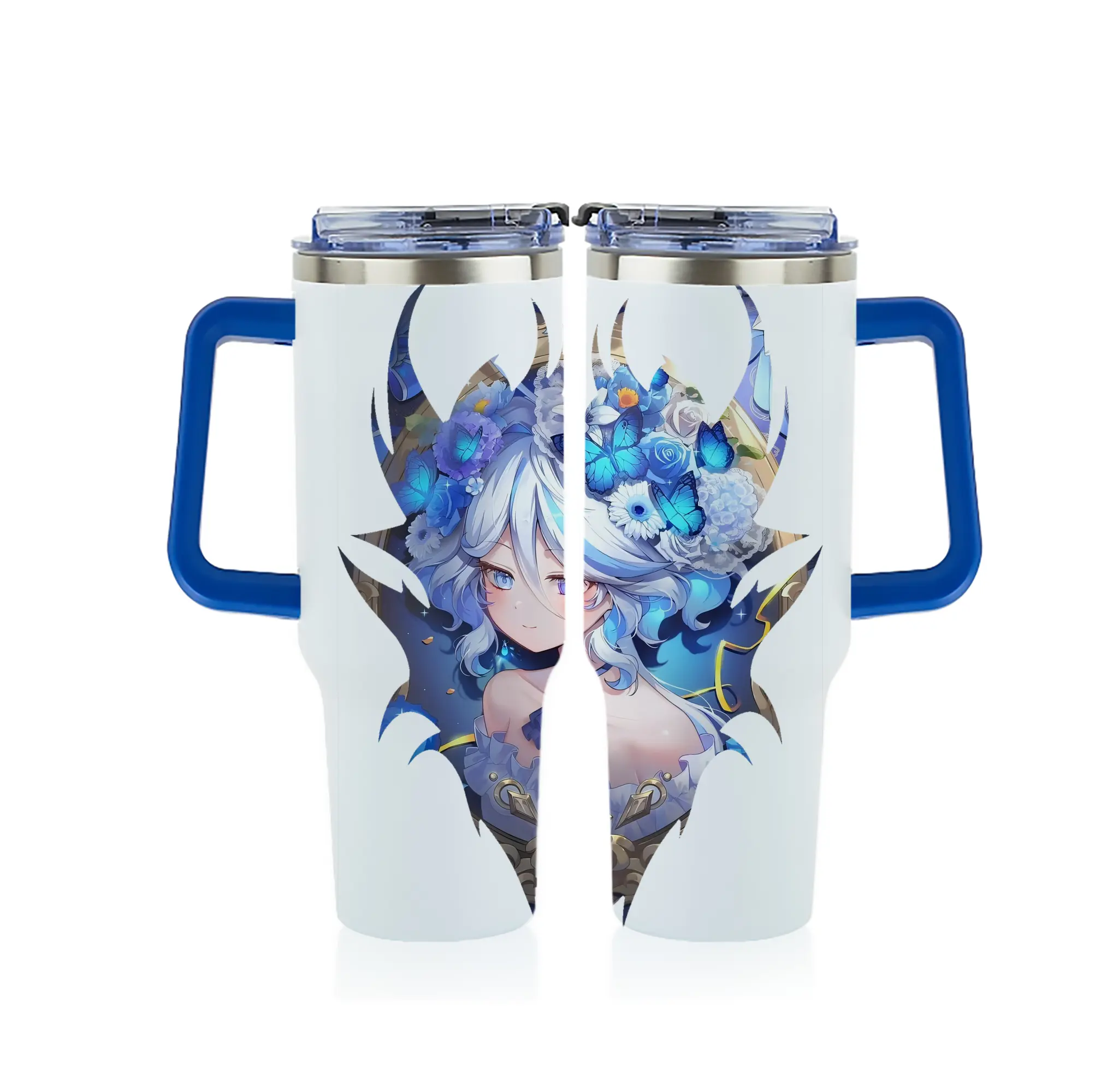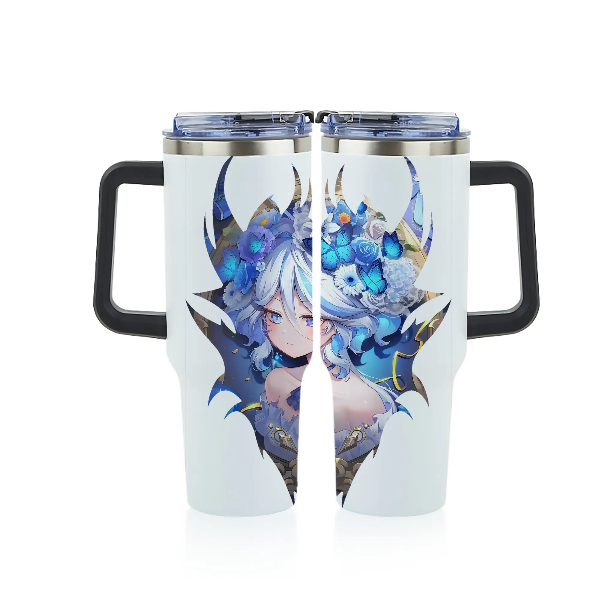 原 神 グッズ フリーナ - 1200mL フルプリント車用タンブラー ・ 304ステンレス 内側 ・ 201ステンレス 外側 ・ 保温 保冷 ・ 通勤 ドライブ アウトドア用