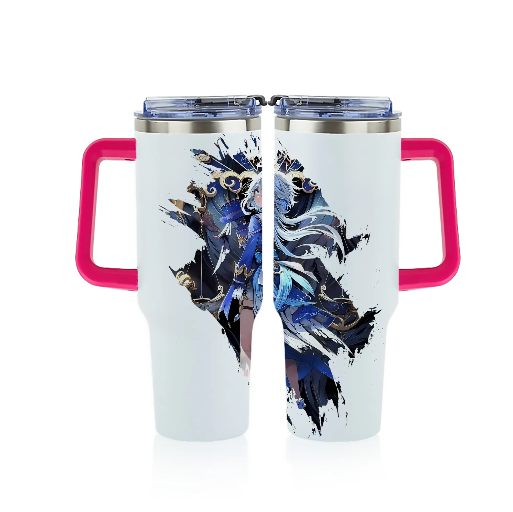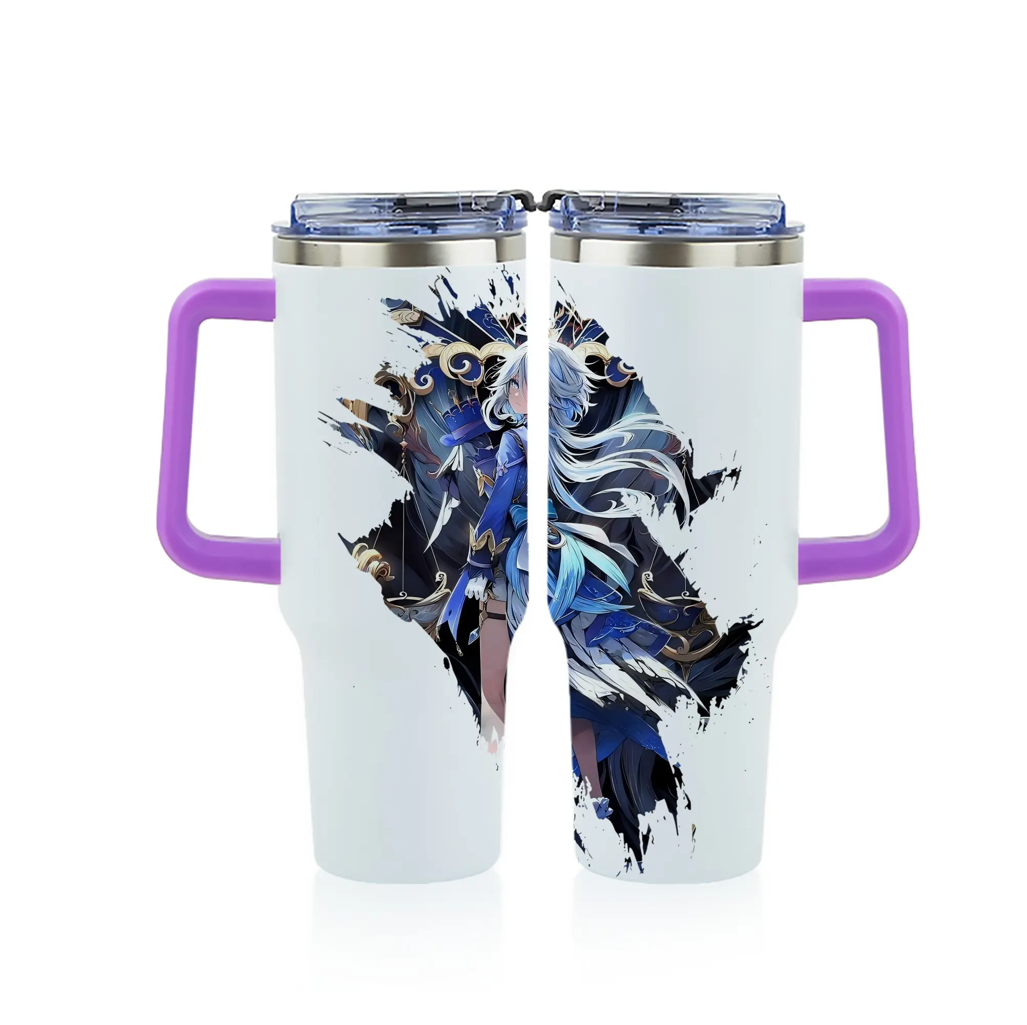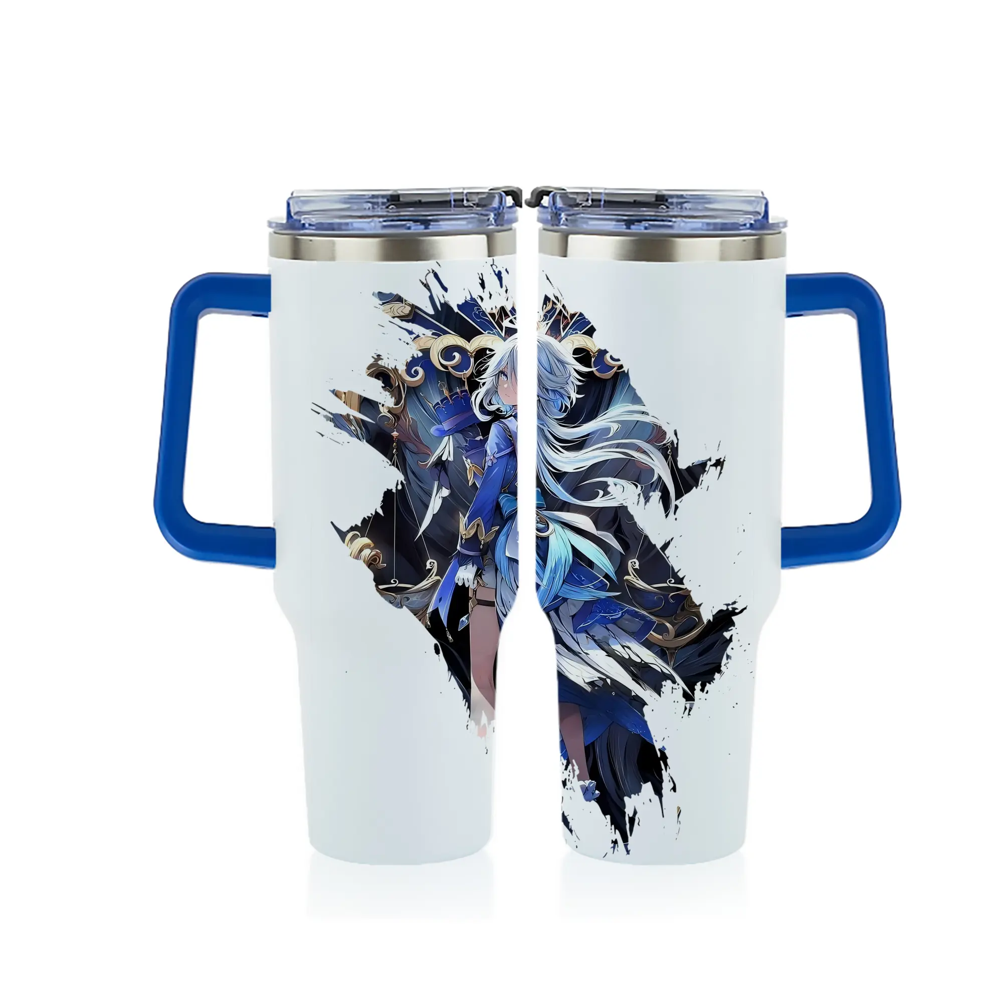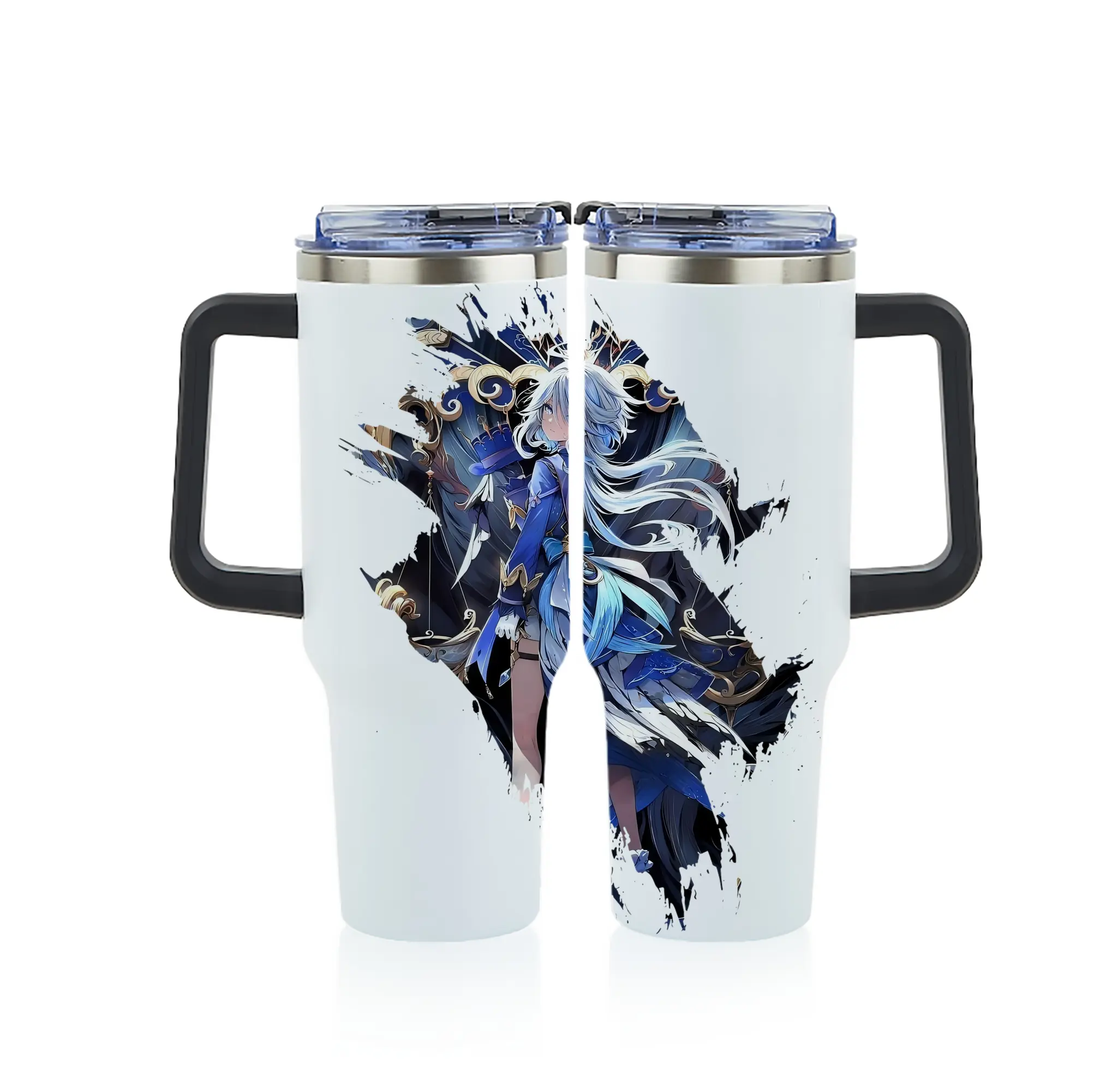 原 神 グッズ フリーナ - 1200mL フルプリント車用タンブラー ・ 304ステンレス 内側 ・ 201ステンレス 外側 ・ 保温 保冷 ・ 通勤 ドライブ アウトドア用