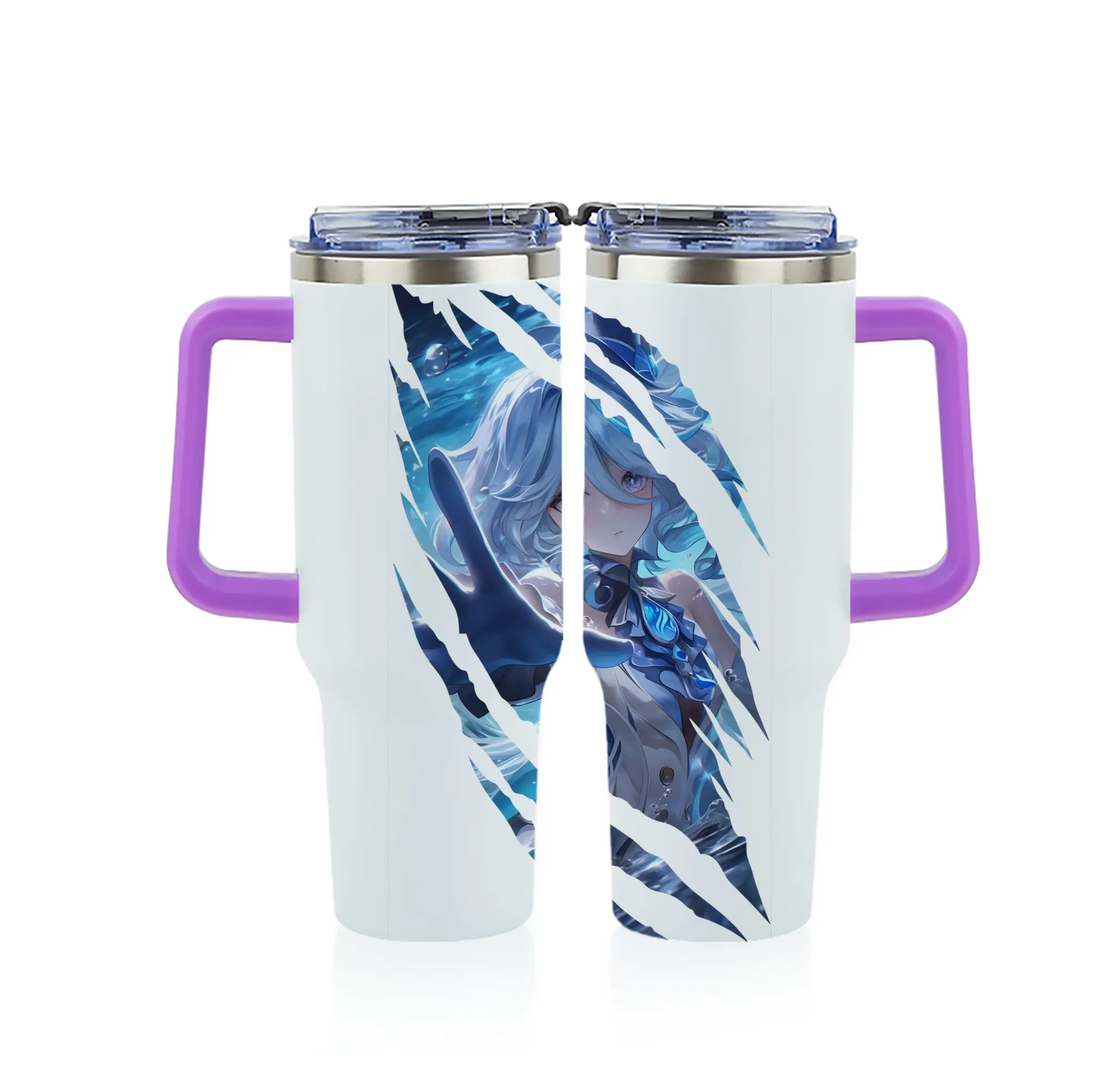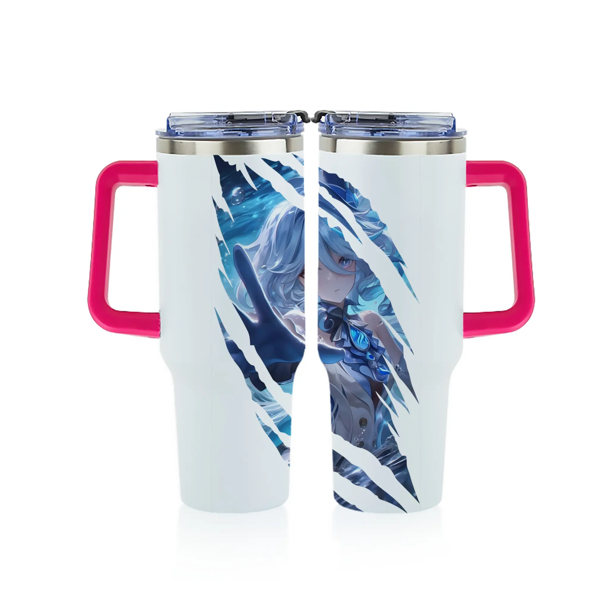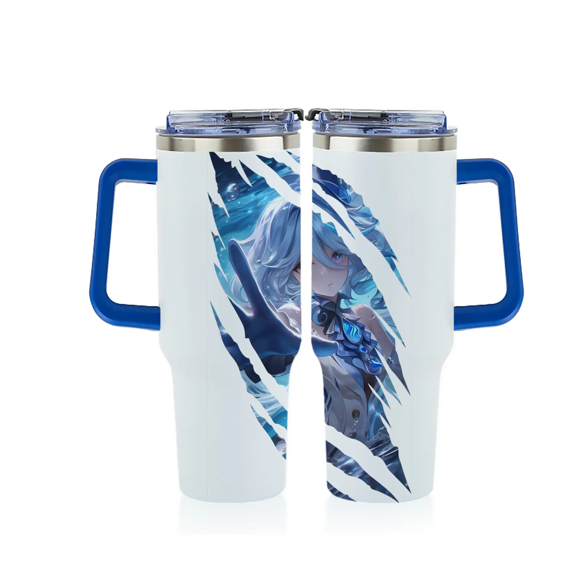 原 神 グッズ フリーナ - 1200mL フルプリント車用タンブラー ・ 304ステンレス 内側 ・ 201ステンレス 外側 ・ 保温 保冷 ・ 通勤 ドライブ アウトドア用