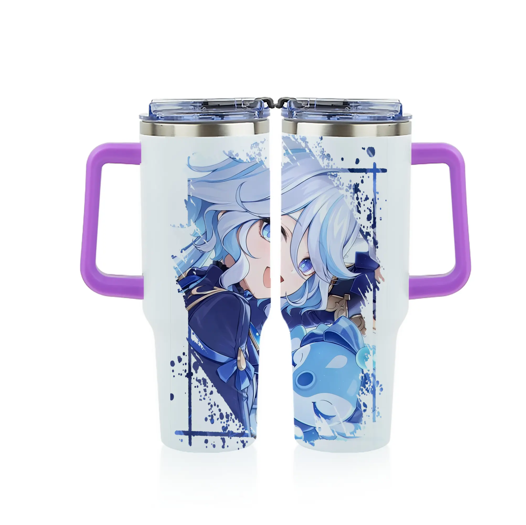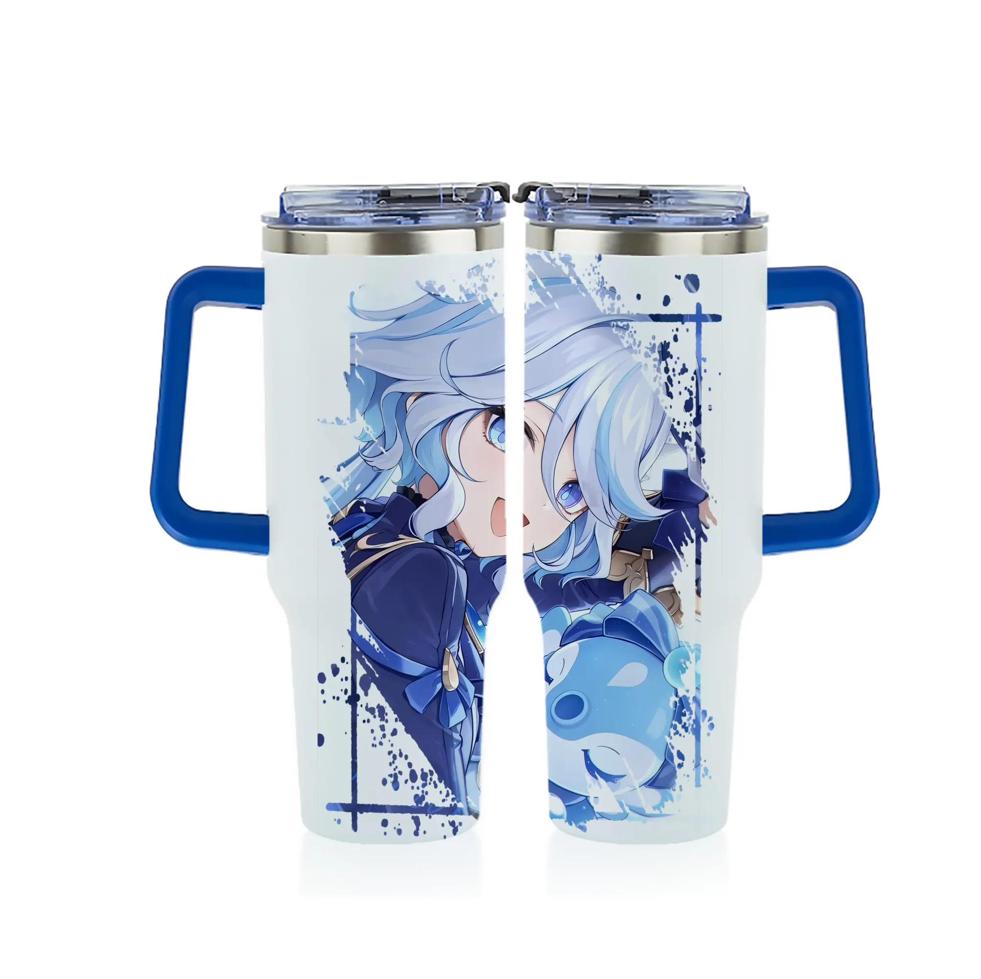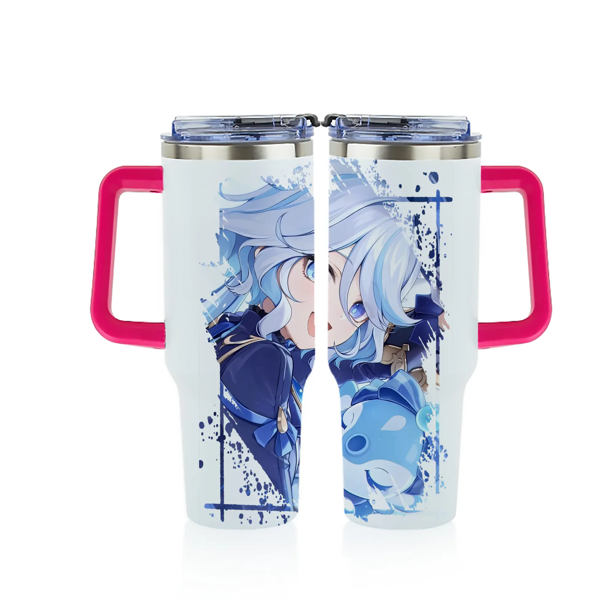 原 神 グッズ フリーナ - 1200mL フルプリント車用タンブラー ・ 304ステンレス 内側 ・ 201ステンレス 外側 ・ 保温 保冷 ・ 通勤 ドライブ アウトドア用