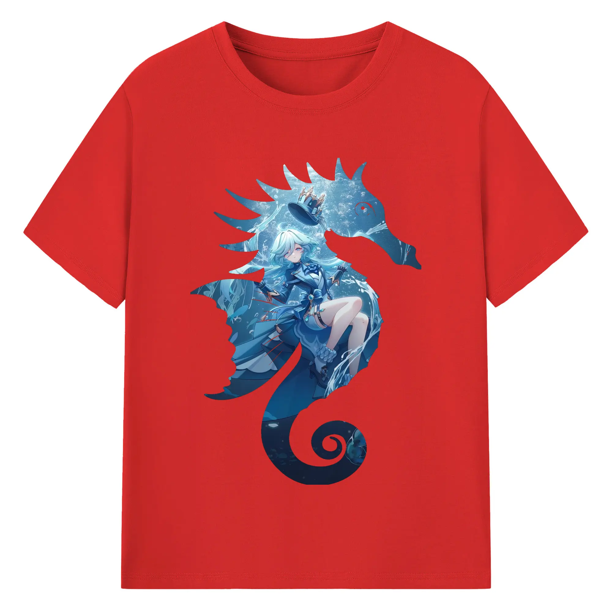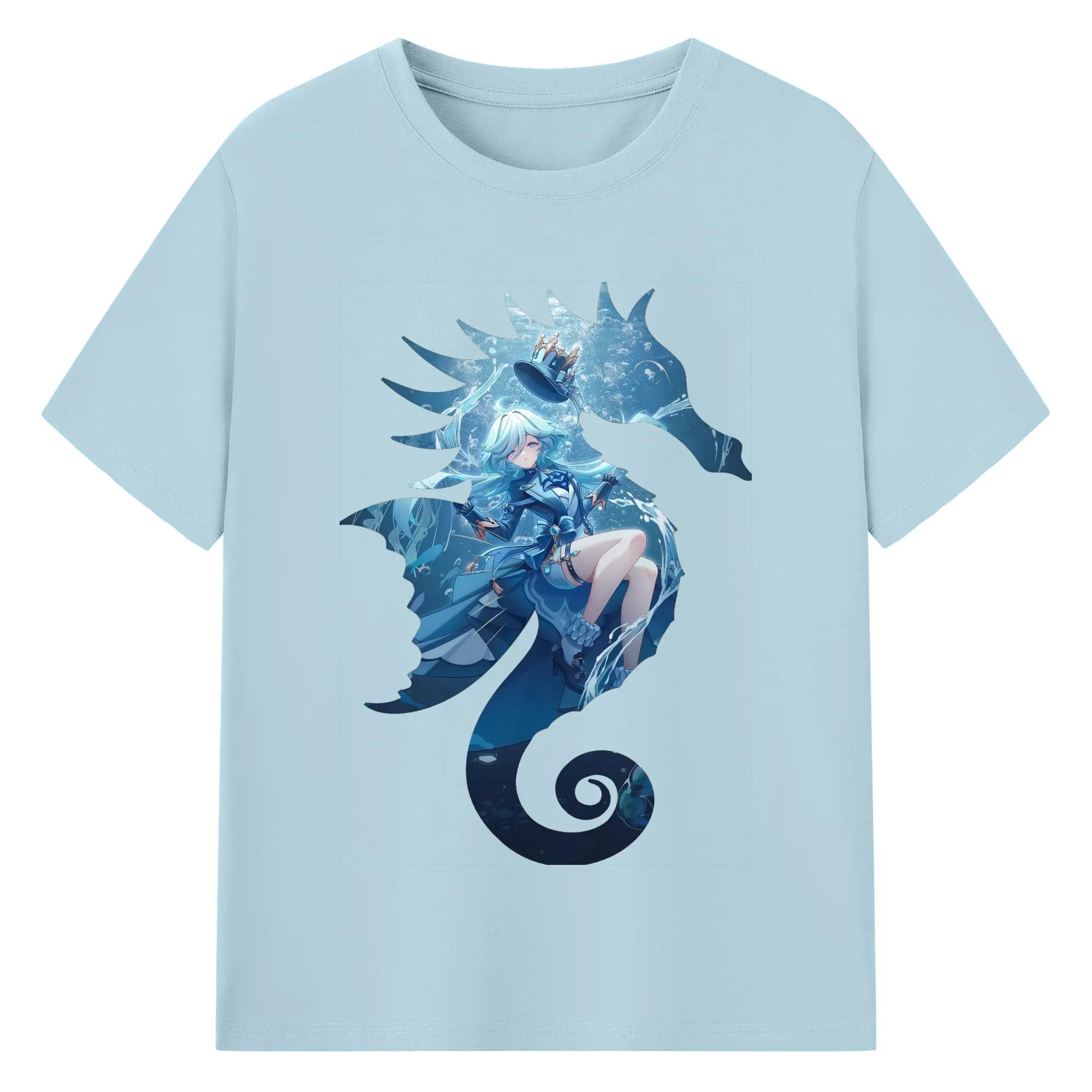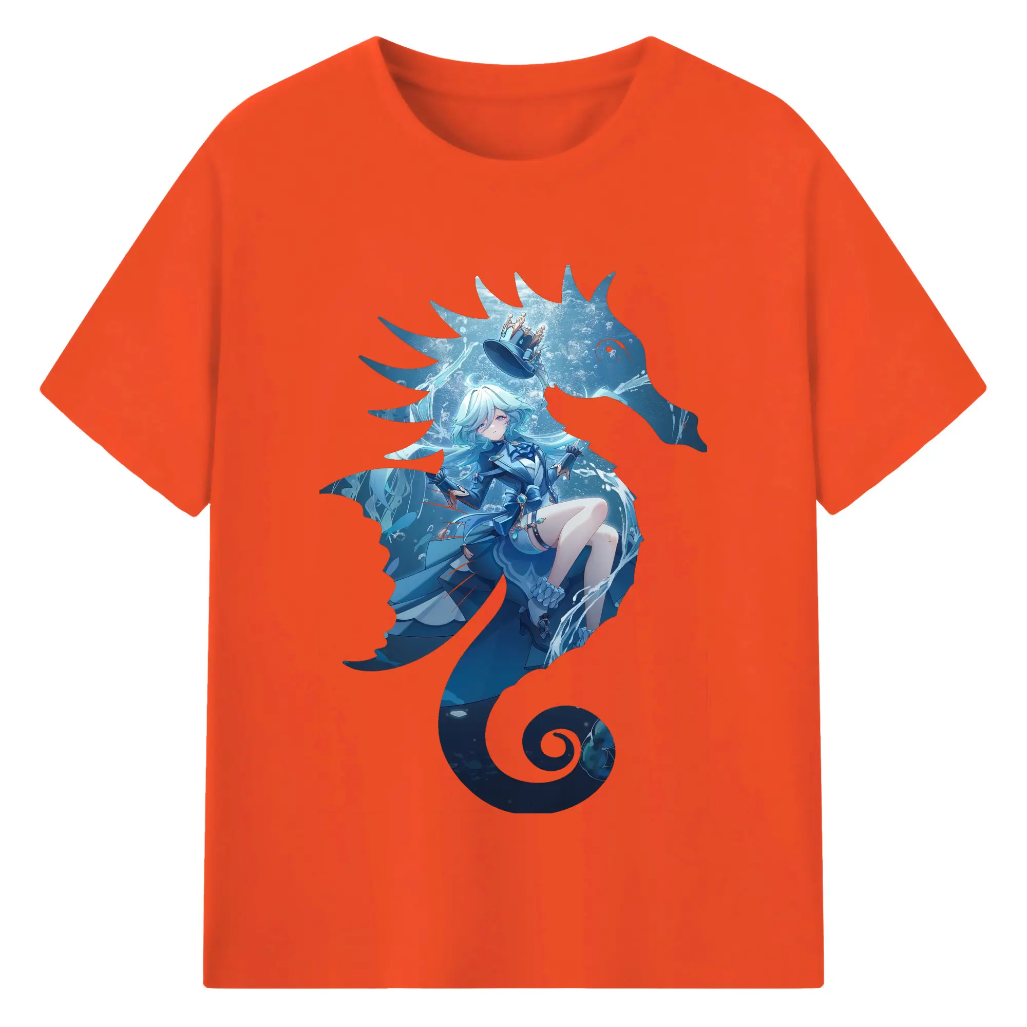 原 神 グッズ フリーナ - 綿100% 半袖Tシャツ ・ バックプリント ・ 快適 通気性 ・ 日常使い 散歩 スポーツ用