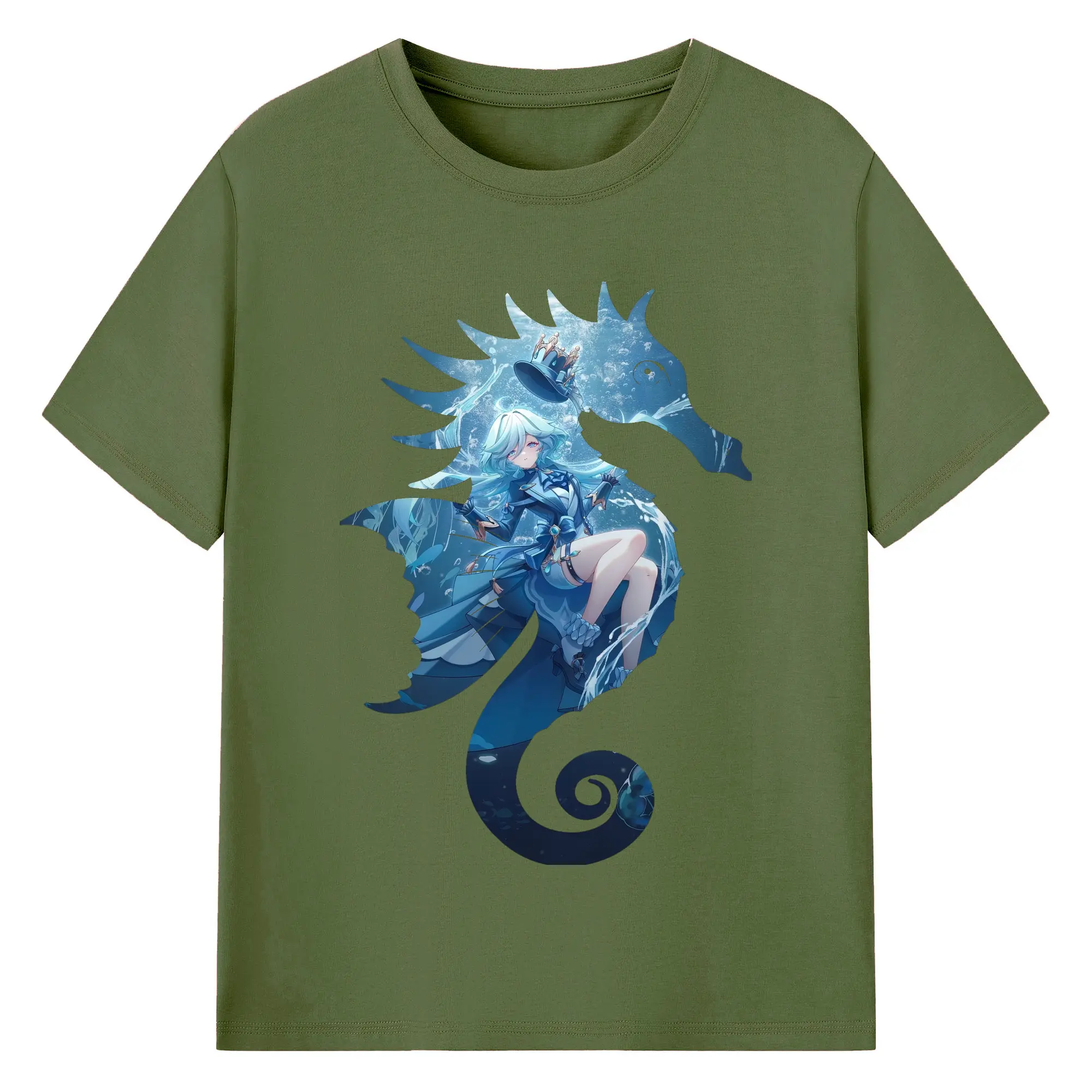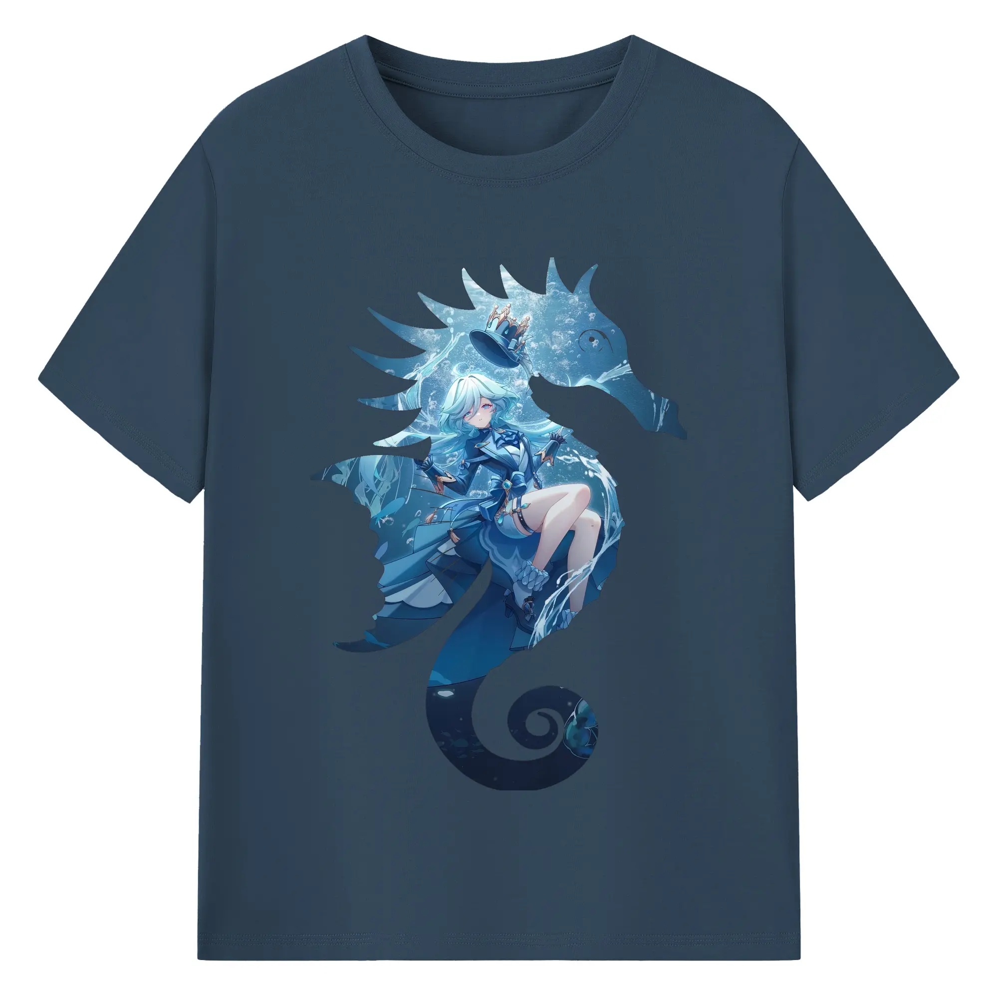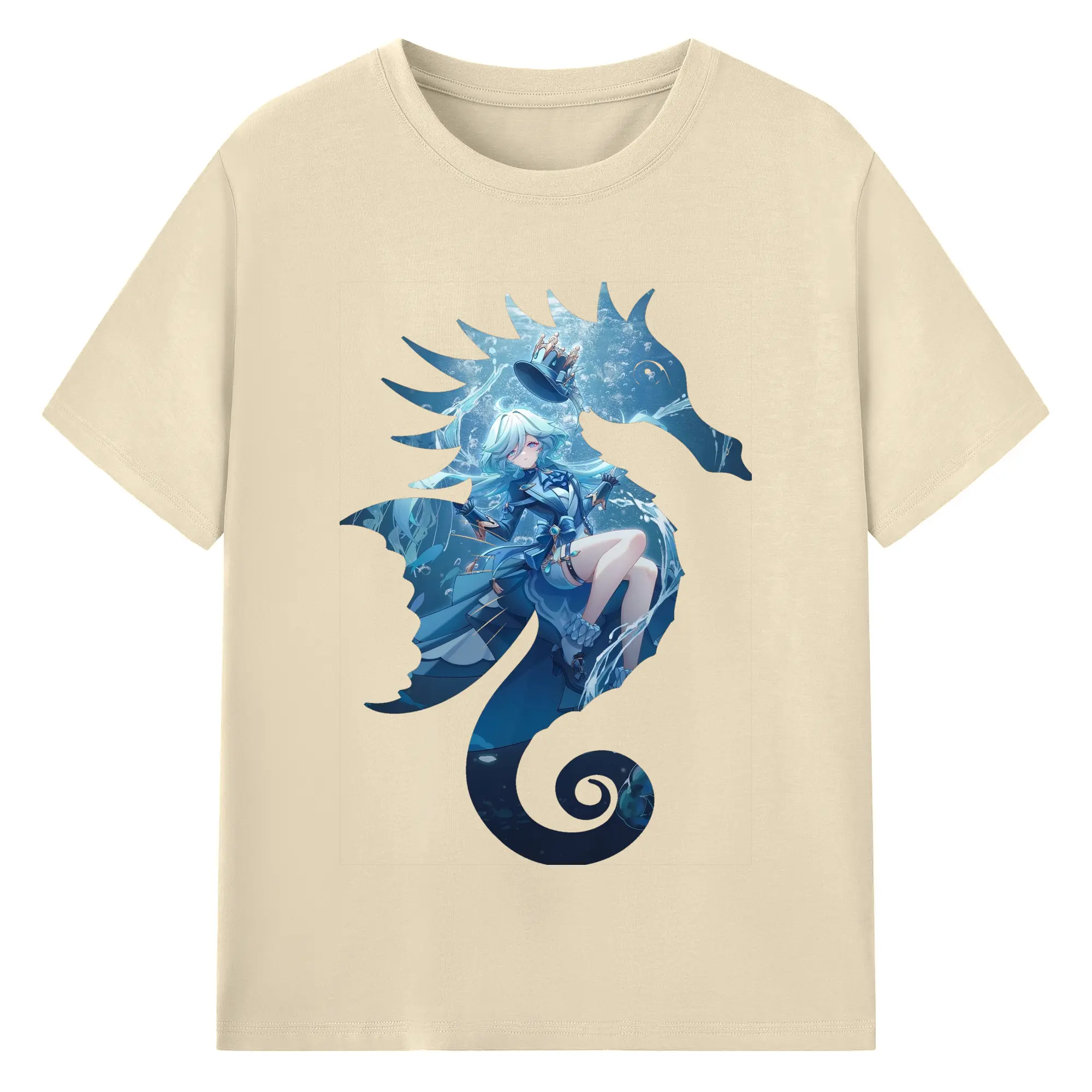 原 神 グッズ フリーナ - 綿100% 半袖Tシャツ ・ バックプリント ・ 快適 通気性 ・ 日常使い 散歩 スポーツ用