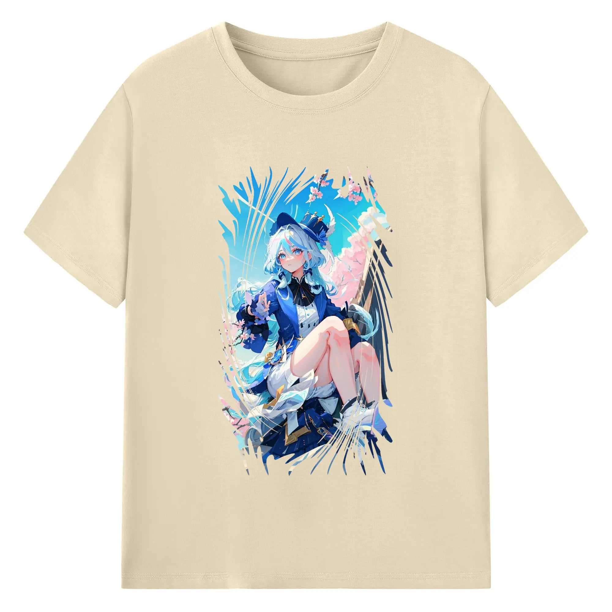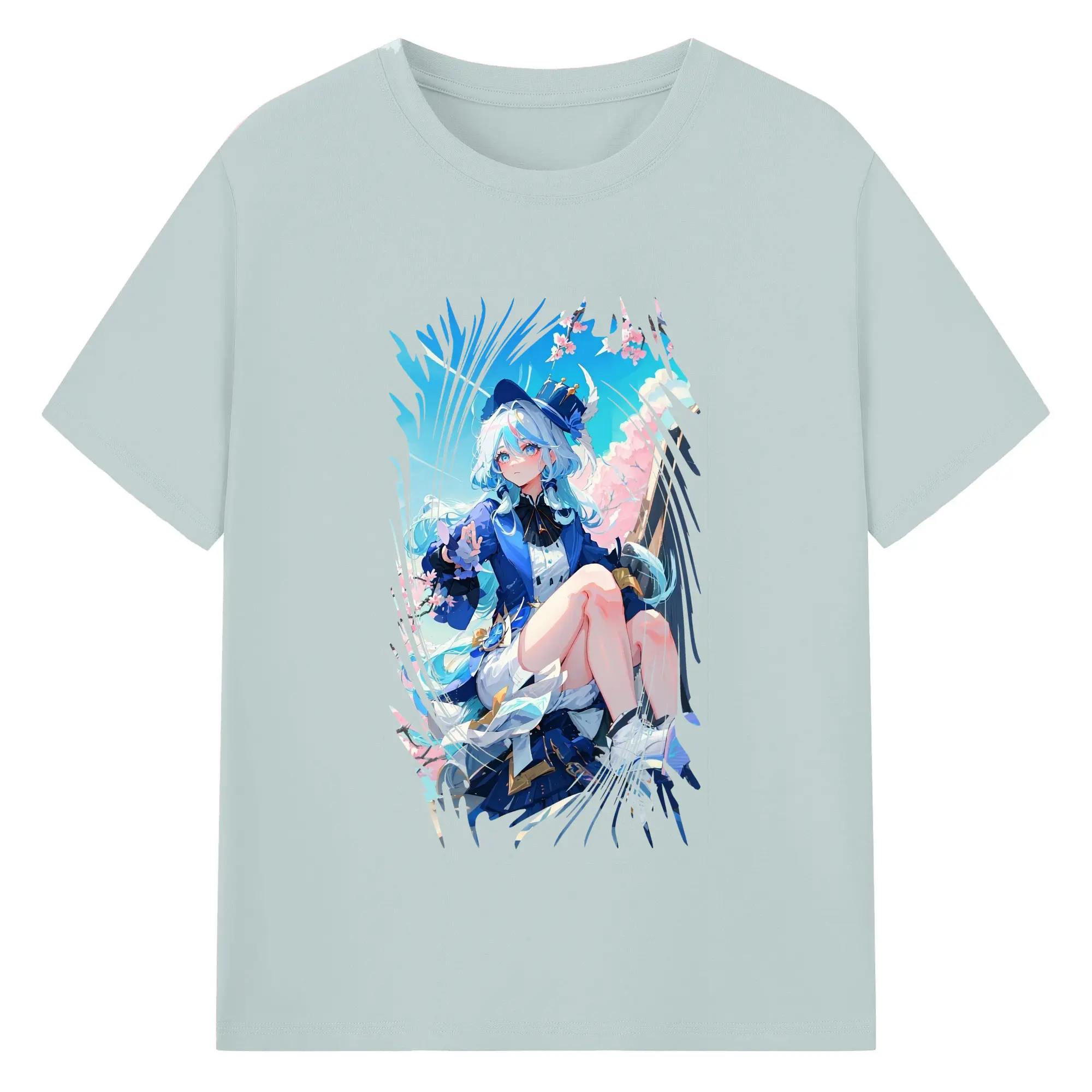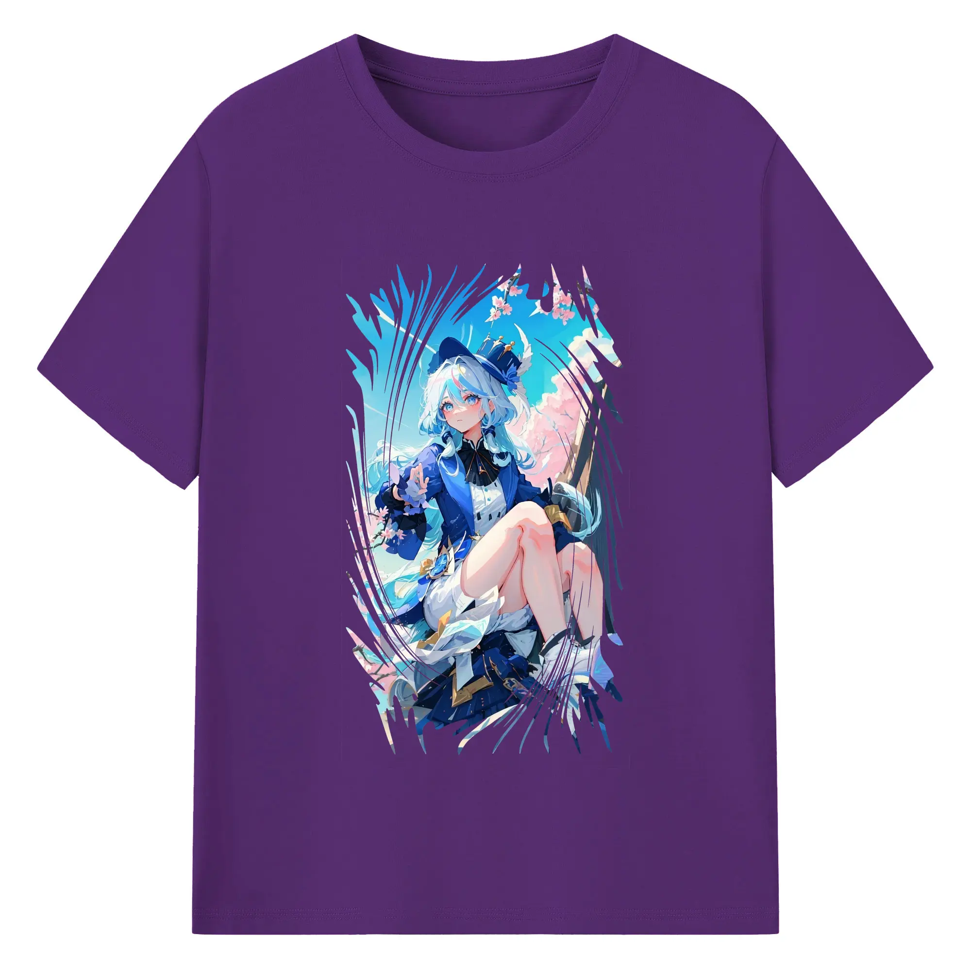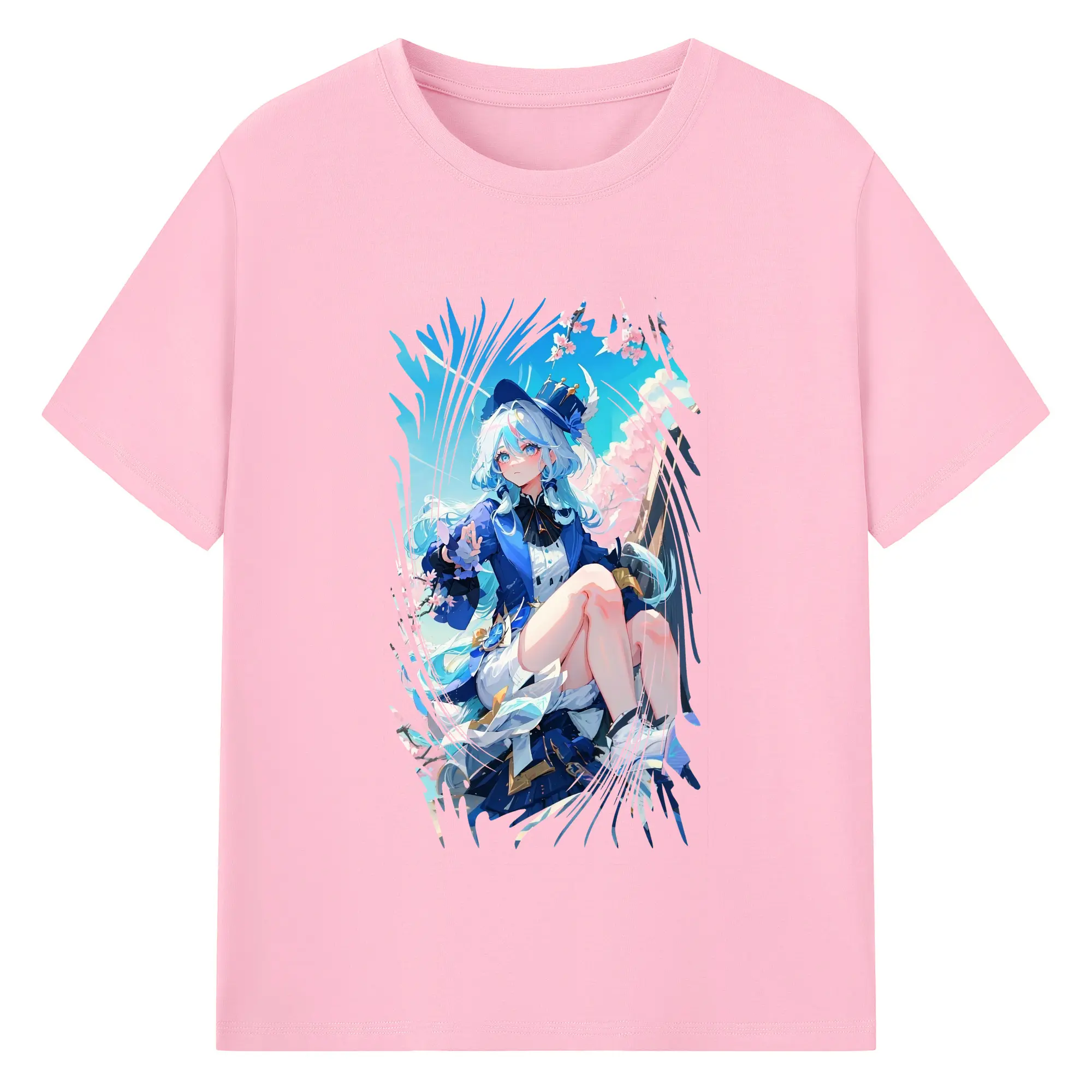 原 神 グッズ フリーナ - 綿100% 半袖Tシャツ ・ バックプリント ・ 快適 通気性 ・ 日常使い 散歩 スポーツ用