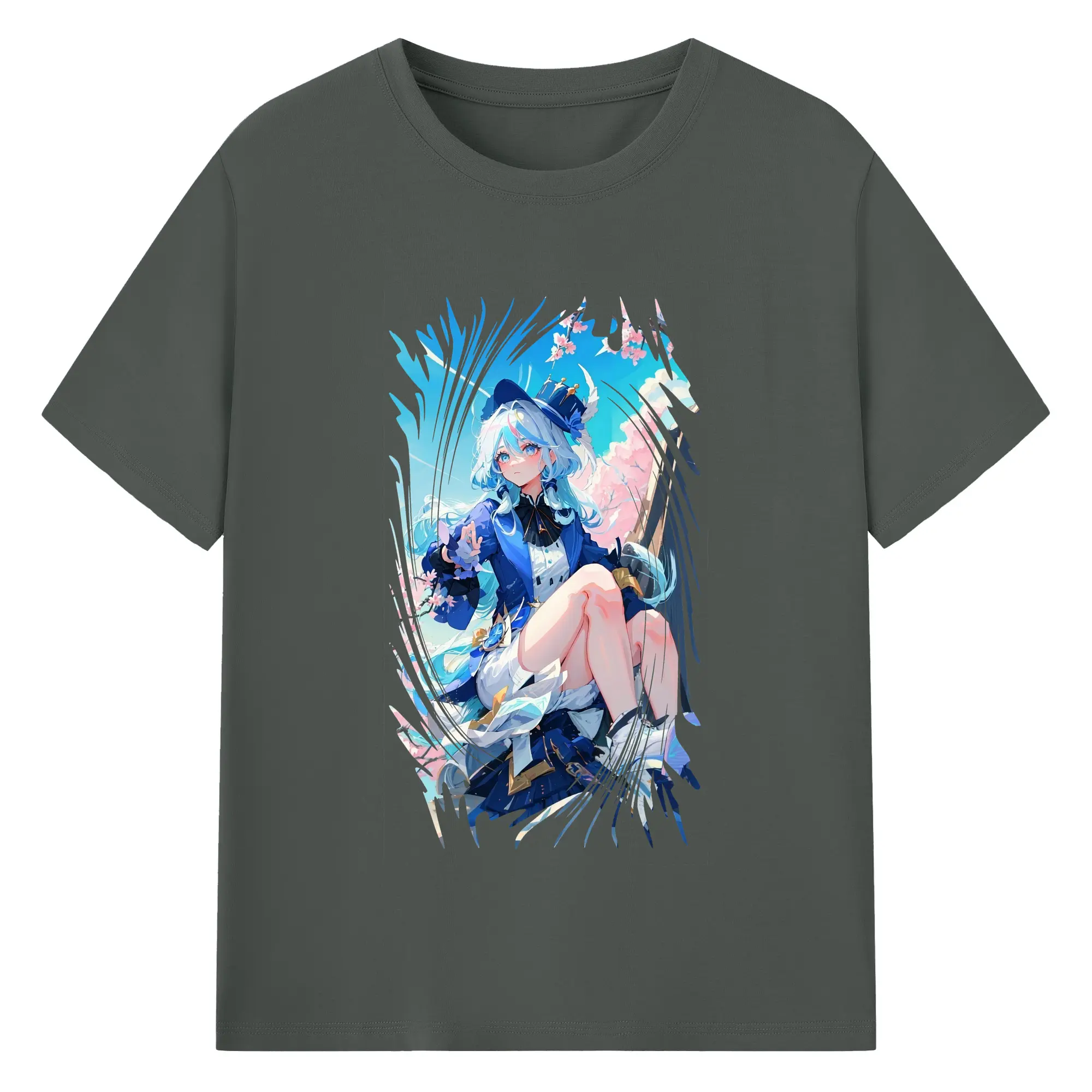 原 神 グッズ フリーナ - 綿100% ヴィンテージ風 半袖Tシャツ ・ フロントプリント ・ 柔らか肌触り ・ 通気性 快適 ・ スポーツ カジュアル 外出用