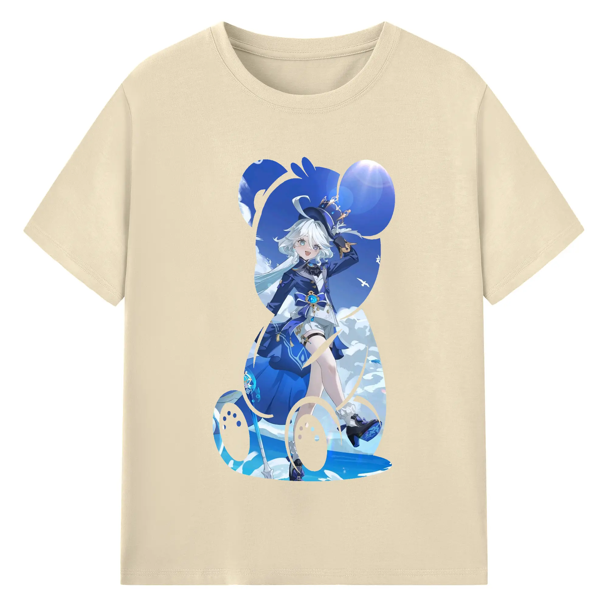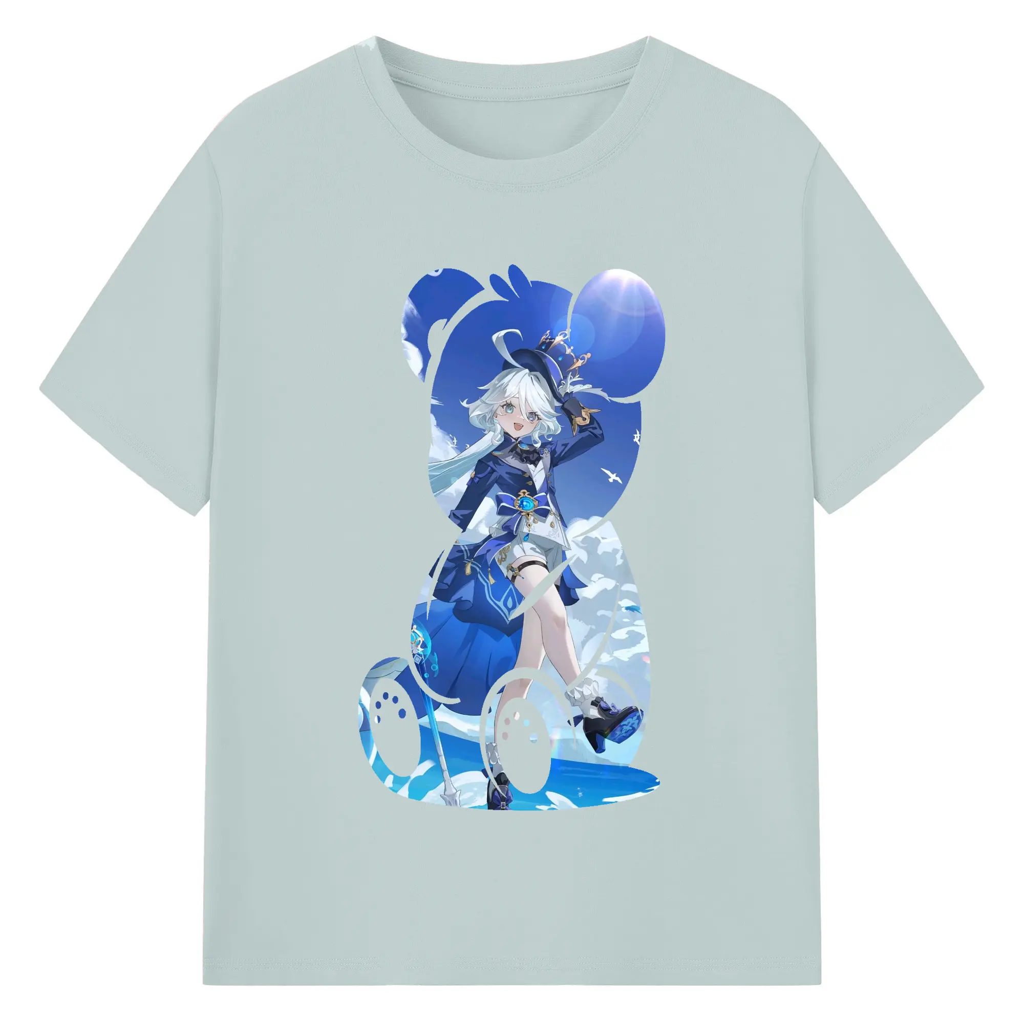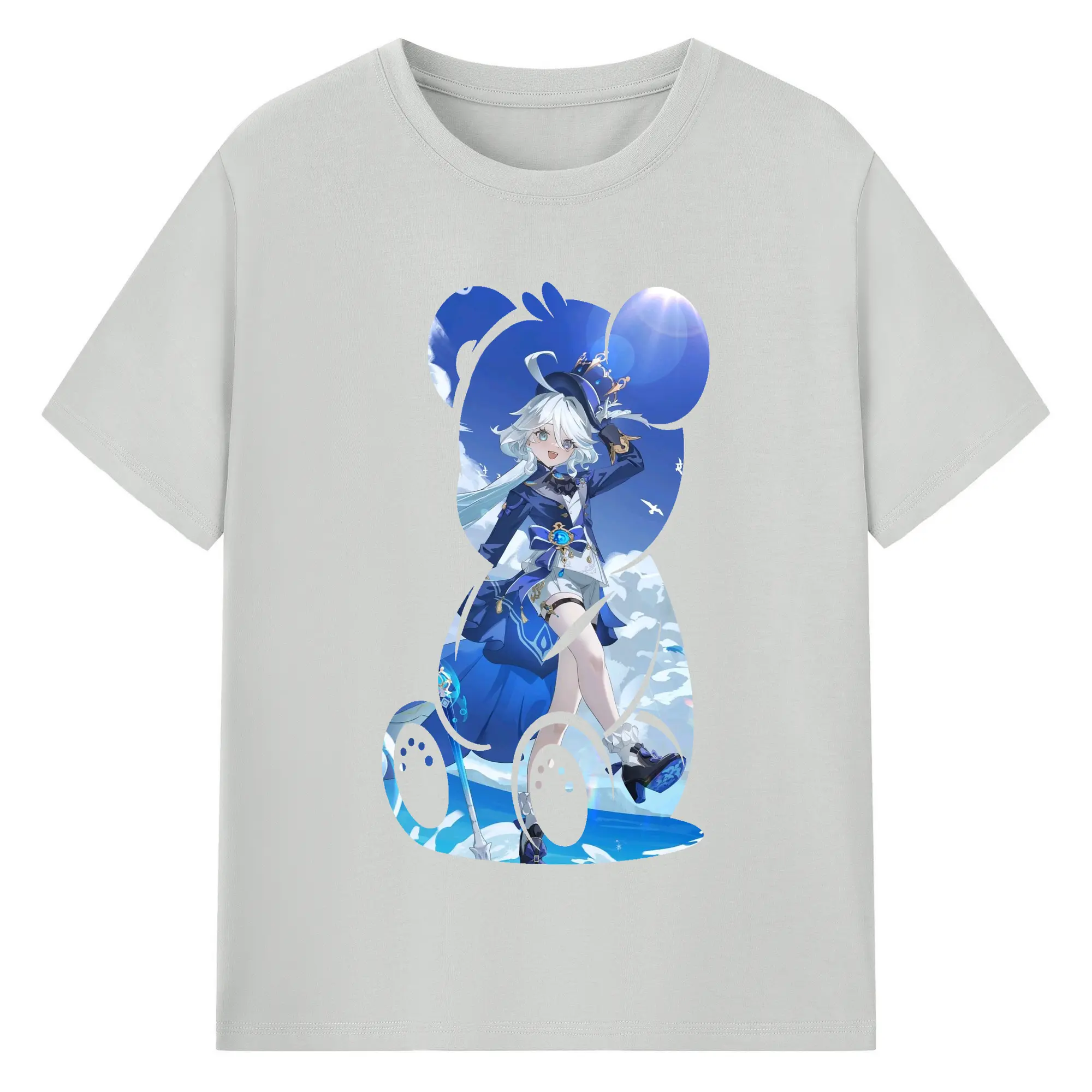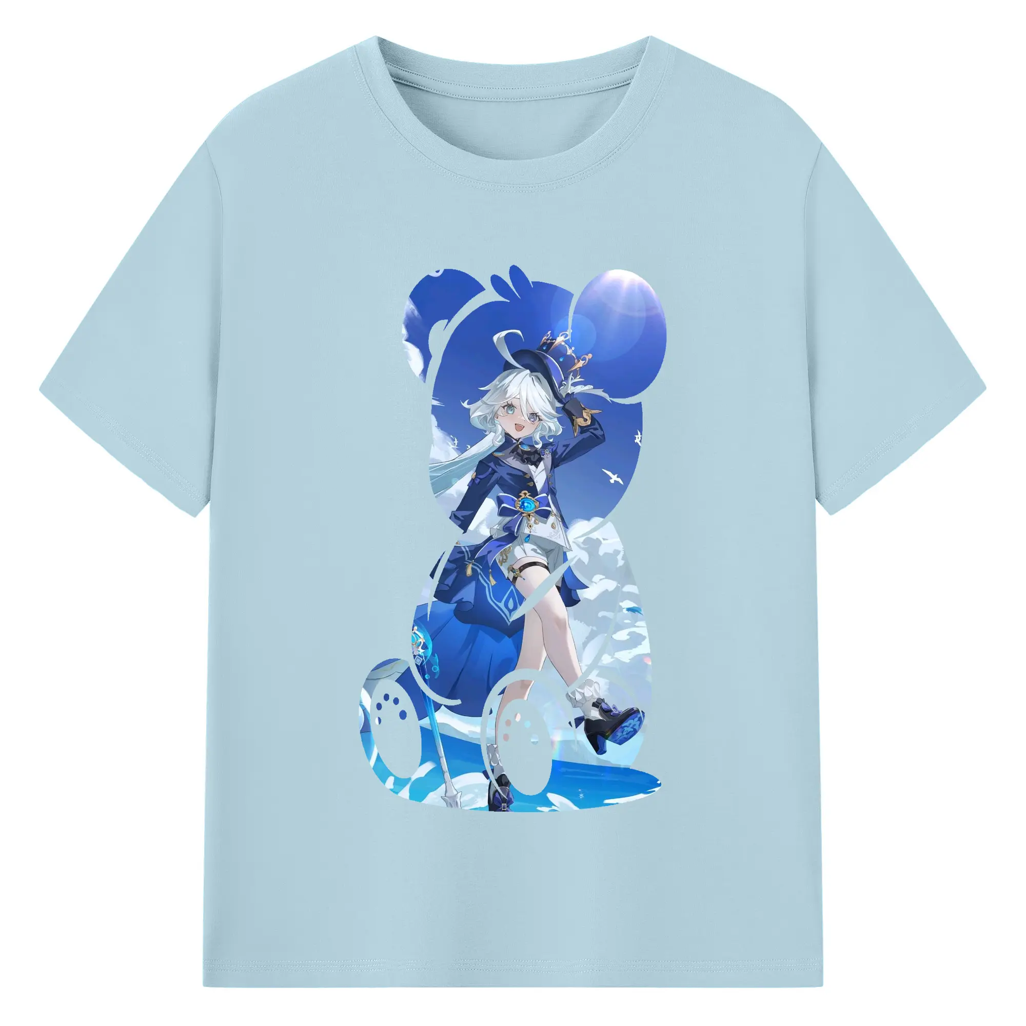 原 神 グッズ フリーナ - 綿100% 半袖Tシャツ ・ バックプリント ・ 快適 通気性 ・ 日常使い 散歩 スポーツ用