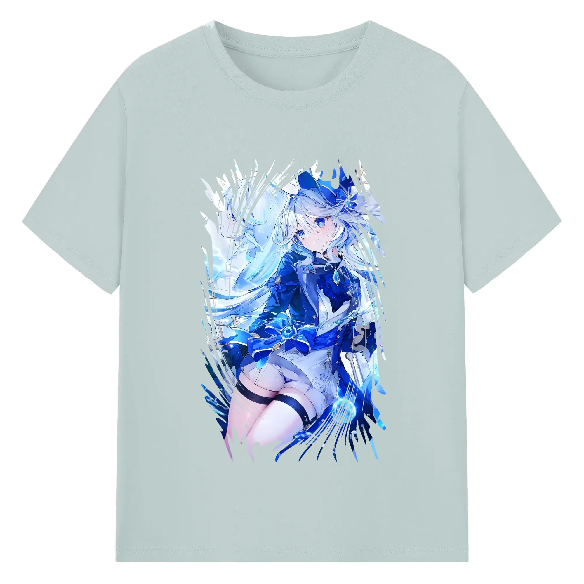 原 神 グッズ フリーナ - 綿100% 半袖Tシャツ ・ フロントプリント ・ 快適 通気性 ・ 日常使い 散歩 スポーツ用