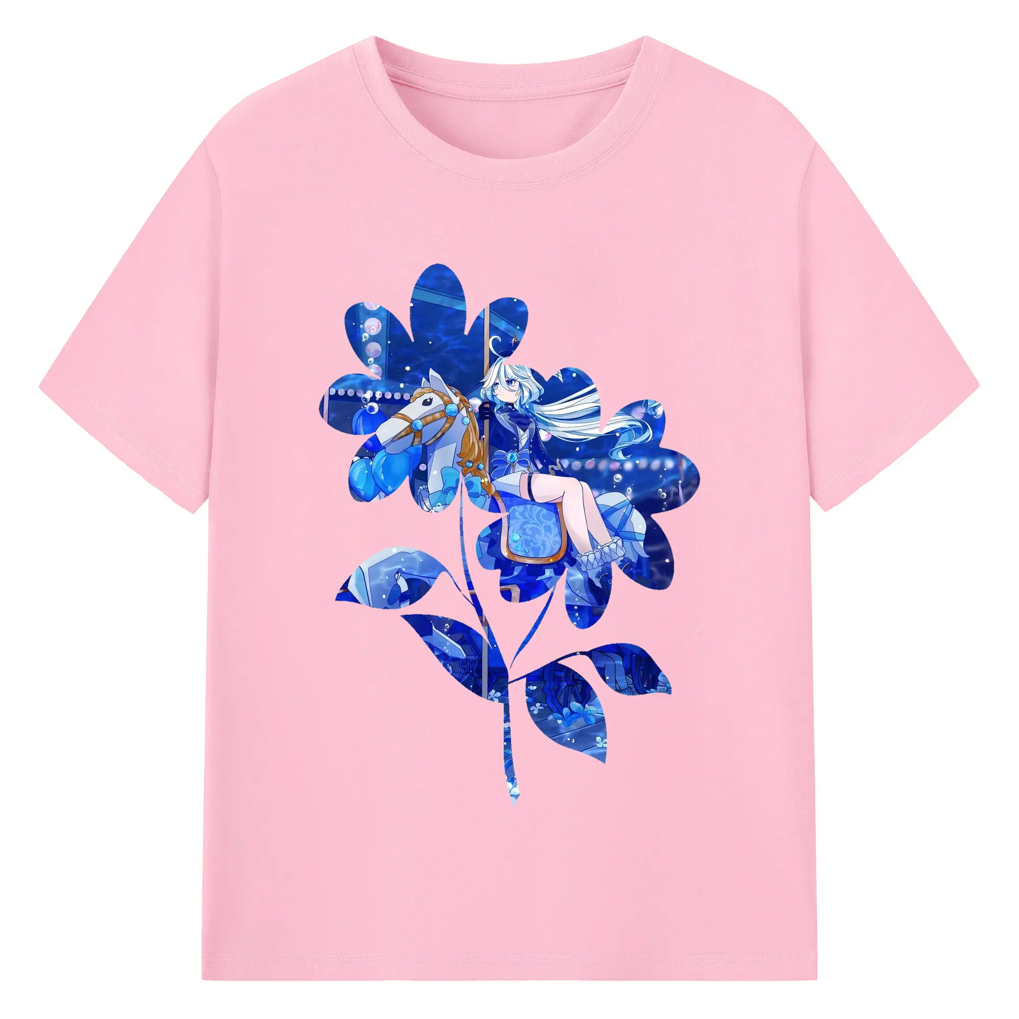 原 神 グッズ フリーナ - 綿100% 半袖Tシャツ ・ バックプリント ・ 快適 通気性 ・ 日常使い 散歩 スポーツ用