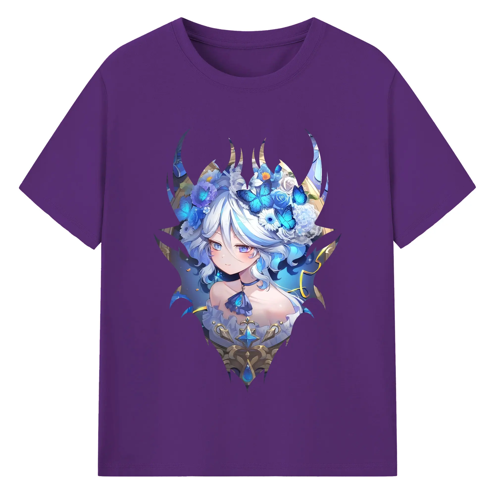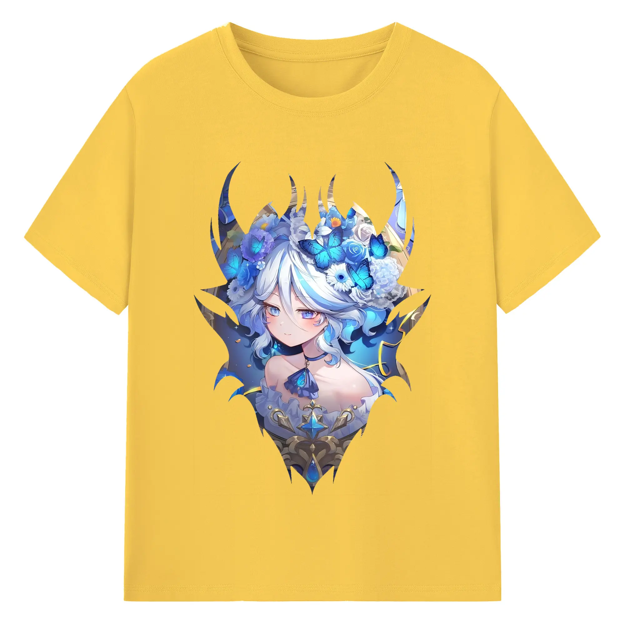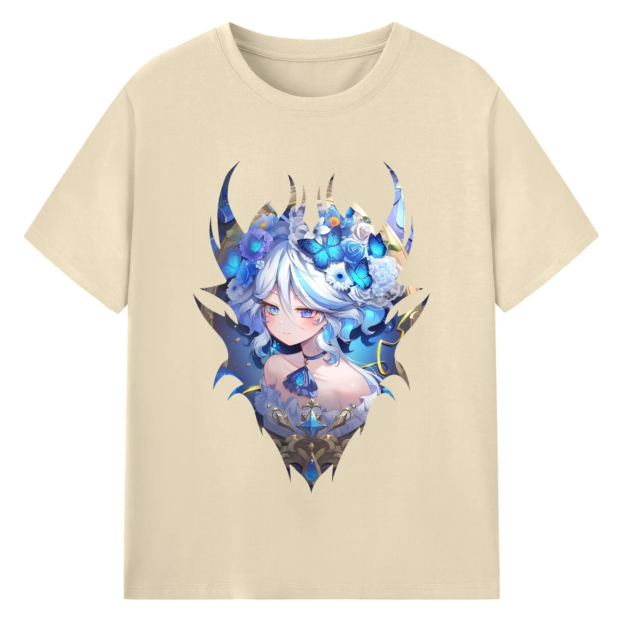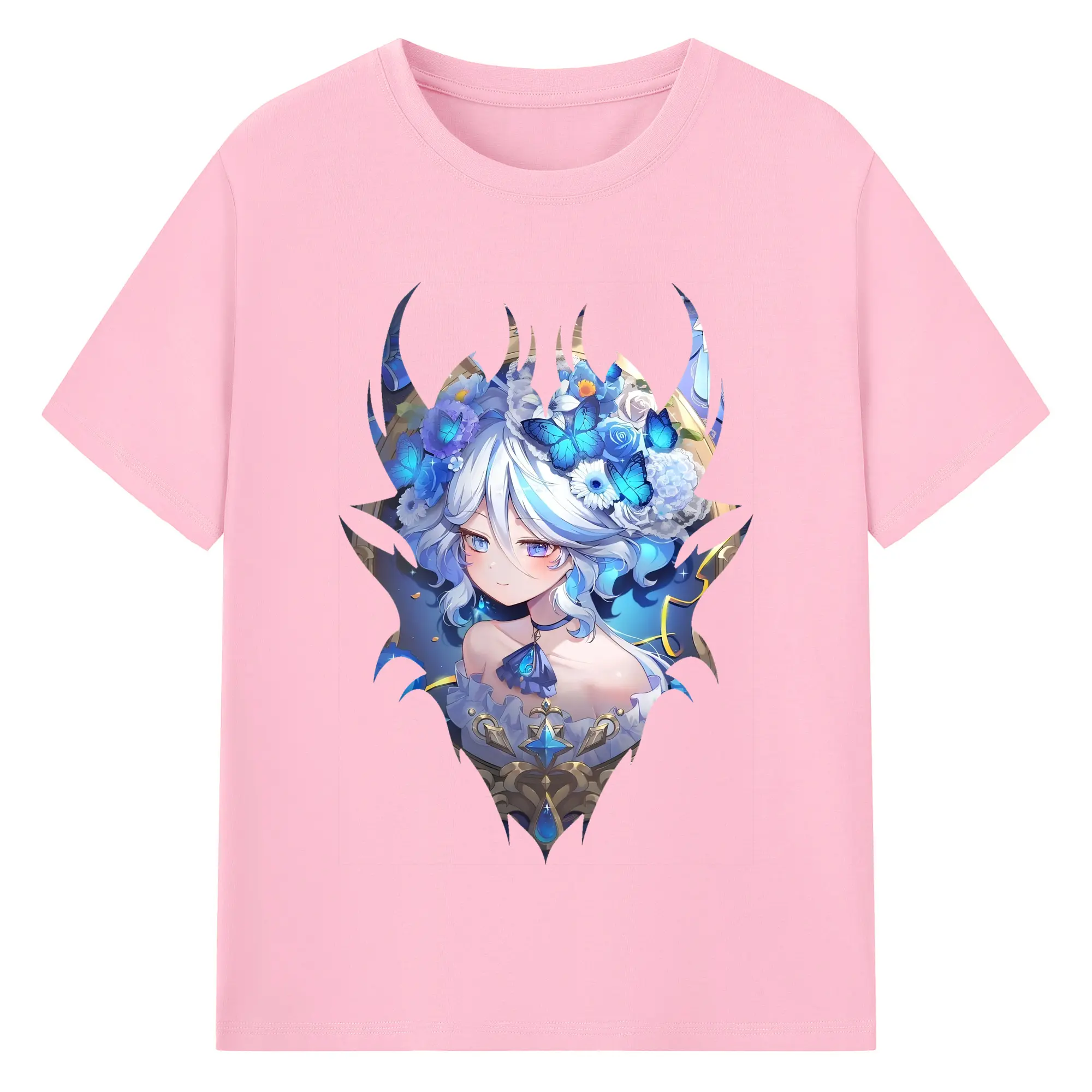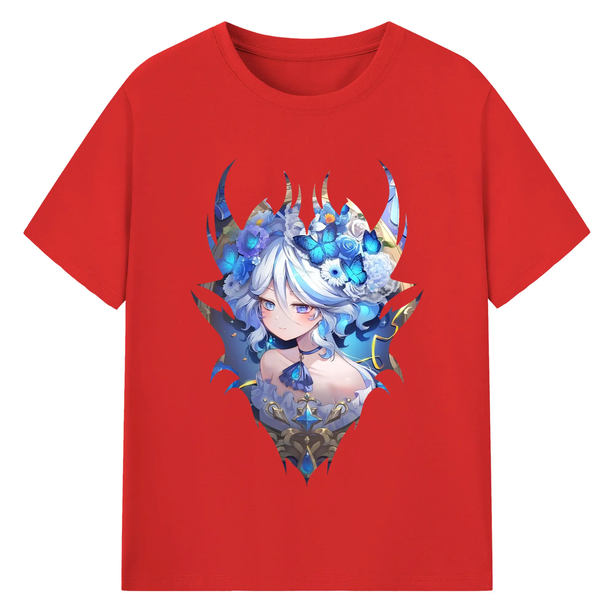 原 神 グッズ フリーナ - 綿100% 半袖Tシャツ ・ バックプリント ・ 快適 通気性 ・ 日常使い 散歩 スポーツ用