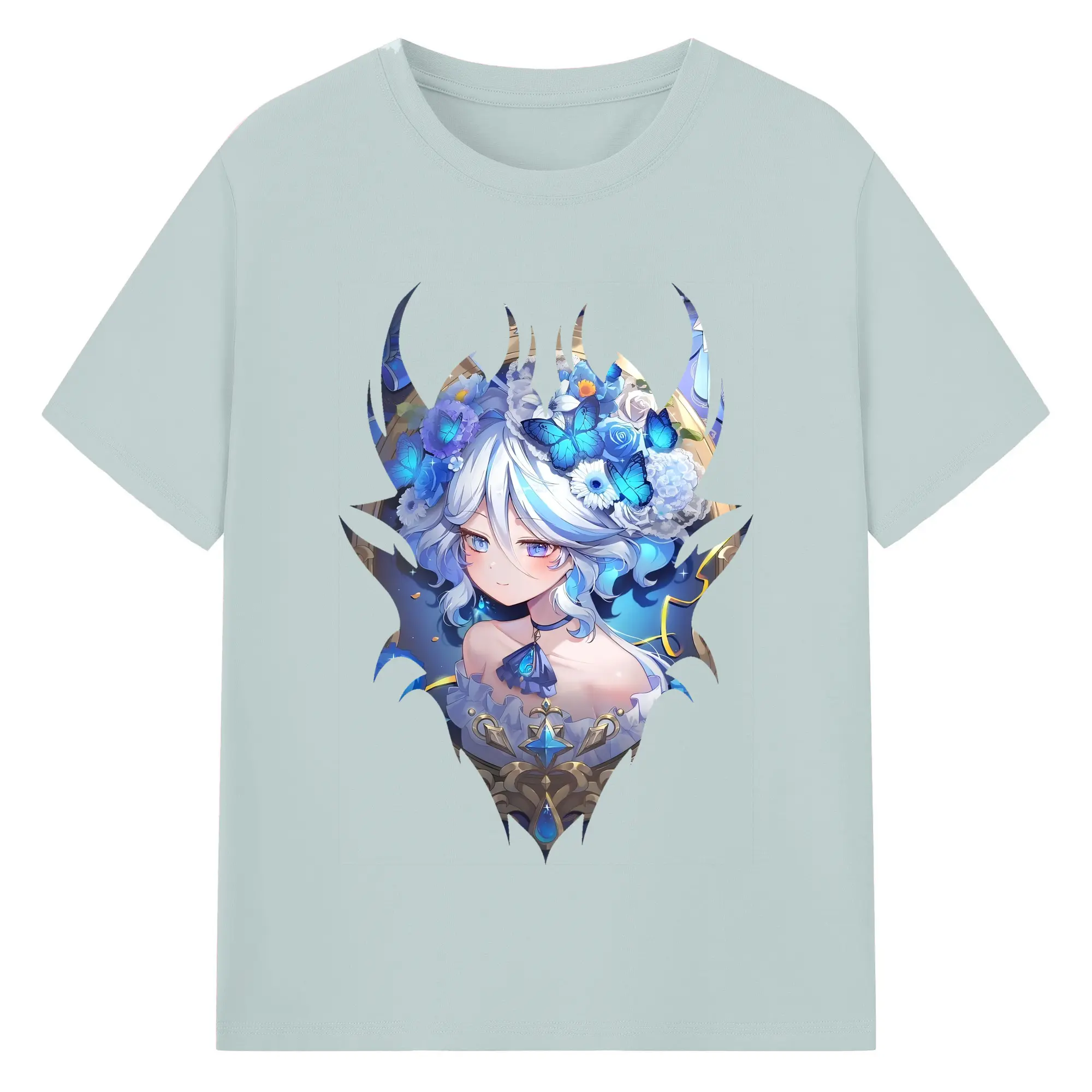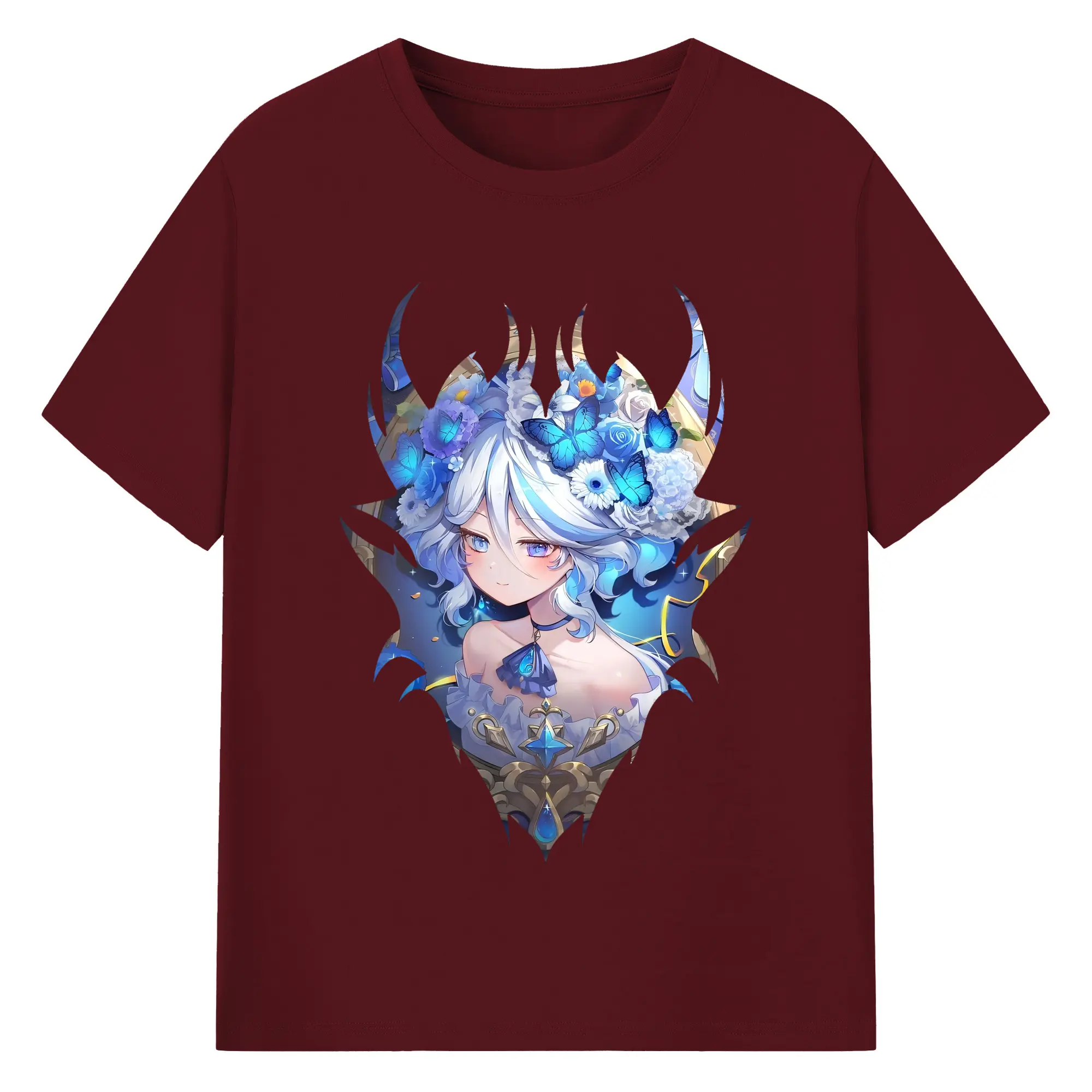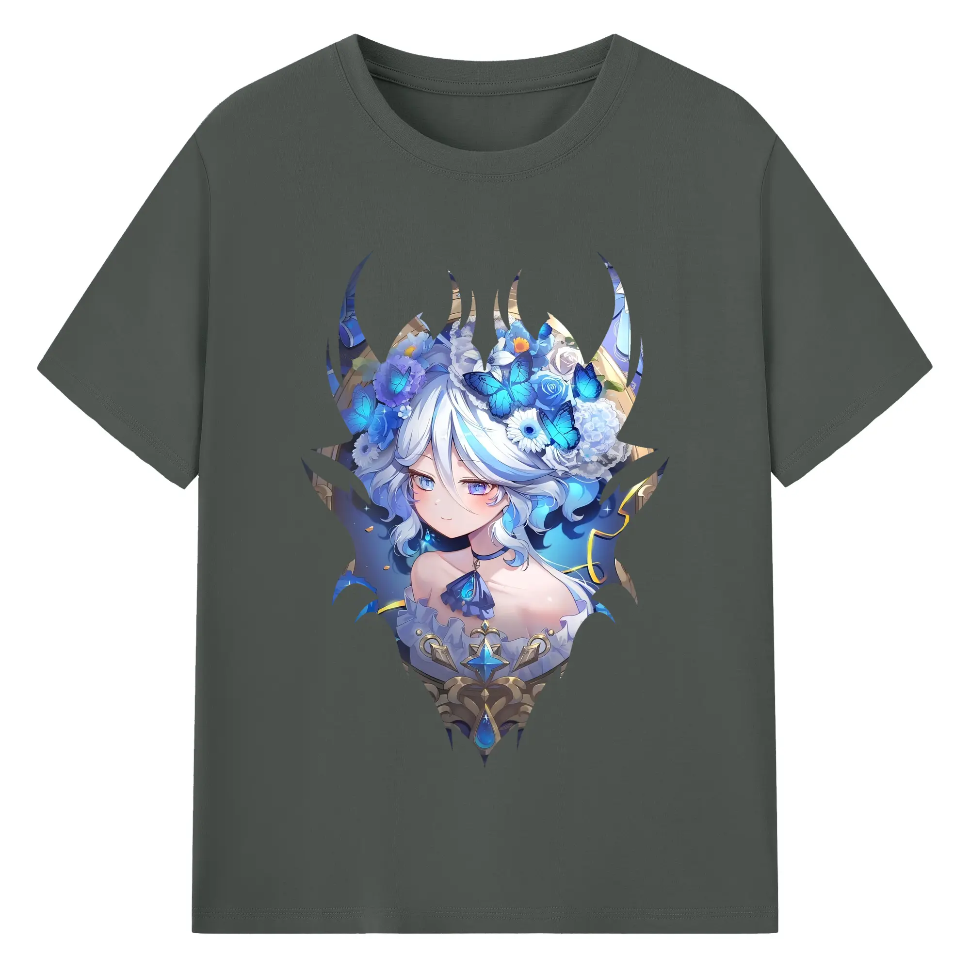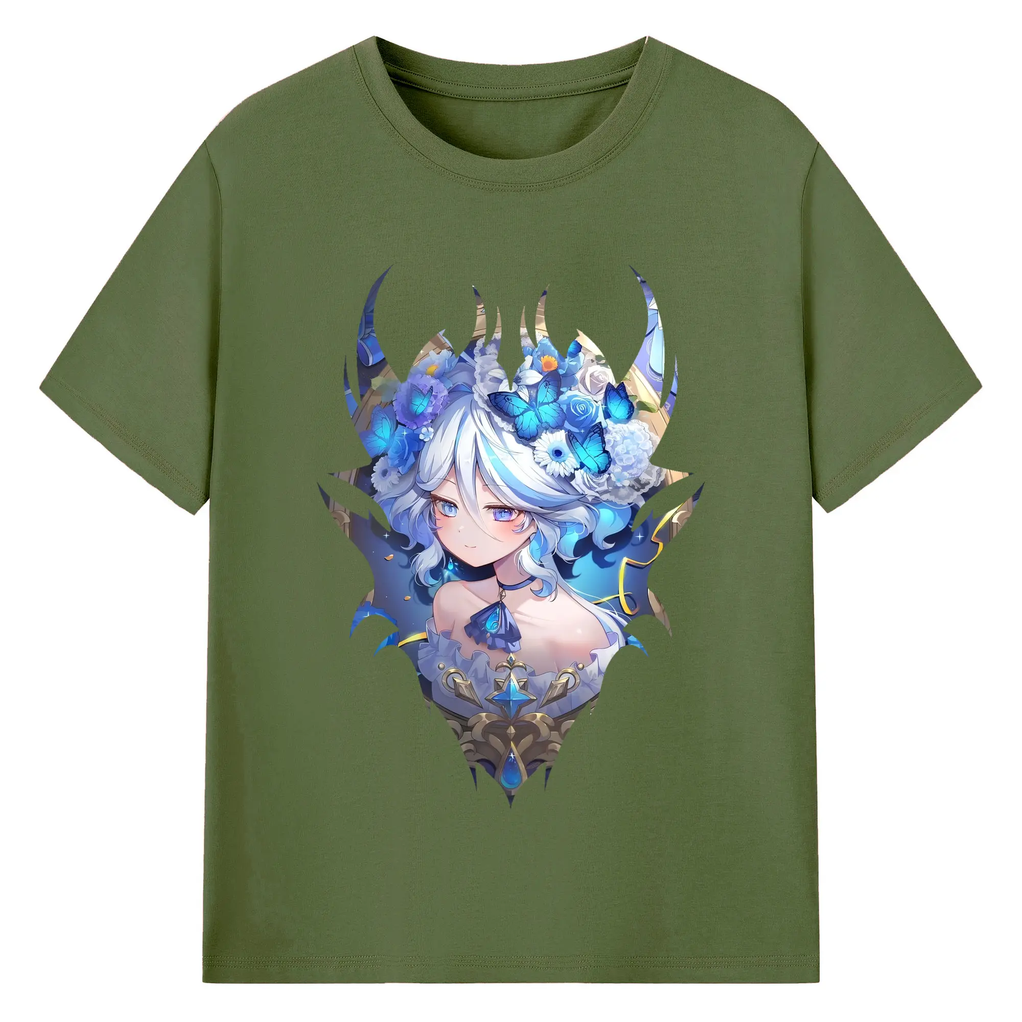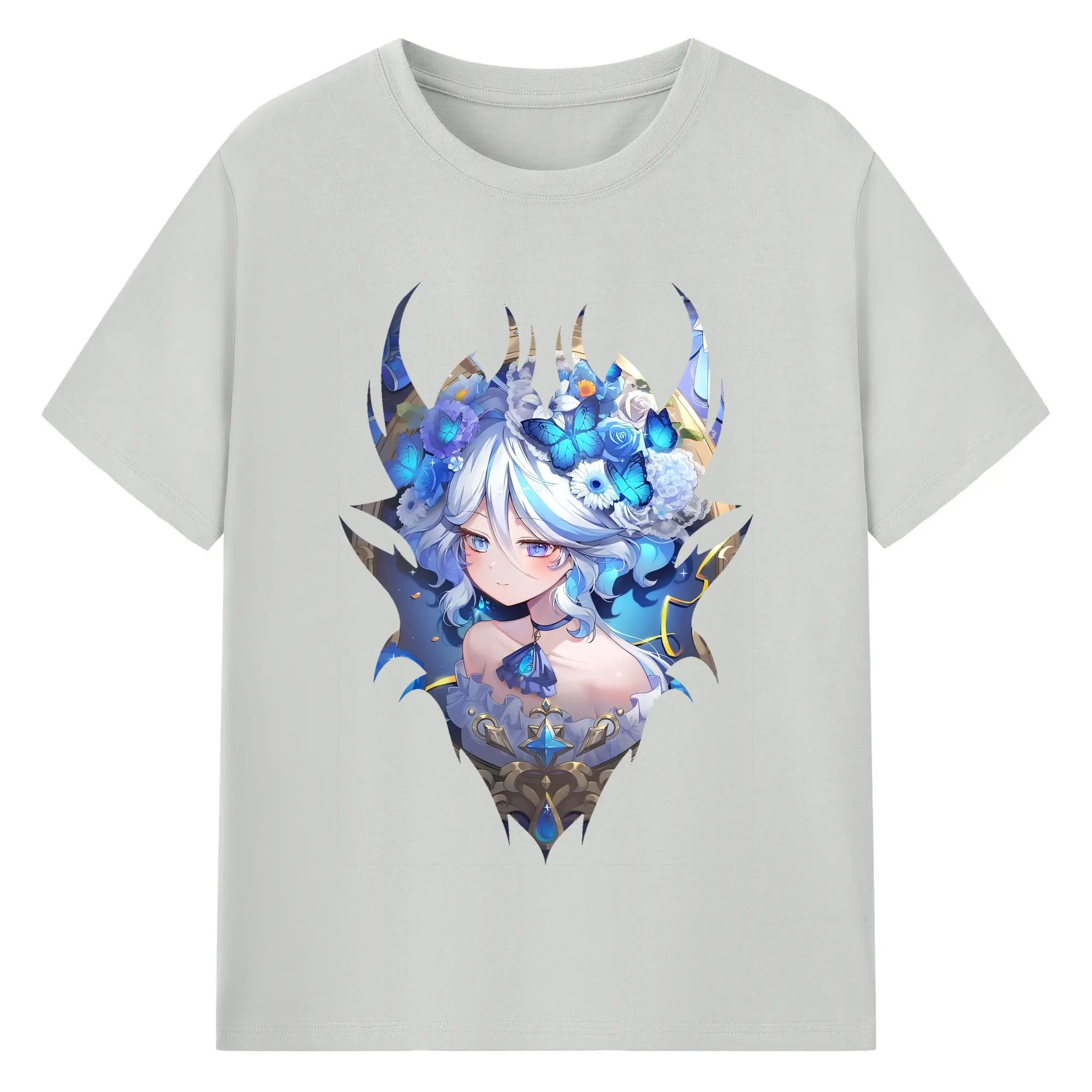原 神 グッズ フリーナ - 綿100% 半袖Tシャツ ・ バックプリント ・ 快適 通気性 ・ 日常使い 散歩 スポーツ用