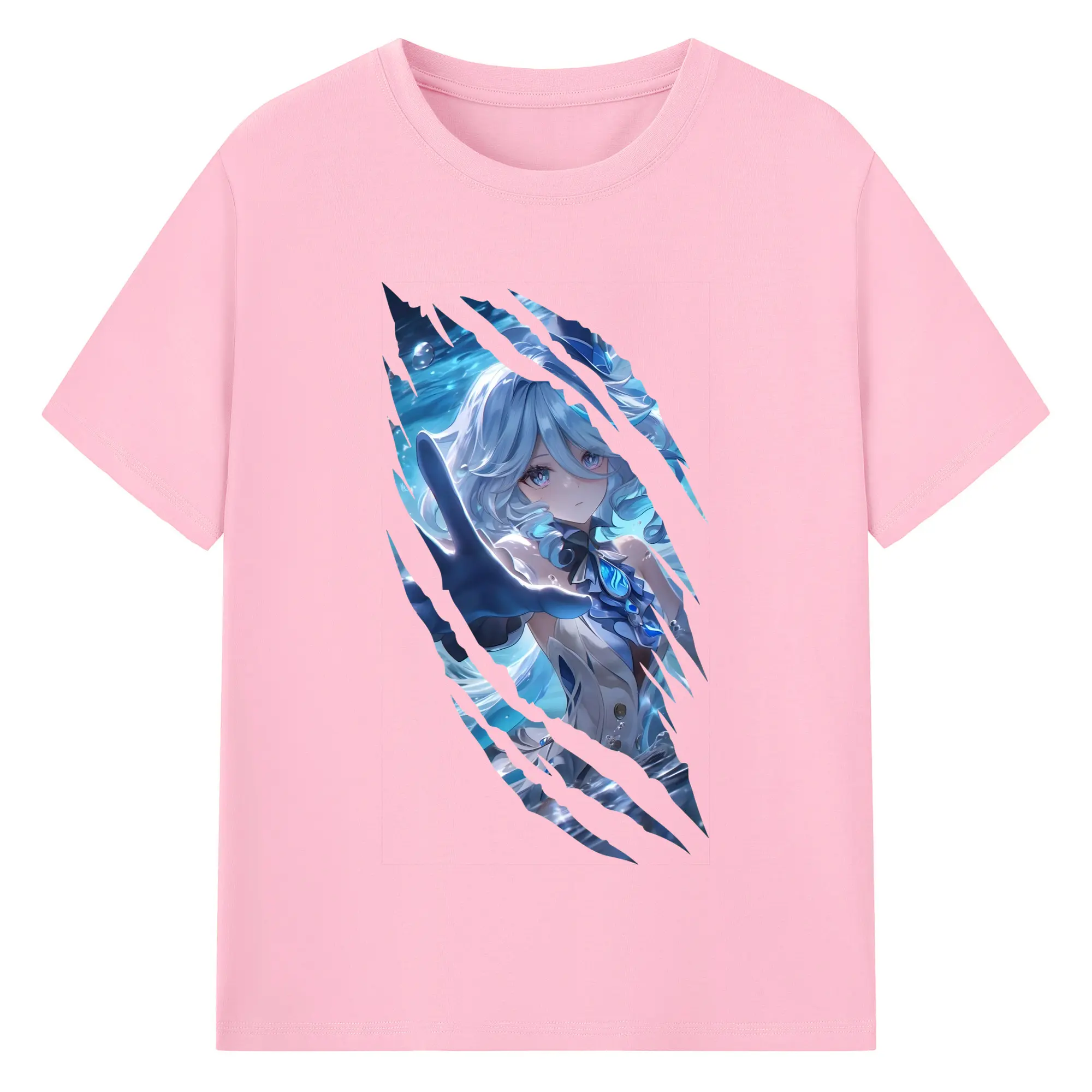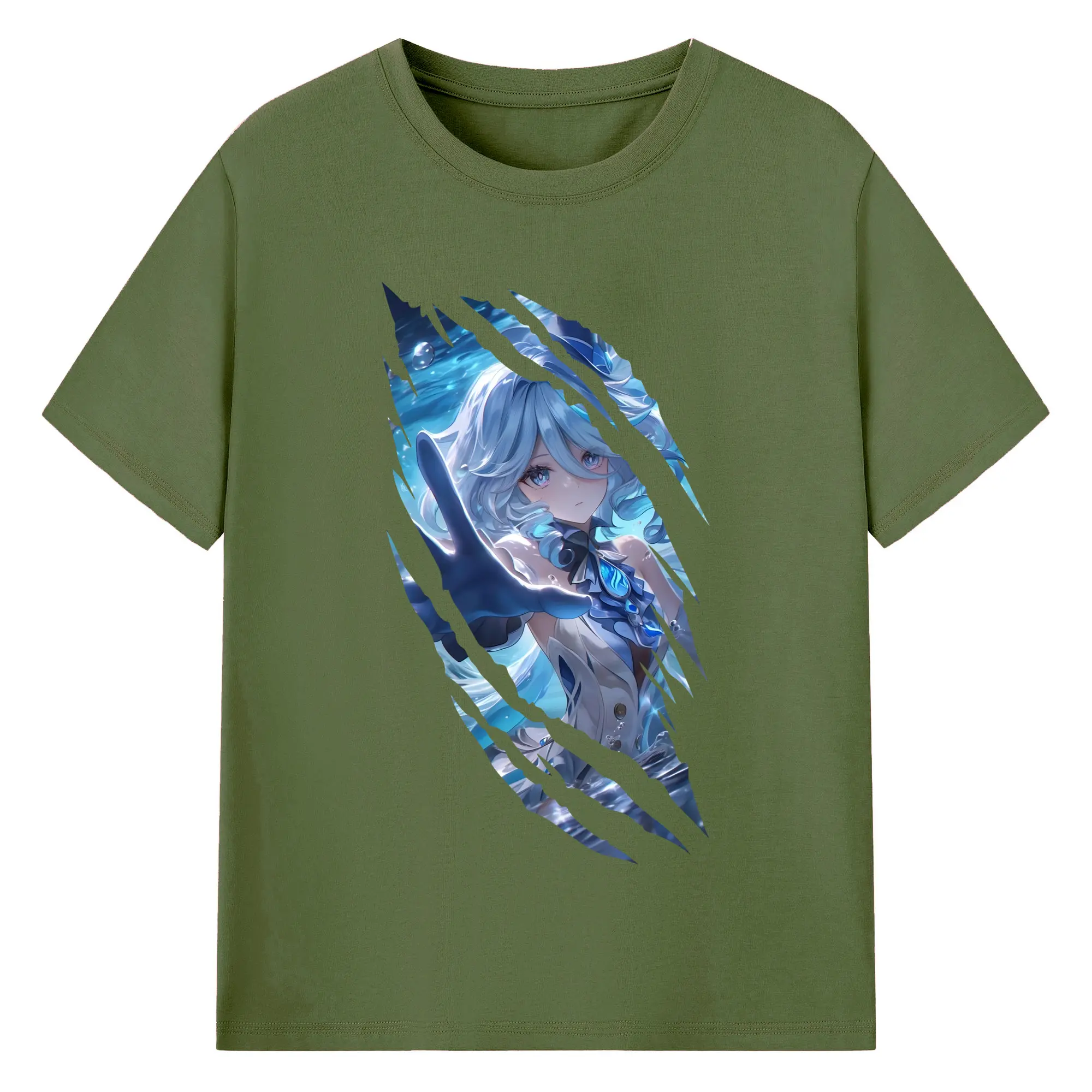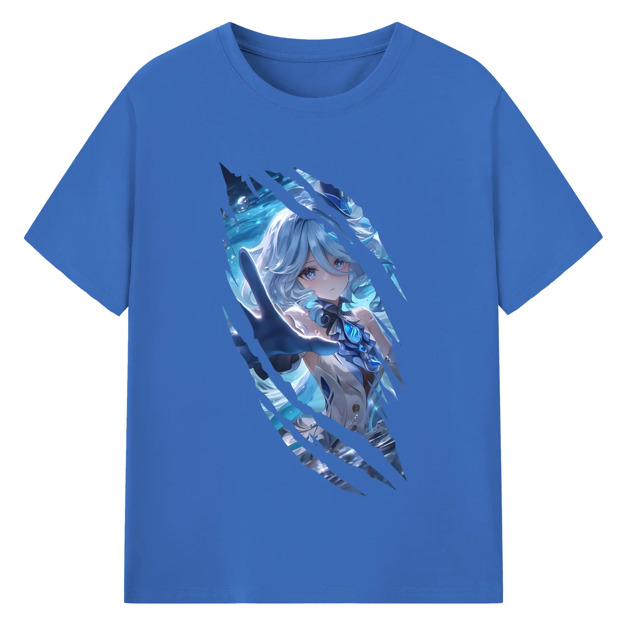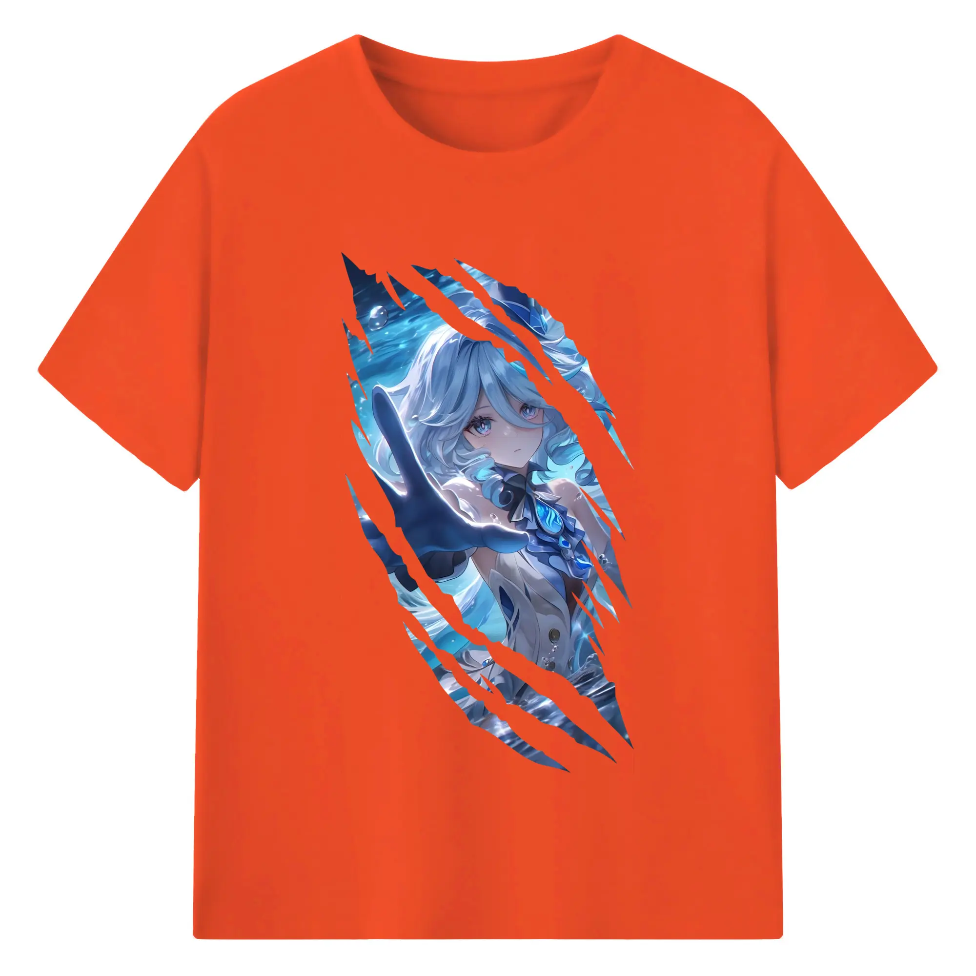 原 神 グッズ フリーナ - 綿100% 半袖Tシャツ ・ バックプリント ・ 快適 通気性 ・ 日常使い 散歩 スポーツ用