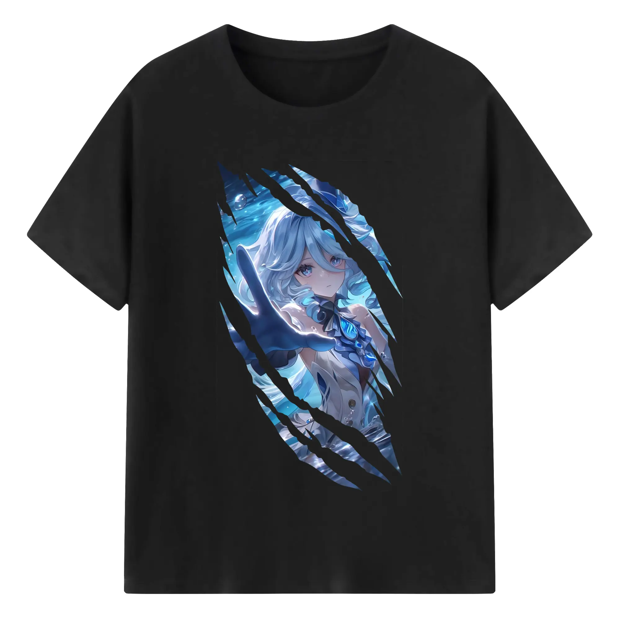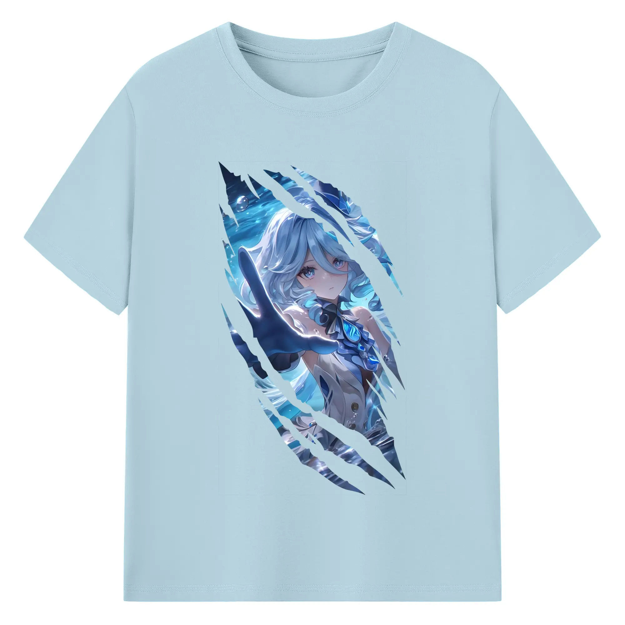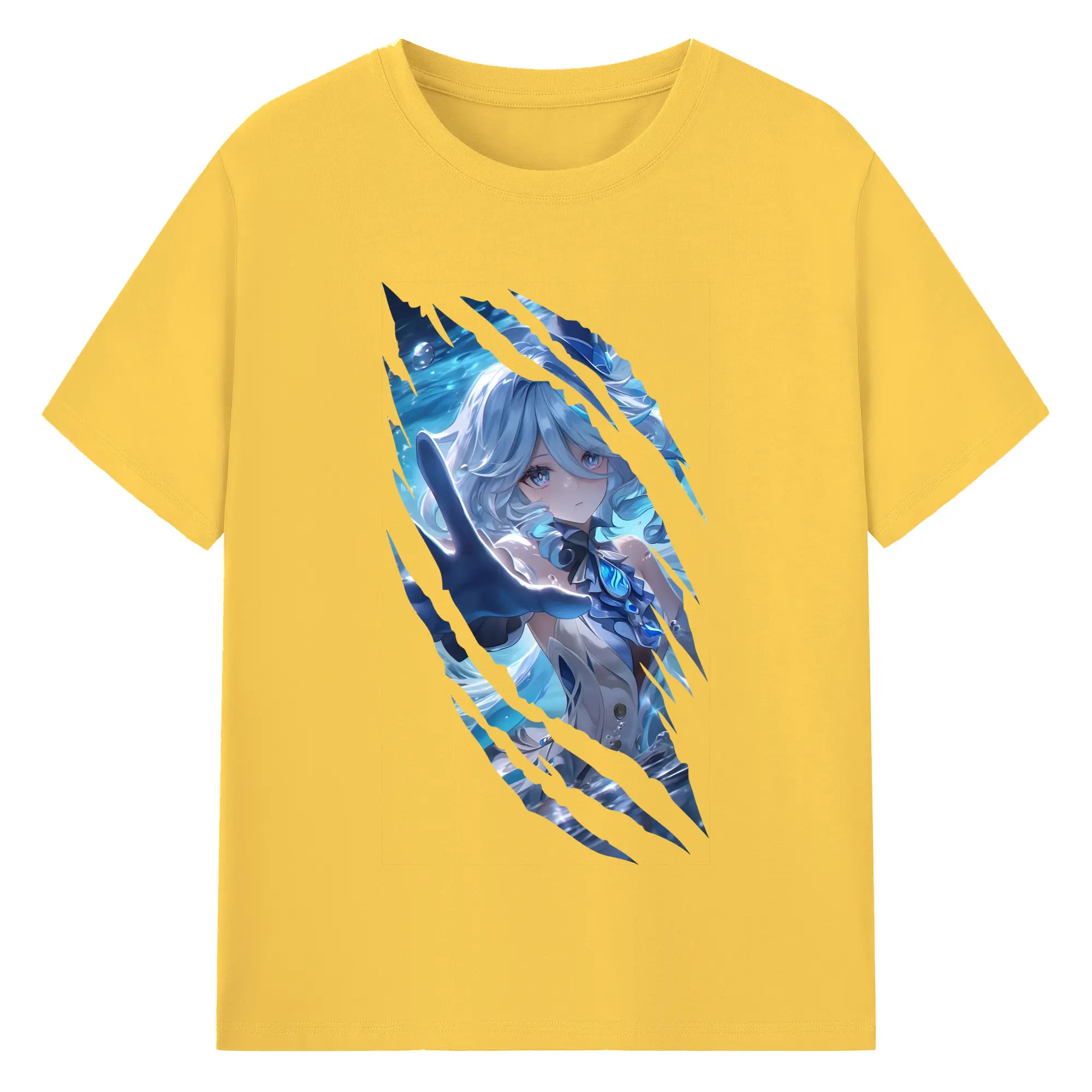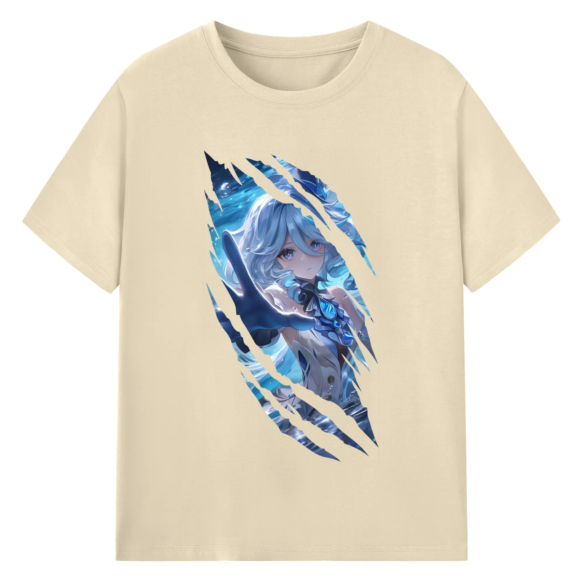 原 神 グッズ フリーナ - 綿100% 半袖Tシャツ ・ バックプリント ・ 快適 通気性 ・ 日常使い 散歩 スポーツ用