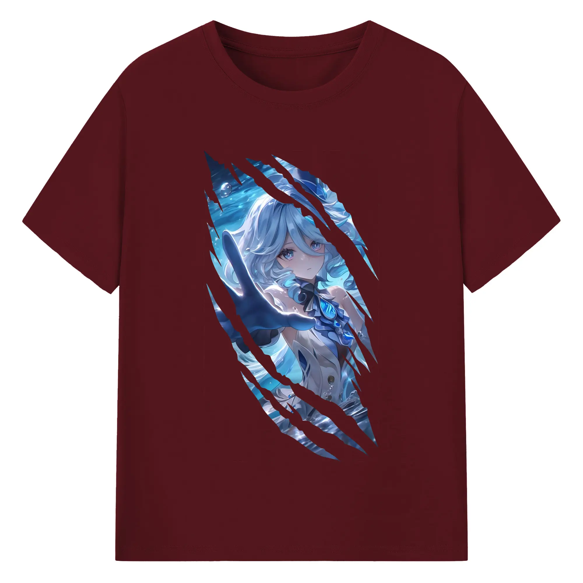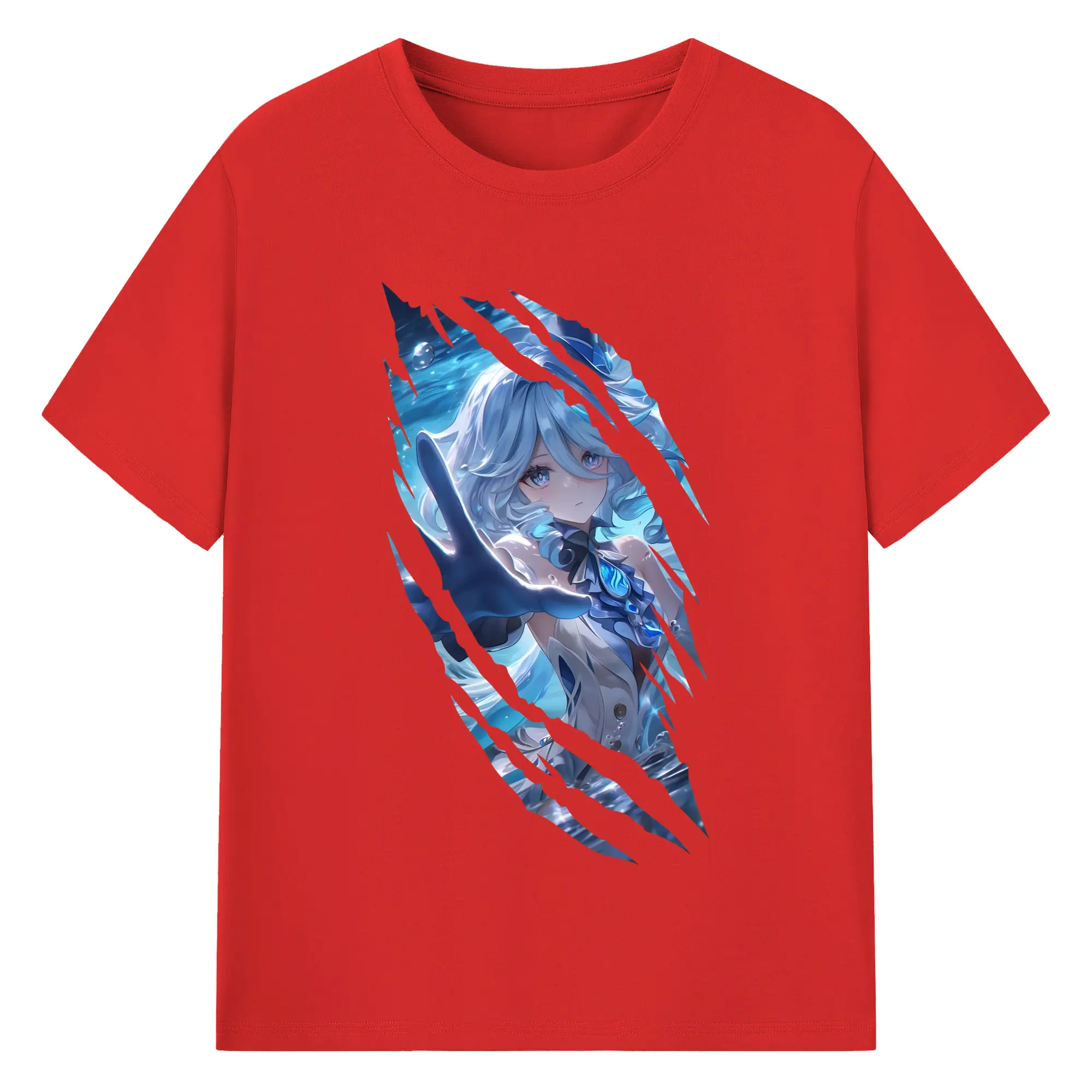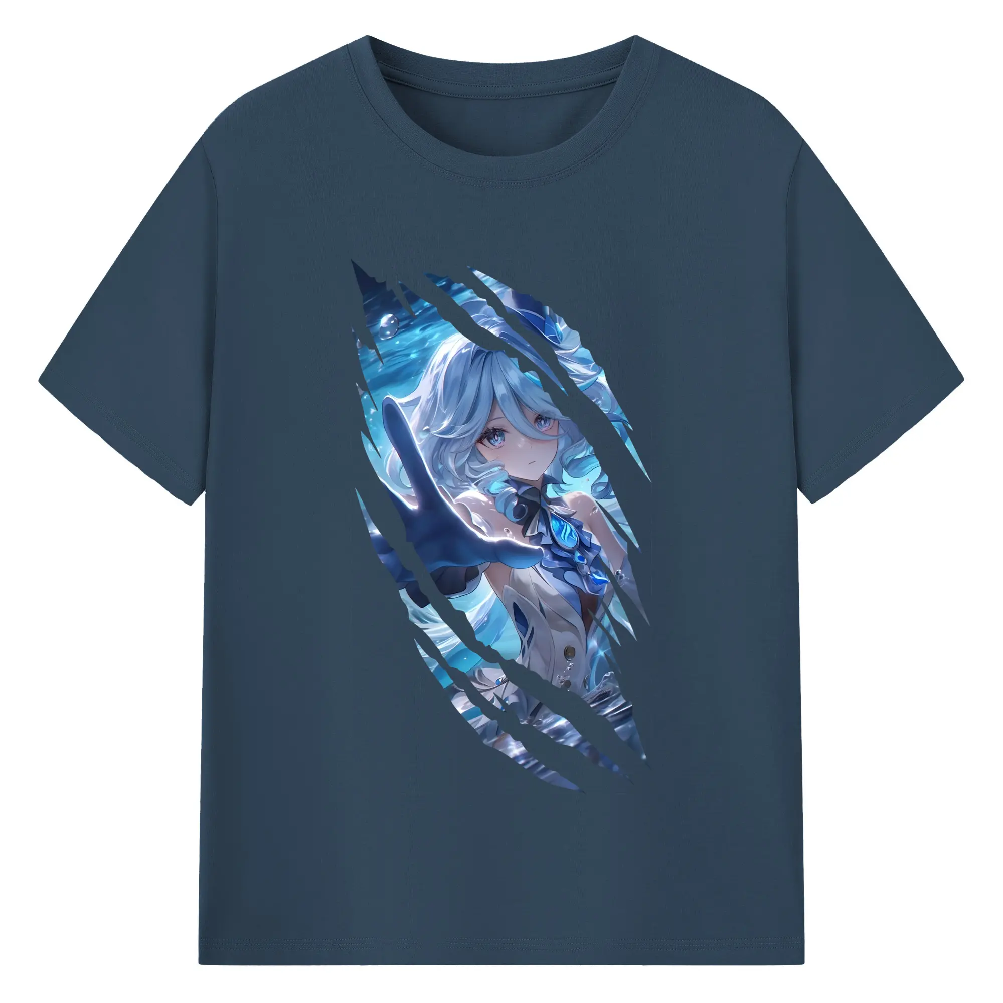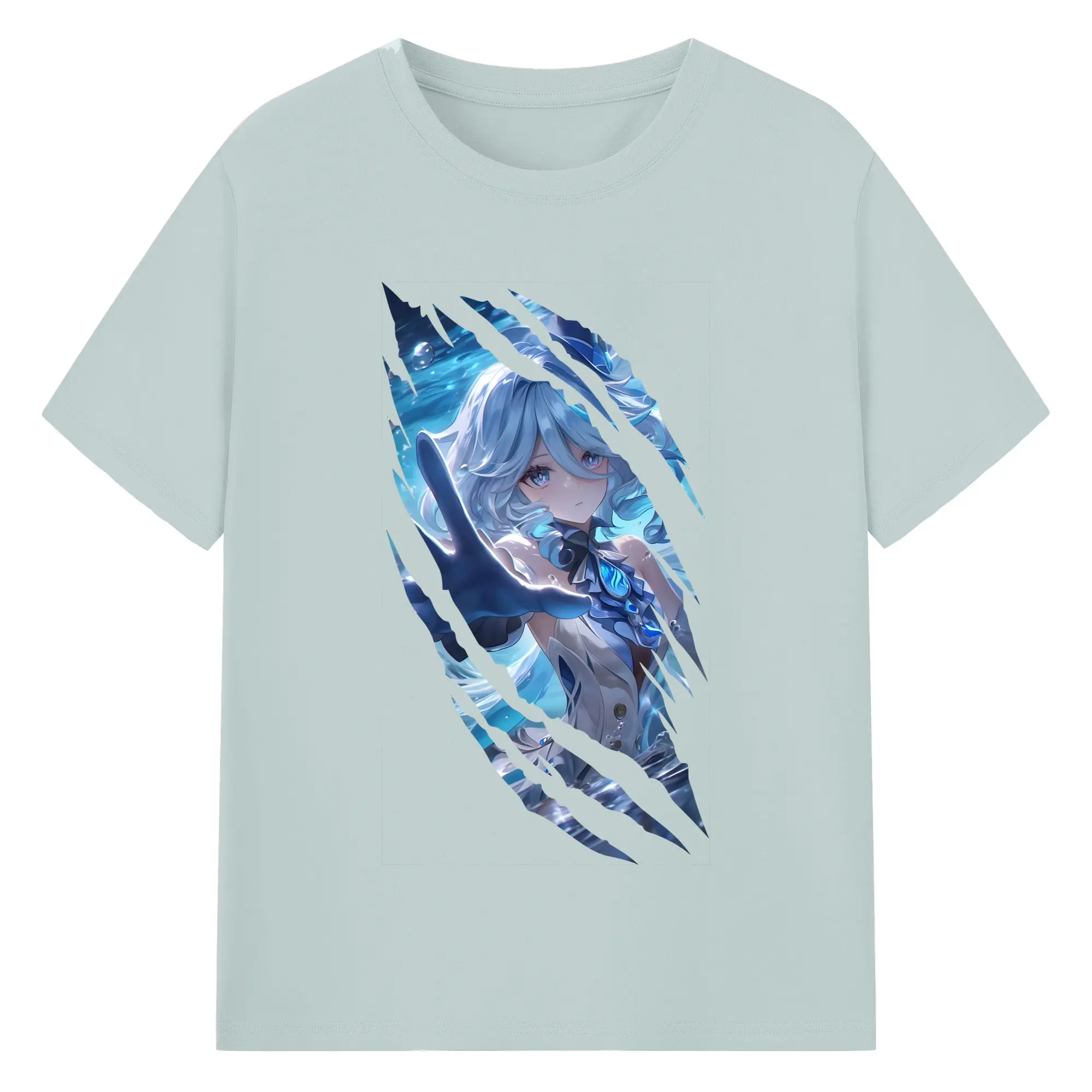 原 神 グッズ フリーナ - 綿100% 半袖Tシャツ ・ バックプリント ・ 快適 通気性 ・ 日常使い 散歩 スポーツ用