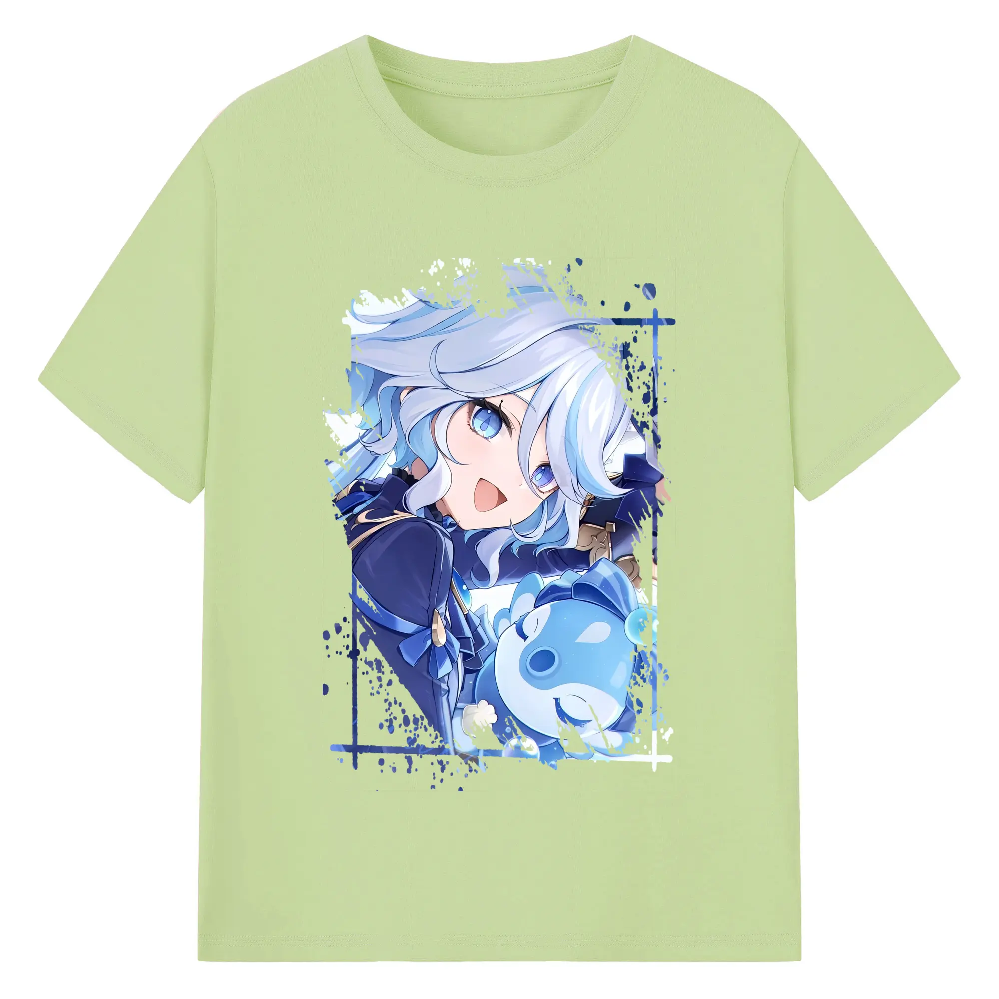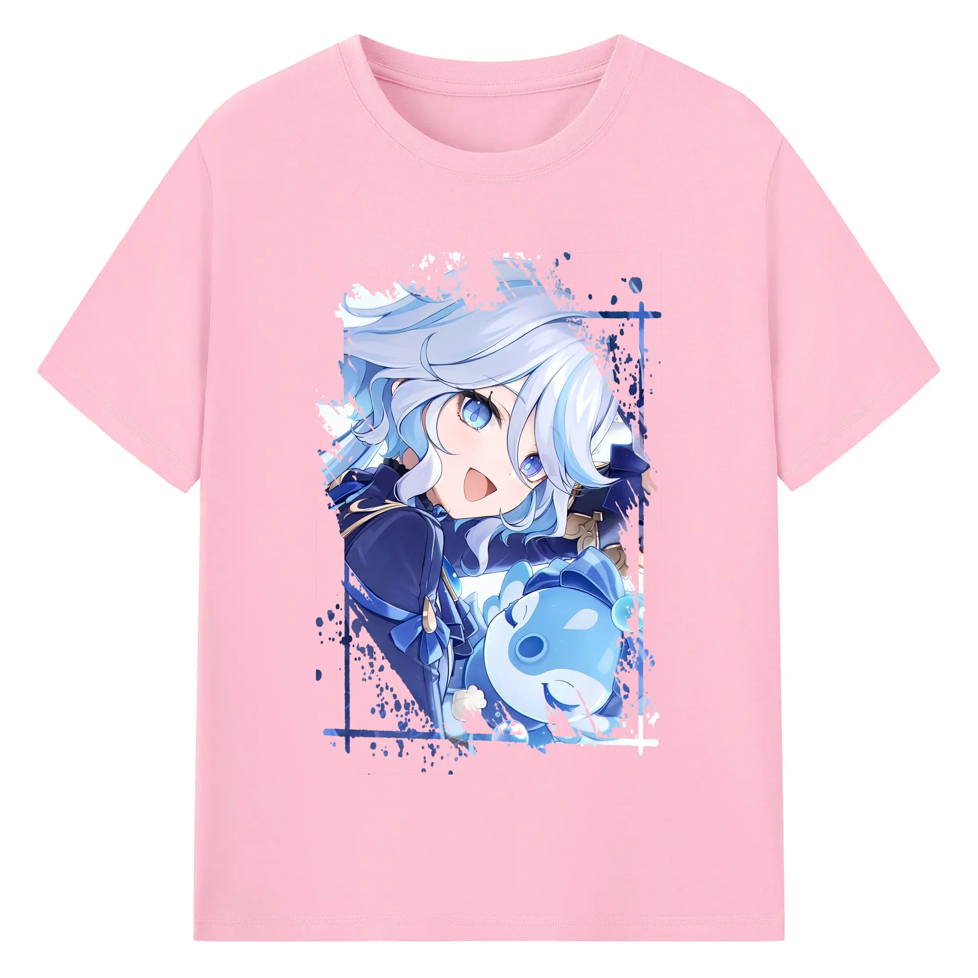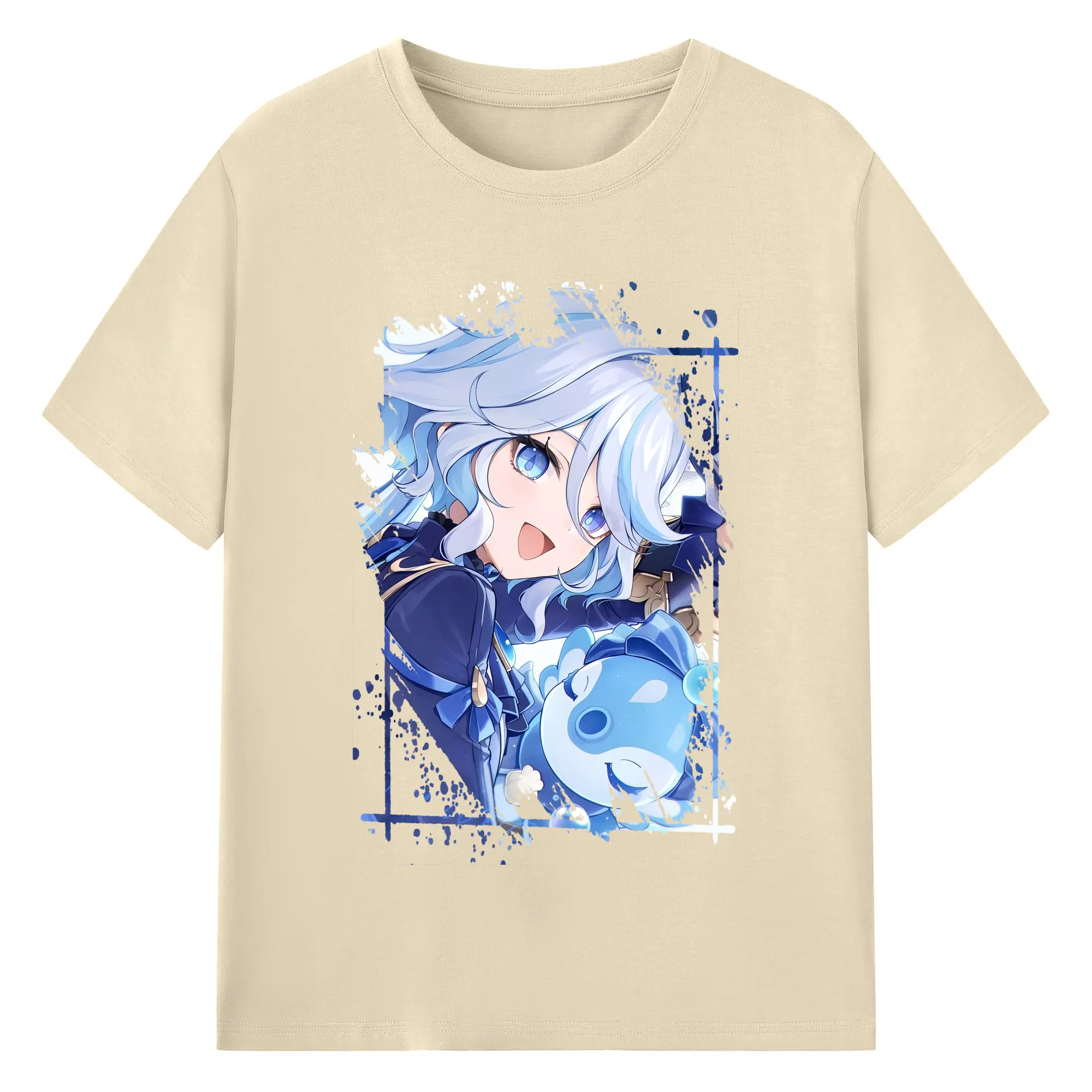 原 神 グッズ フリーナ - 綿100% 半袖Tシャツ ・ バックプリント ・ 快適 通気性 ・ 日常使い 散歩 スポーツ用