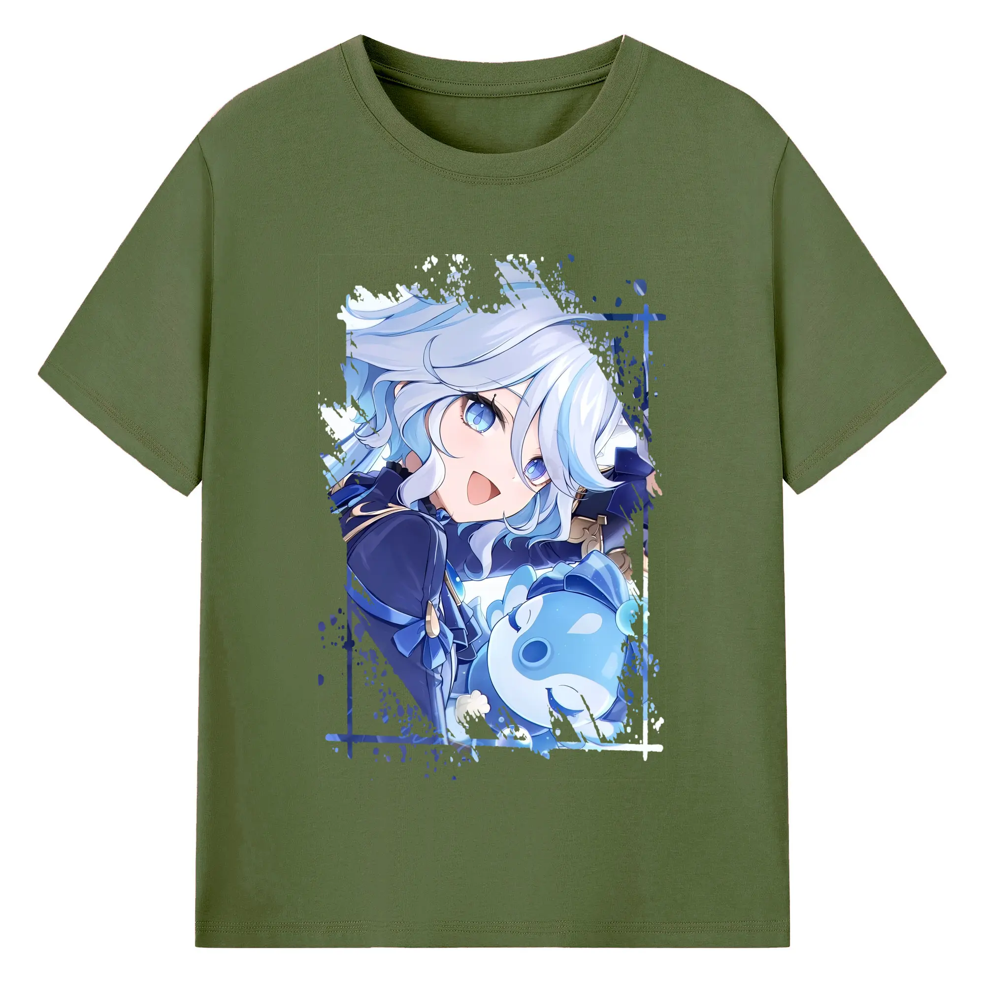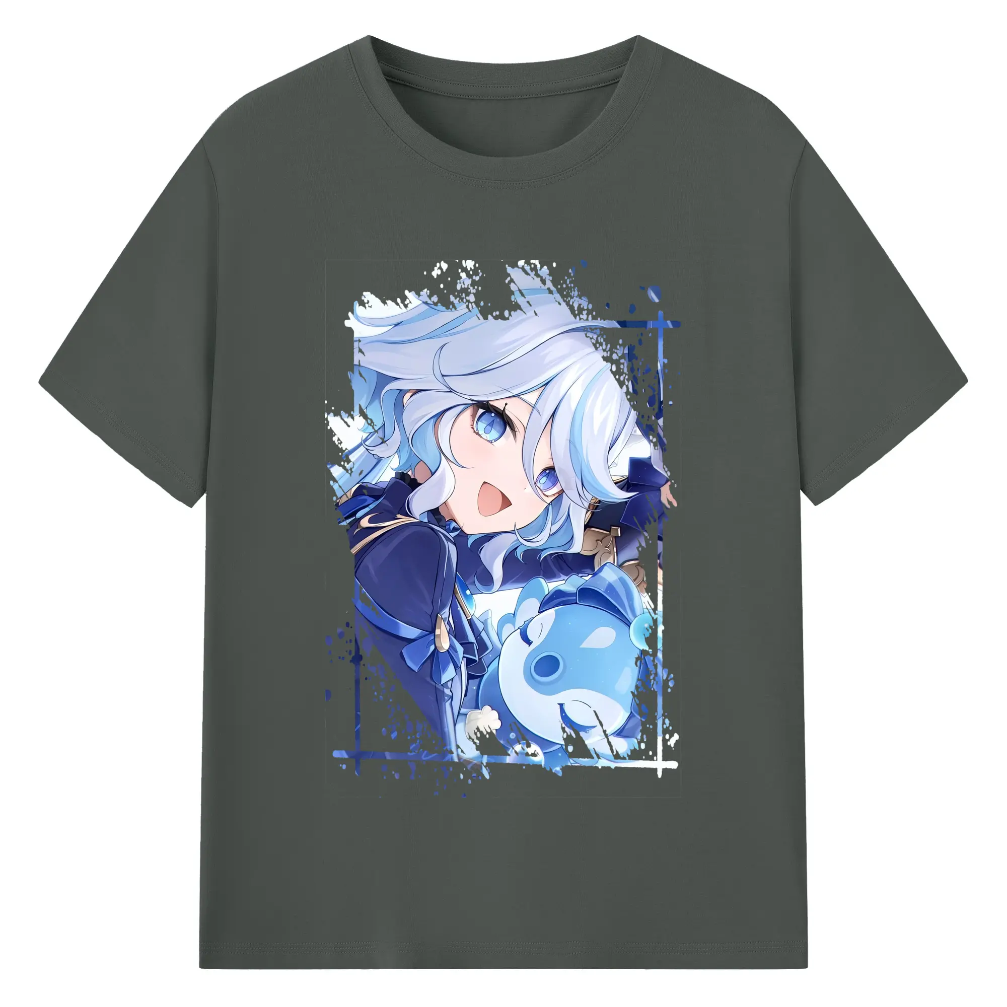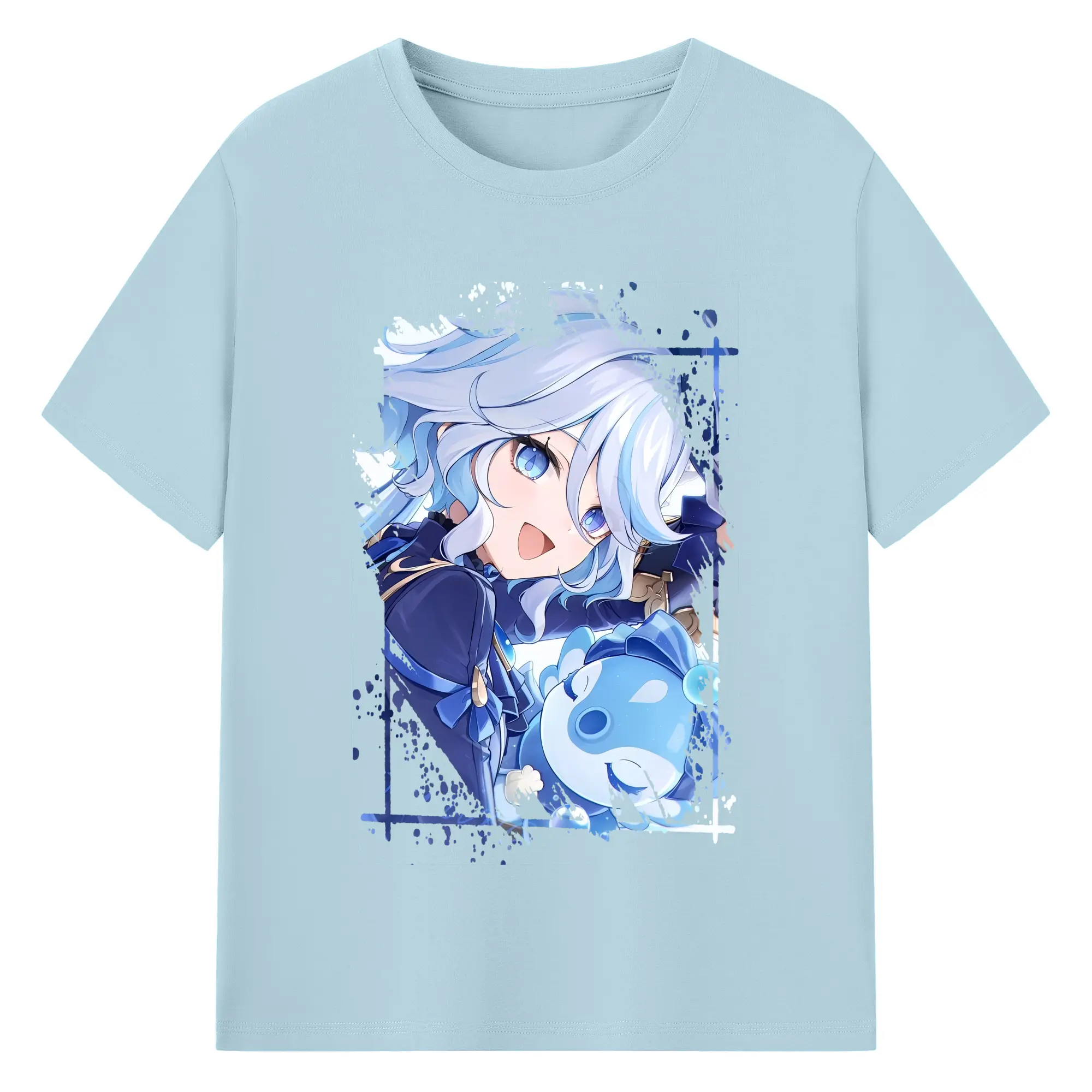 原 神 グッズ フリーナ - 綿100% 半袖Tシャツ ・ バックプリント ・ 快適 通気性 ・ 日常使い 散歩 スポーツ用