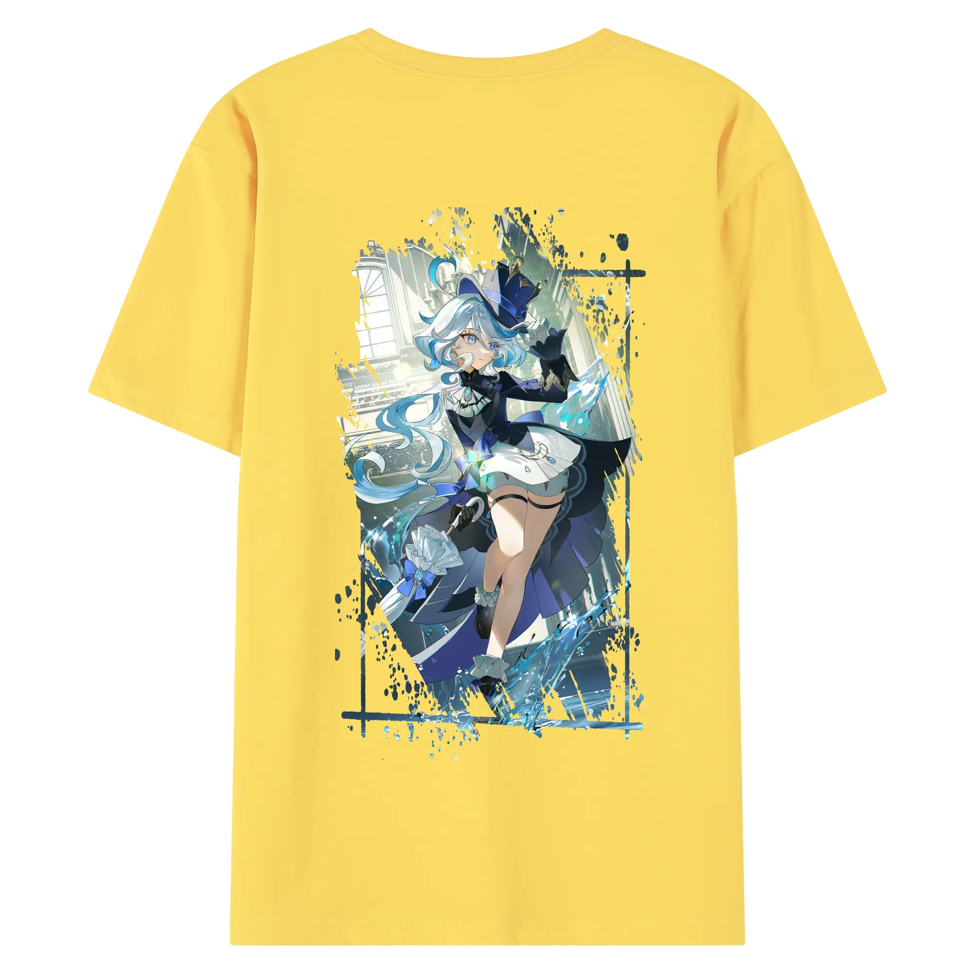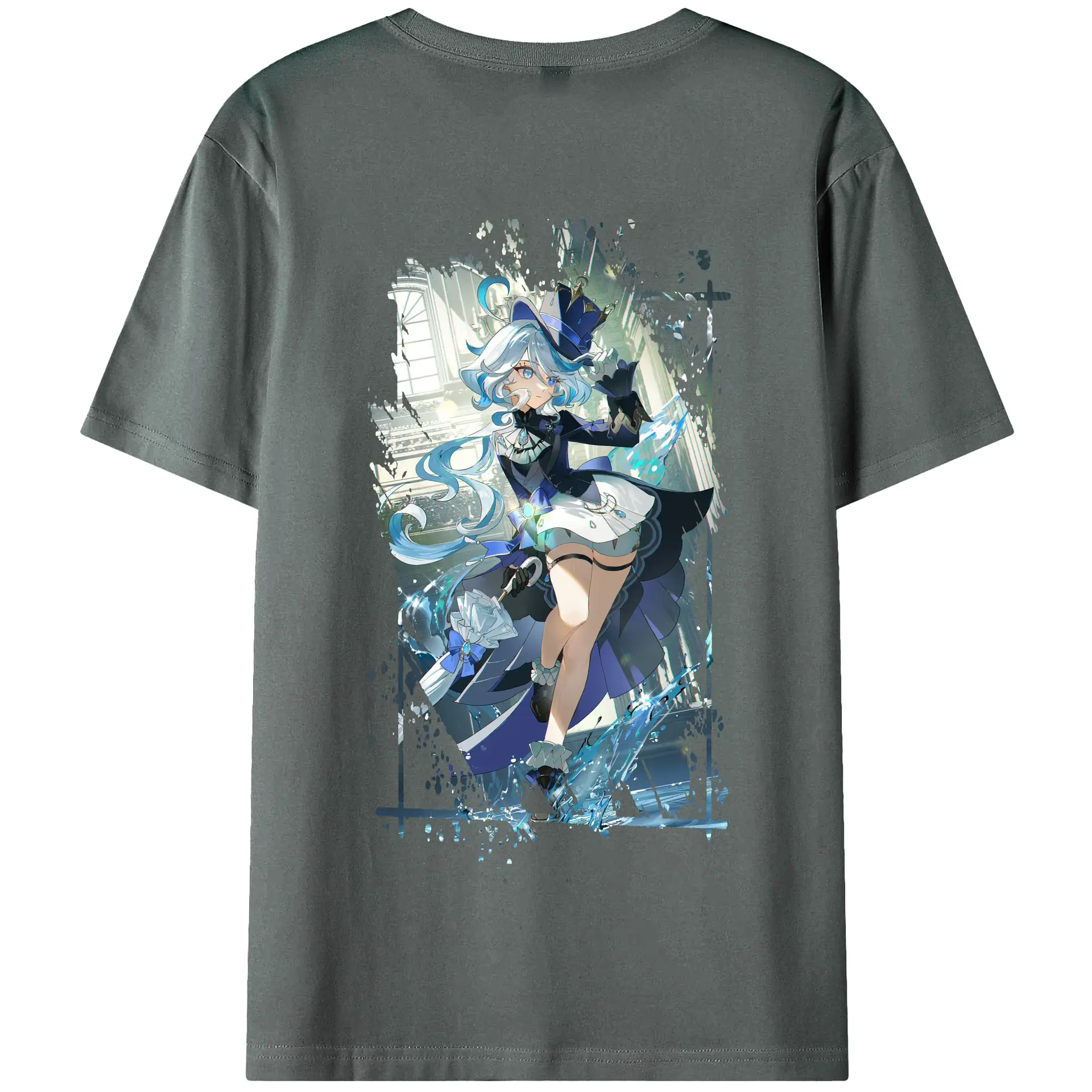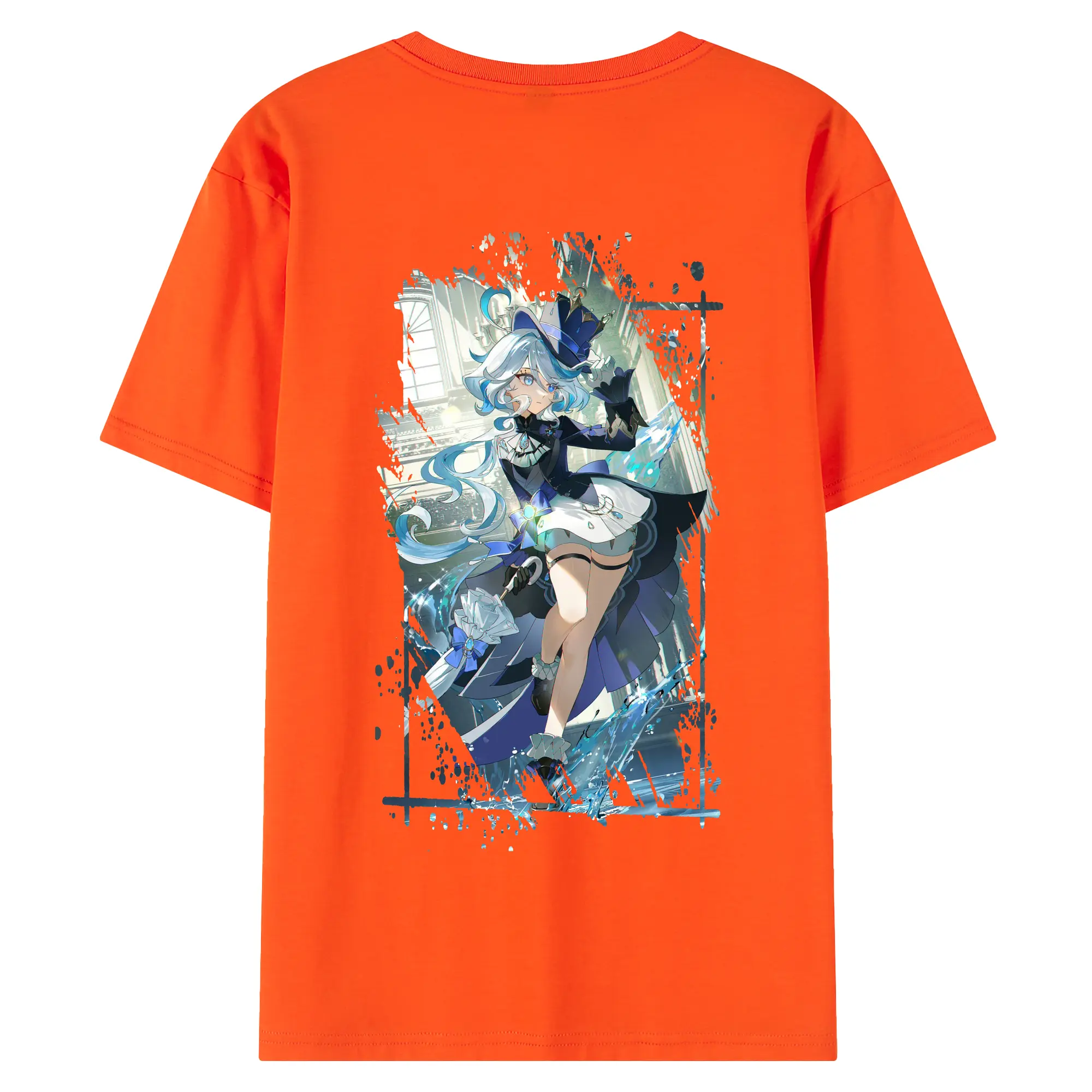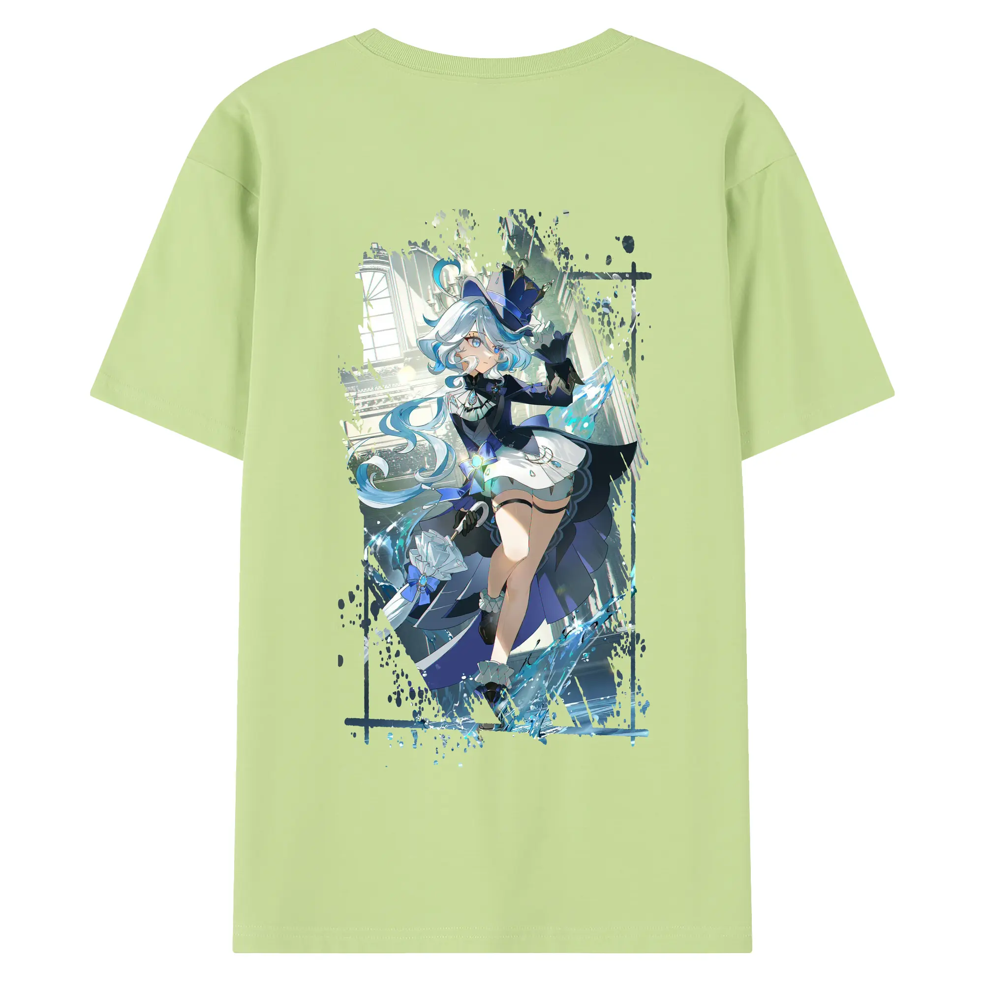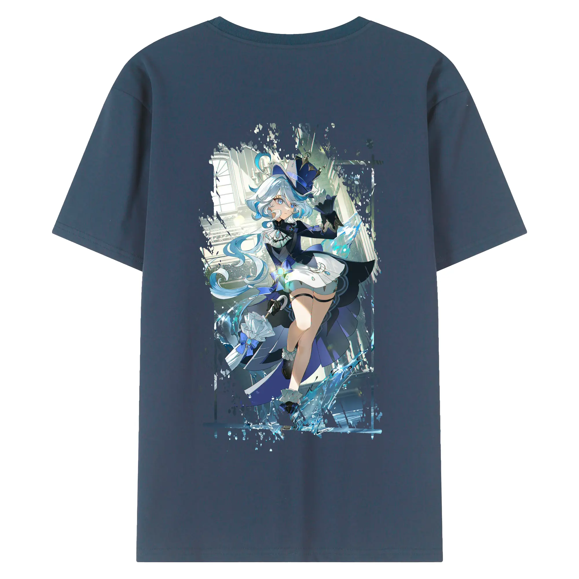 原 神 グッズ フリーナ - 綿100% ヴィンテージ風 半袖Tシャツ ・ 背面プリント ・ 柔らか肌触り ・ 通気性 快適 ・ スポーツ カジュアル 外出用