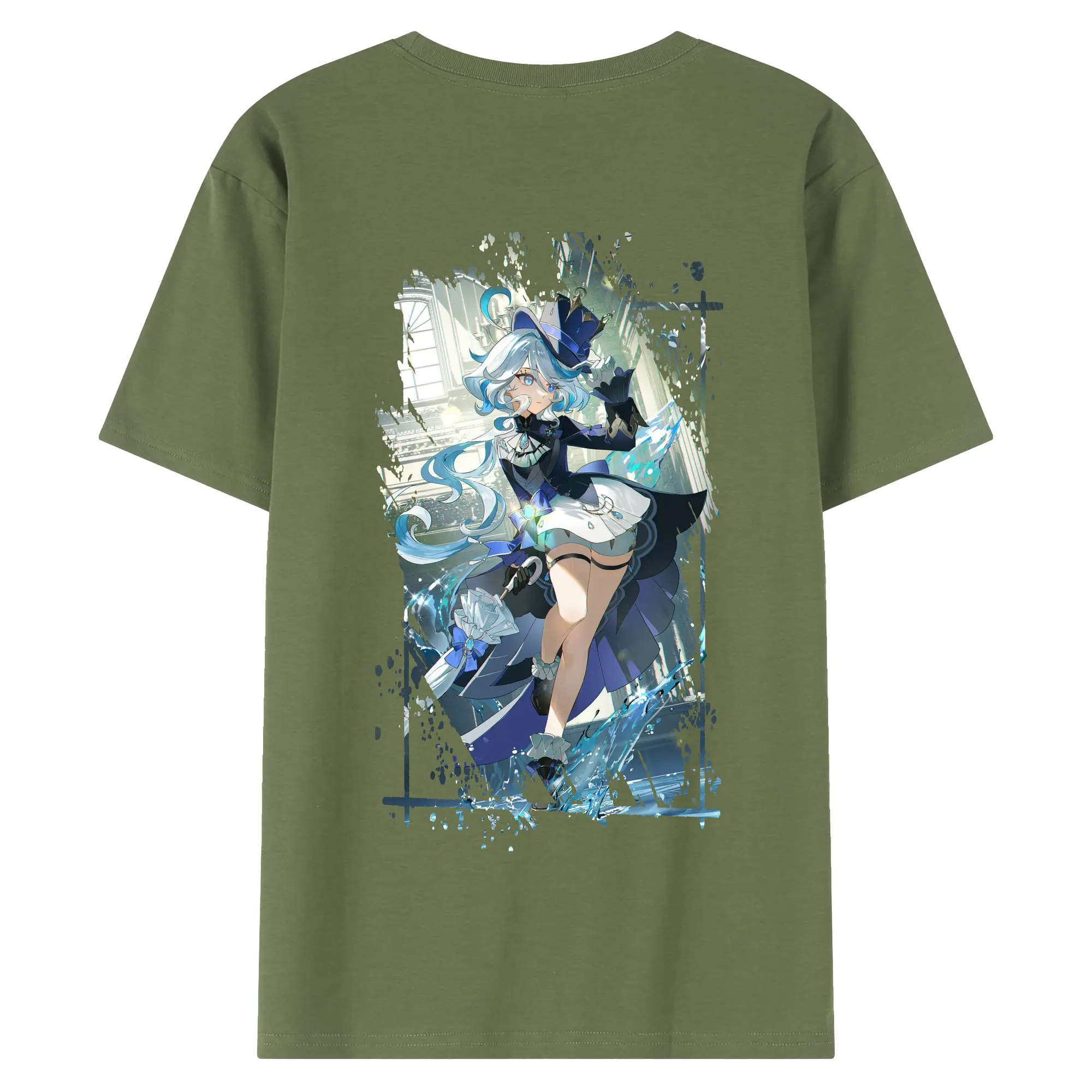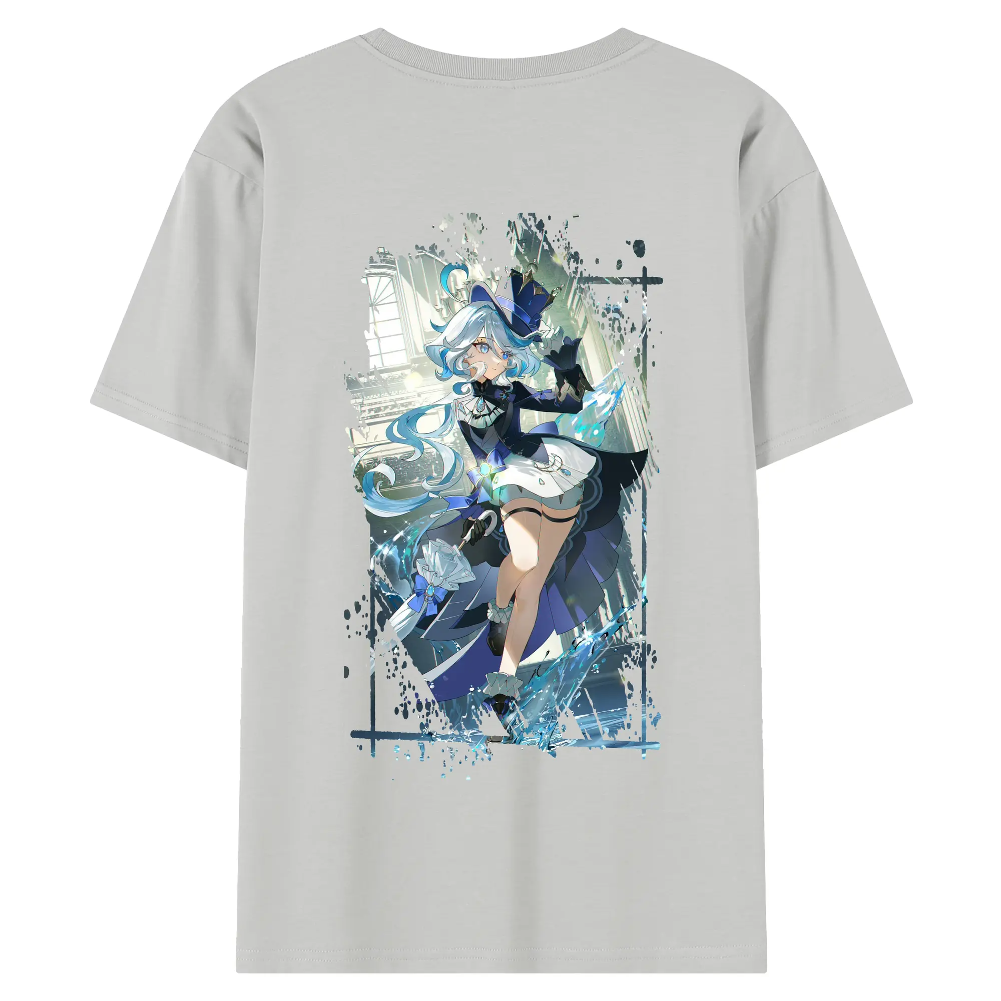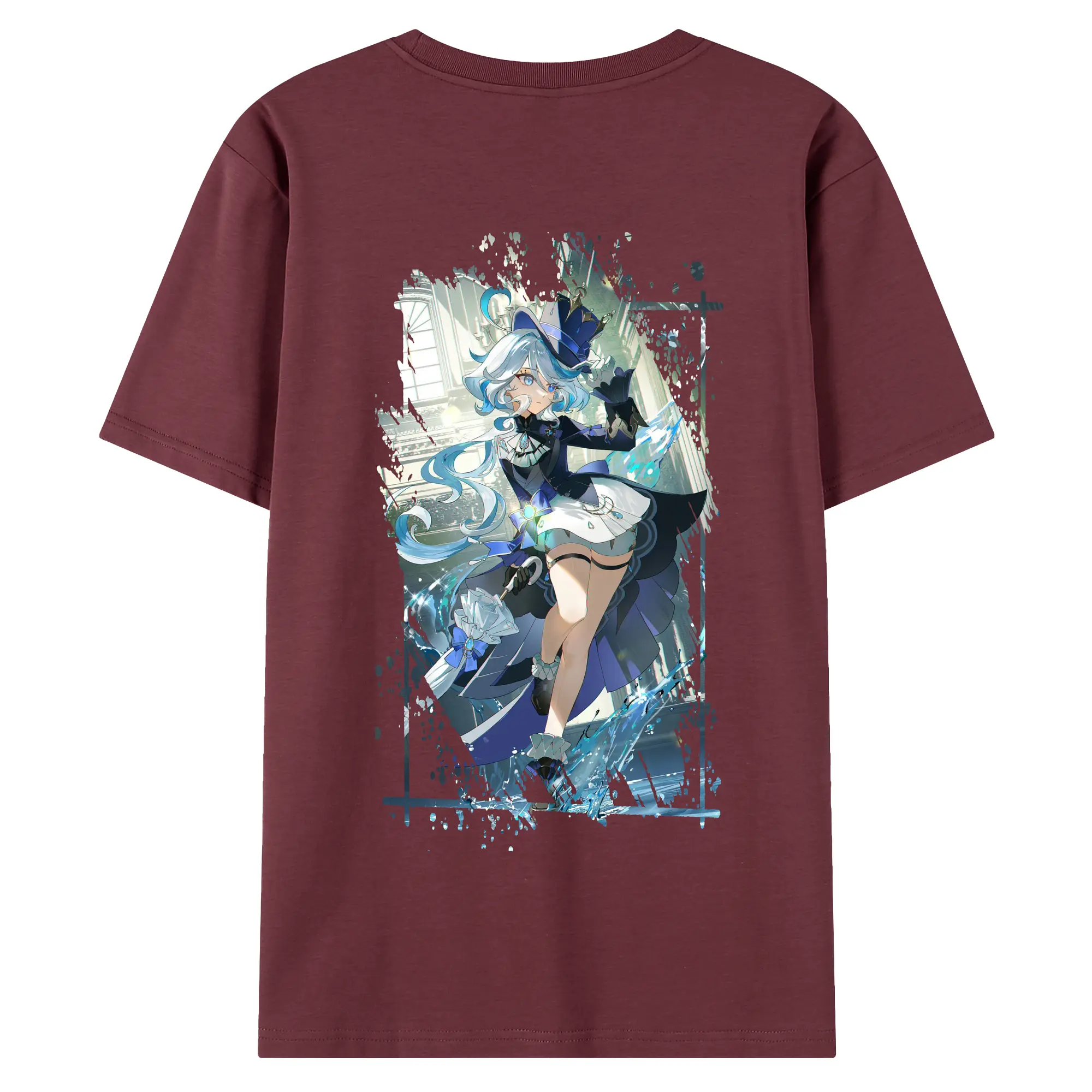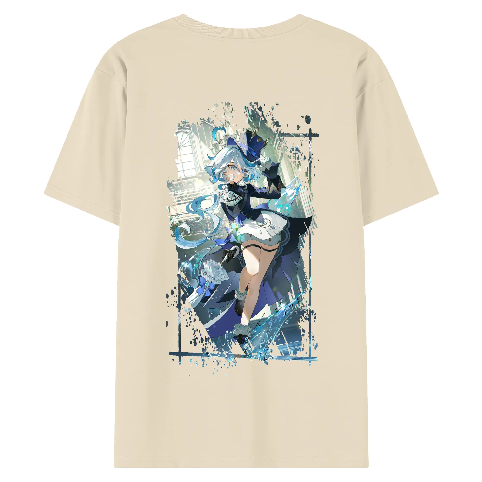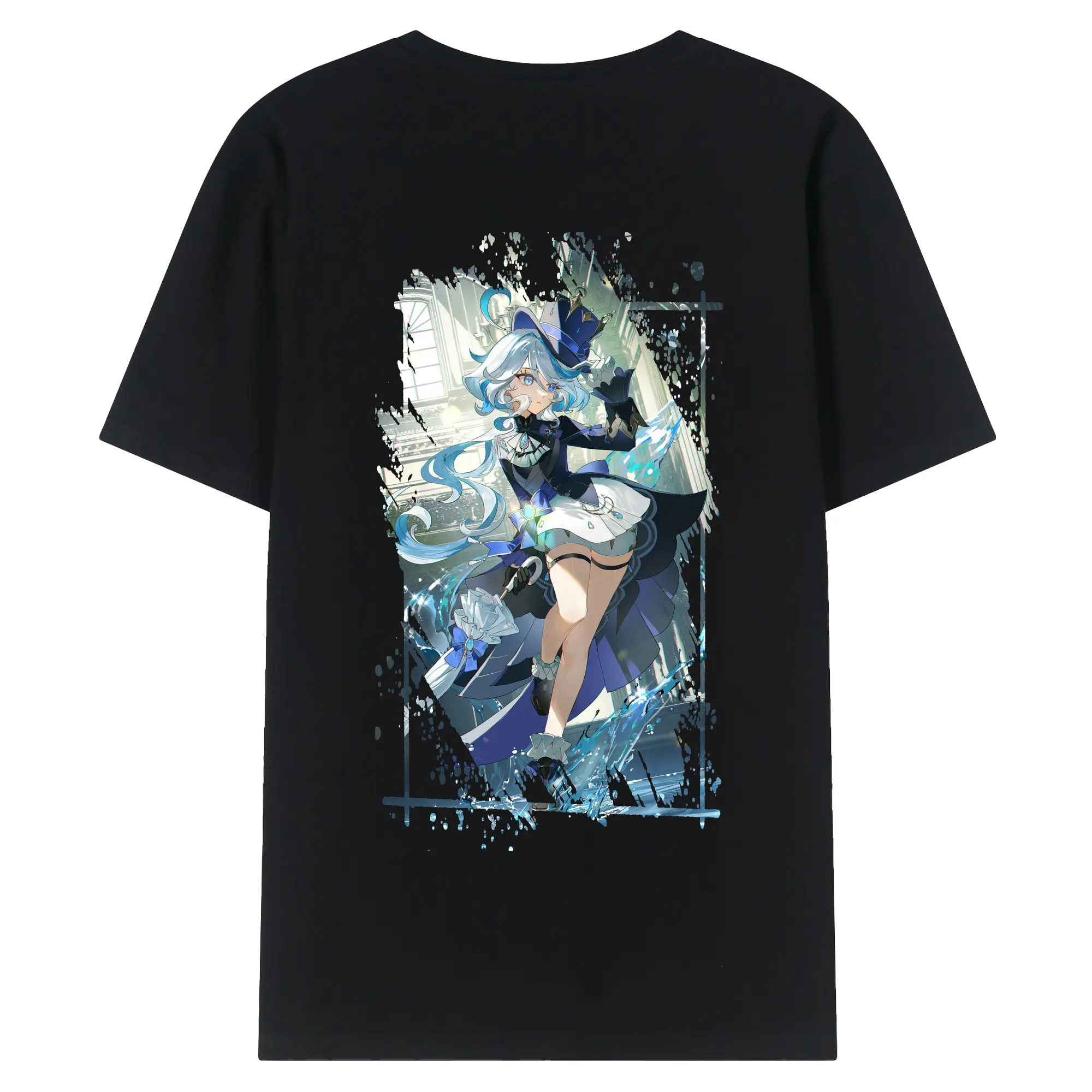 原 神 グッズ フリーナ - 綿100% ヴィンテージ風 半袖Tシャツ ・ 背面プリント ・ 柔らか肌触り ・ 通気性 快適 ・ スポーツ カジュアル 外出用