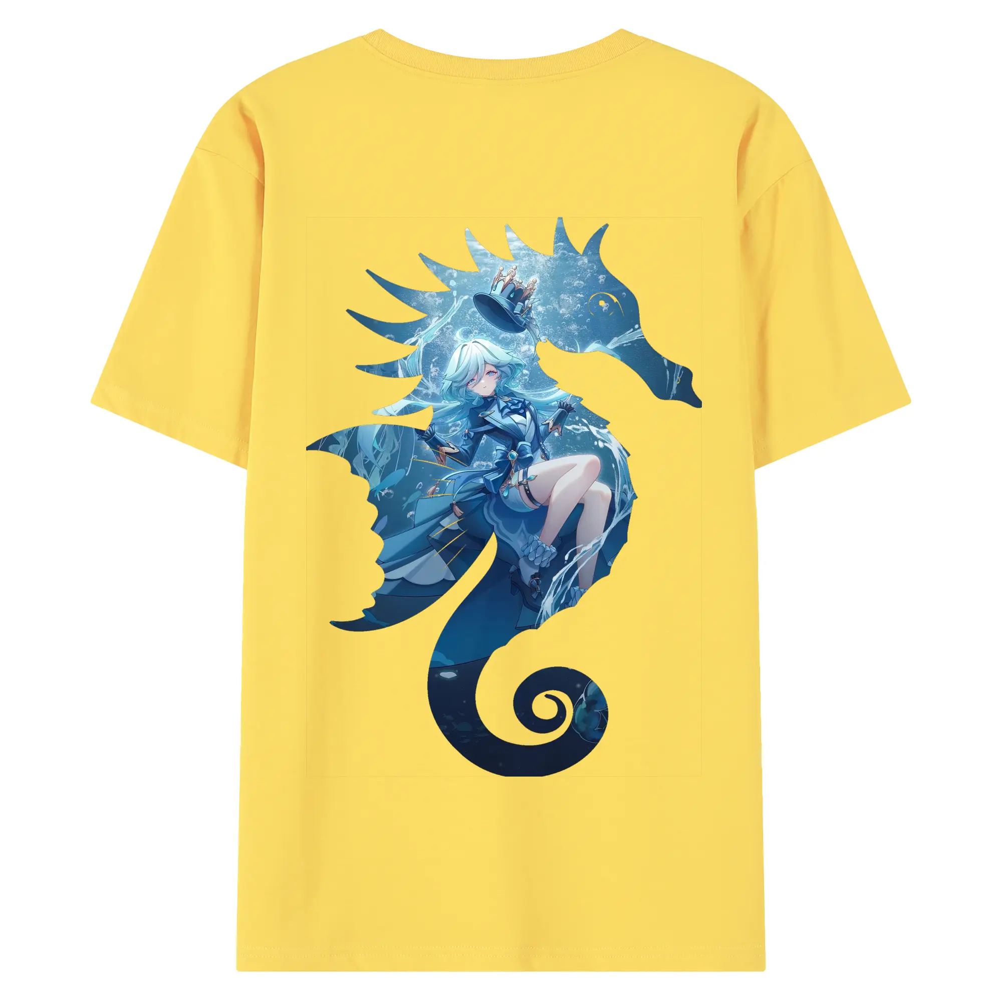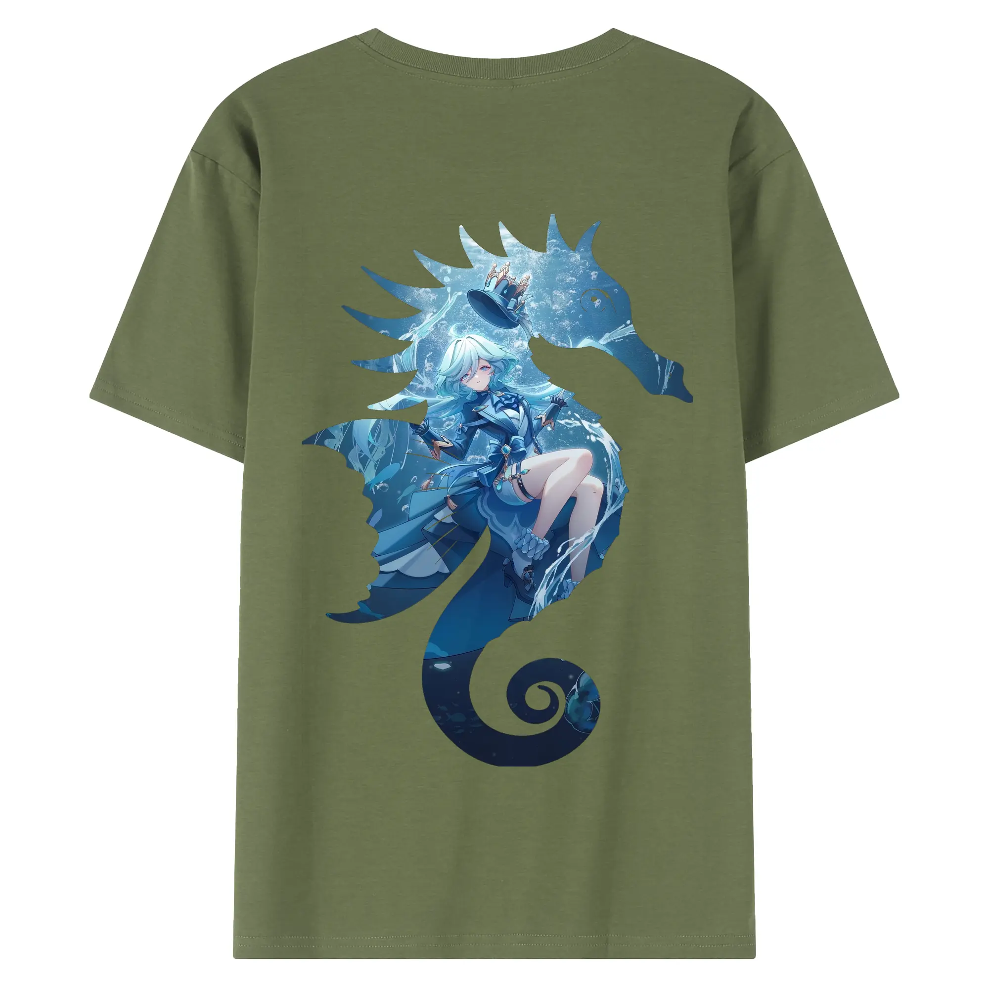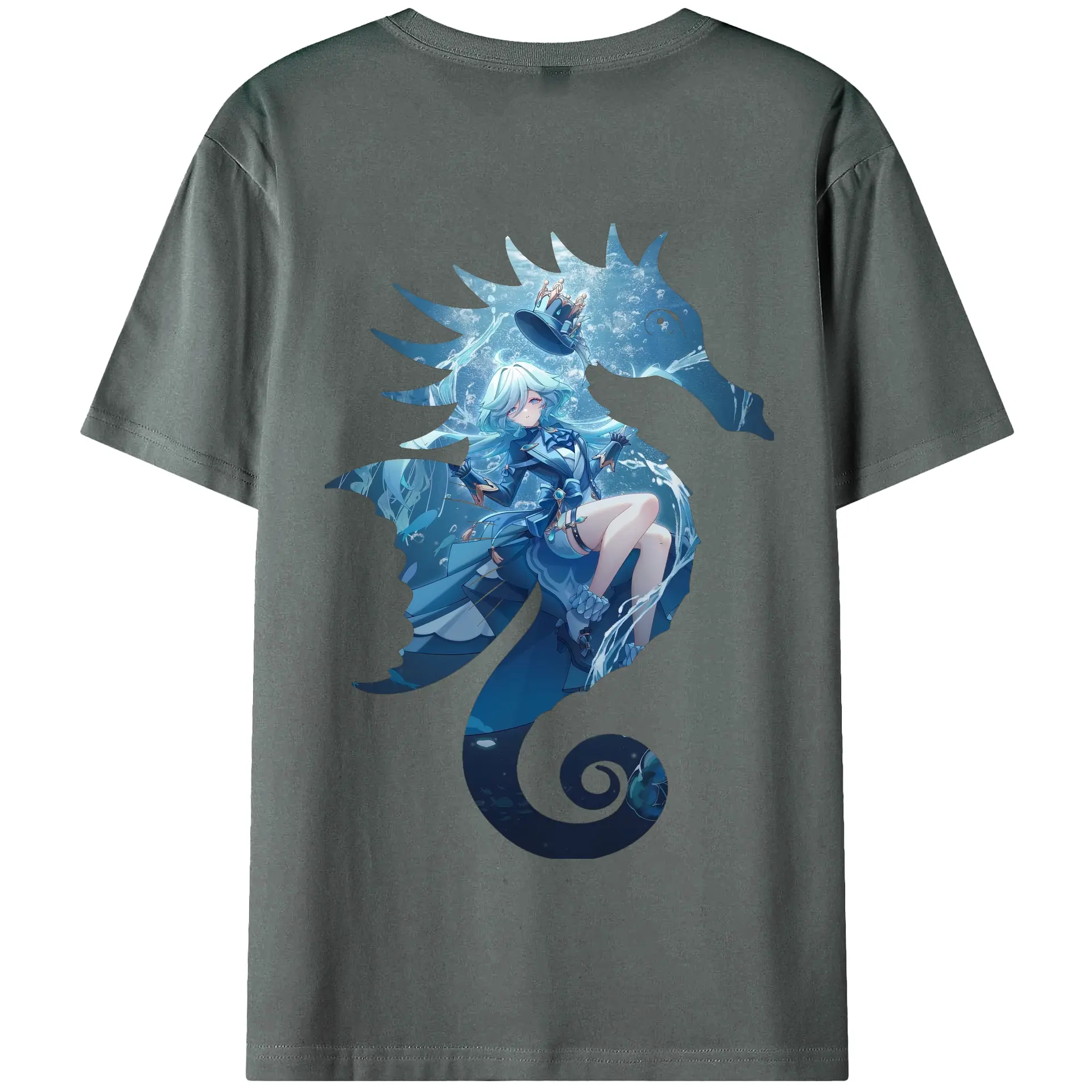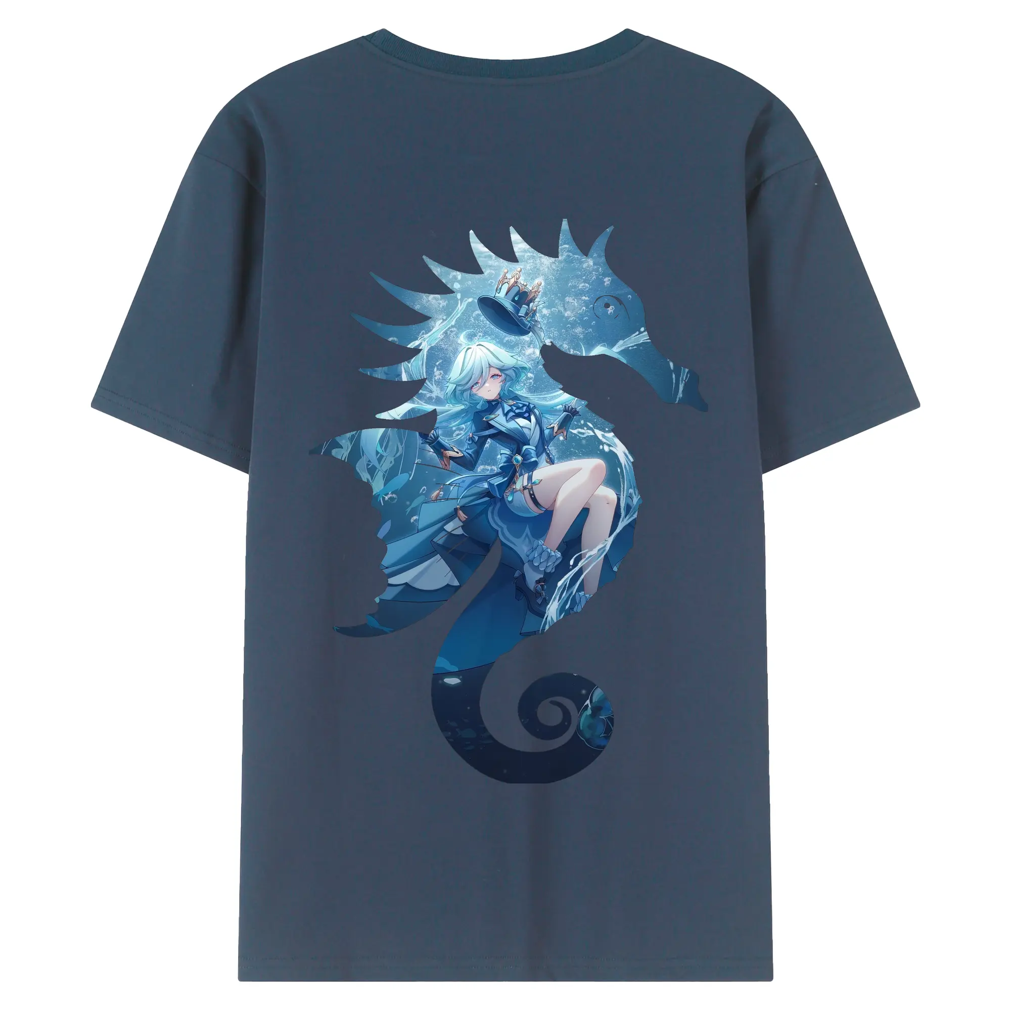 原 神 グッズ フリーナ - 綿100% ヴィンテージ風 半袖Tシャツ ・ 背面プリント ・ 柔らか肌触り ・ 通気性 快適 ・ スポーツ カジュアル 外出用