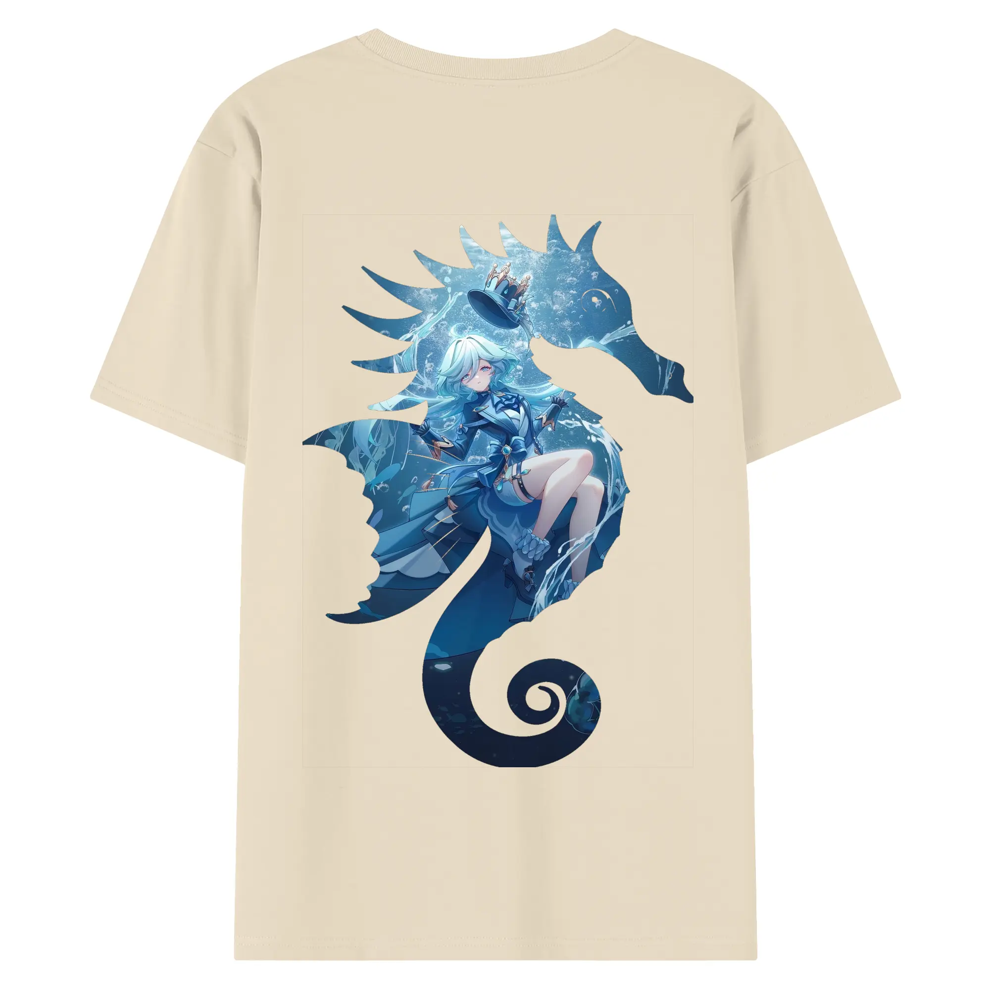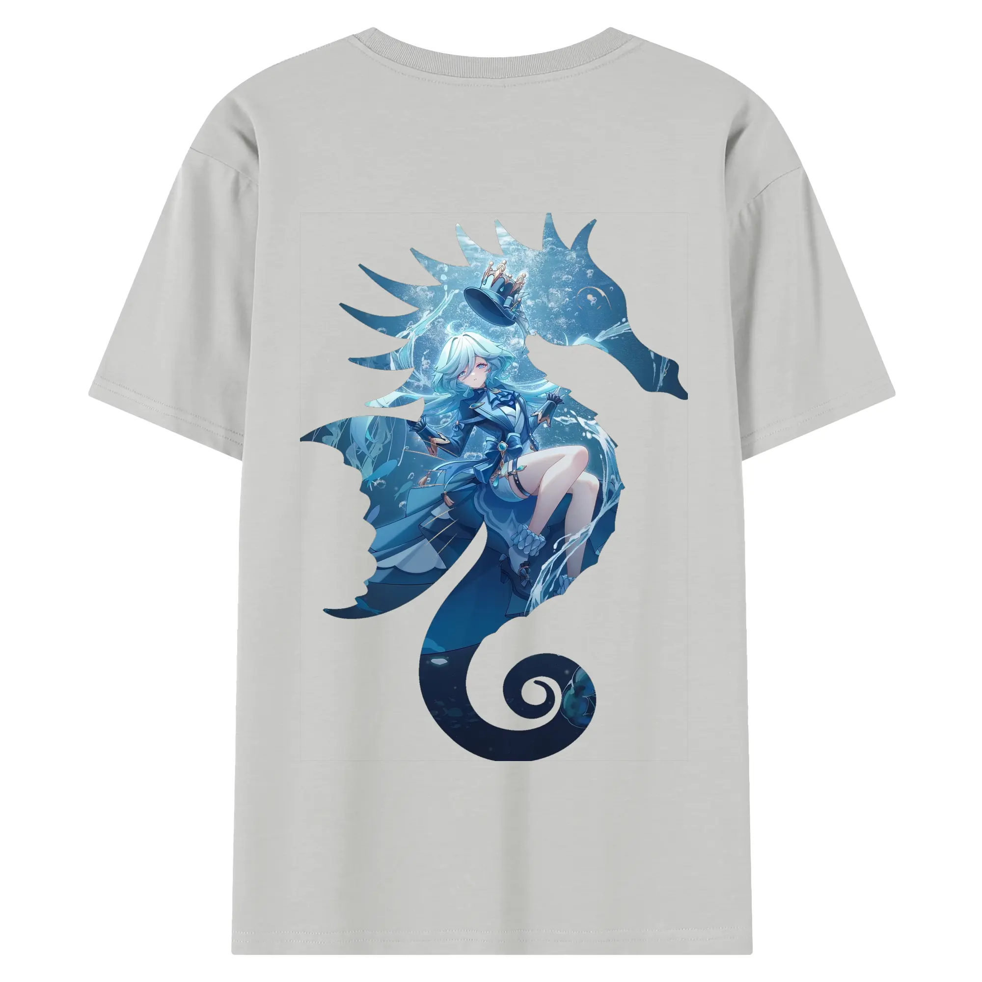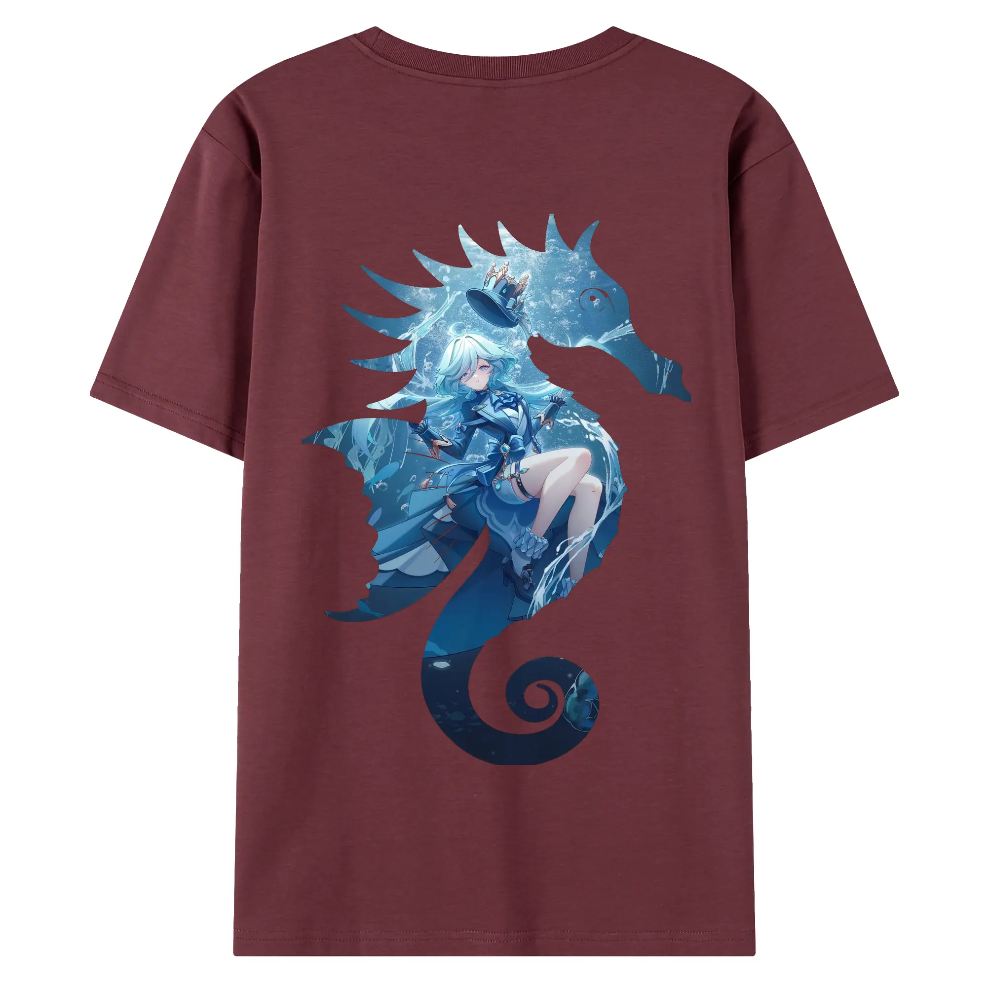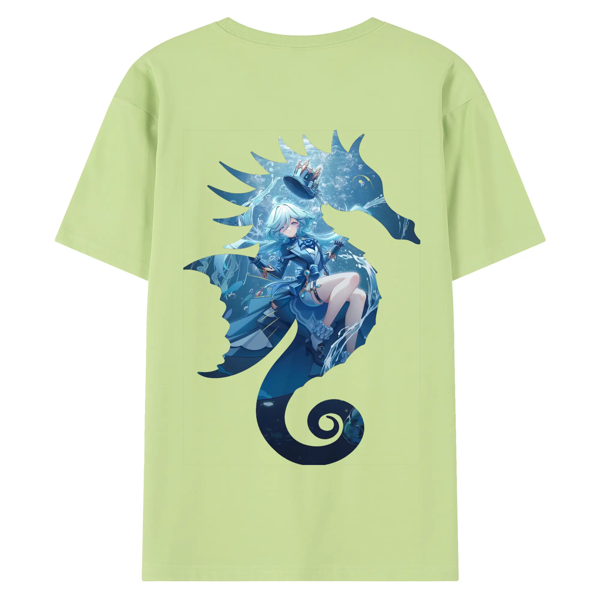 原 神 グッズ フリーナ - 綿100% ヴィンテージ風 半袖Tシャツ ・ 背面プリント ・ 柔らか肌触り ・ 通気性 快適 ・ スポーツ カジュアル 外出用