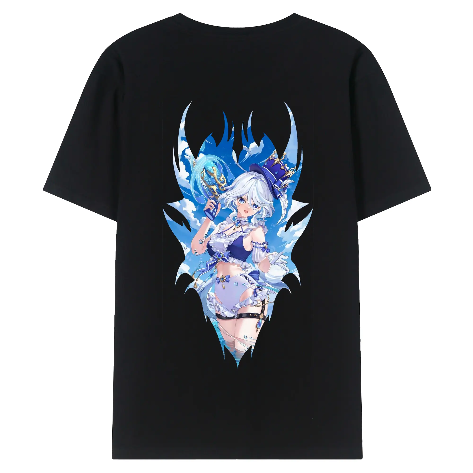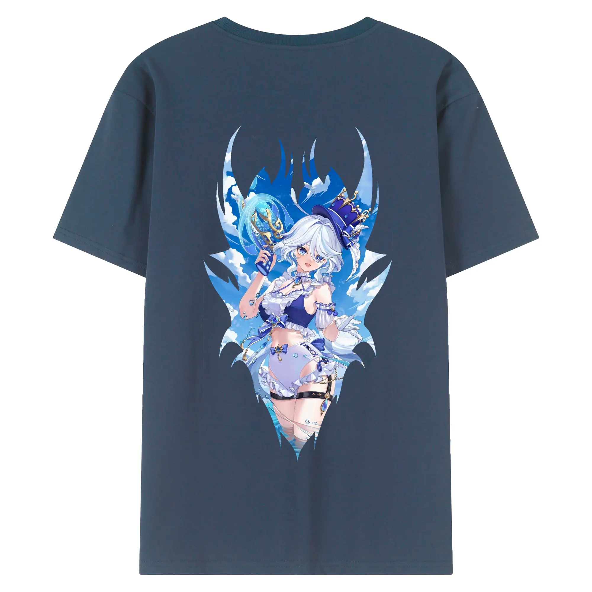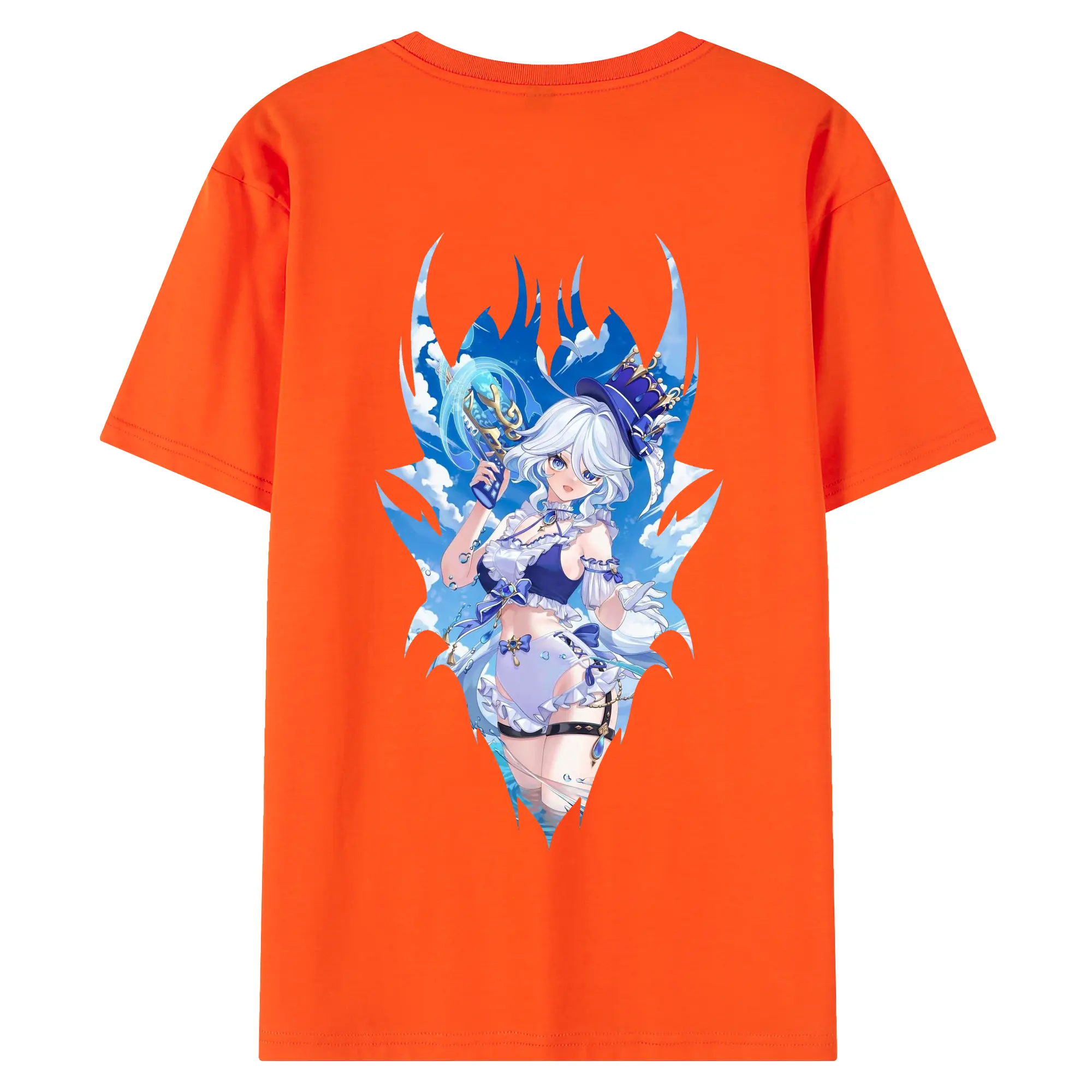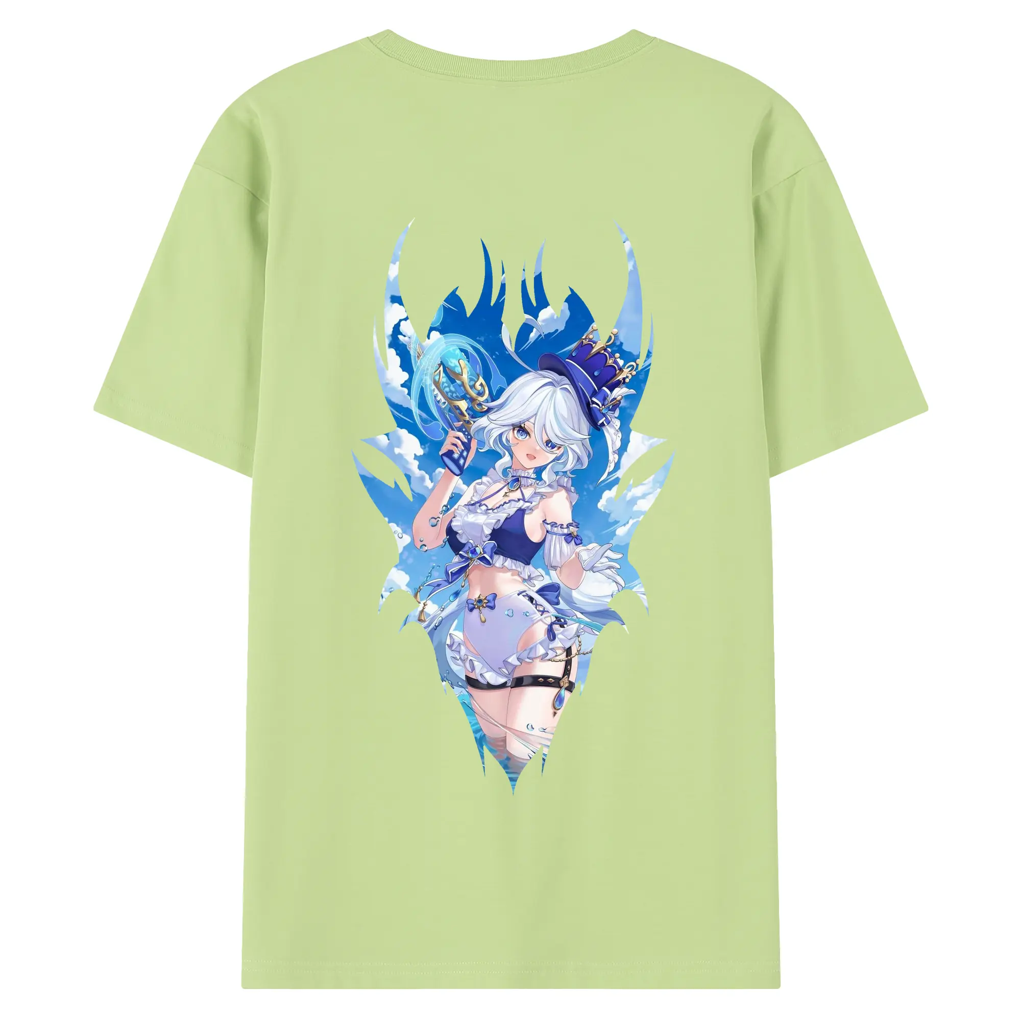 原 神 グッズ フリーナ - 綿100% ヴィンテージ風 半袖Tシャツ ・ 背面プリント ・ 柔らか肌触り ・ 通気性 快適 ・ スポーツ カジュアル 外出用