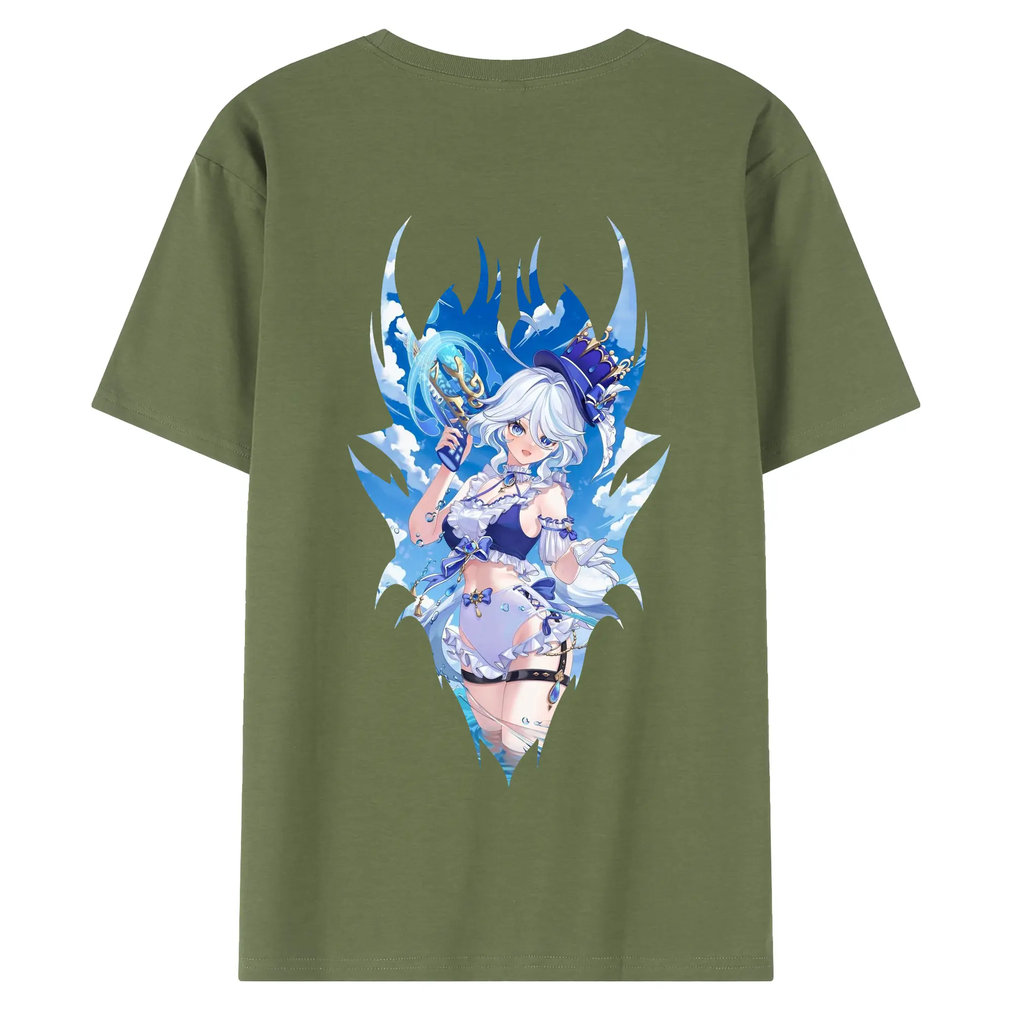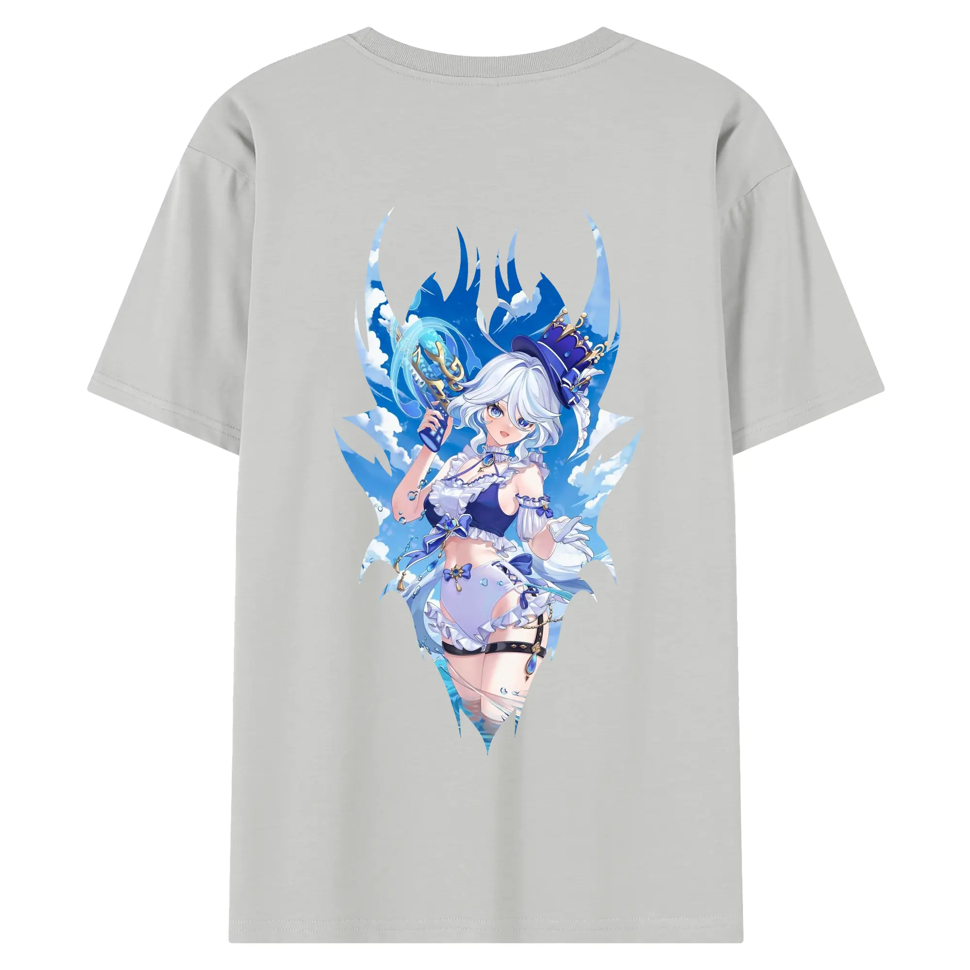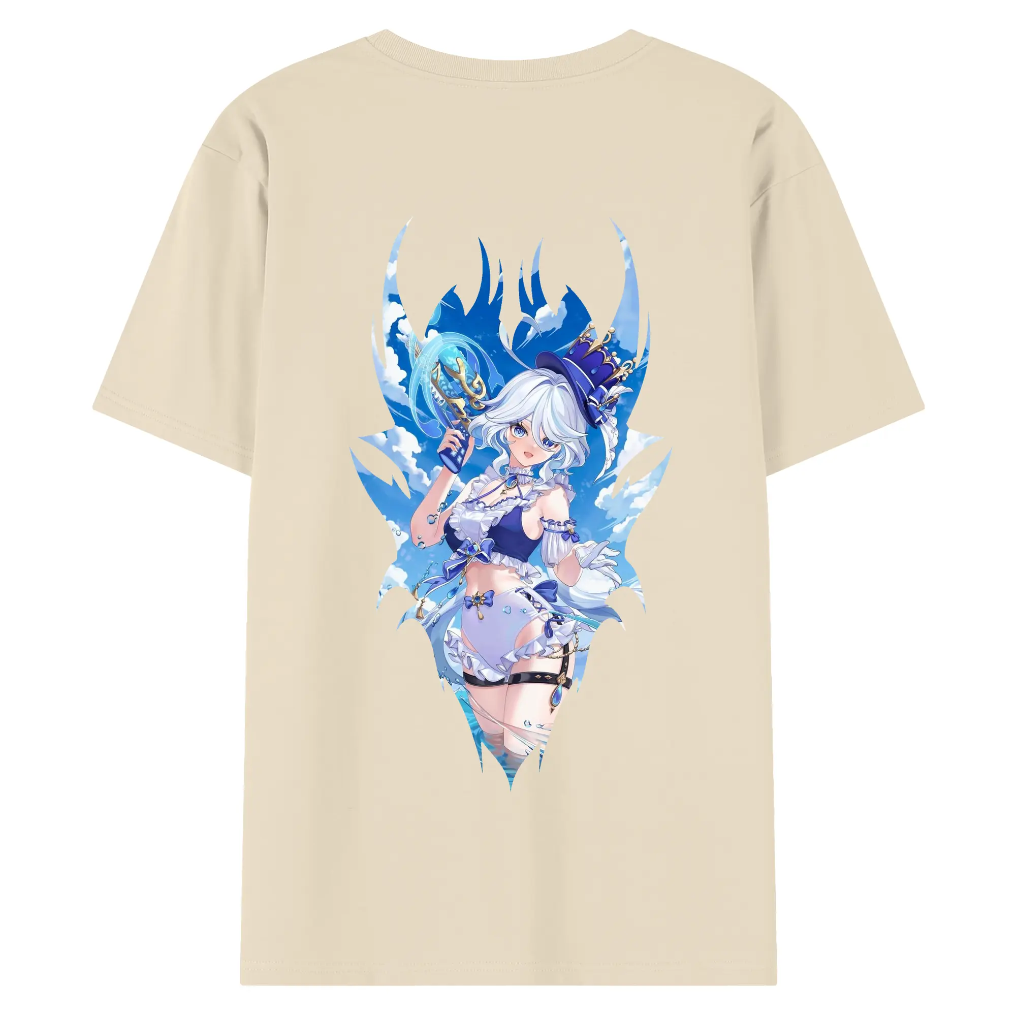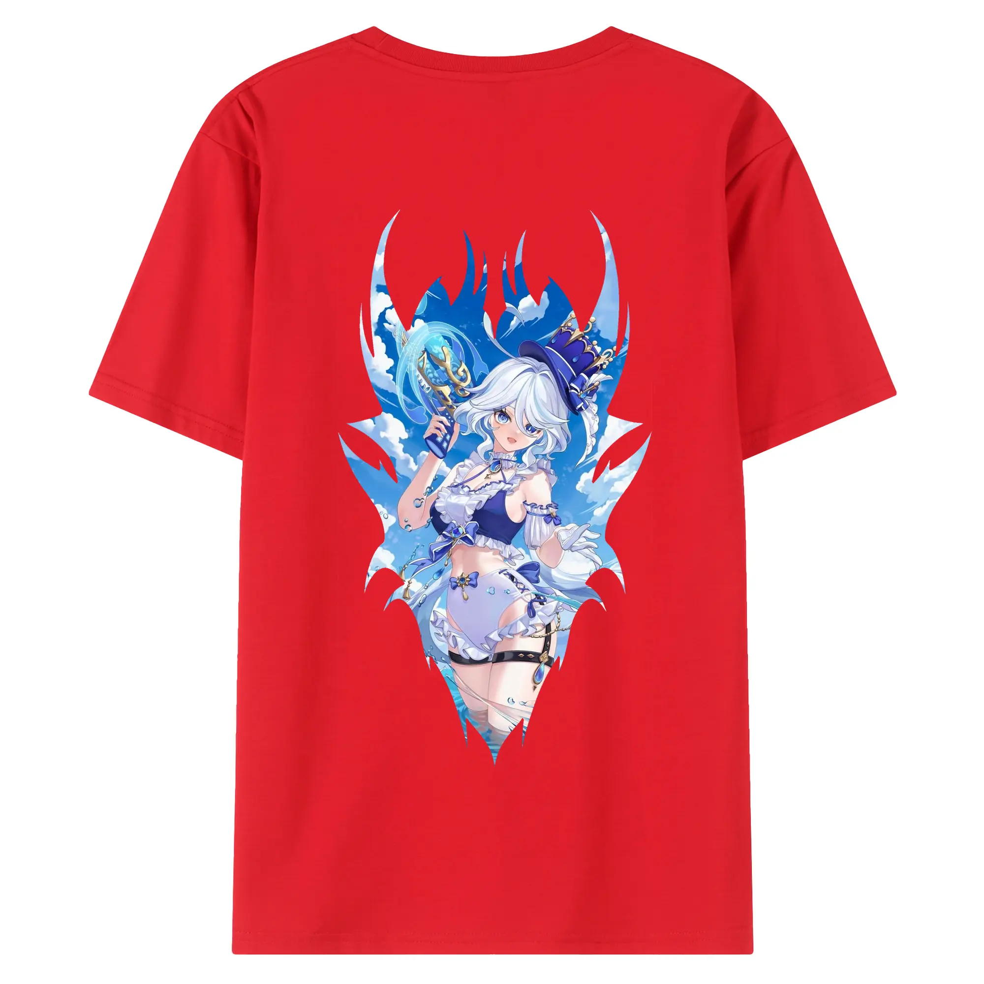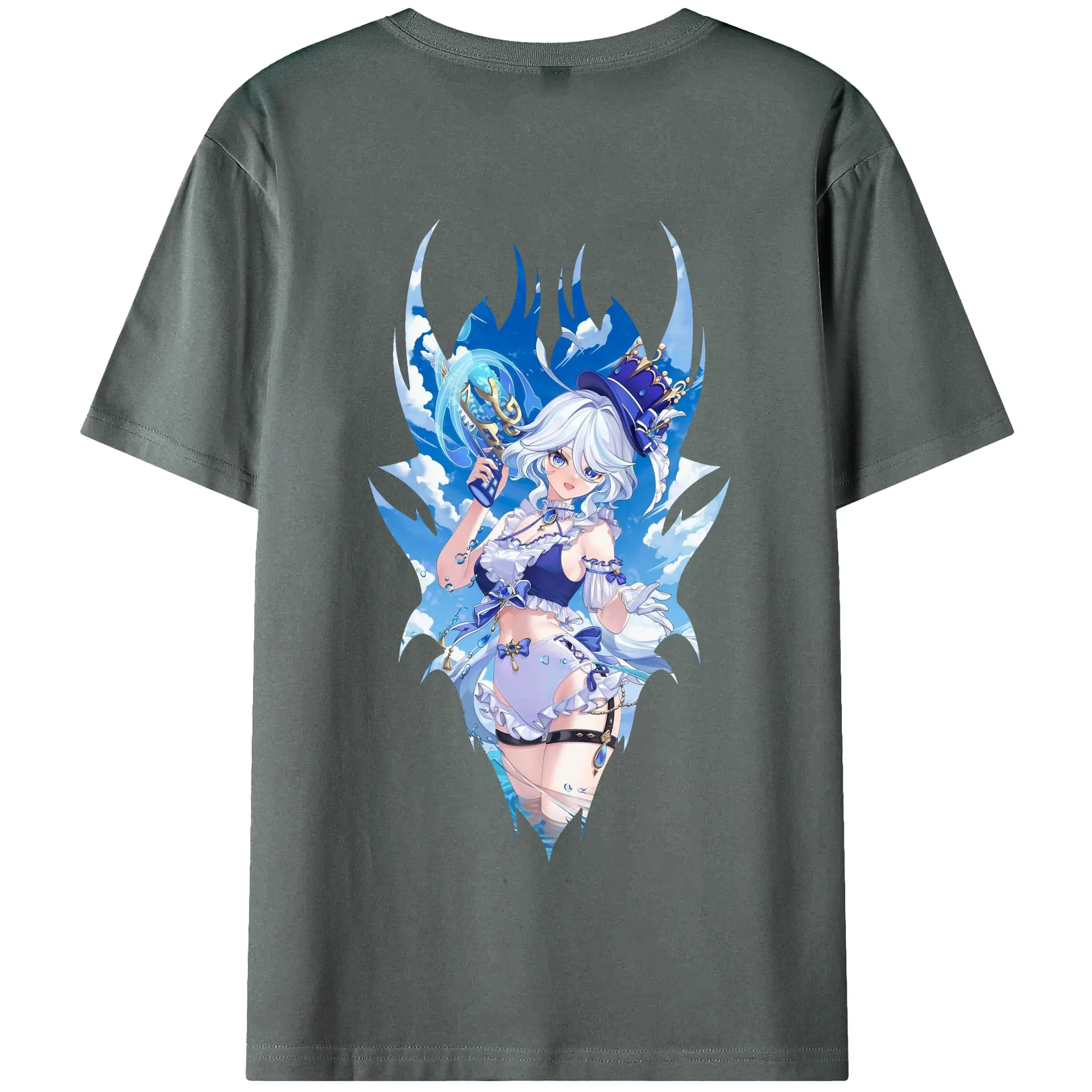 原 神 グッズ フリーナ - 綿100% ヴィンテージ風 半袖Tシャツ ・ 背面プリント ・ 柔らか肌触り ・ 通気性 快適 ・ スポーツ カジュアル 外出用