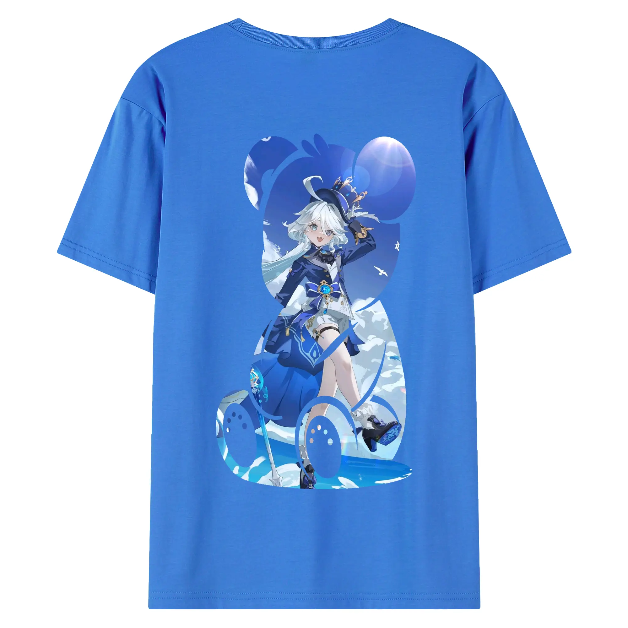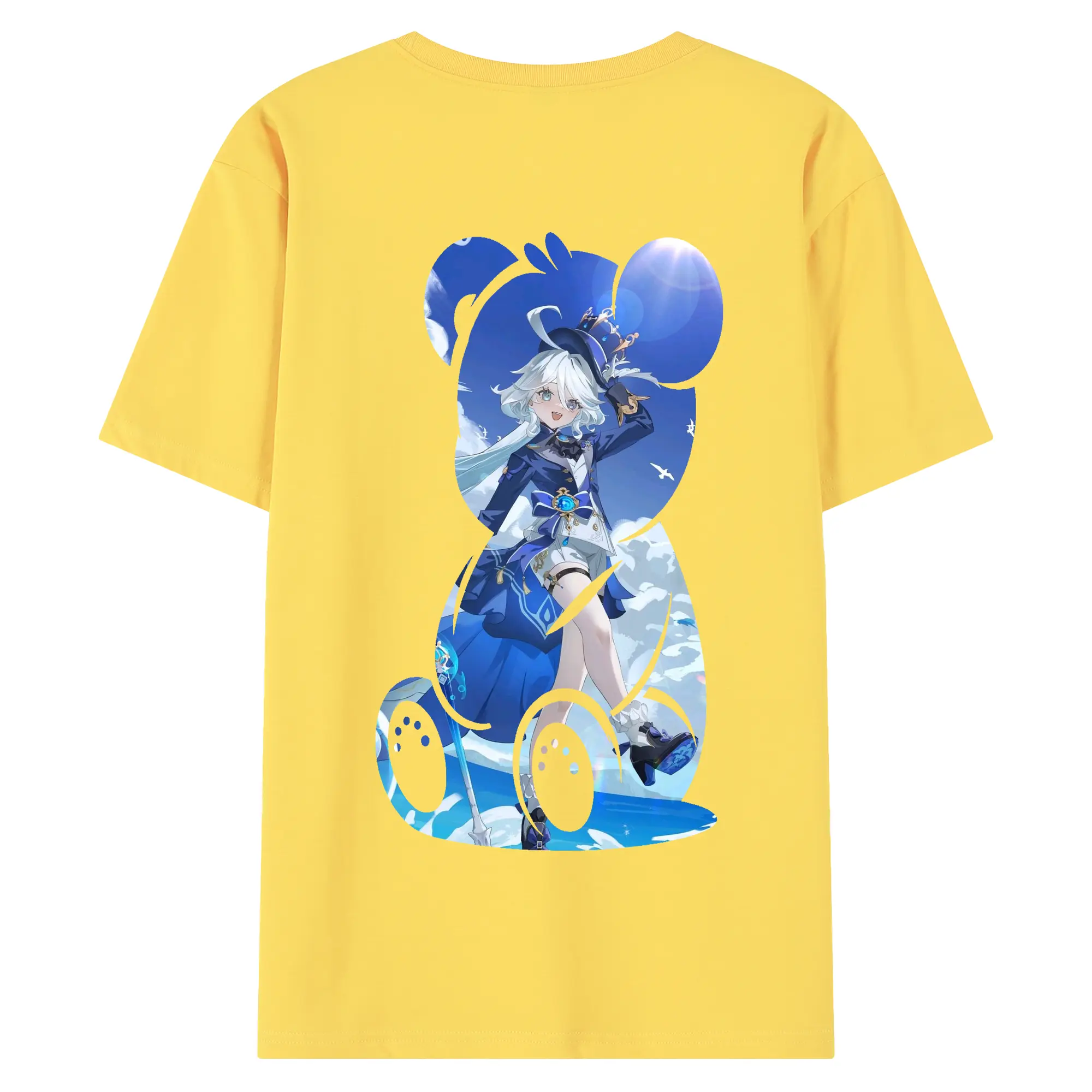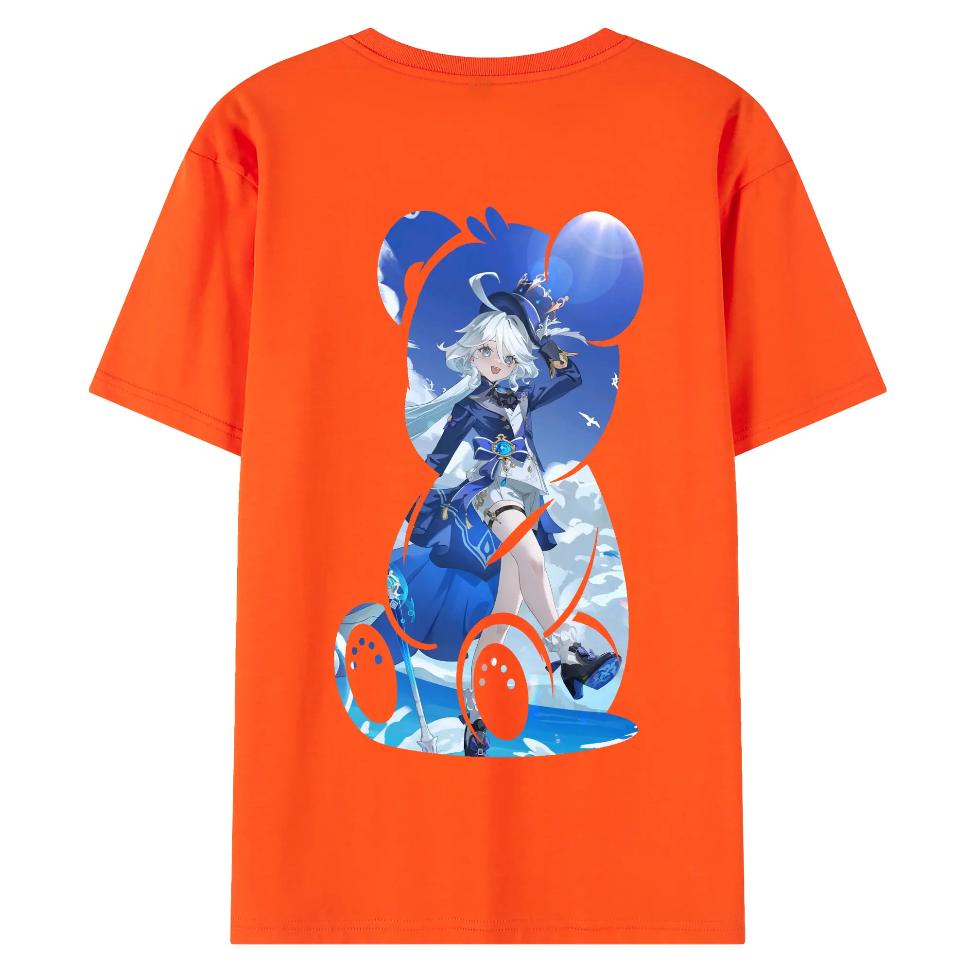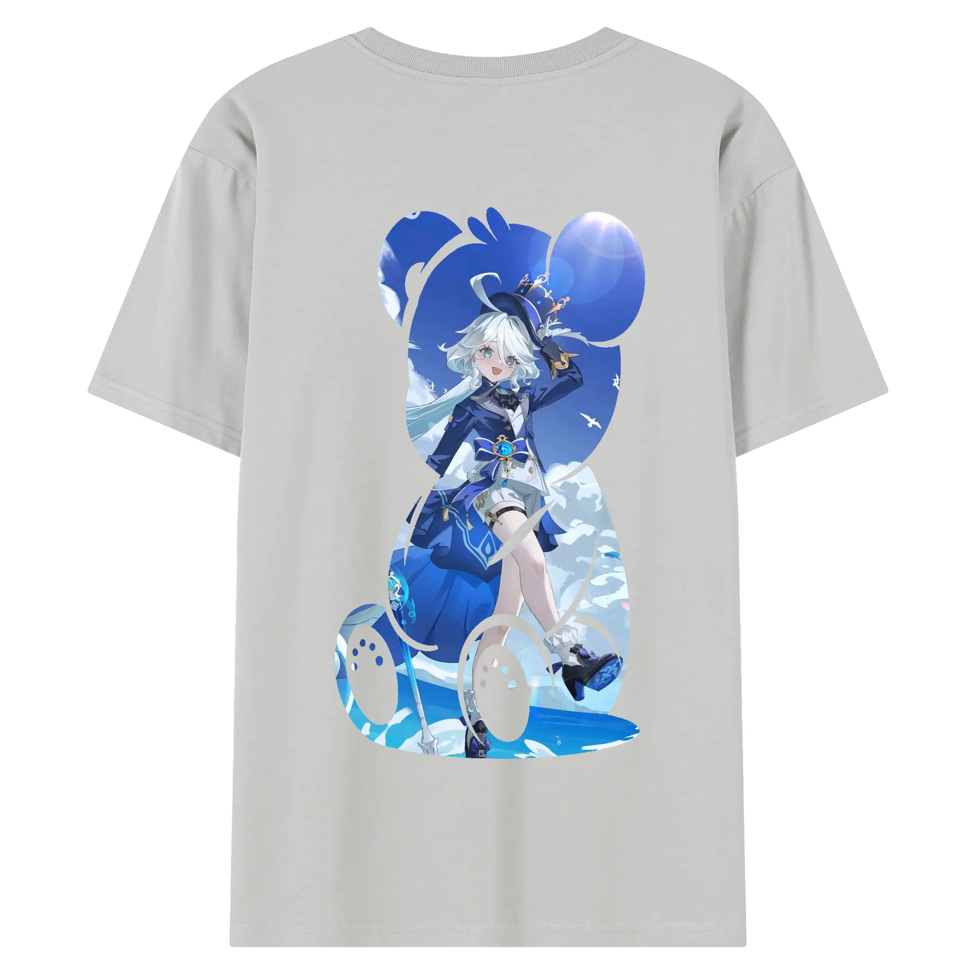 原 神 グッズ フリーナ - 綿100% ヴィンテージ風 半袖Tシャツ ・ 背面プリント ・ 柔らか肌触り ・ 通気性 快適 ・ スポーツ カジュアル 外出用