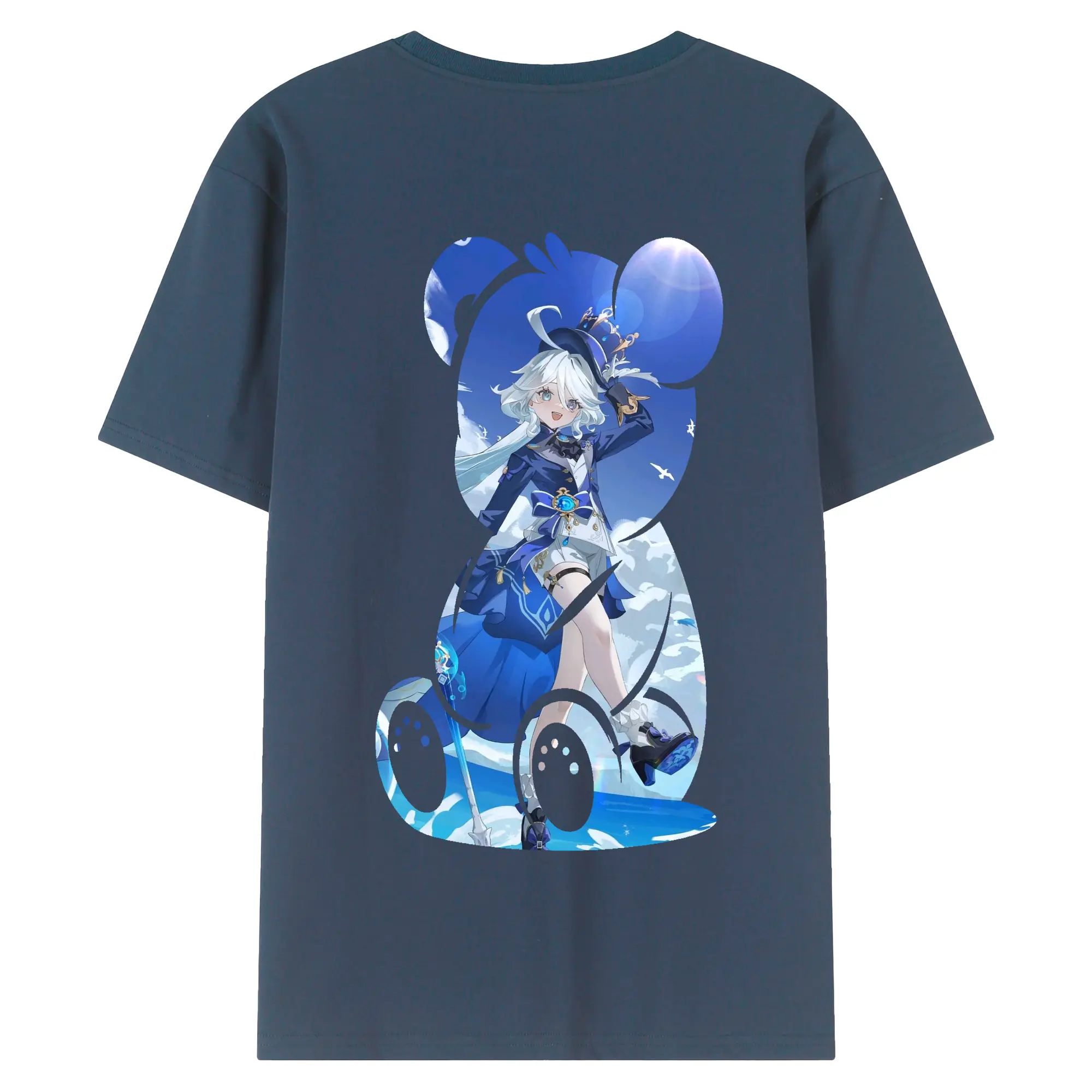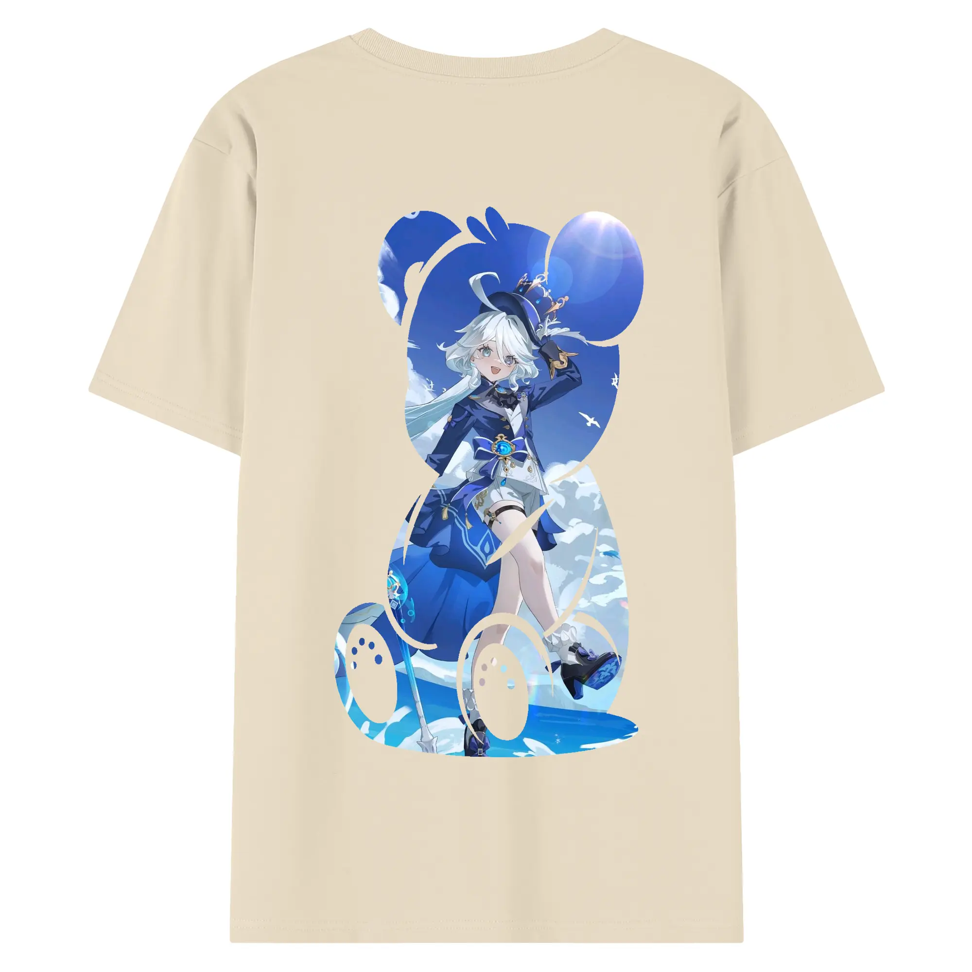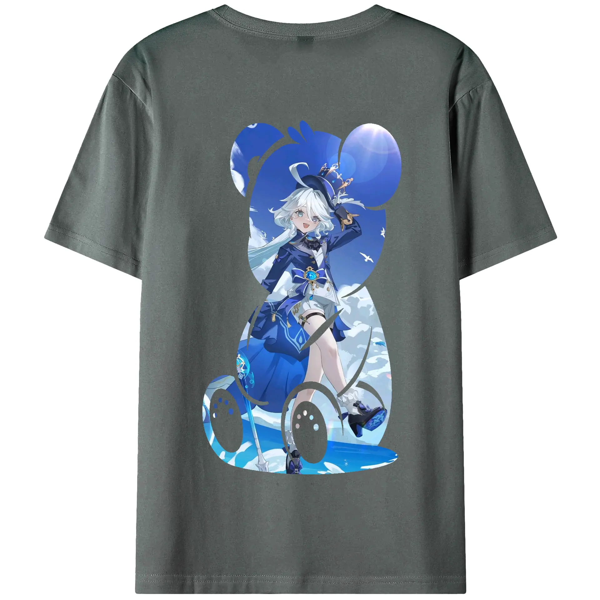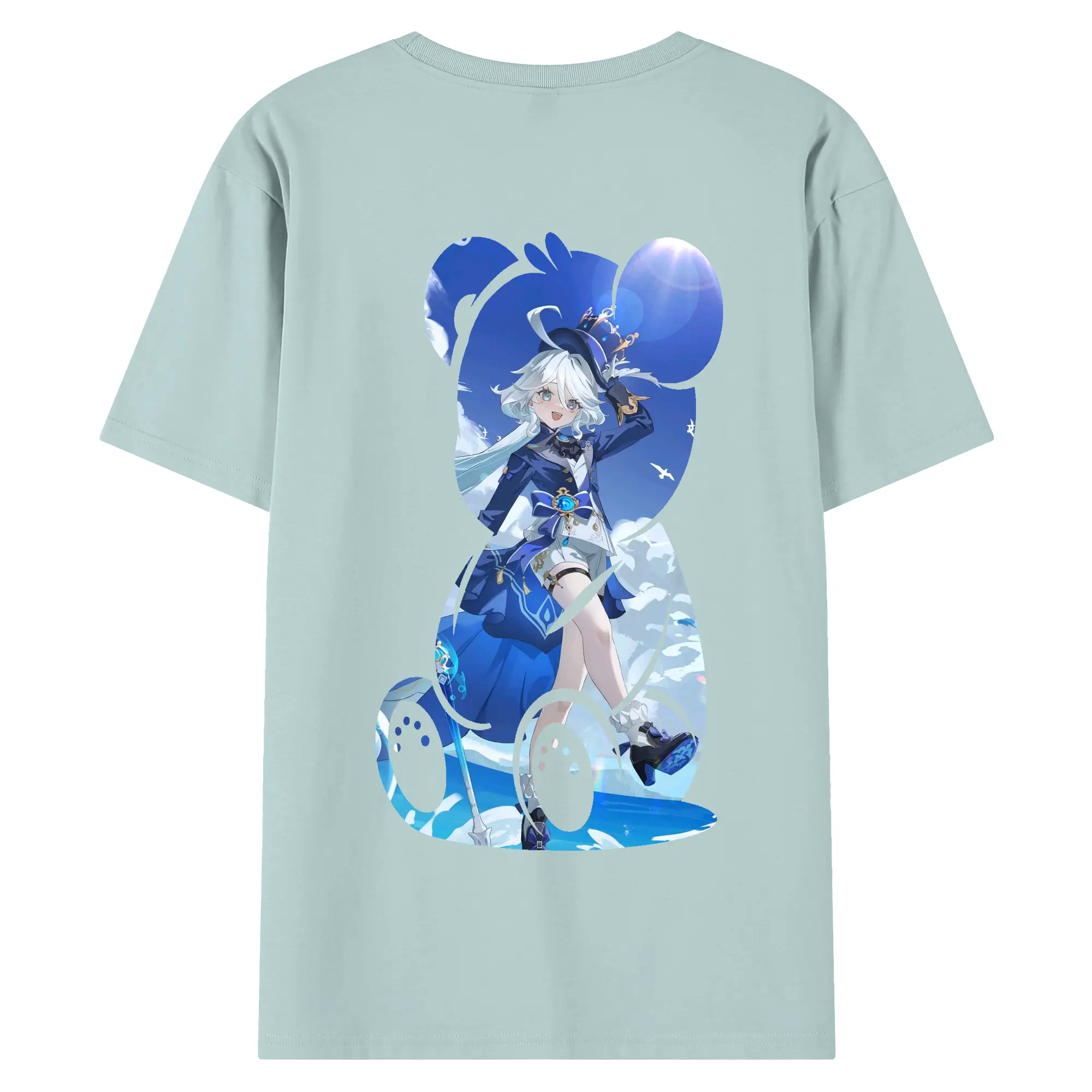 原 神 グッズ フリーナ - 綿100% ヴィンテージ風 半袖Tシャツ ・ 背面プリント ・ 柔らか肌触り ・ 通気性 快適 ・ スポーツ カジュアル 外出用