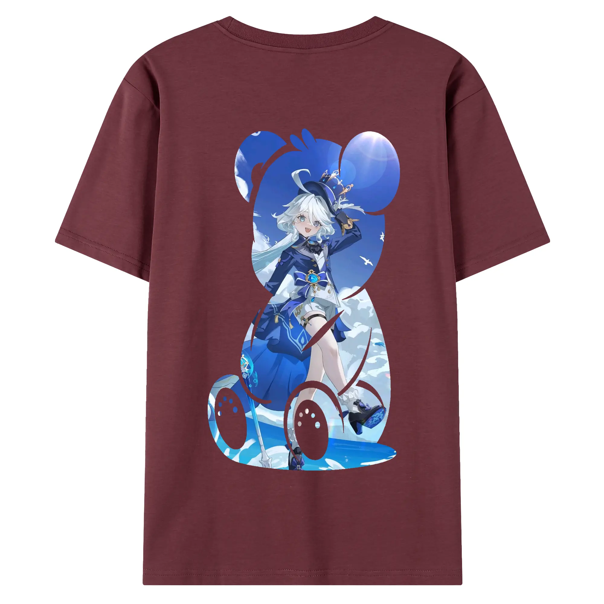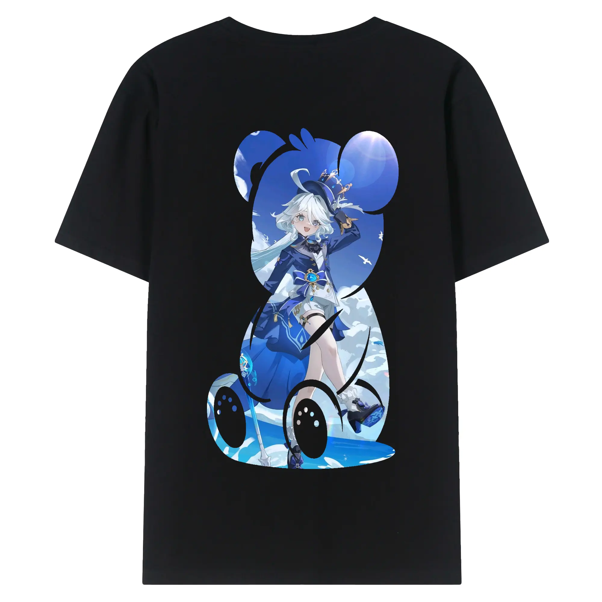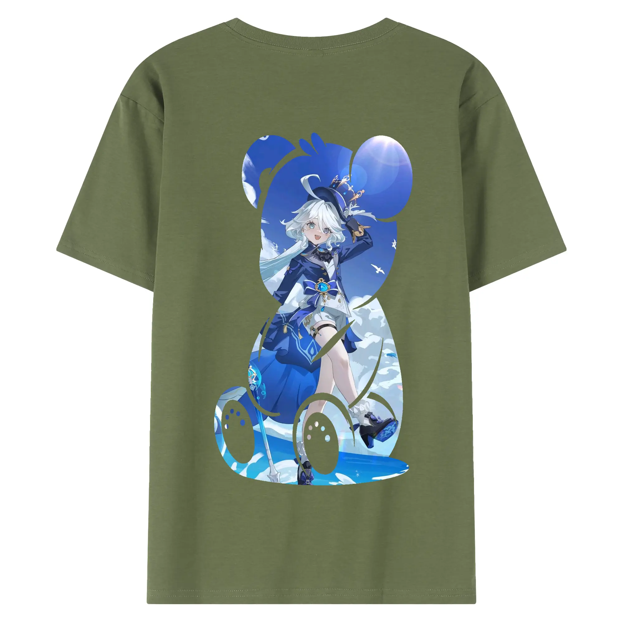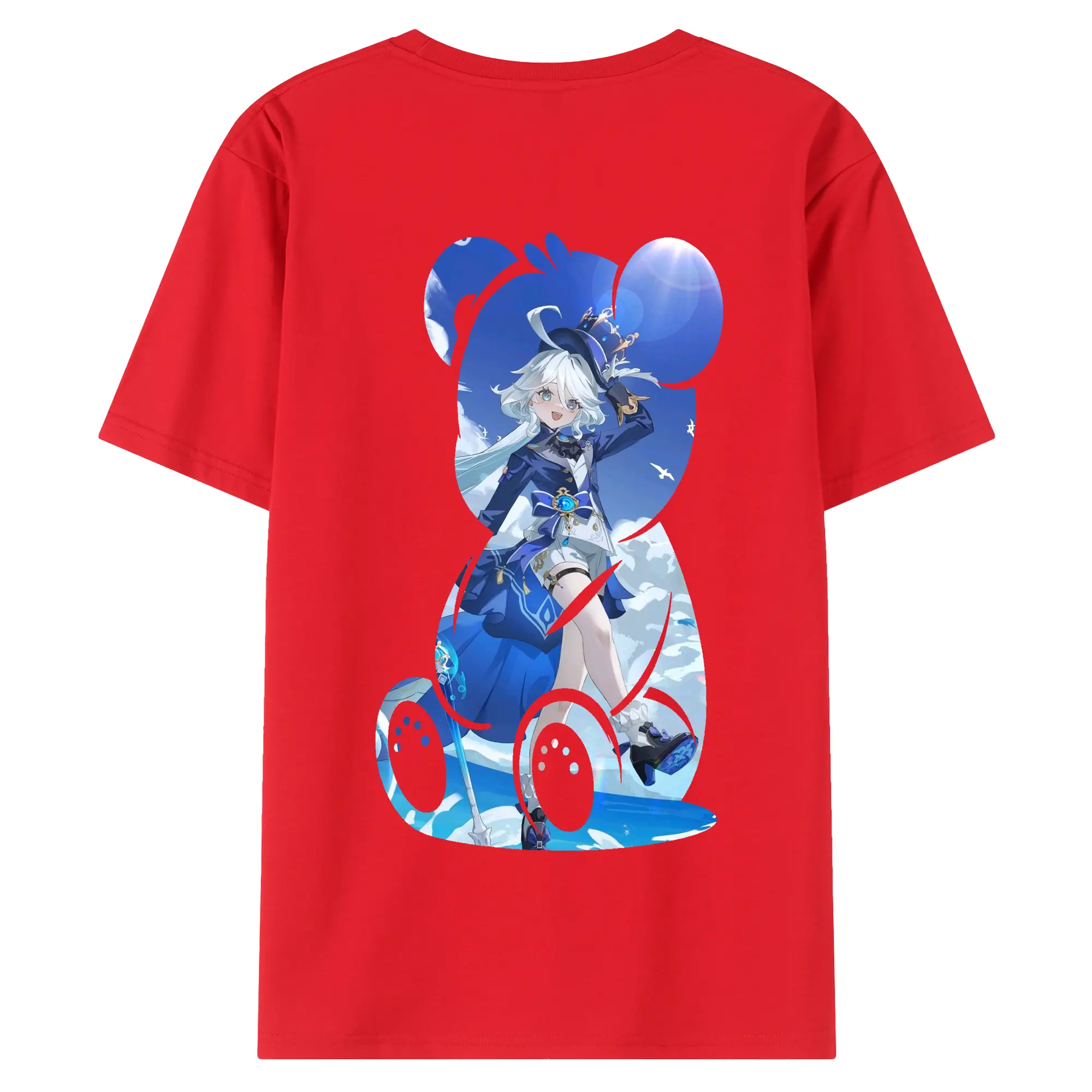 原 神 グッズ フリーナ - 綿100% ヴィンテージ風 半袖Tシャツ ・ 背面プリント ・ 柔らか肌触り ・ 通気性 快適 ・ スポーツ カジュアル 外出用