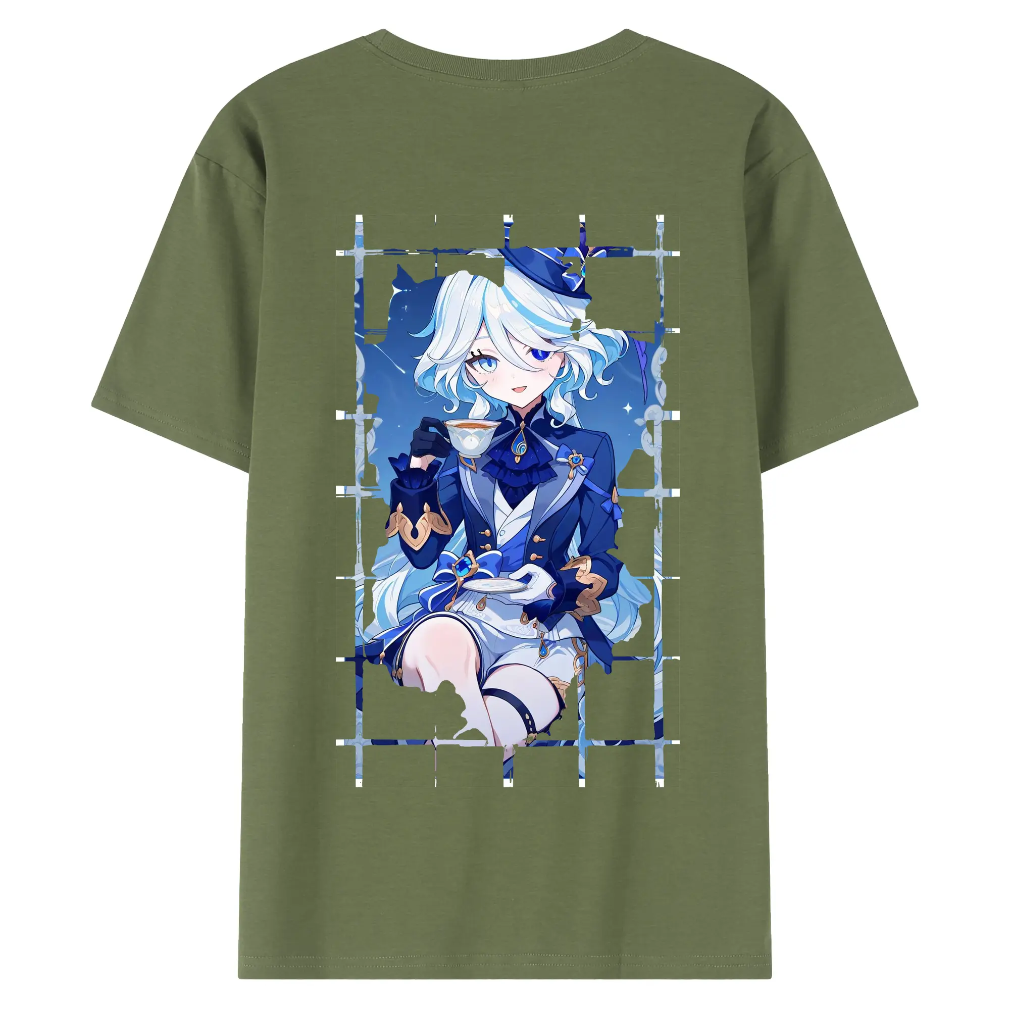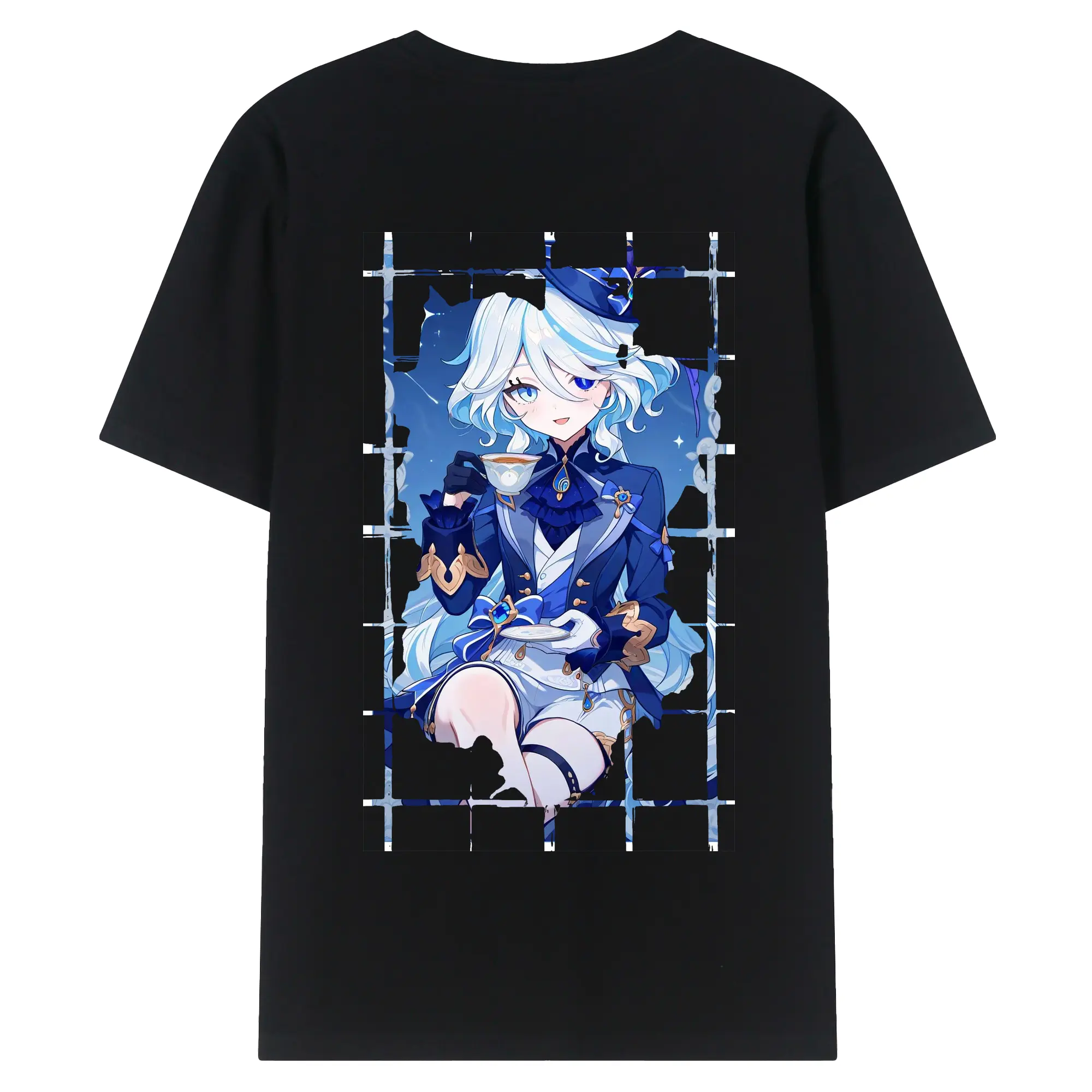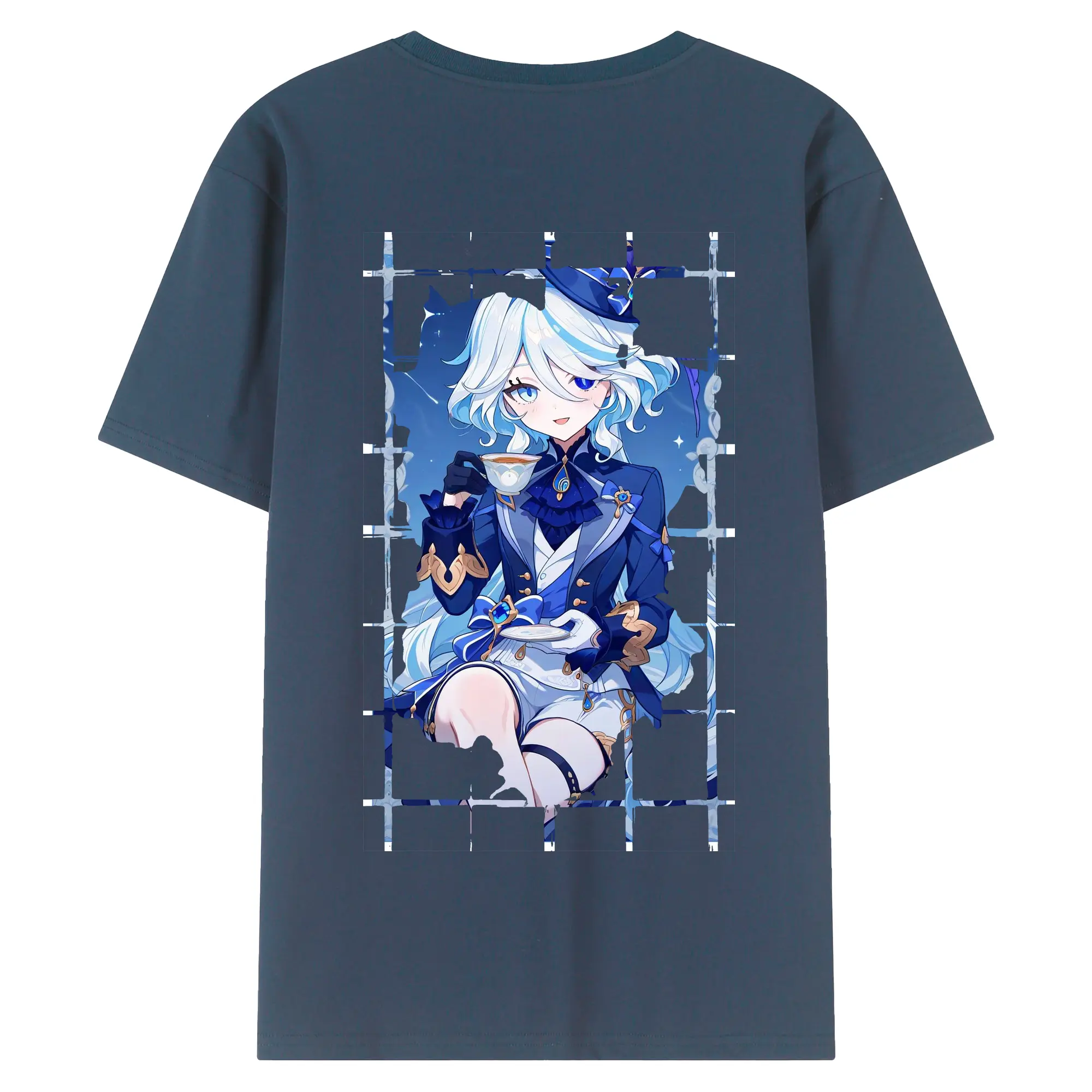 原 神 グッズ フリーナ - 綿100% ヴィンテージ風 半袖Tシャツ ・ 背面プリント ・ 柔らか肌触り ・ 通気性 快適 ・ スポーツ カジュアル 外出用