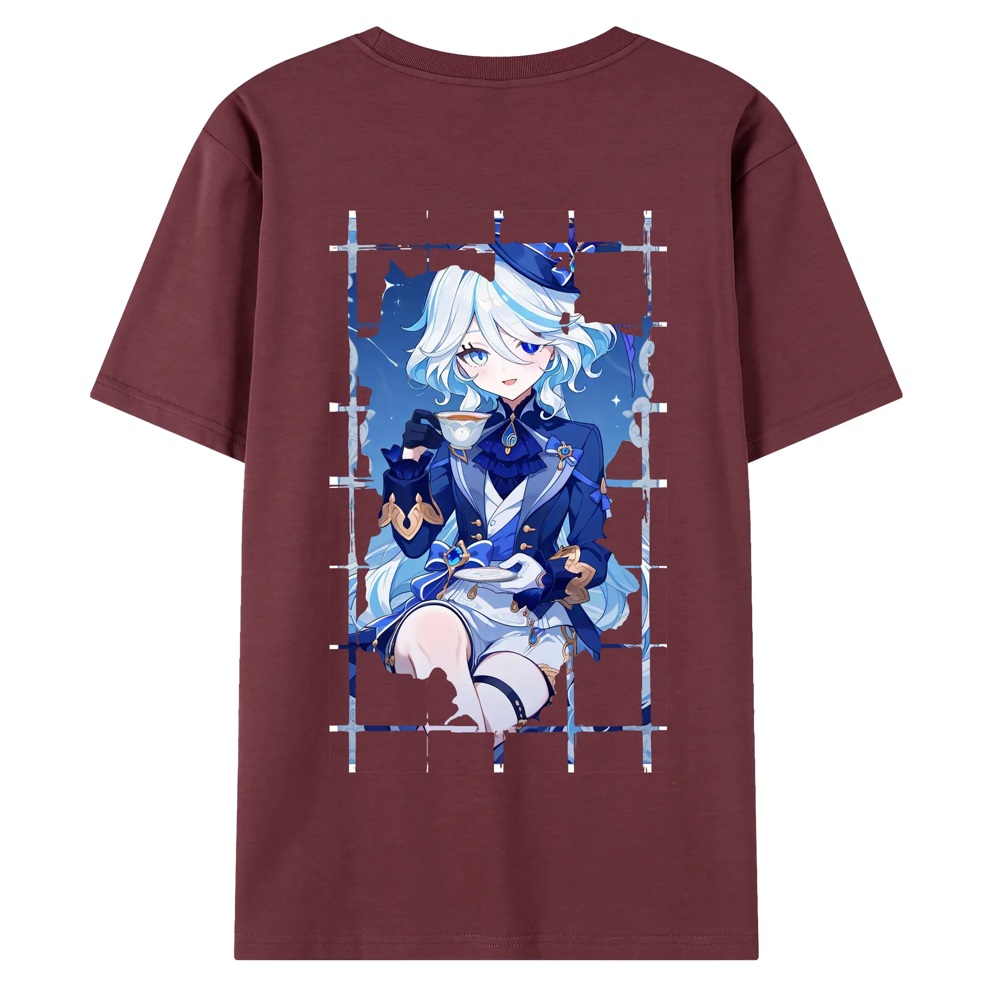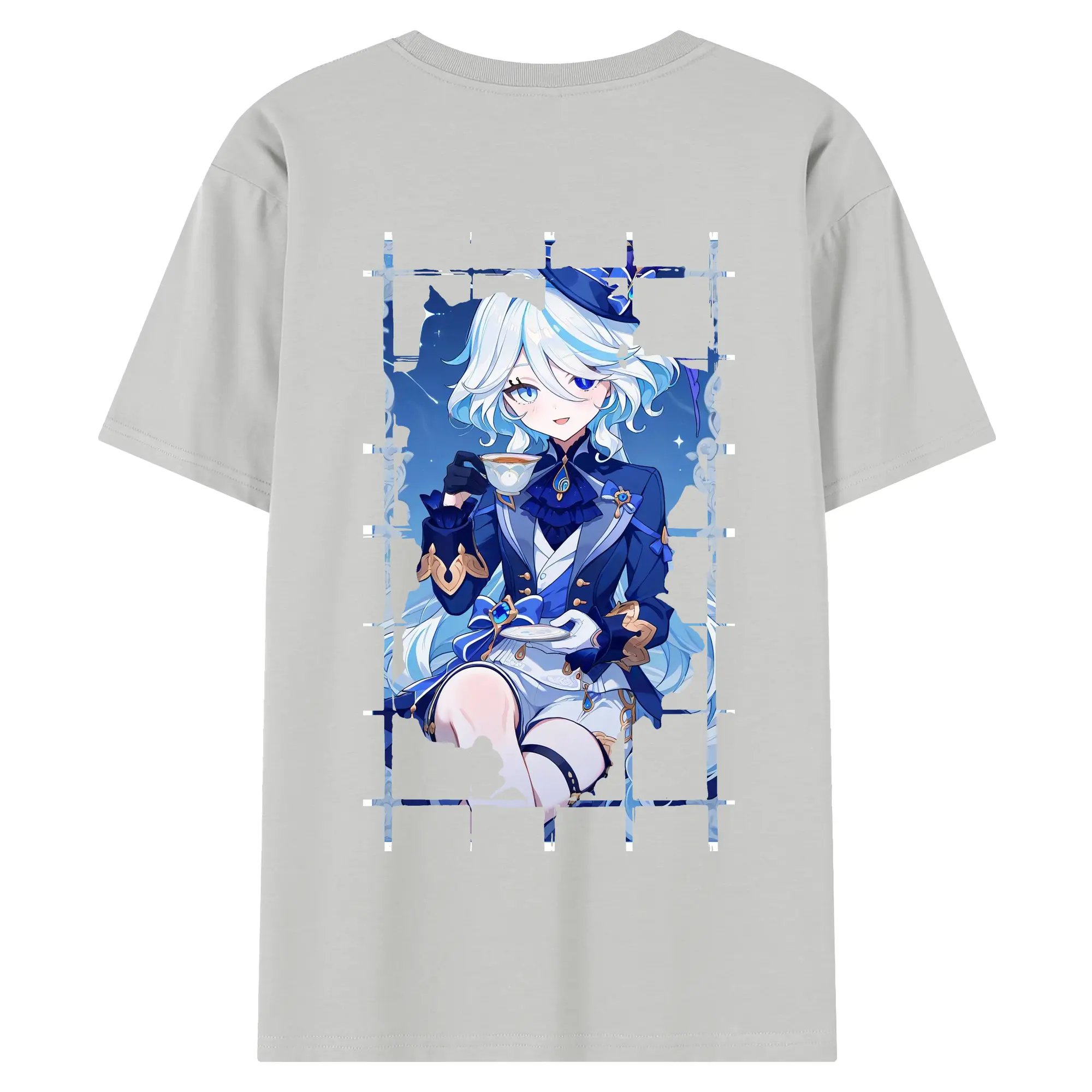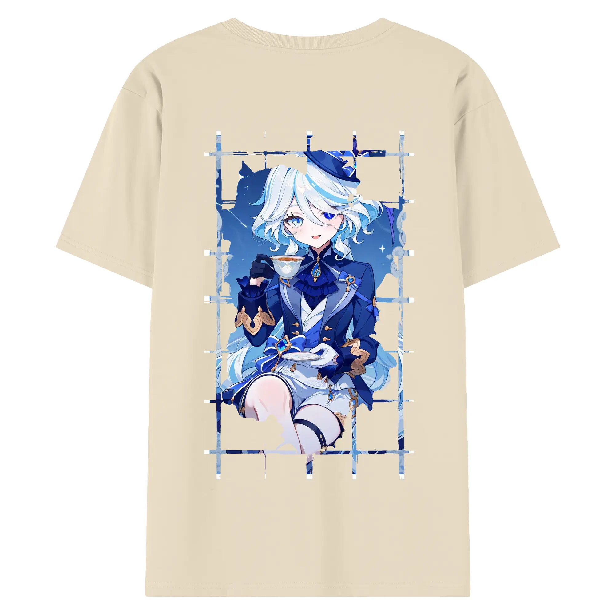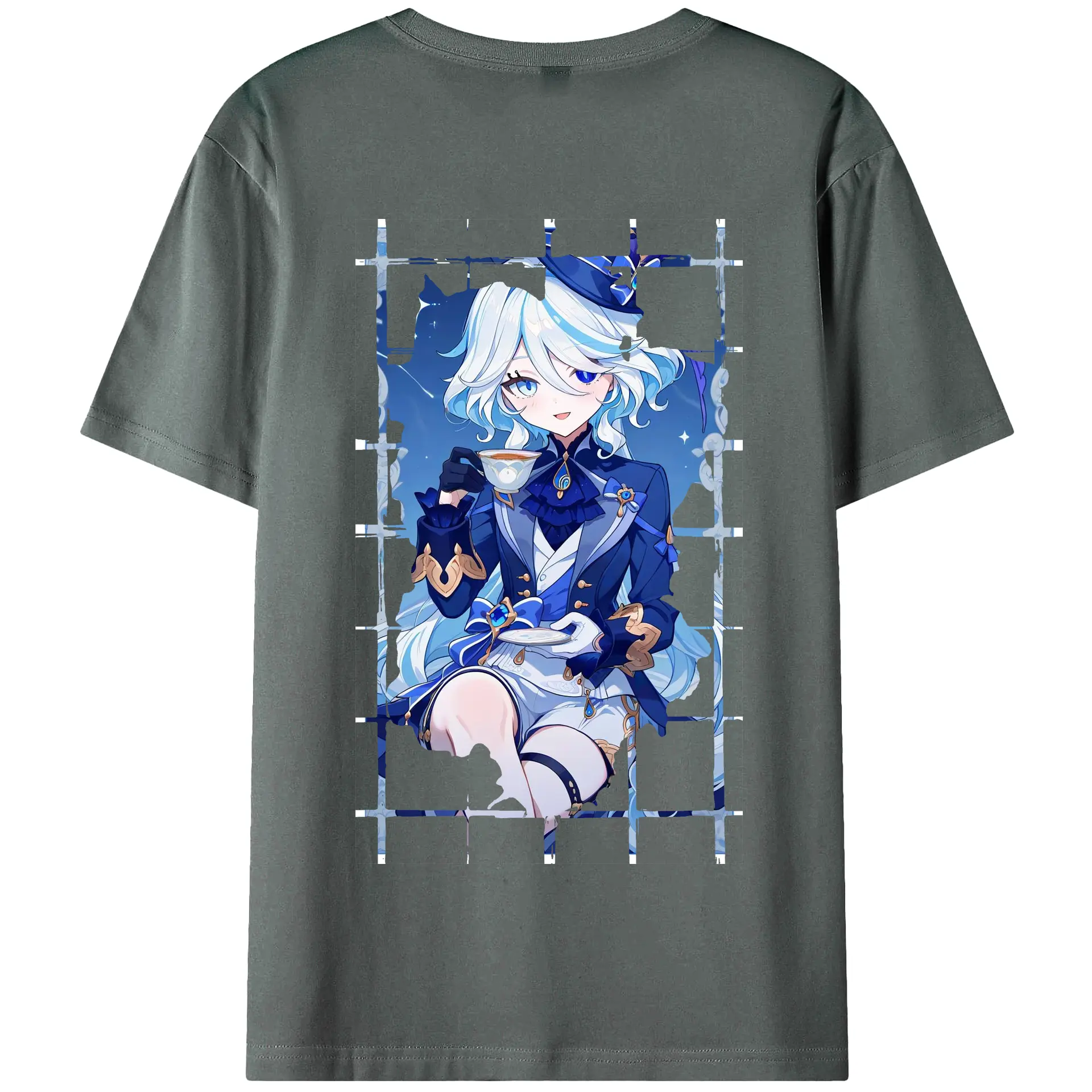 原 神 グッズ フリーナ - 綿100% ヴィンテージ風 半袖Tシャツ ・ 背面プリント ・ 柔らか肌触り ・ 通気性 快適 ・ スポーツ カジュアル 外出用