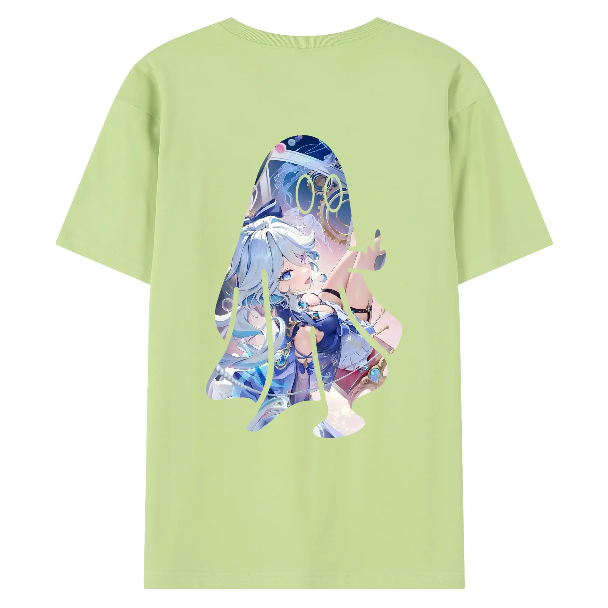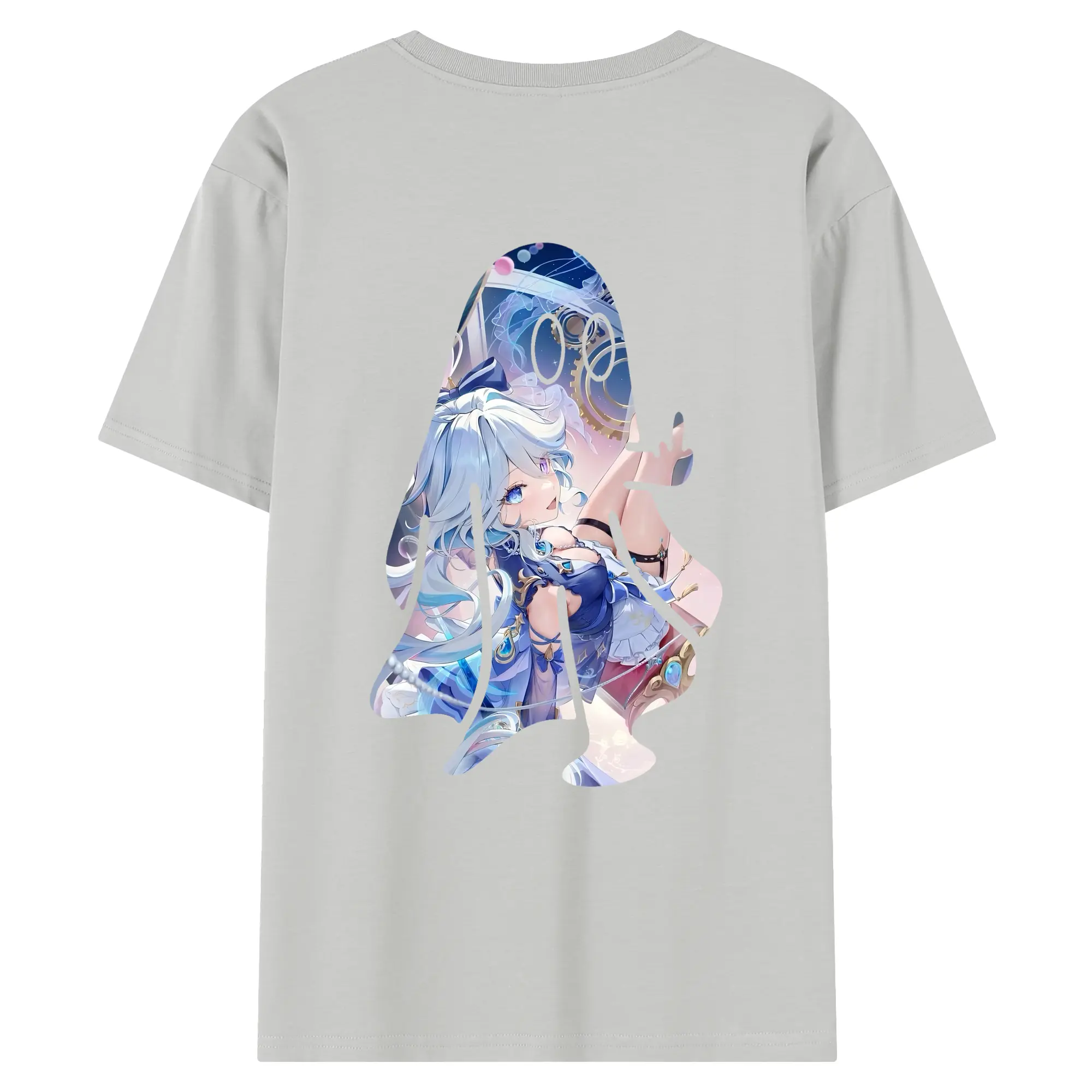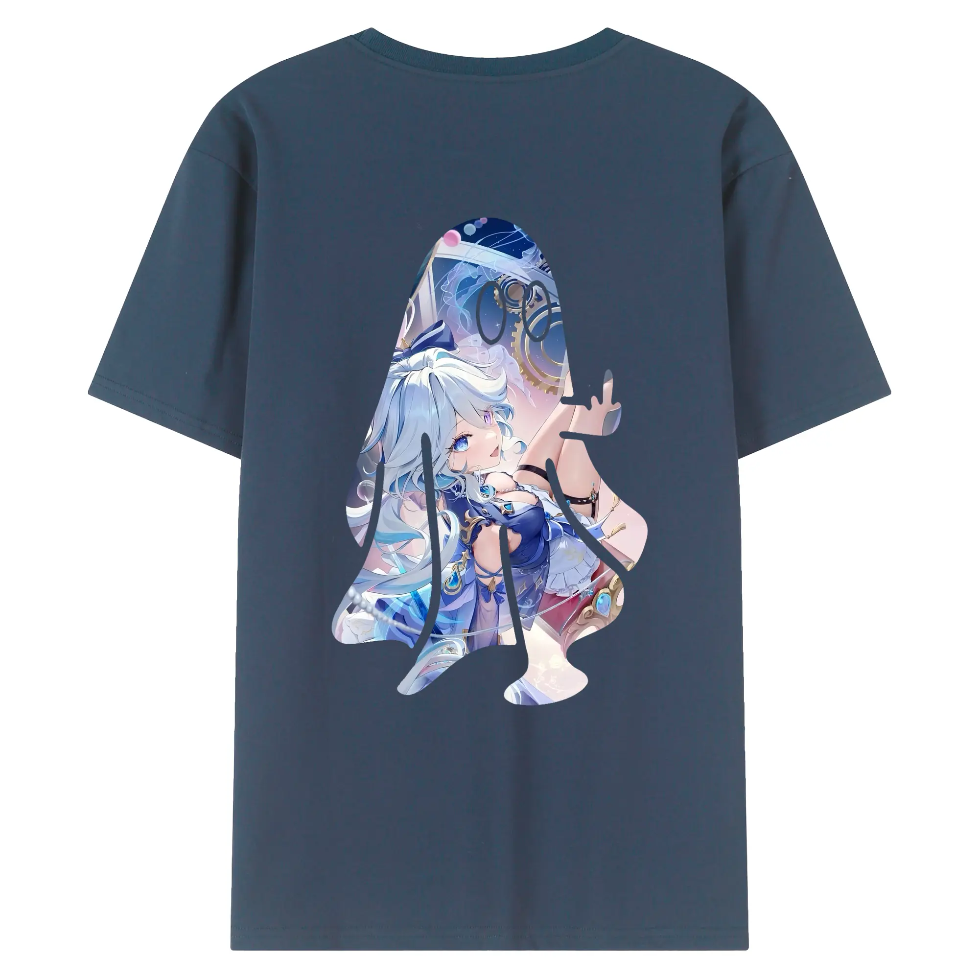 原 神 グッズ フリーナ - 綿100% ヴィンテージ風 半袖Tシャツ ・ 背面プリント ・ 柔らか肌触り ・ 通気性 快適 ・ スポーツ カジュアル 外出用