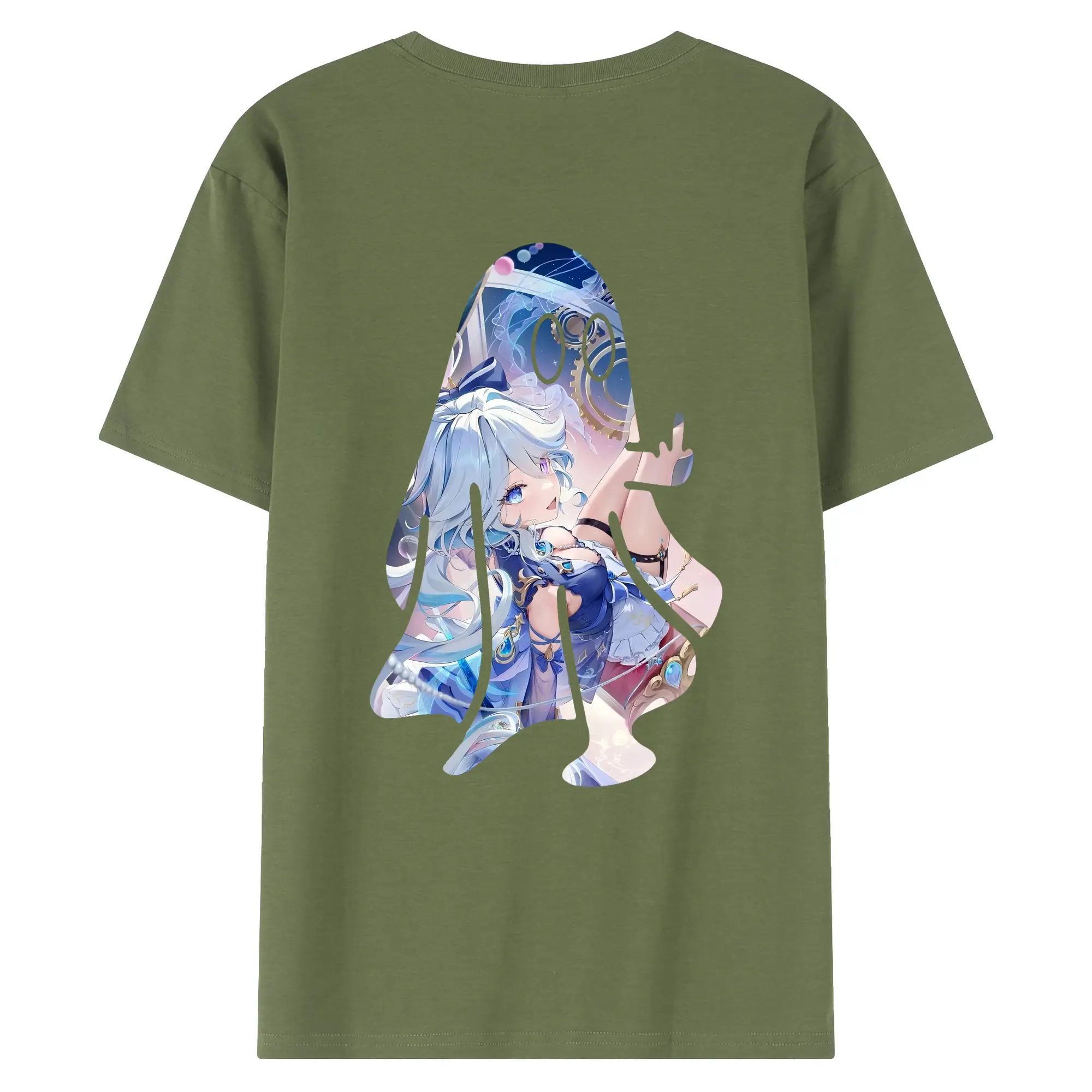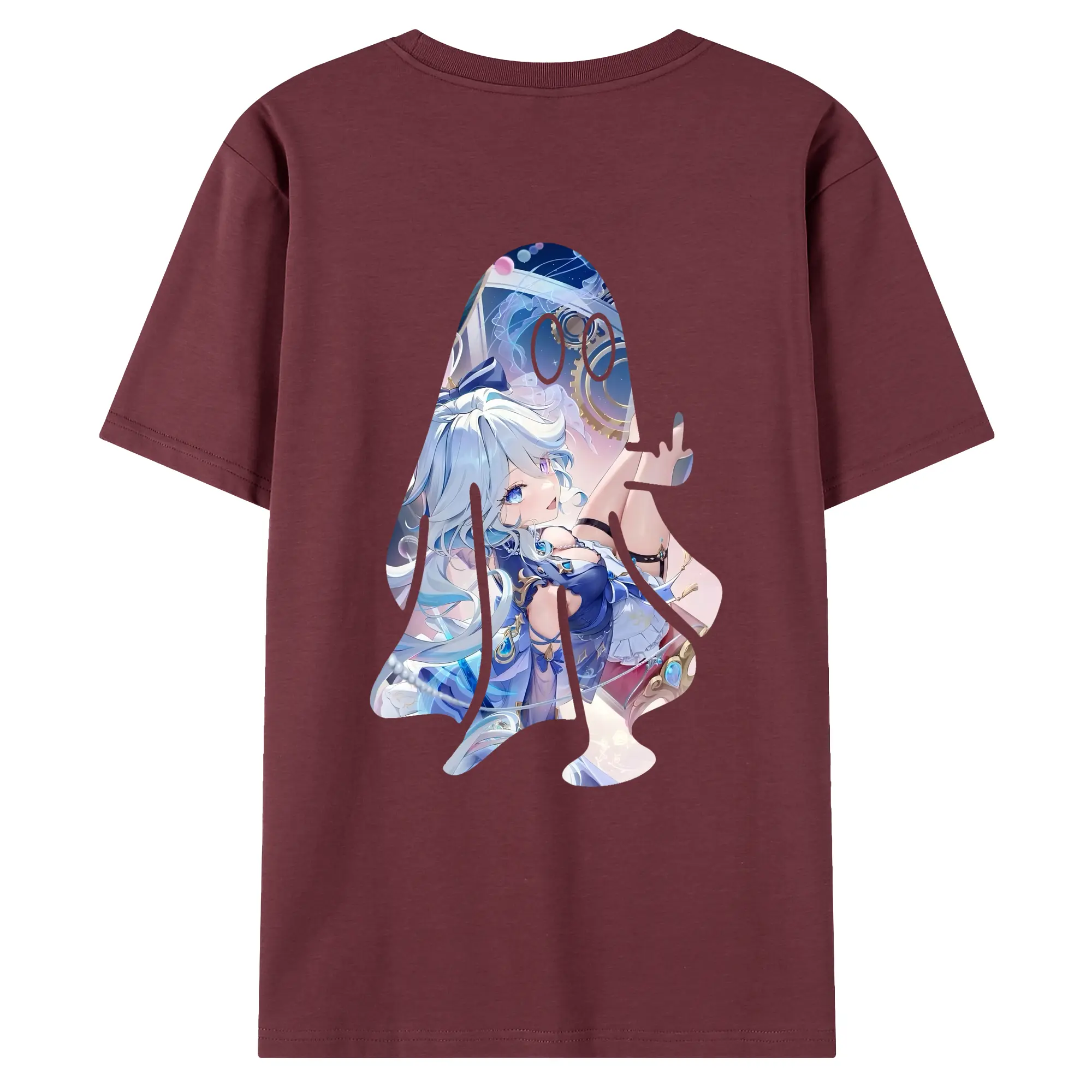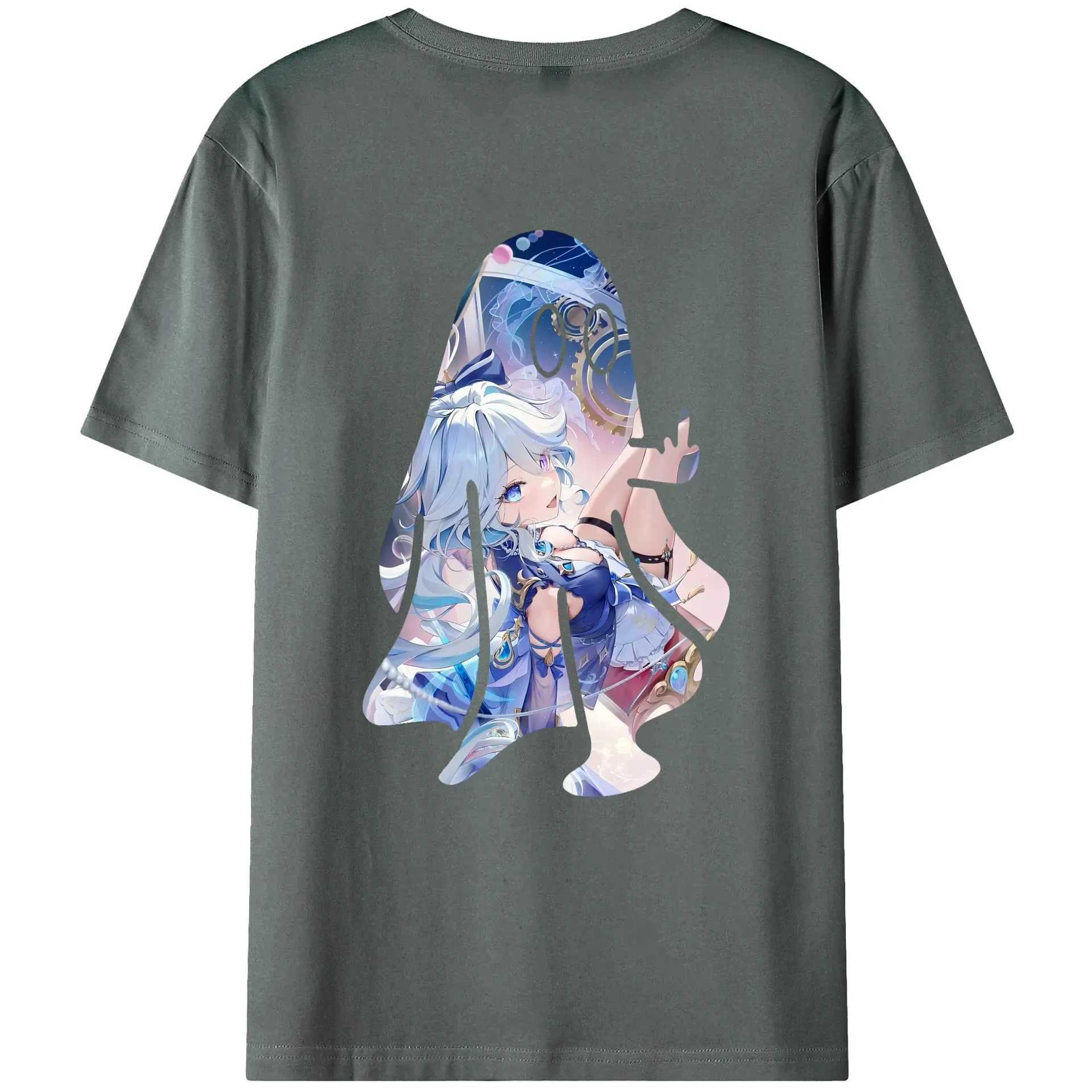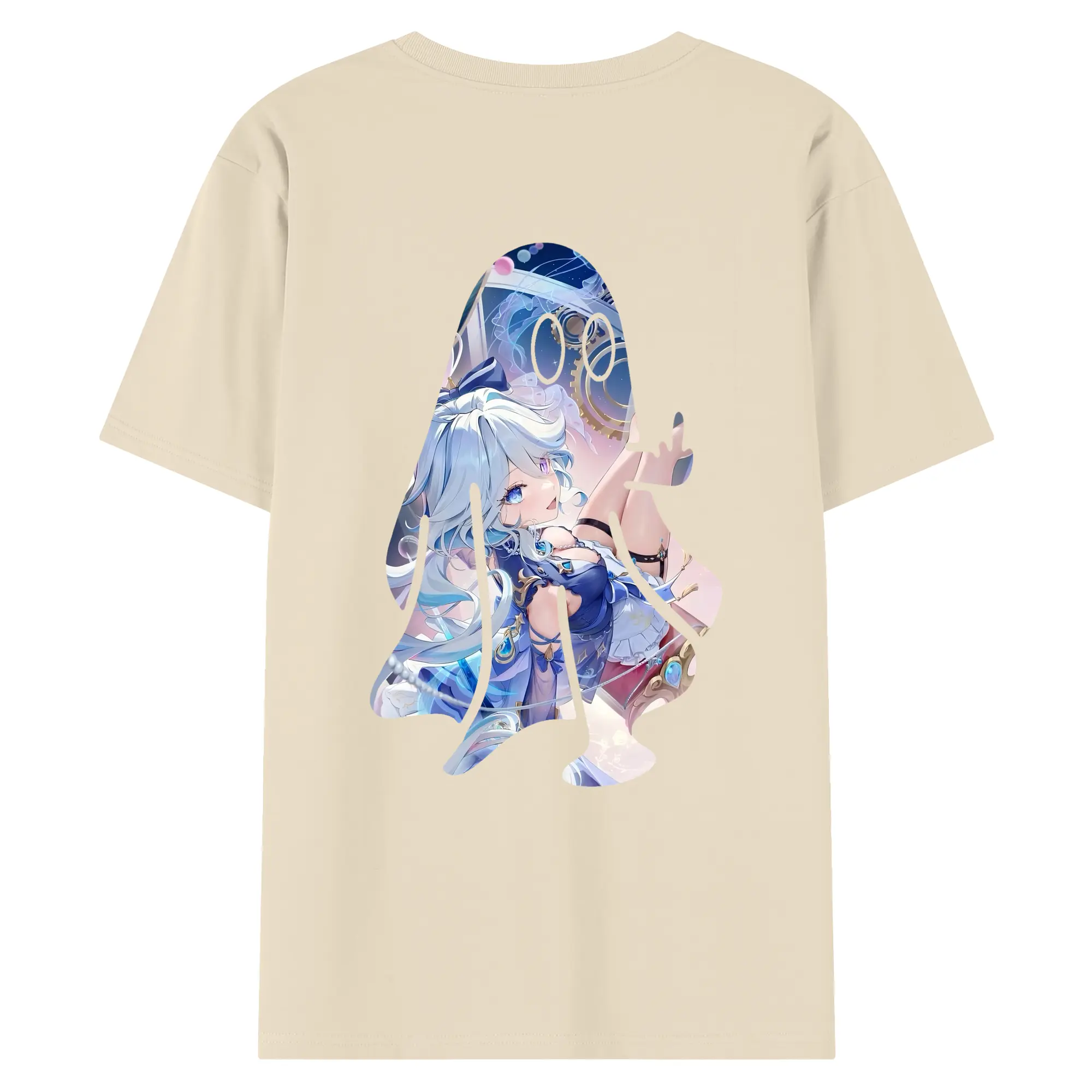原 神 グッズ フリーナ - 綿100% ヴィンテージ風 半袖Tシャツ ・ 背面プリント ・ 柔らか肌触り ・ 通気性 快適 ・ スポーツ カジュアル 外出用