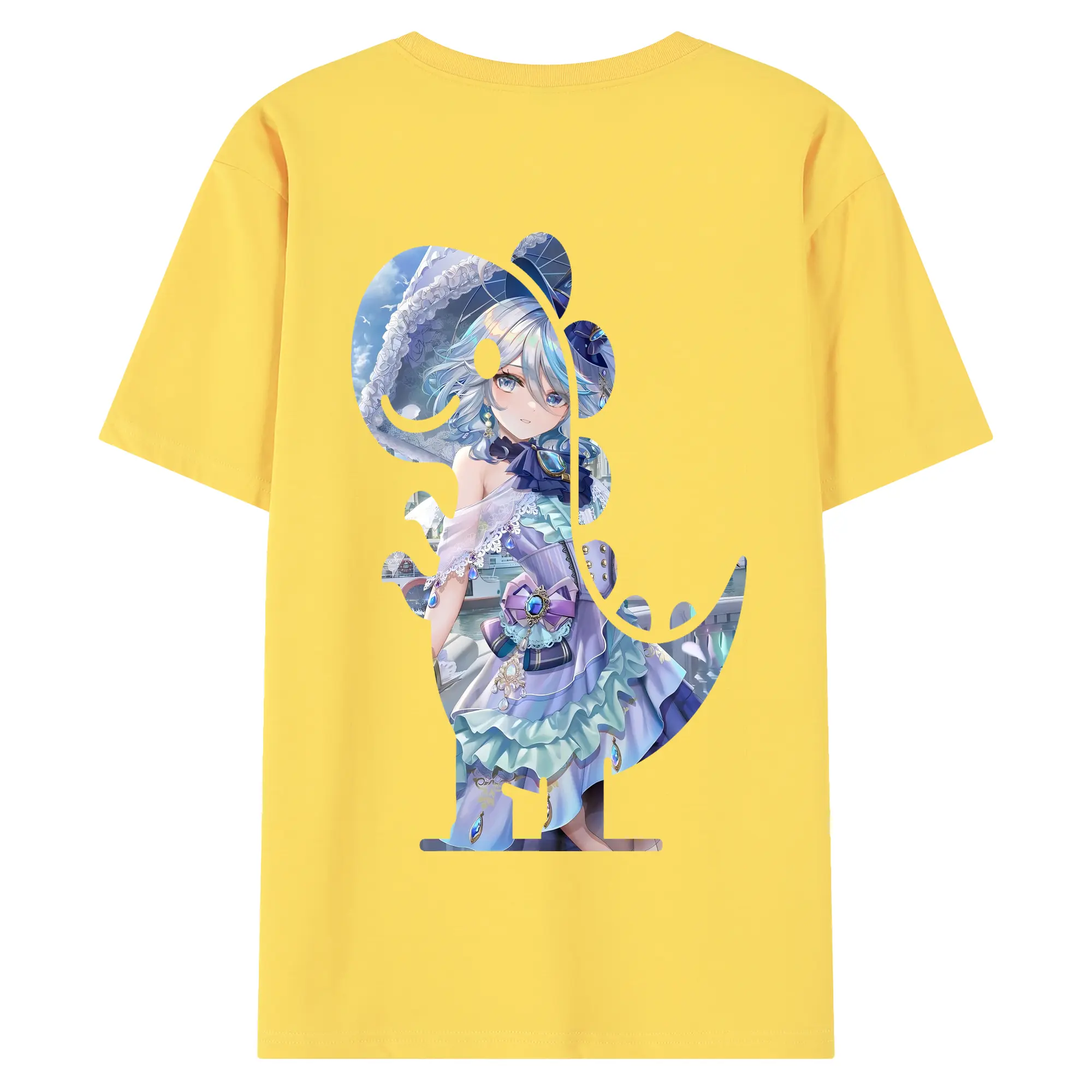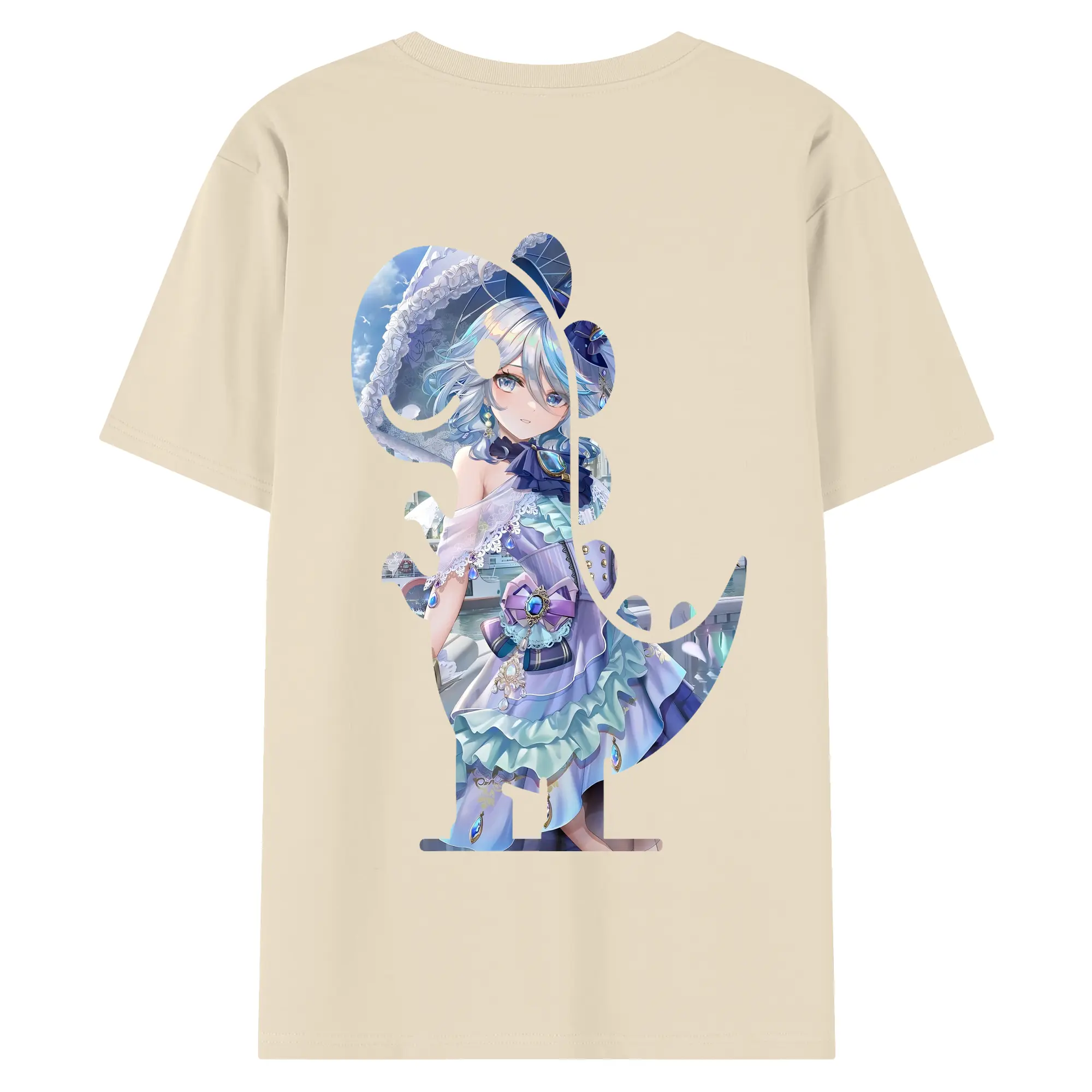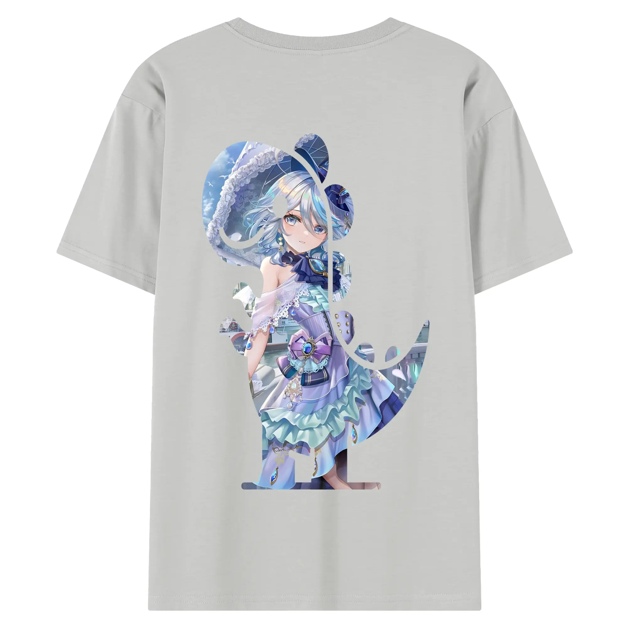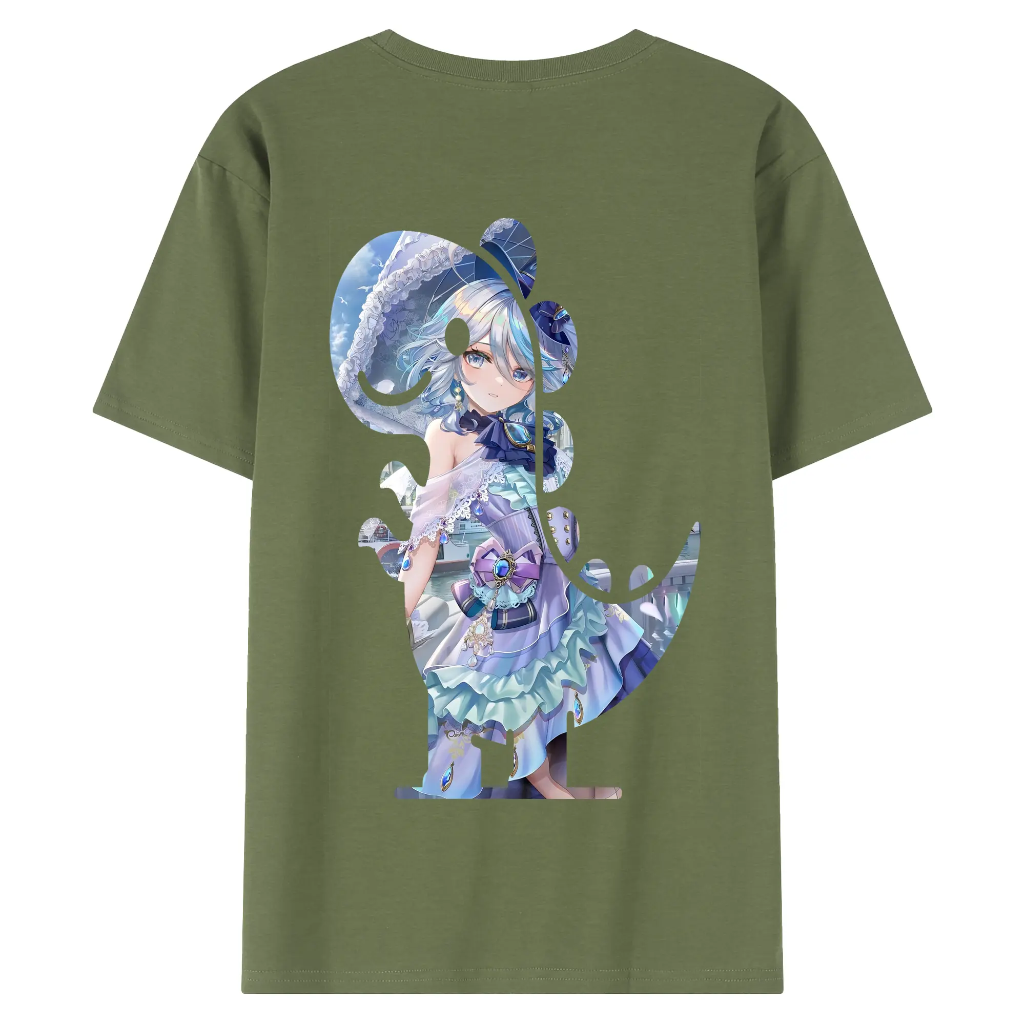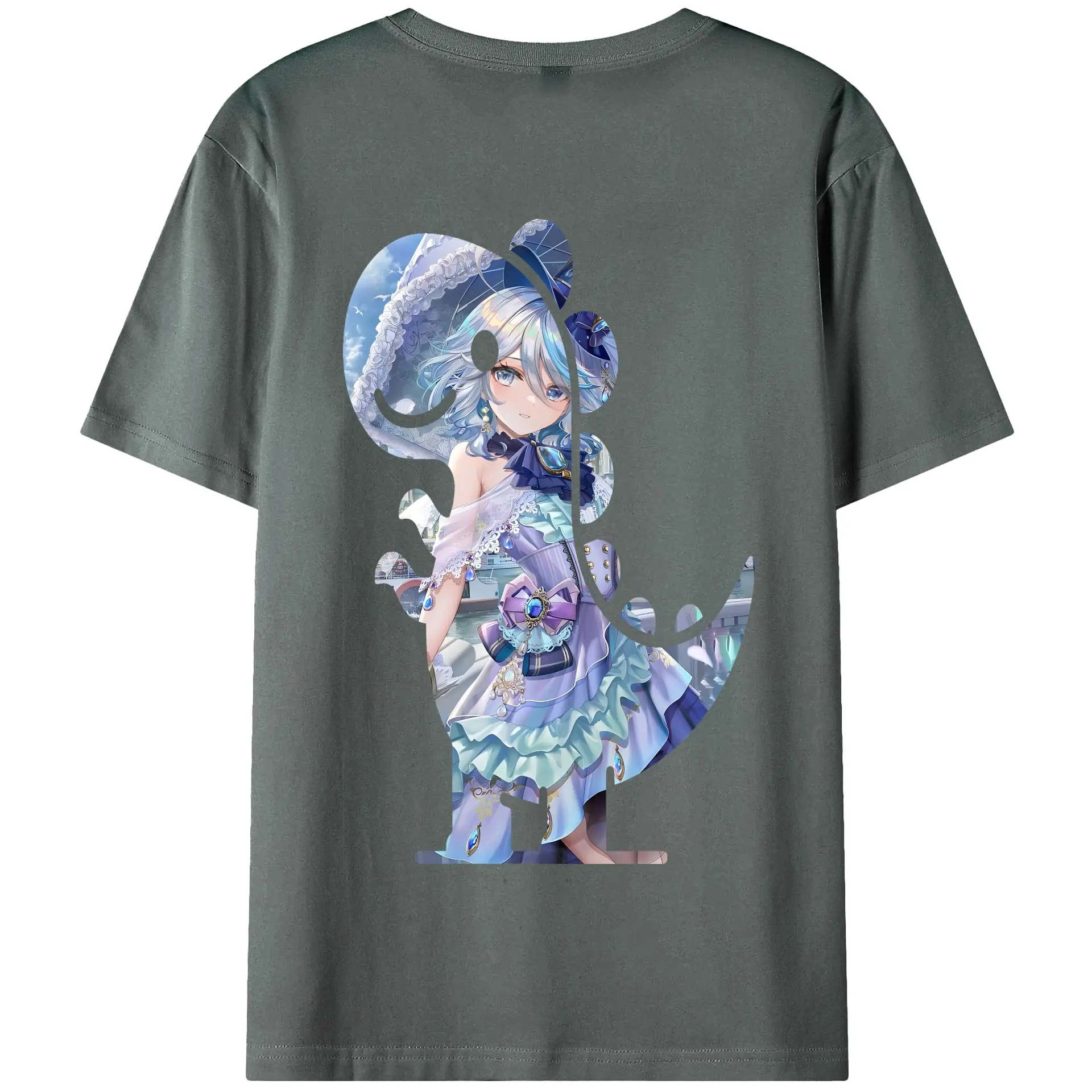原 神 グッズ フリーナ - 綿100% ヴィンテージ風 半袖Tシャツ ・ 背面プリント ・ 柔らか肌触り ・ 通気性 快適 ・ スポーツ カジュアル 外出用