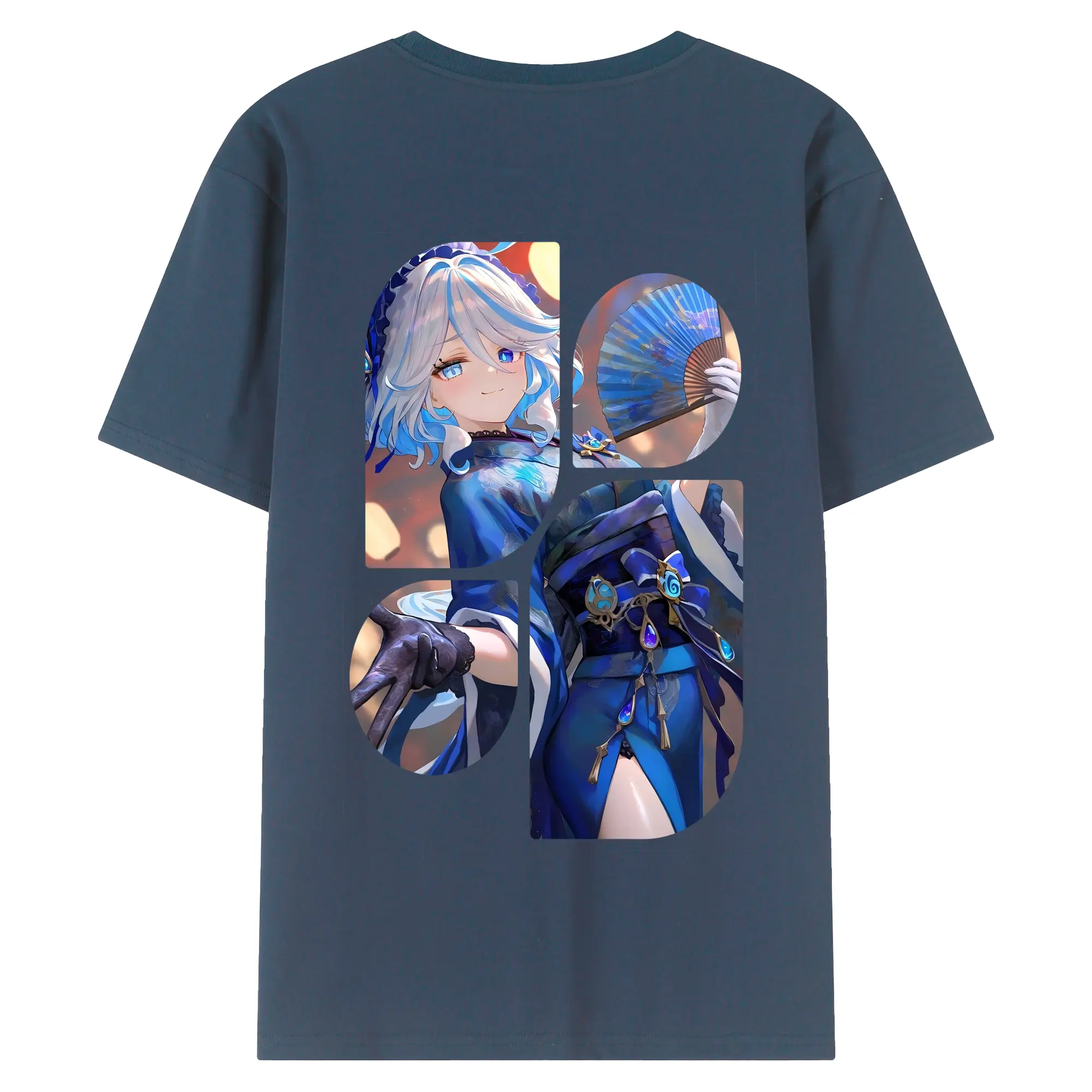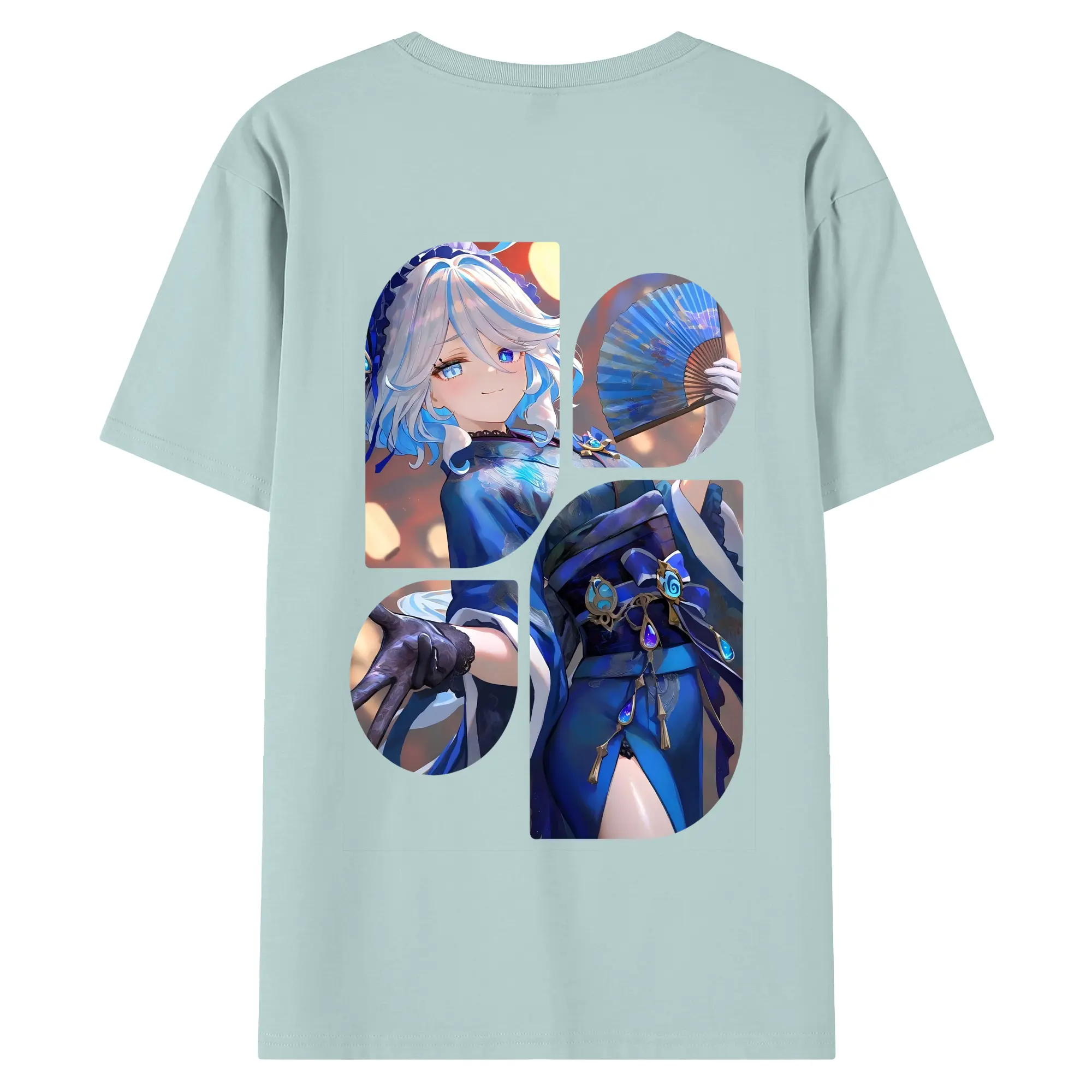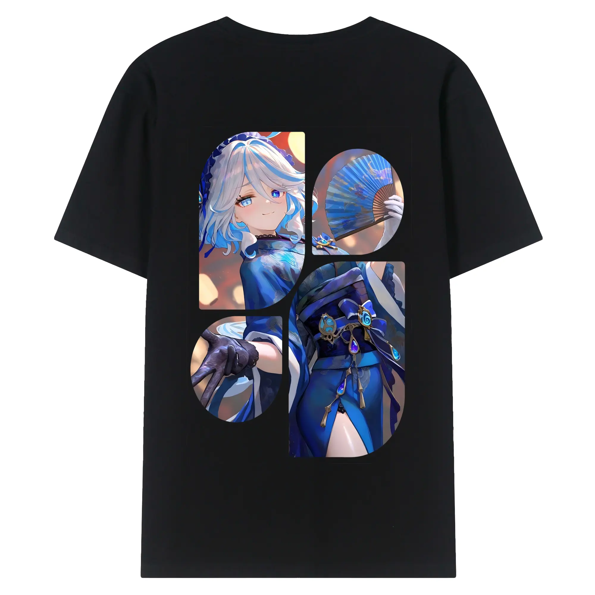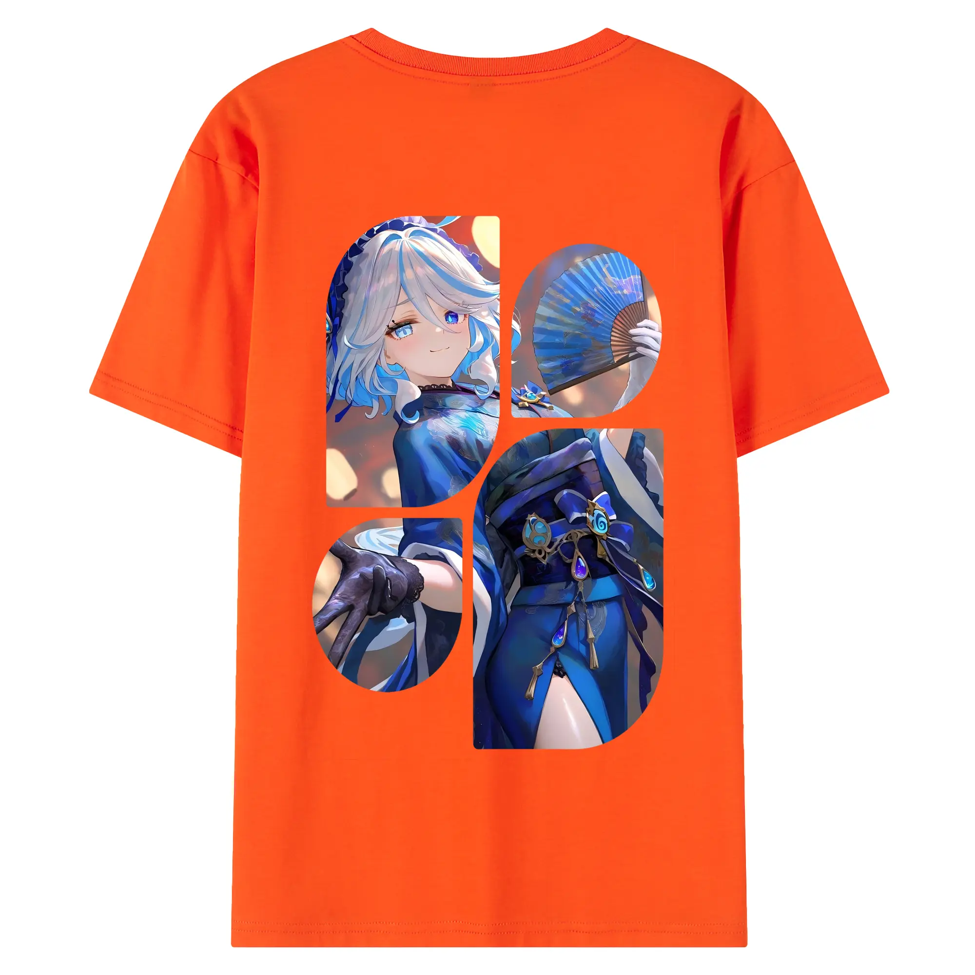 原 神 グッズ フリーナ - 綿100% ヴィンテージ風 半袖Tシャツ ・ 背面プリント ・ 柔らか肌触り ・ 通気性 快適 ・ スポーツ カジュアル 外出用