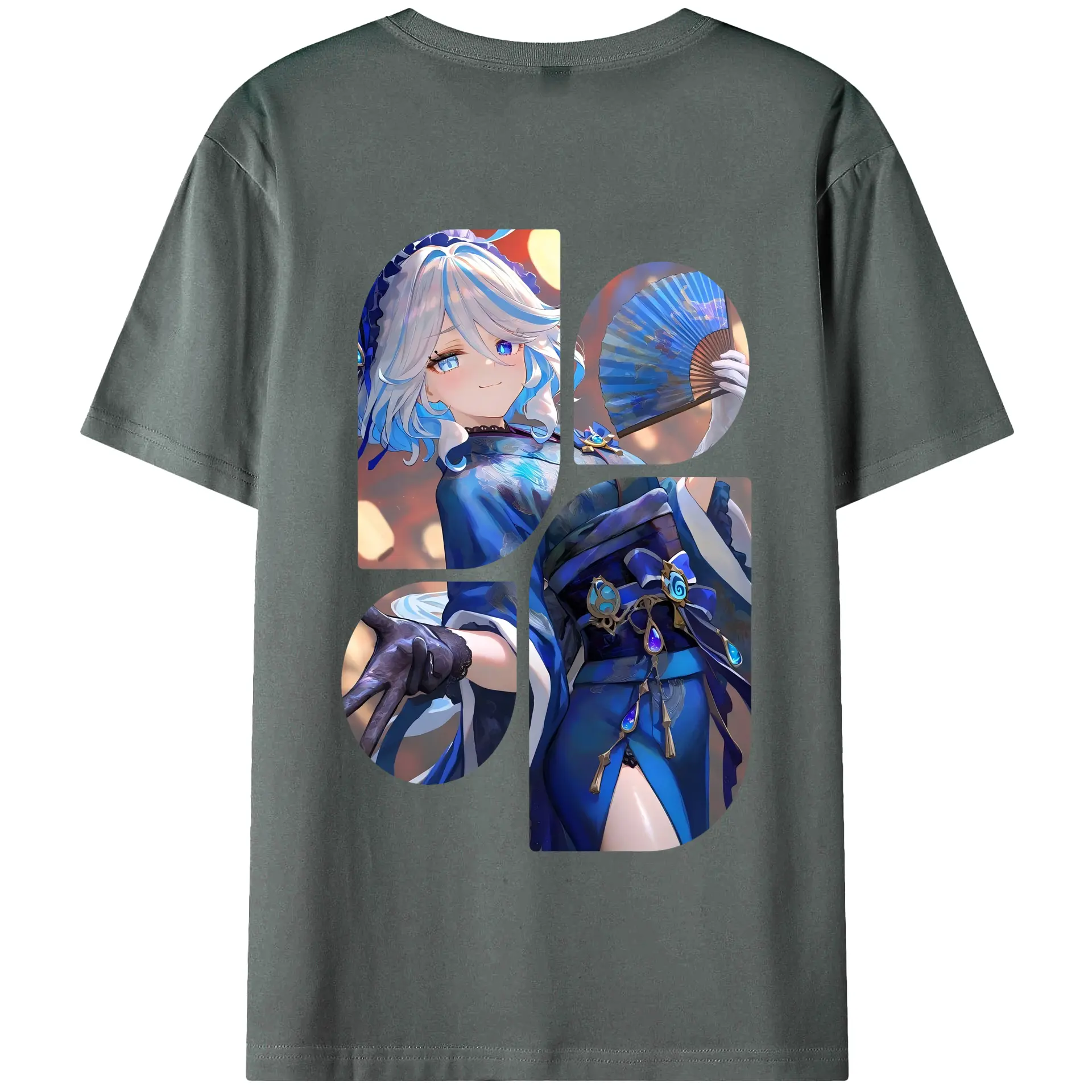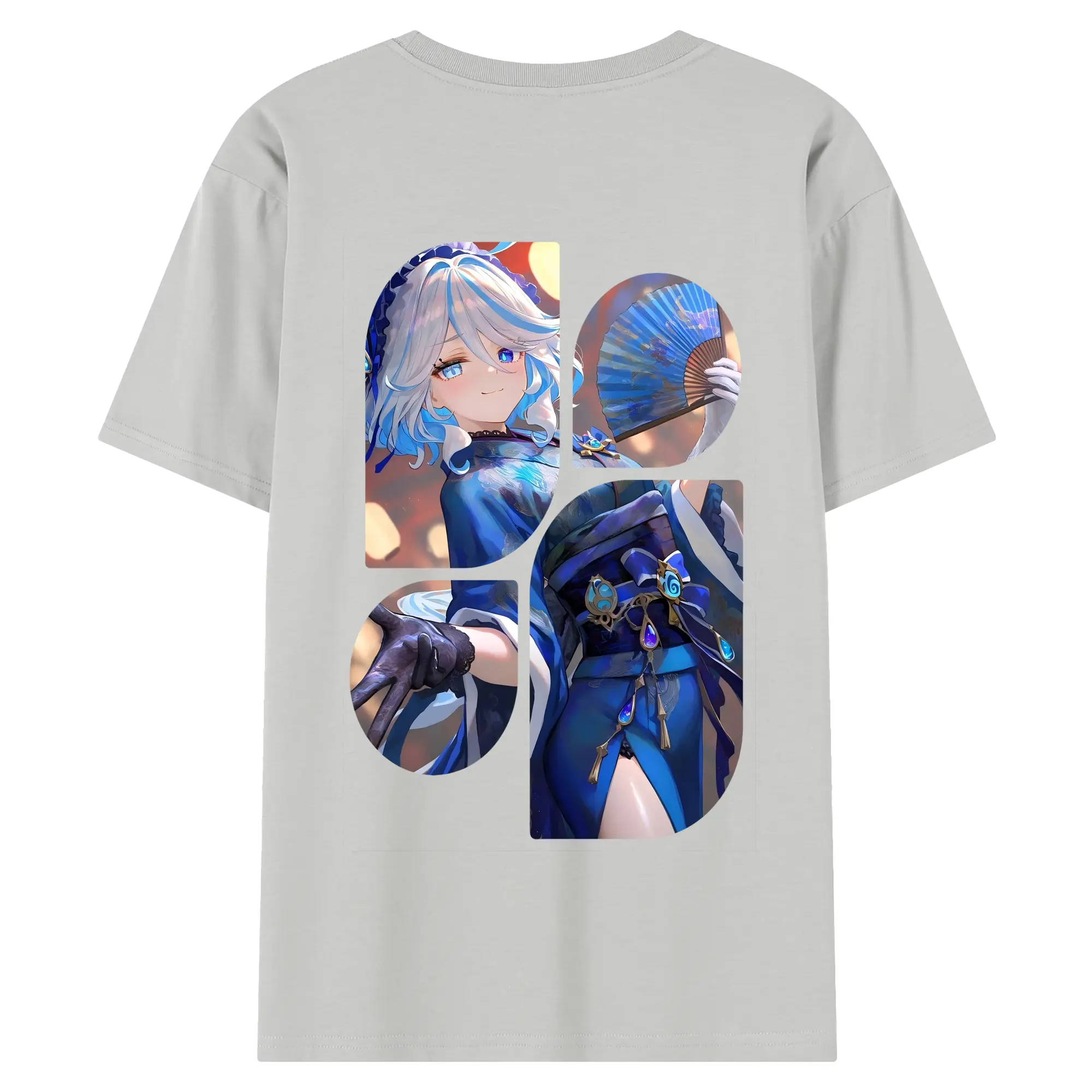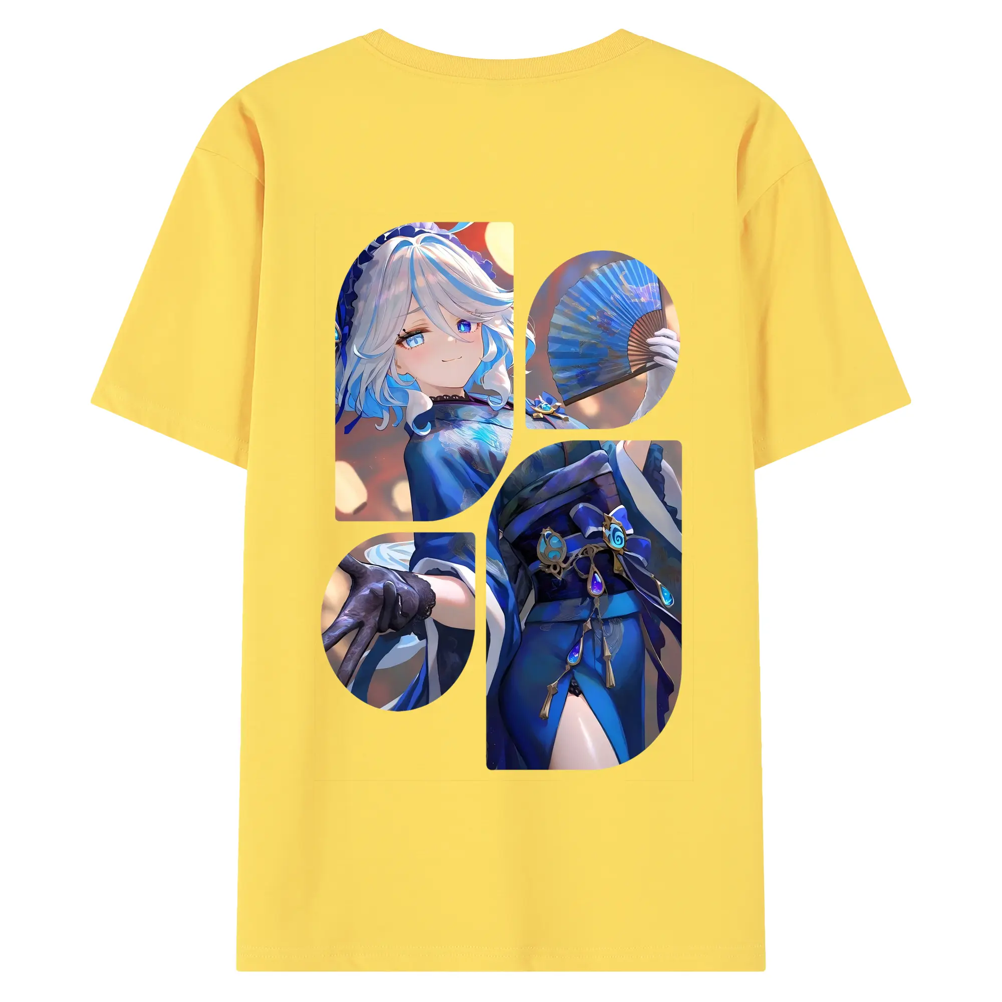 原 神 グッズ フリーナ - 綿100% ヴィンテージ風 半袖Tシャツ ・ 背面プリント ・ 柔らか肌触り ・ 通気性 快適 ・ スポーツ カジュアル 外出用