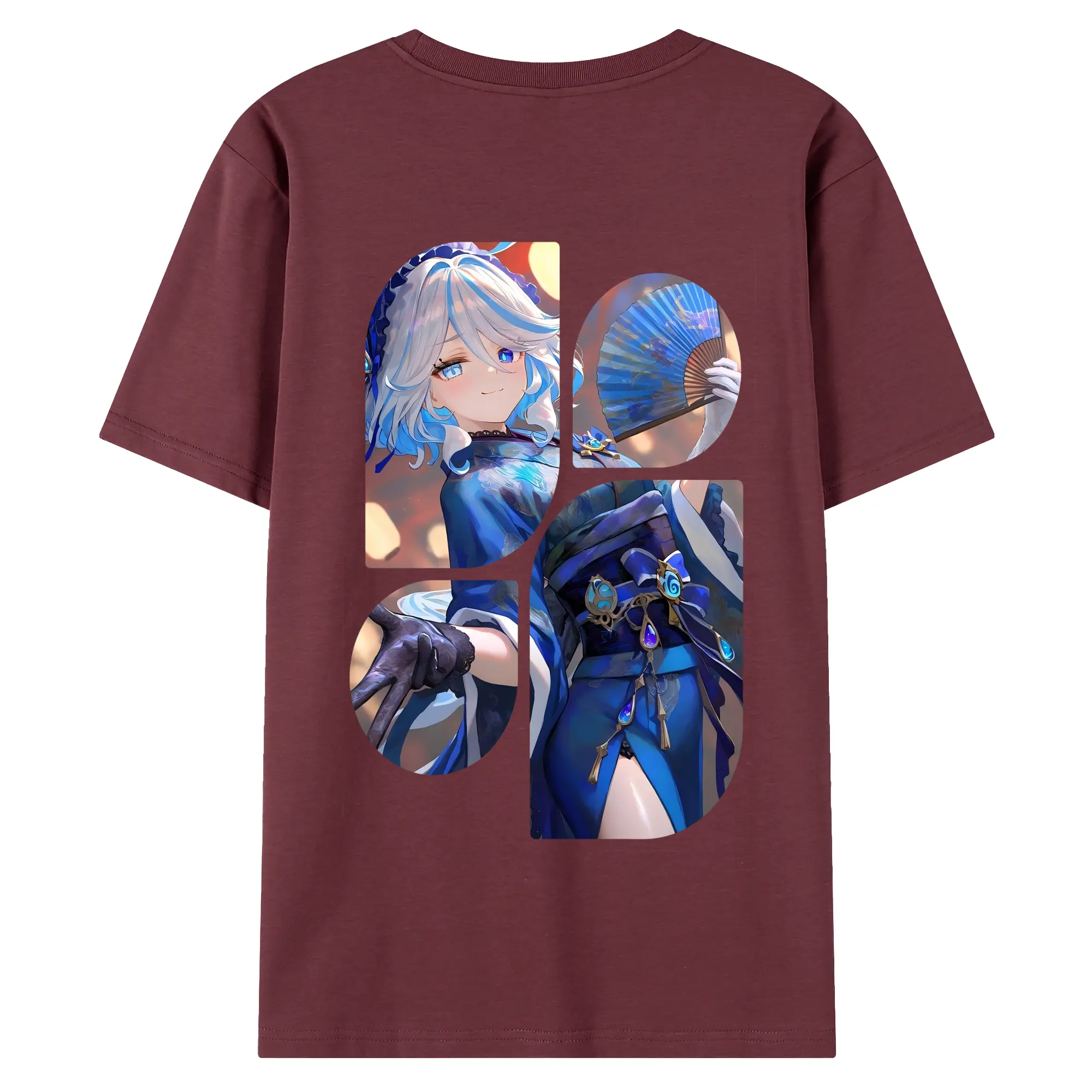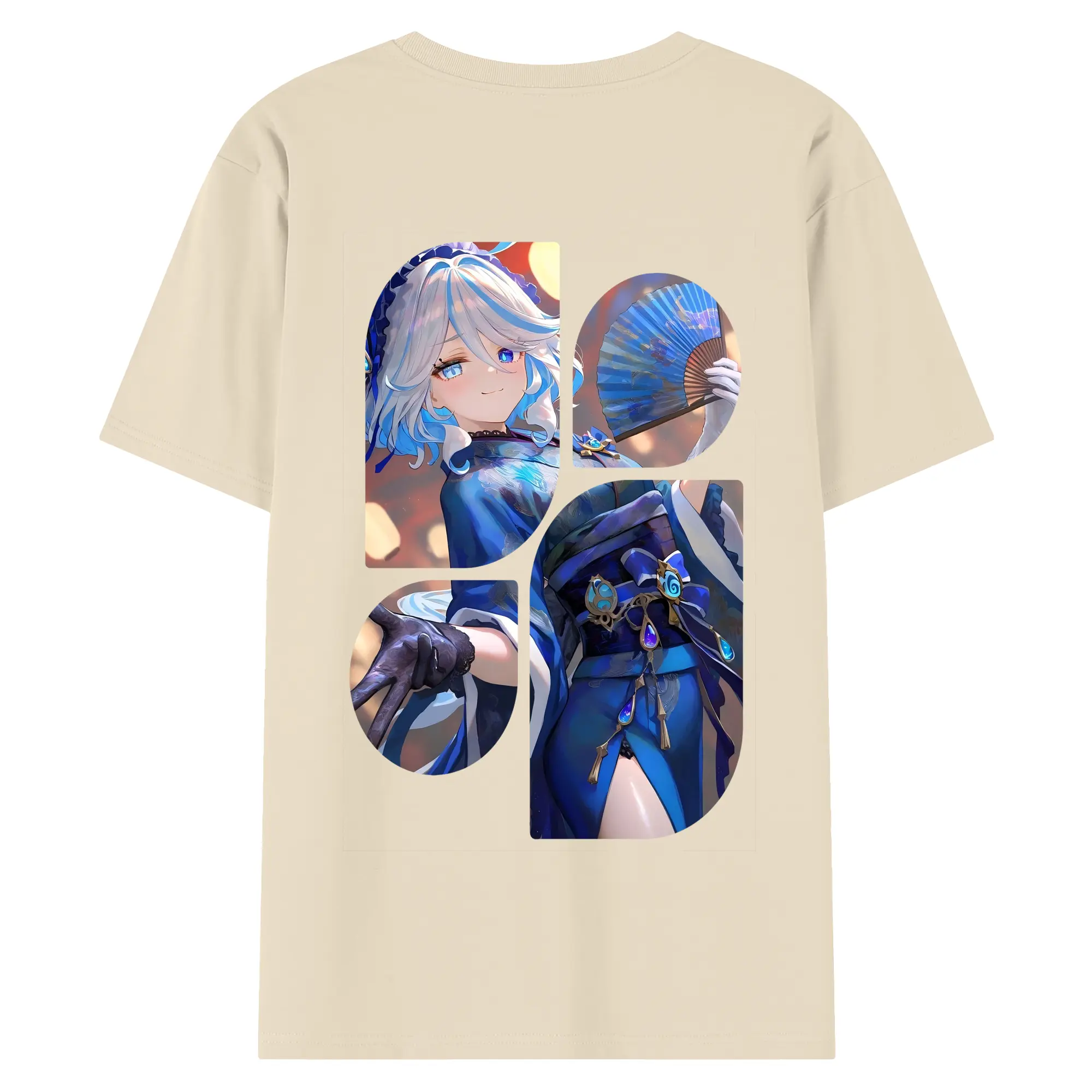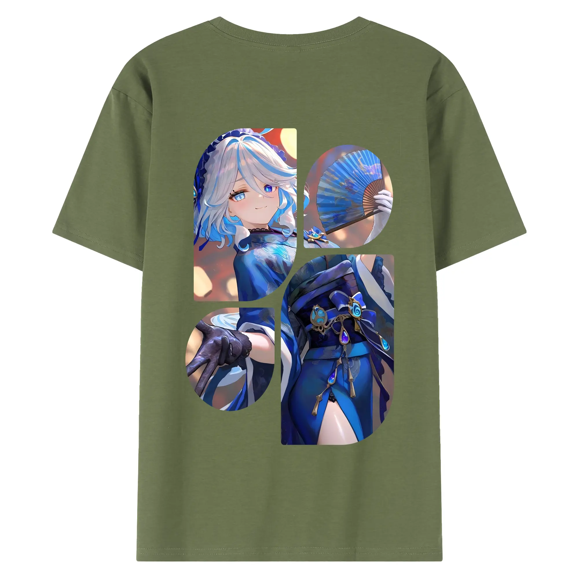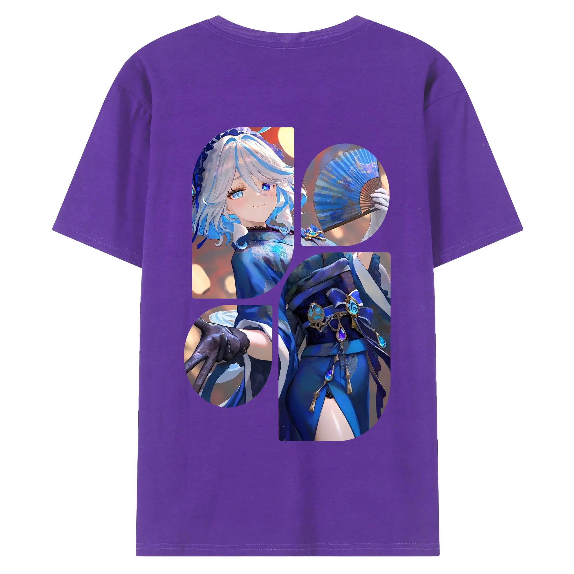 原 神 グッズ フリーナ - 綿100% ヴィンテージ風 半袖Tシャツ ・ 背面プリント ・ 柔らか肌触り ・ 通気性 快適 ・ スポーツ カジュアル 外出用