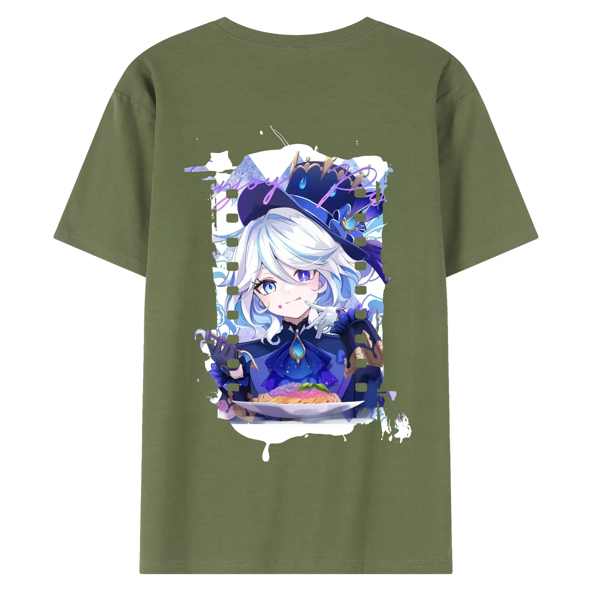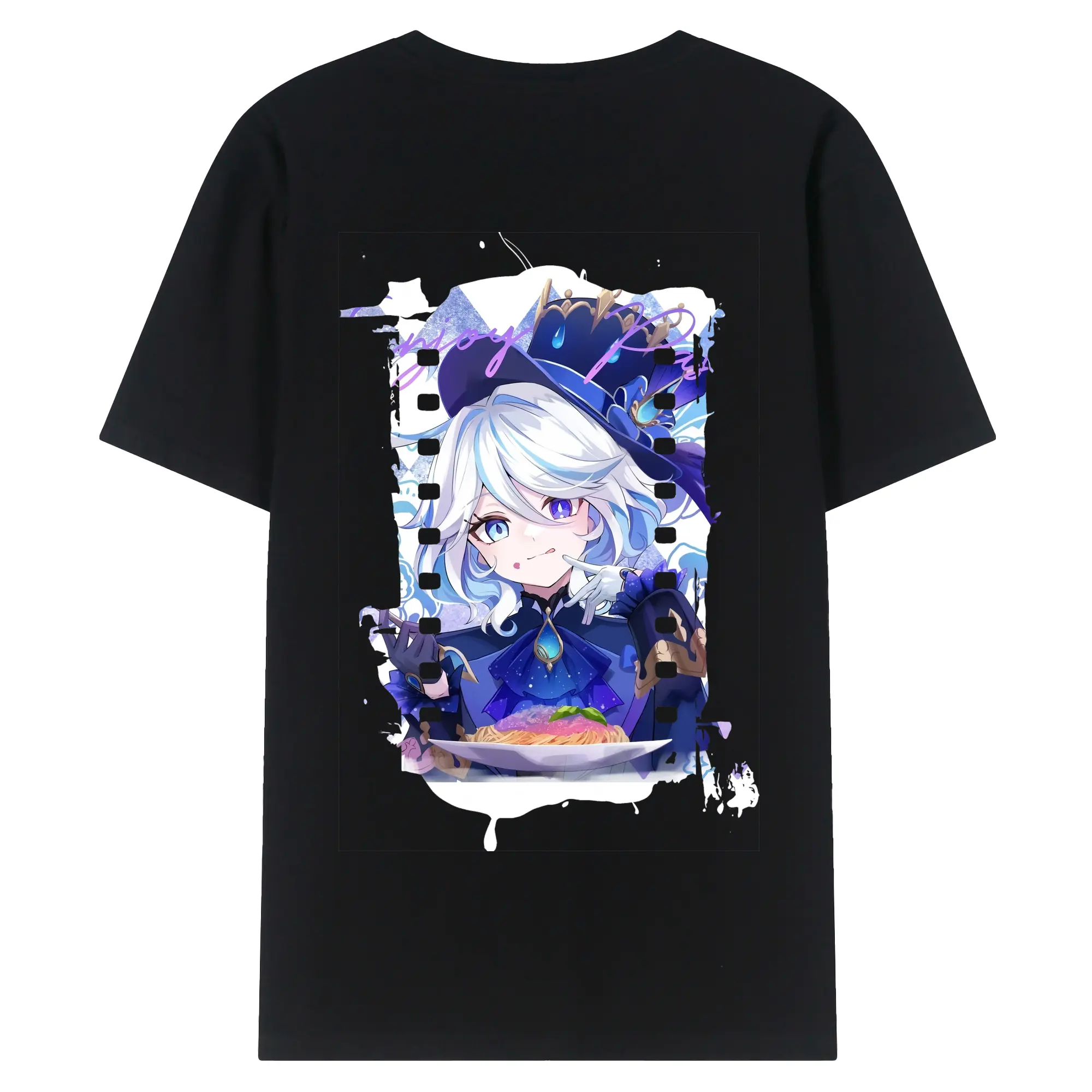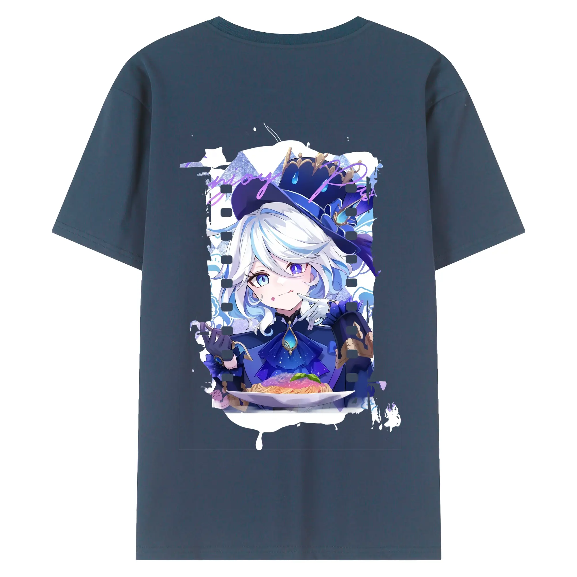 原 神 グッズ フリーナ - 綿100% ヴィンテージ風 半袖Tシャツ ・ 背面プリント ・ 柔らか肌触り ・ 通気性 快適 ・ スポーツ カジュアル 外出用