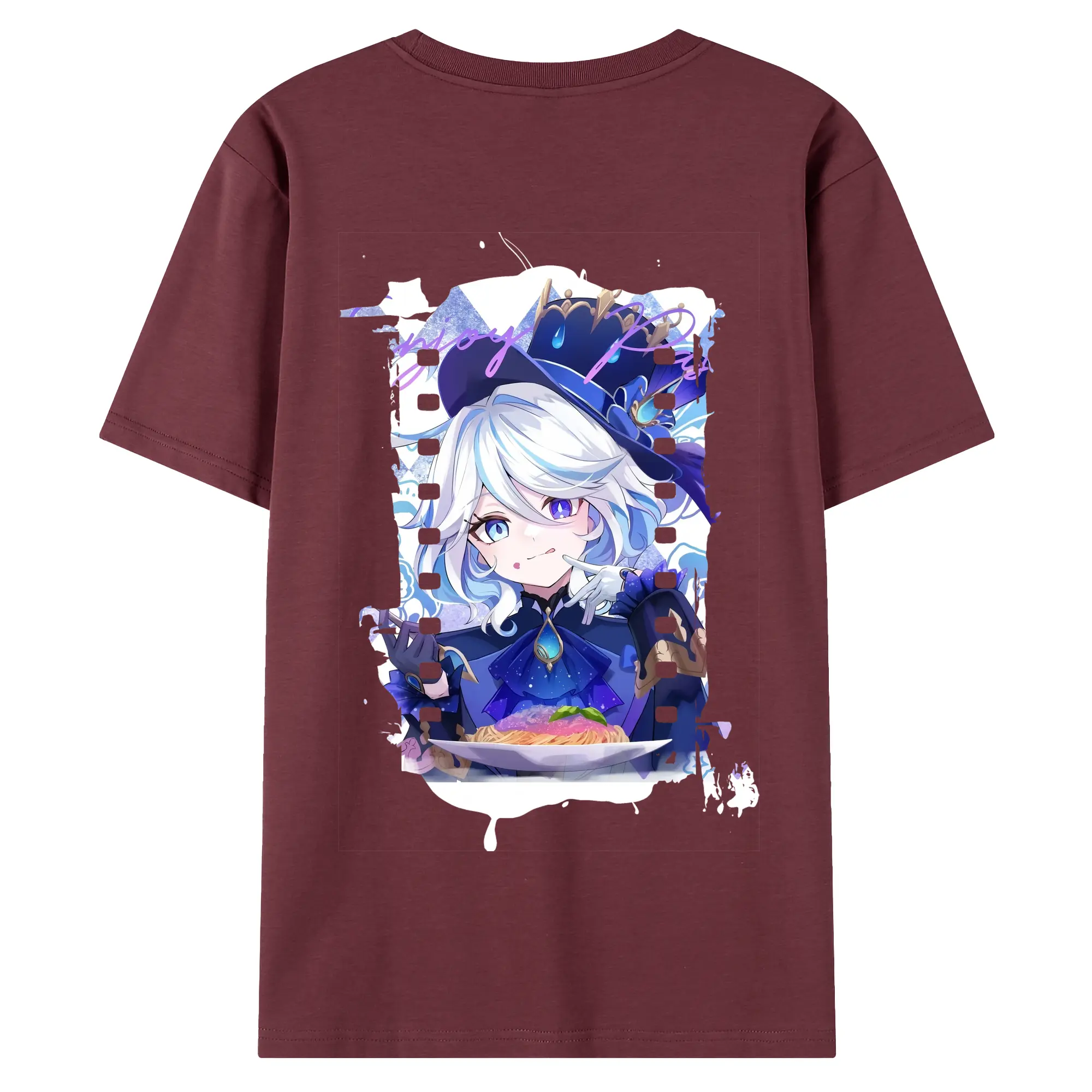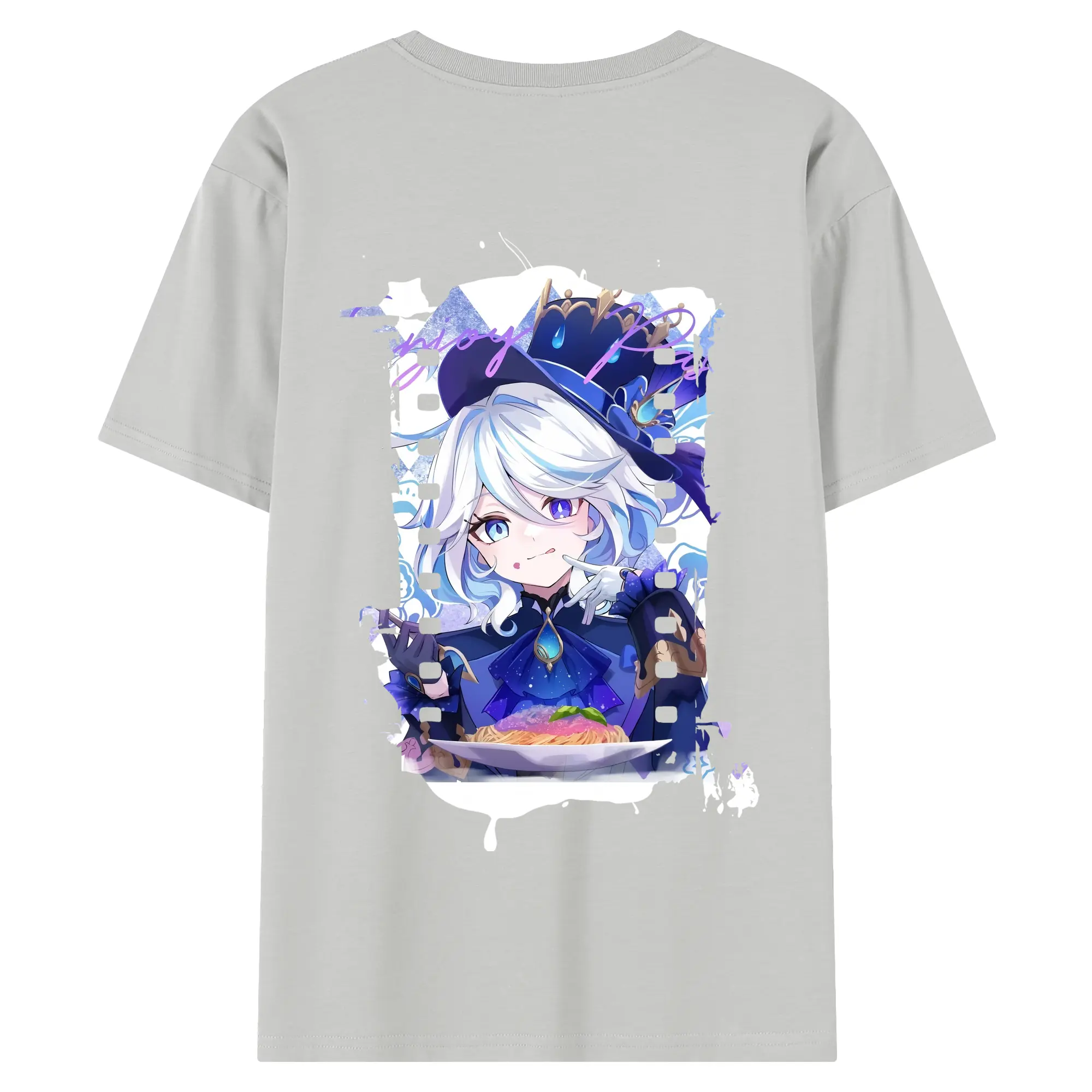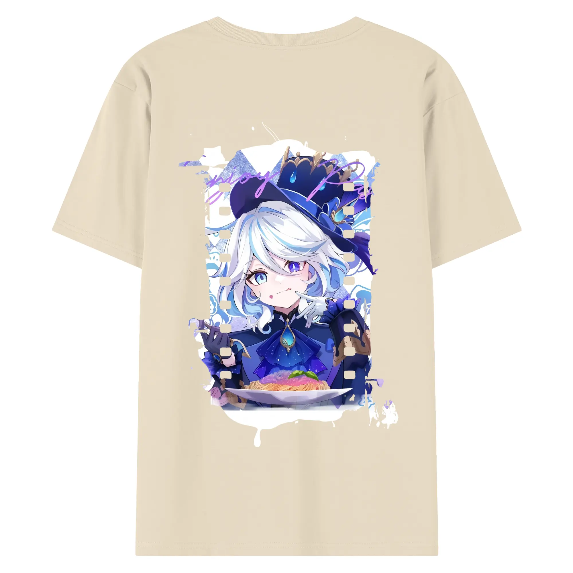 原 神 グッズ フリーナ - 綿100% ヴィンテージ風 半袖Tシャツ ・ 背面プリント ・ 柔らか肌触り ・ 通気性 快適 ・ スポーツ カジュアル 外出用