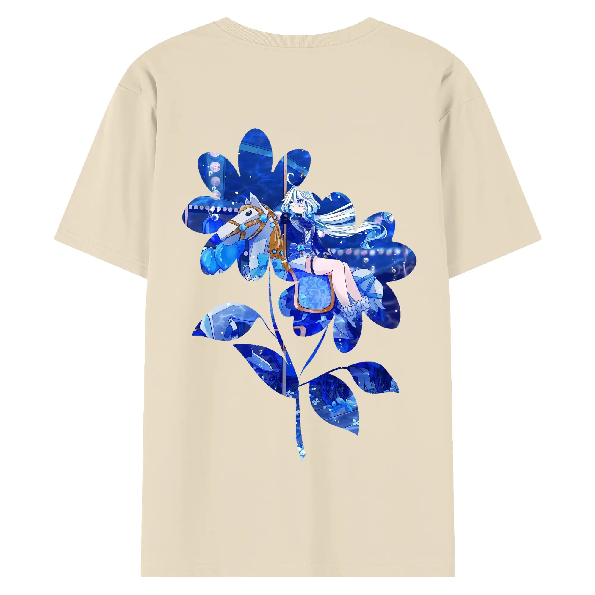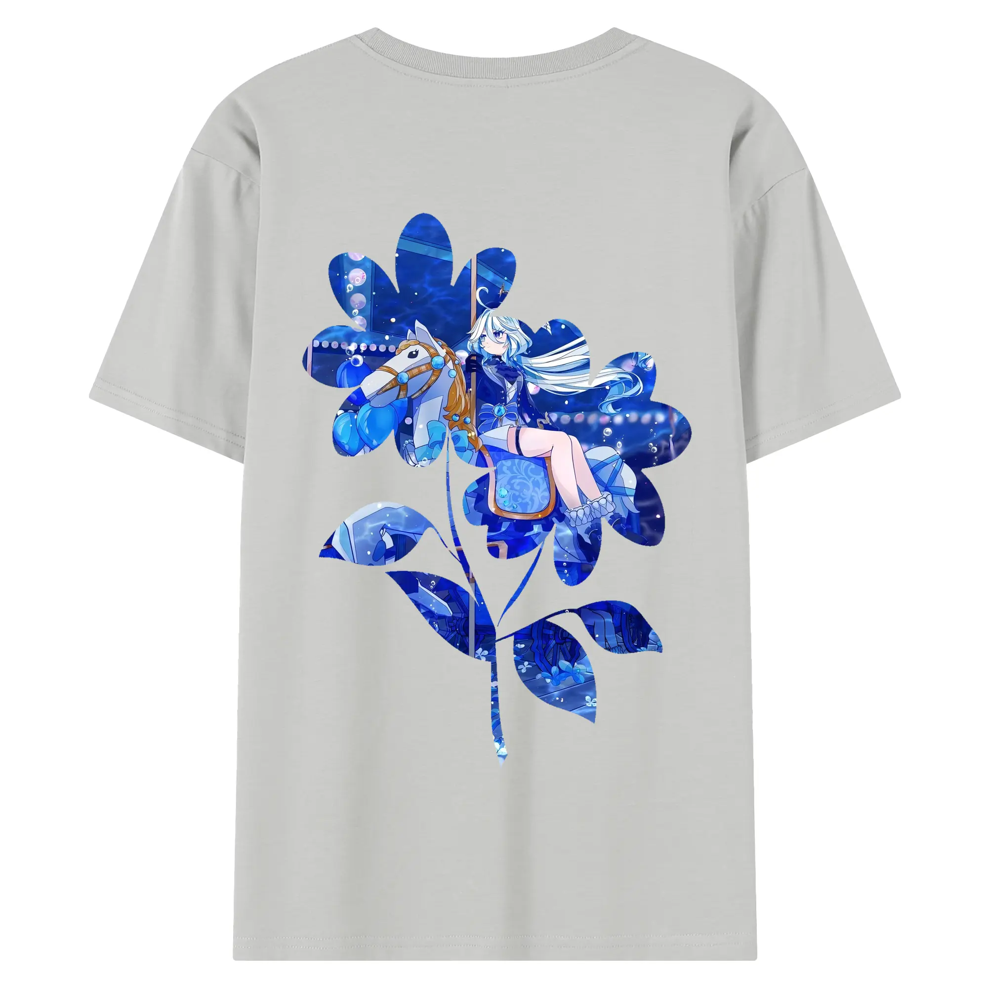 原 神 グッズ フリーナ - 綿100% ヴィンテージ風 半袖Tシャツ ・ 背面プリント ・ 柔らか肌触り ・ 通気性 快適 ・ スポーツ カジュアル 外出用