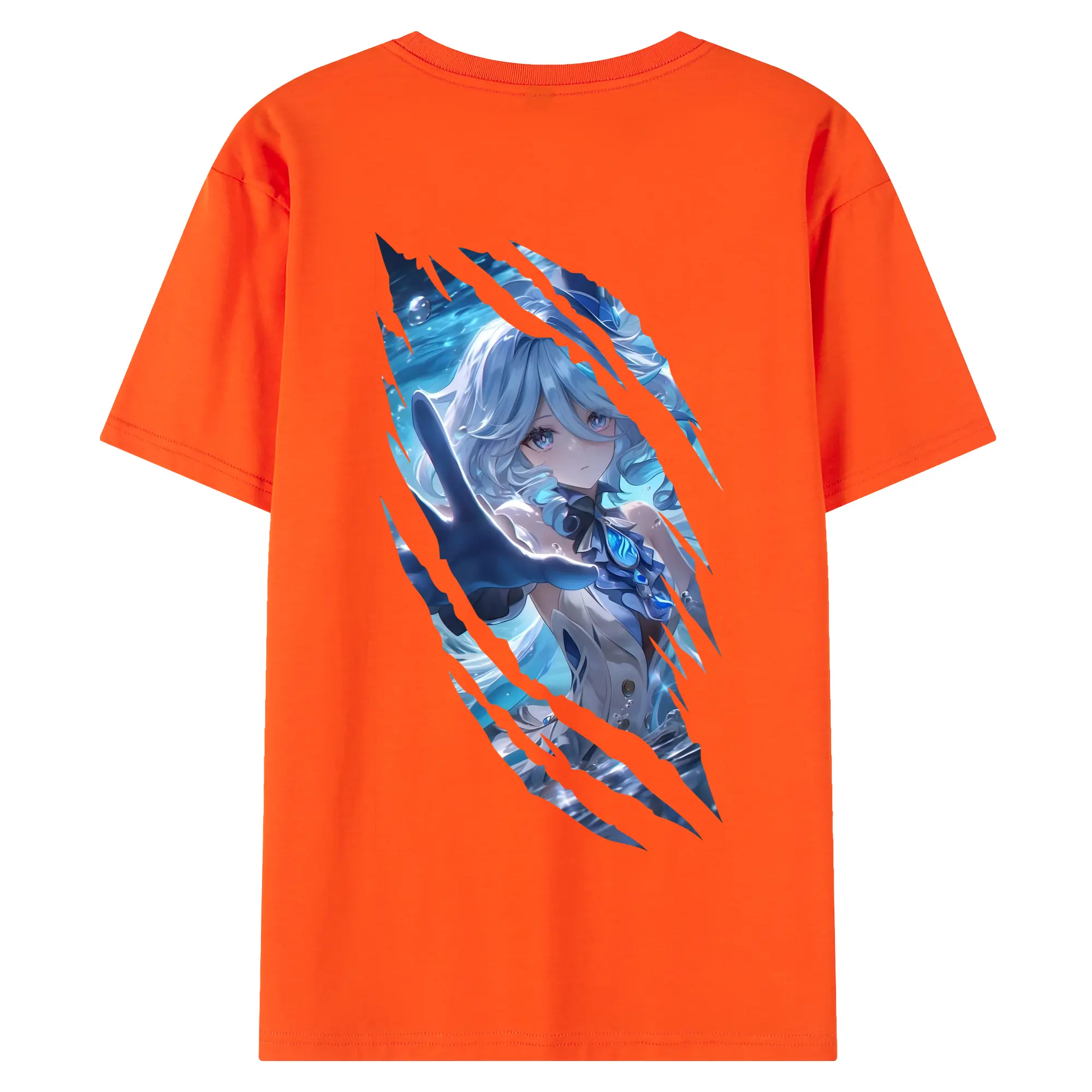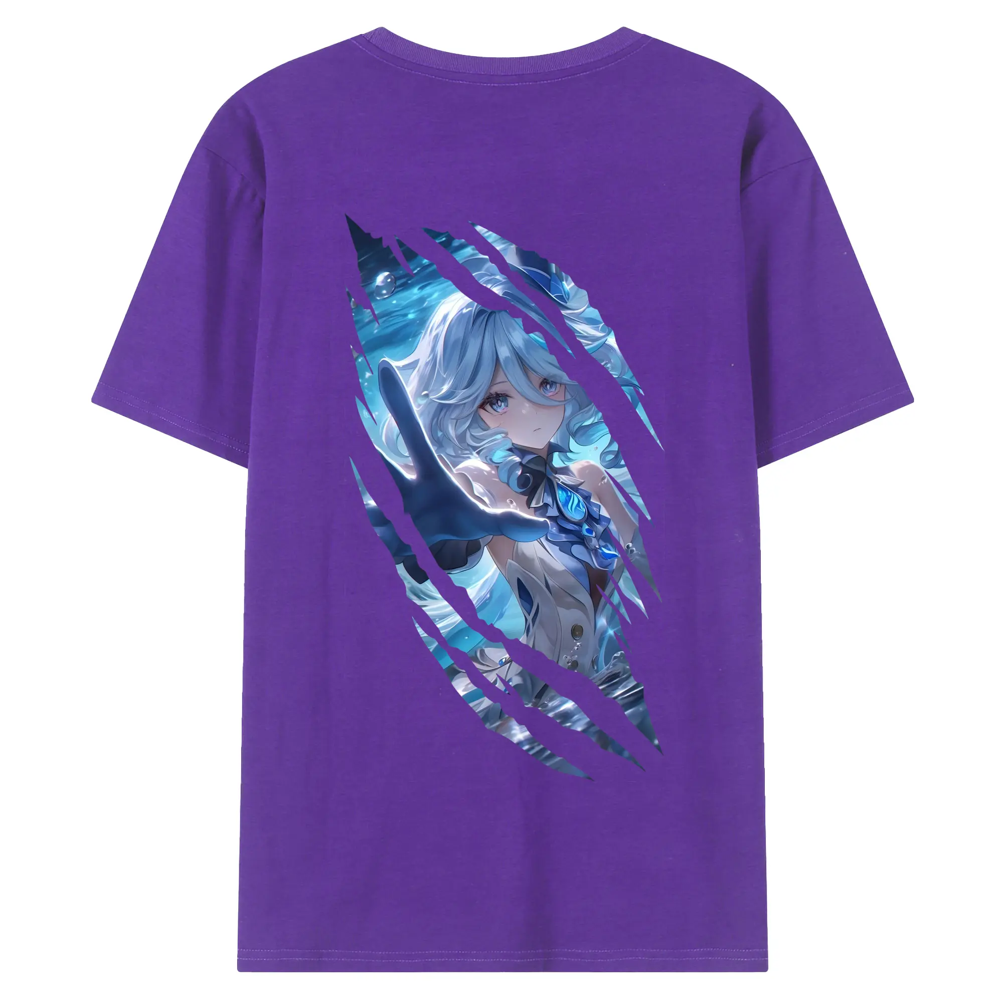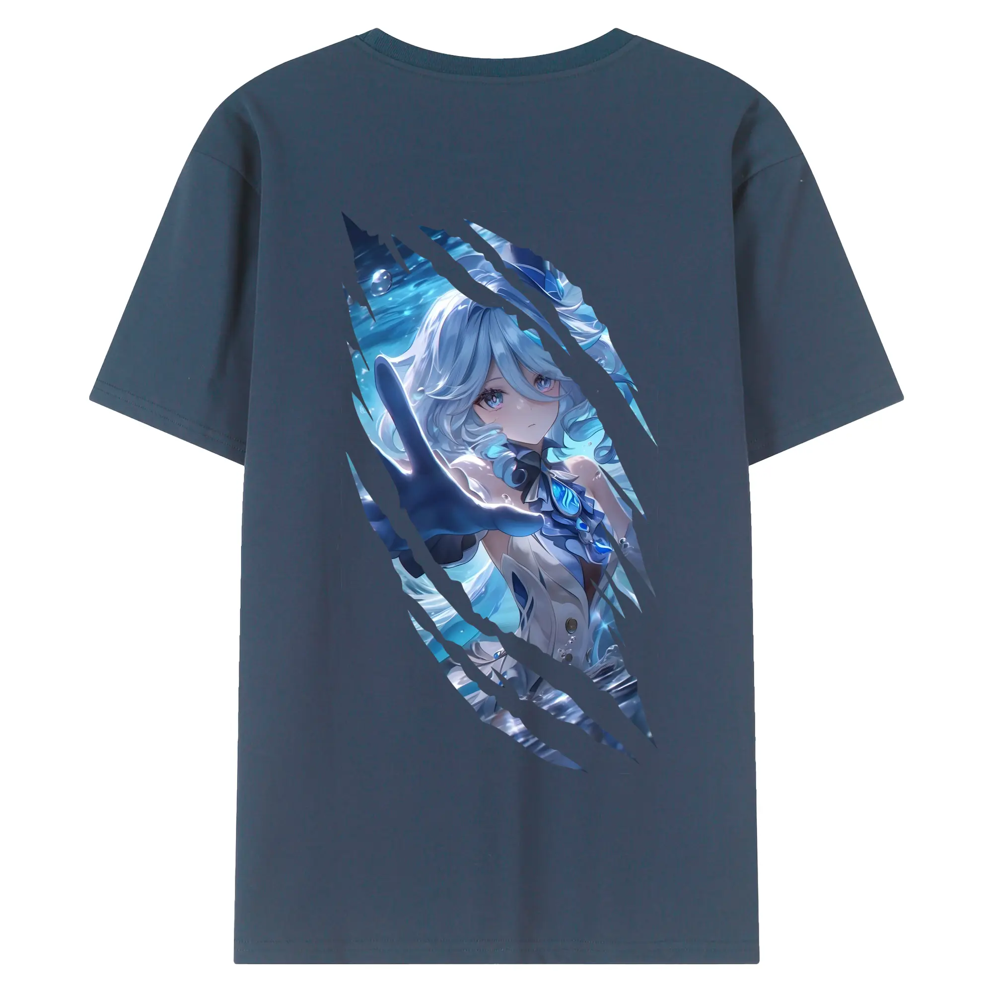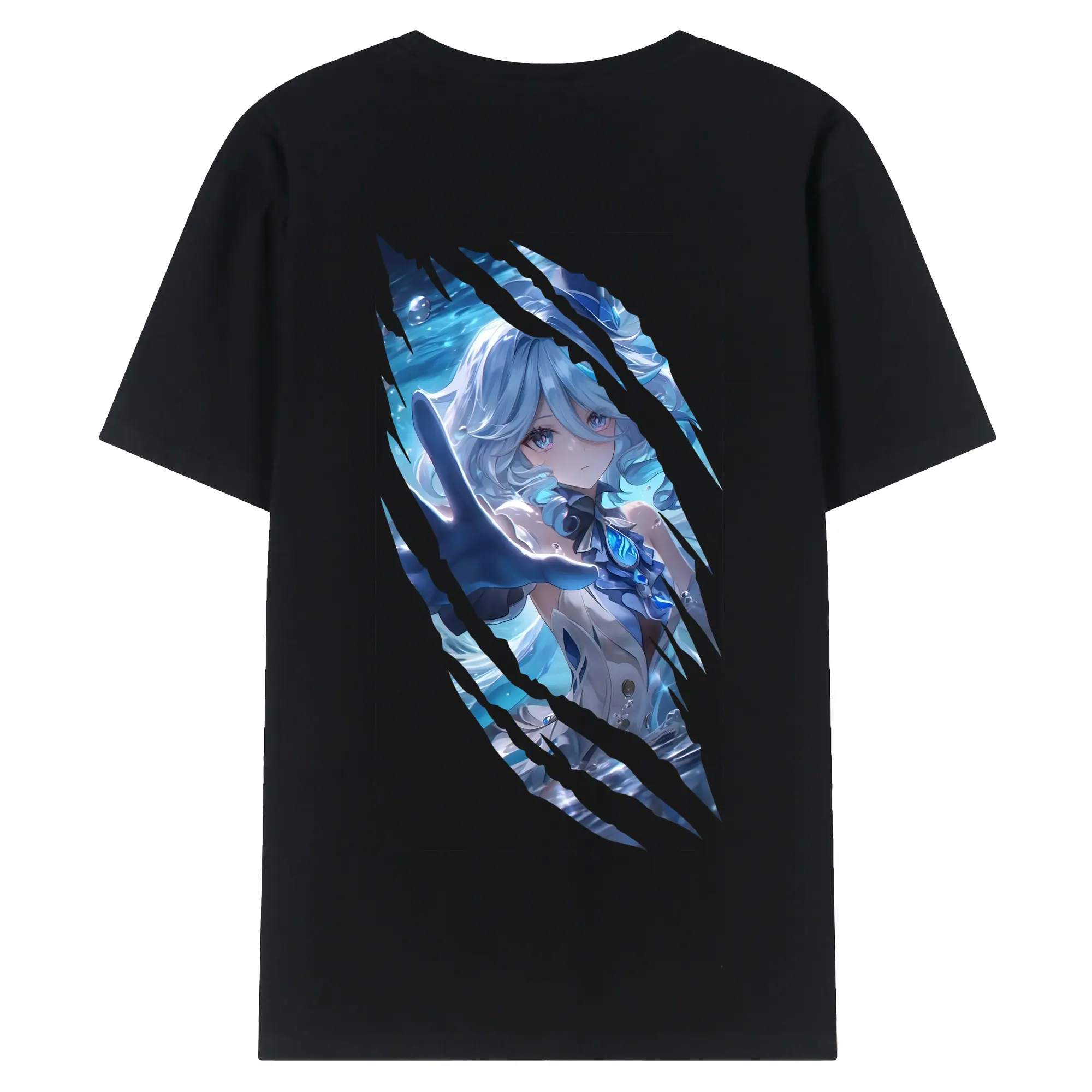 原 神 グッズ フリーナ - 綿100% ヴィンテージ風 半袖Tシャツ ・ 背面プリント ・ 柔らか肌触り ・ 通気性 快適 ・ スポーツ カジュアル 外出用