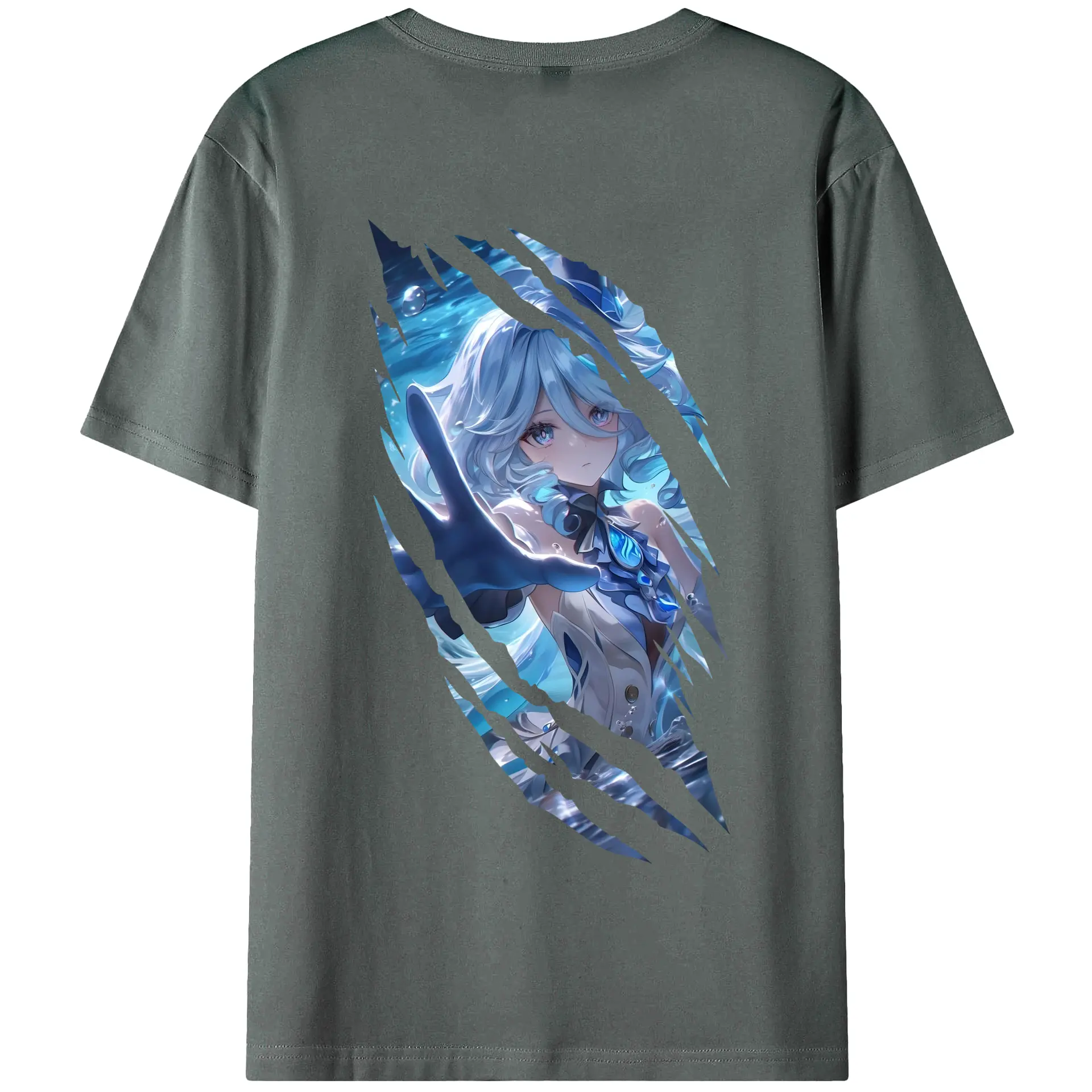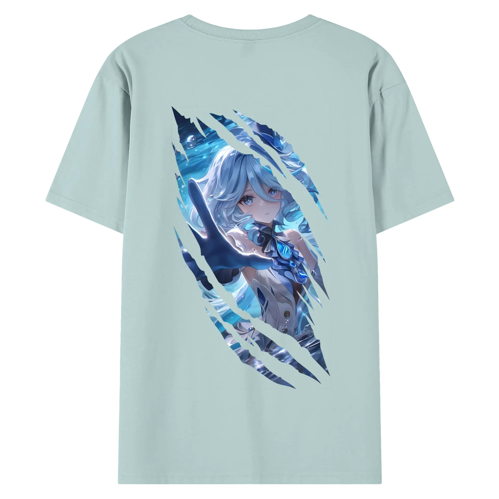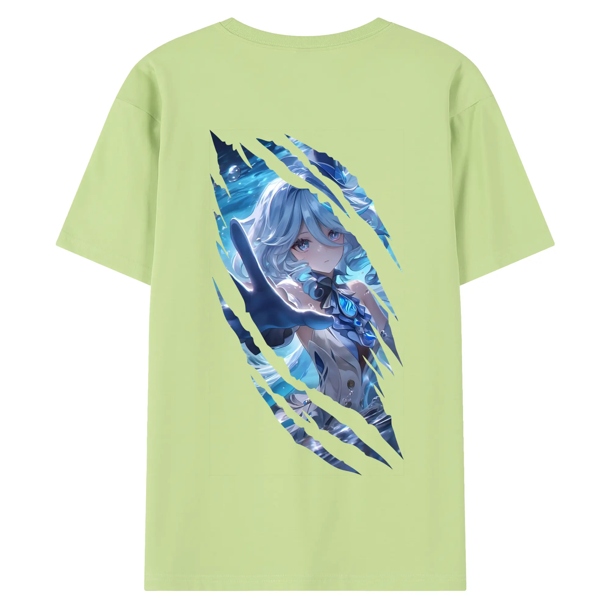 原 神 グッズ フリーナ - 綿100% ヴィンテージ風 半袖Tシャツ ・ 背面プリント ・ 柔らか肌触り ・ 通気性 快適 ・ スポーツ カジュアル 外出用