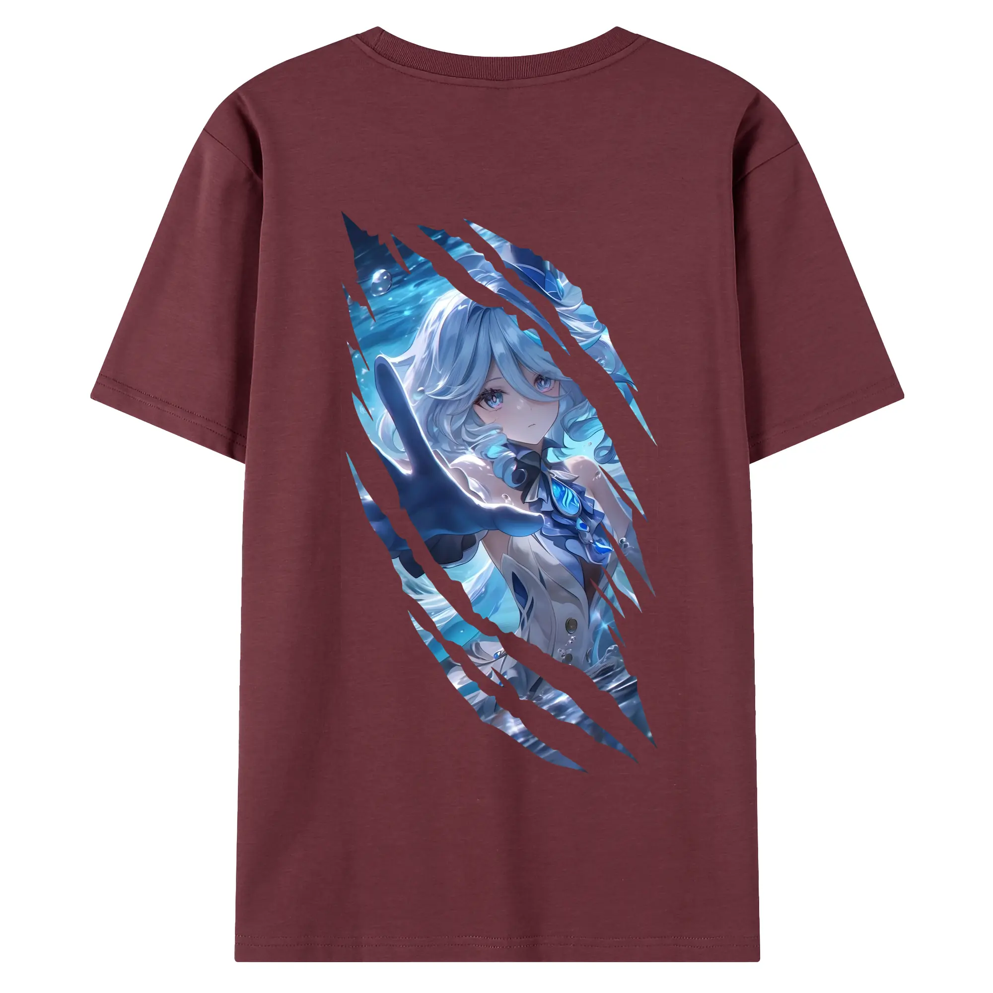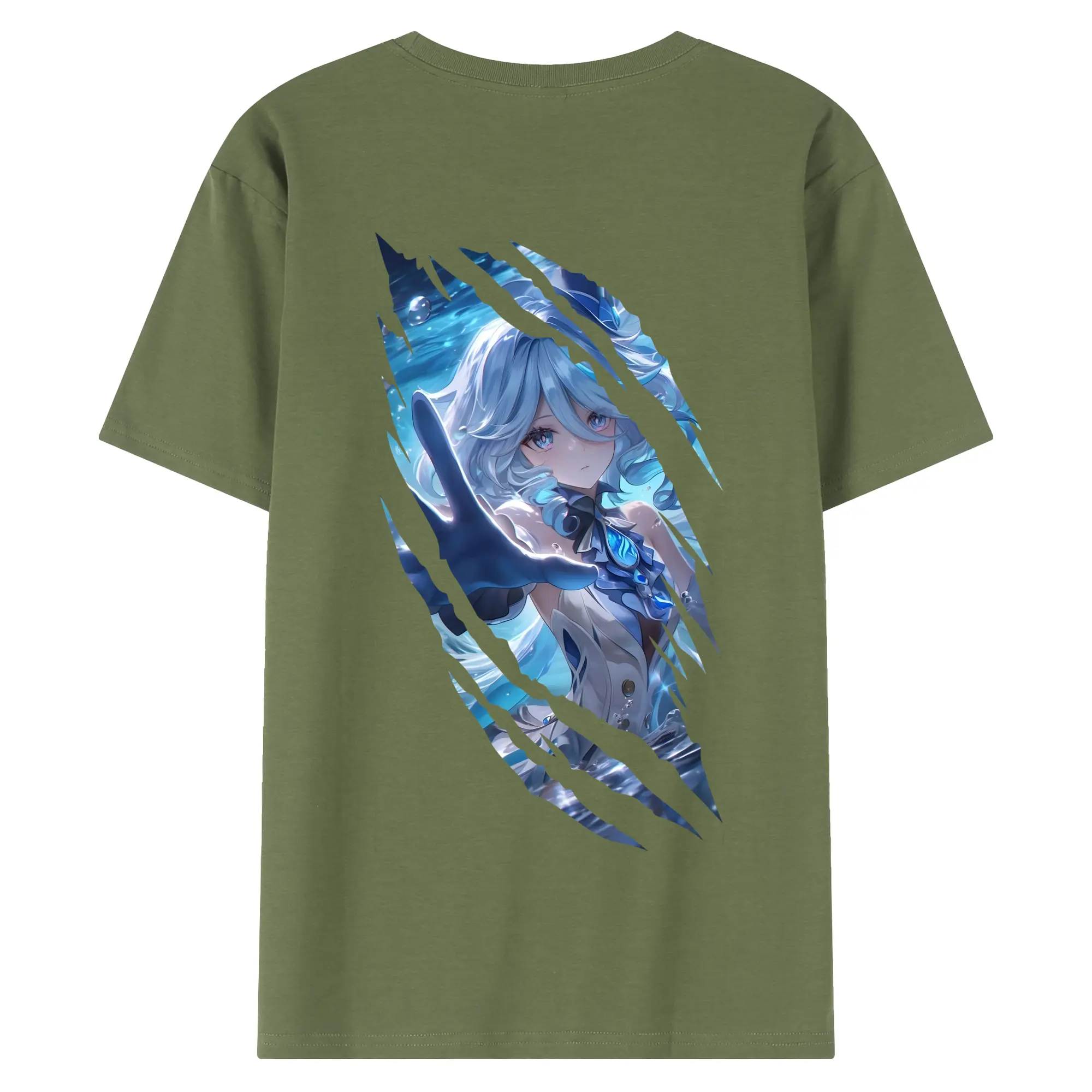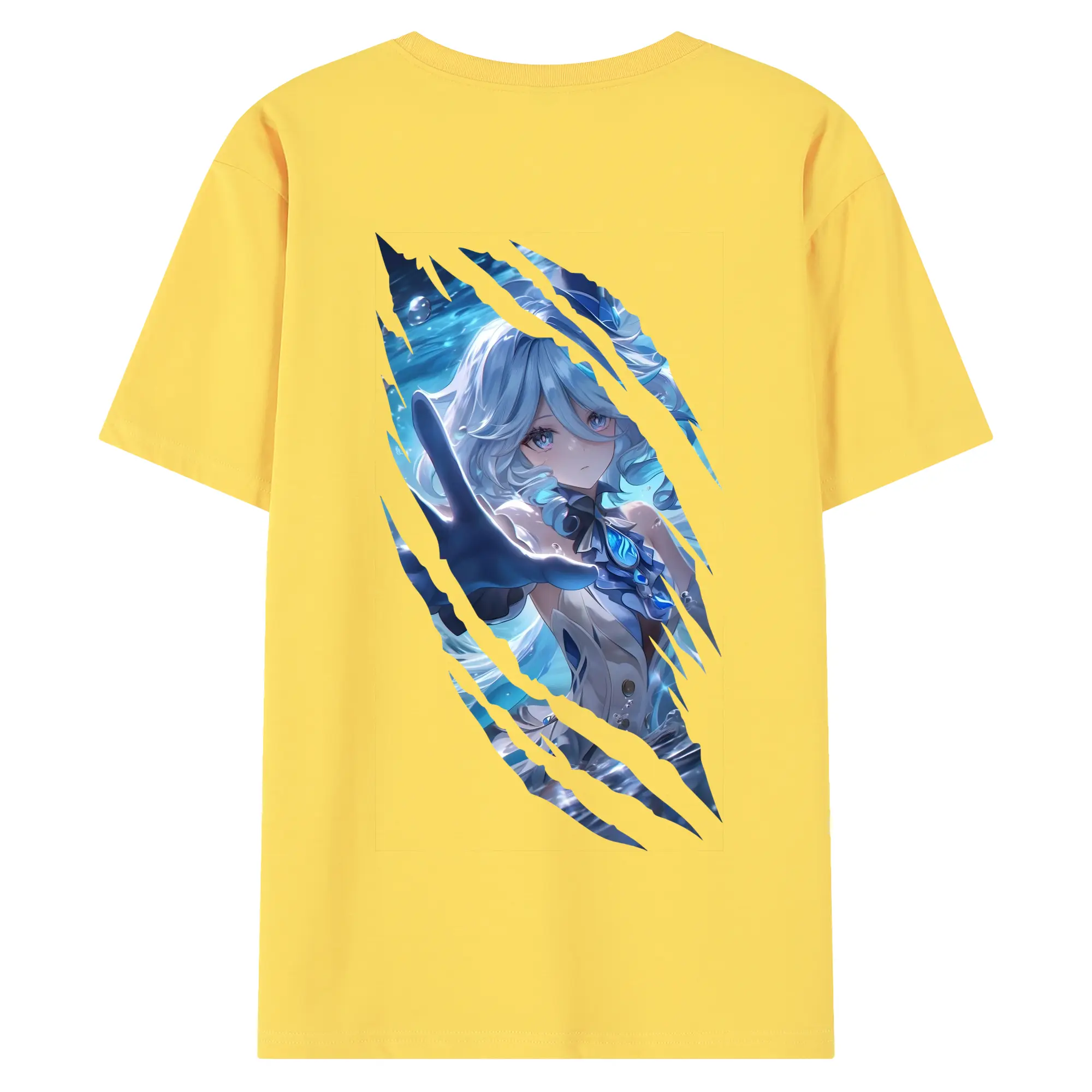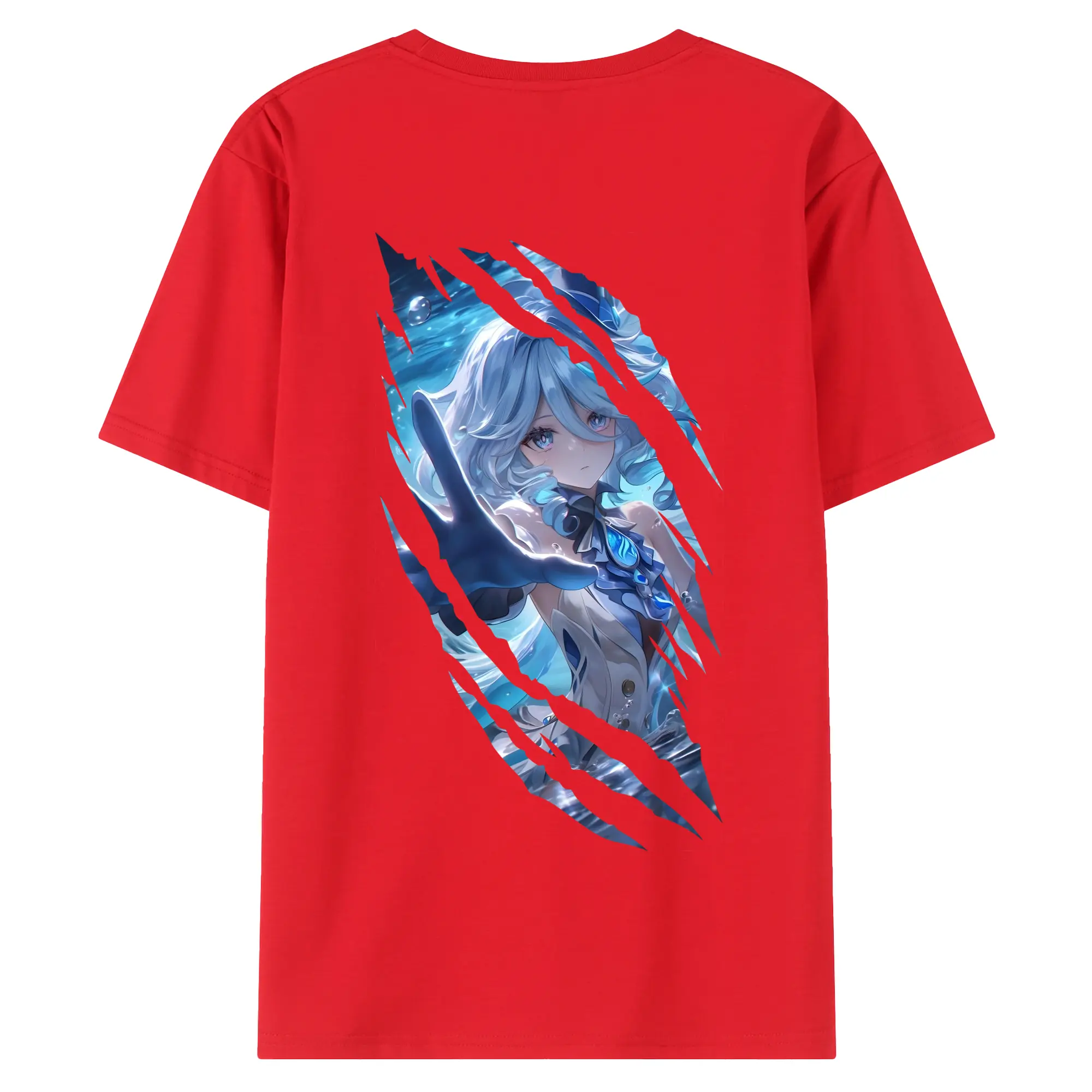 原 神 グッズ フリーナ - 綿100% ヴィンテージ風 半袖Tシャツ ・ 背面プリント ・ 柔らか肌触り ・ 通気性 快適 ・ スポーツ カジュアル 外出用
