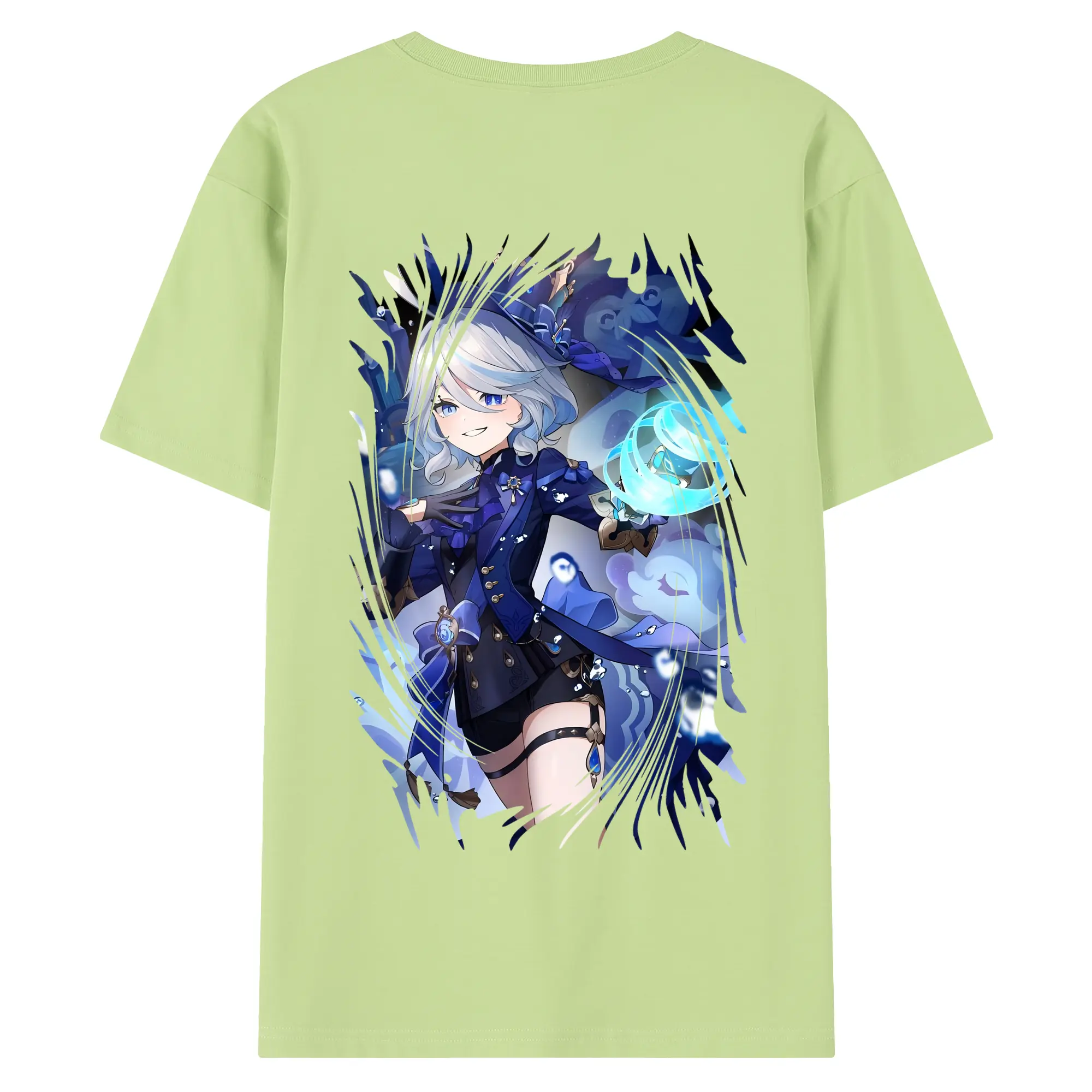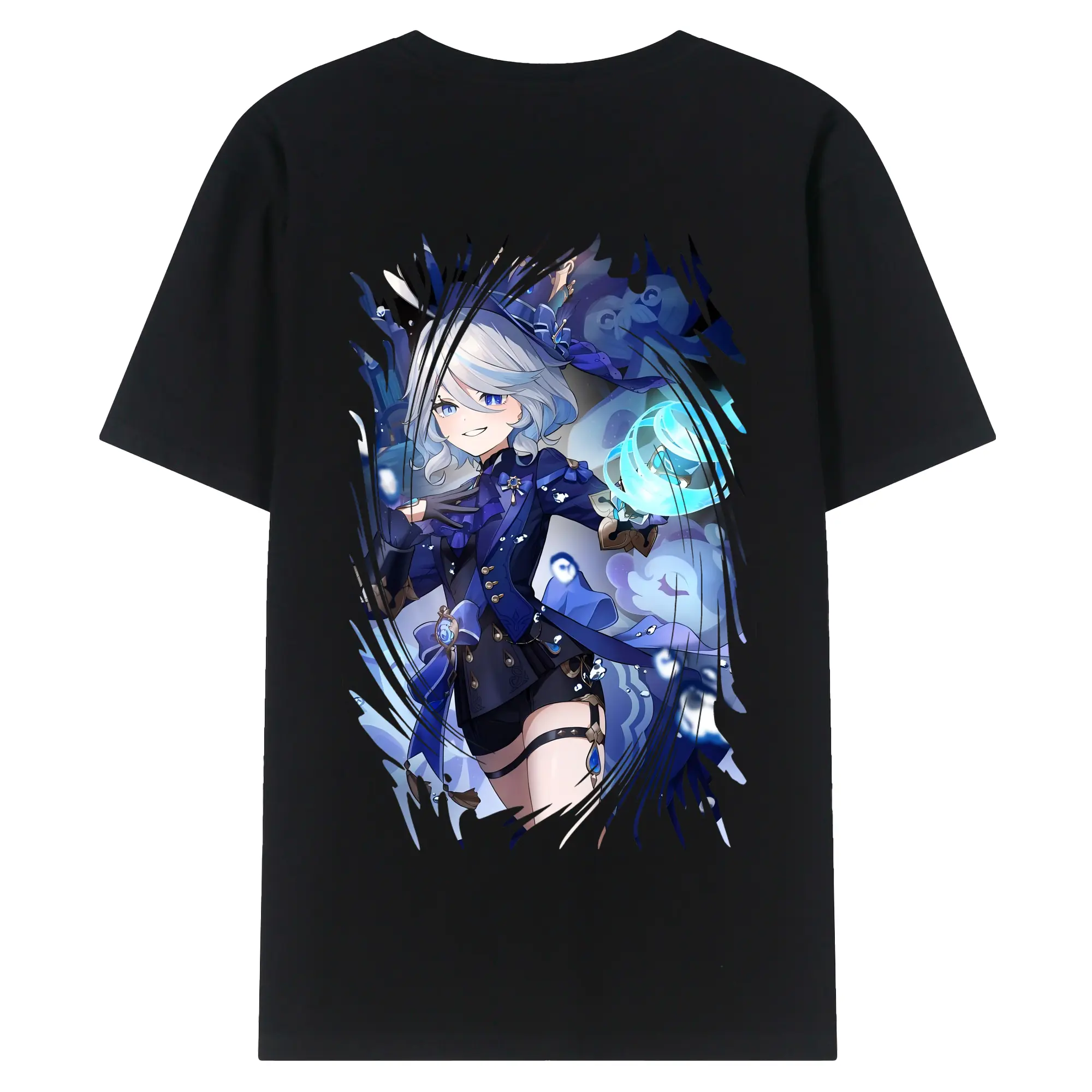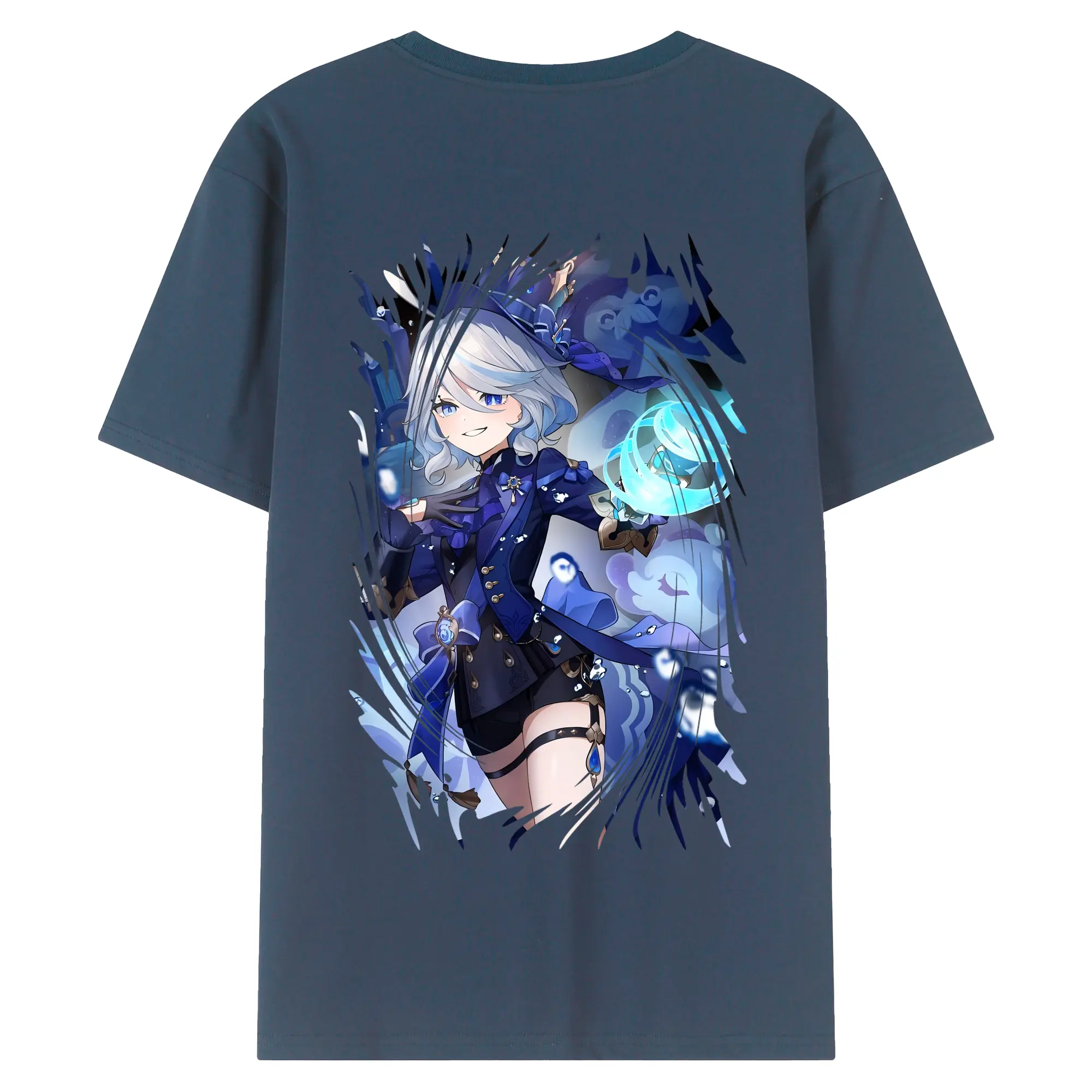 原 神 グッズ フリーナ - 綿100% ヴィンテージ風 半袖Tシャツ ・ 背面プリント ・ 柔らか肌触り ・ 通気性 快適 ・ スポーツ カジュアル 外出用