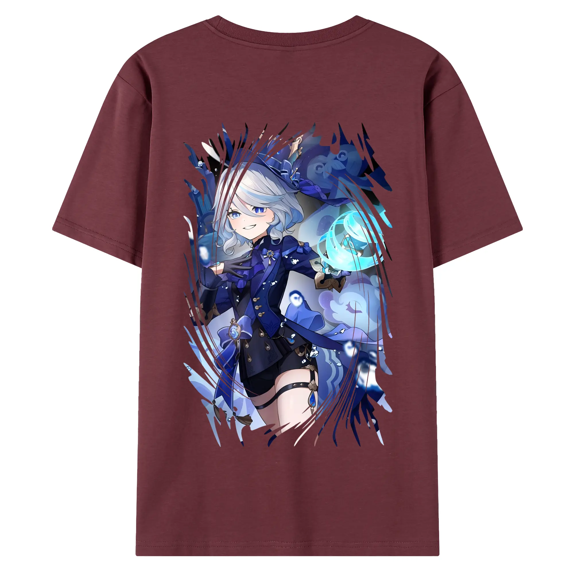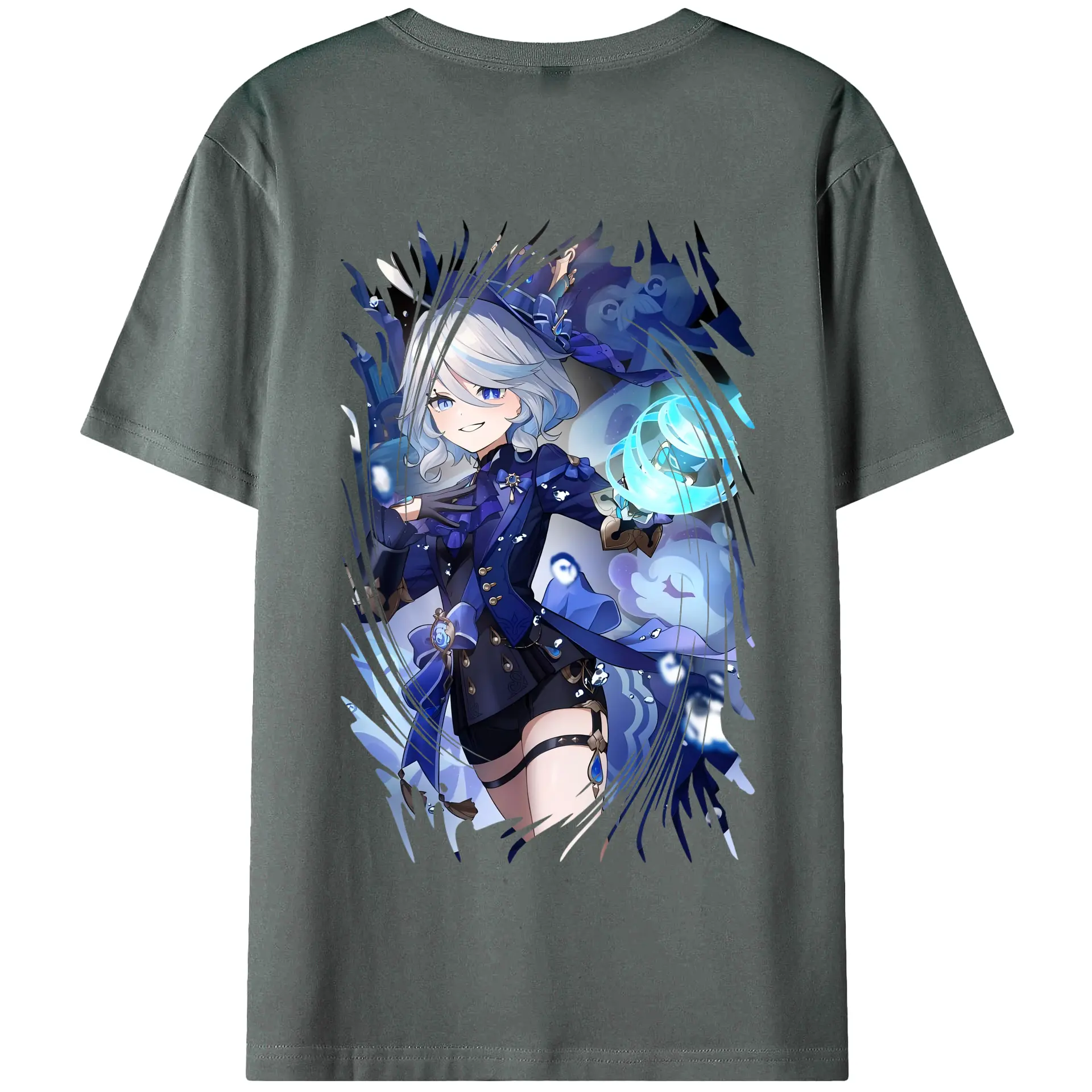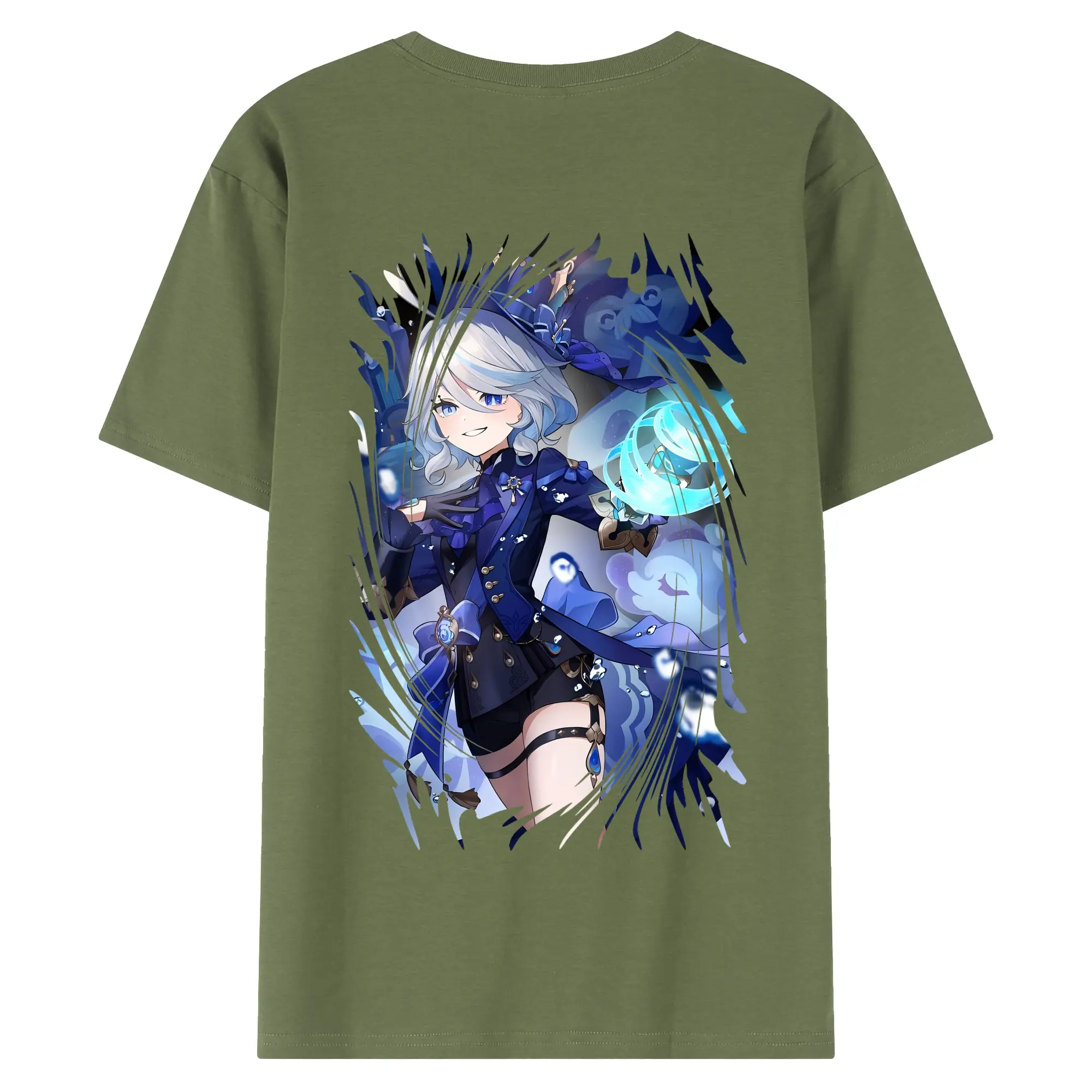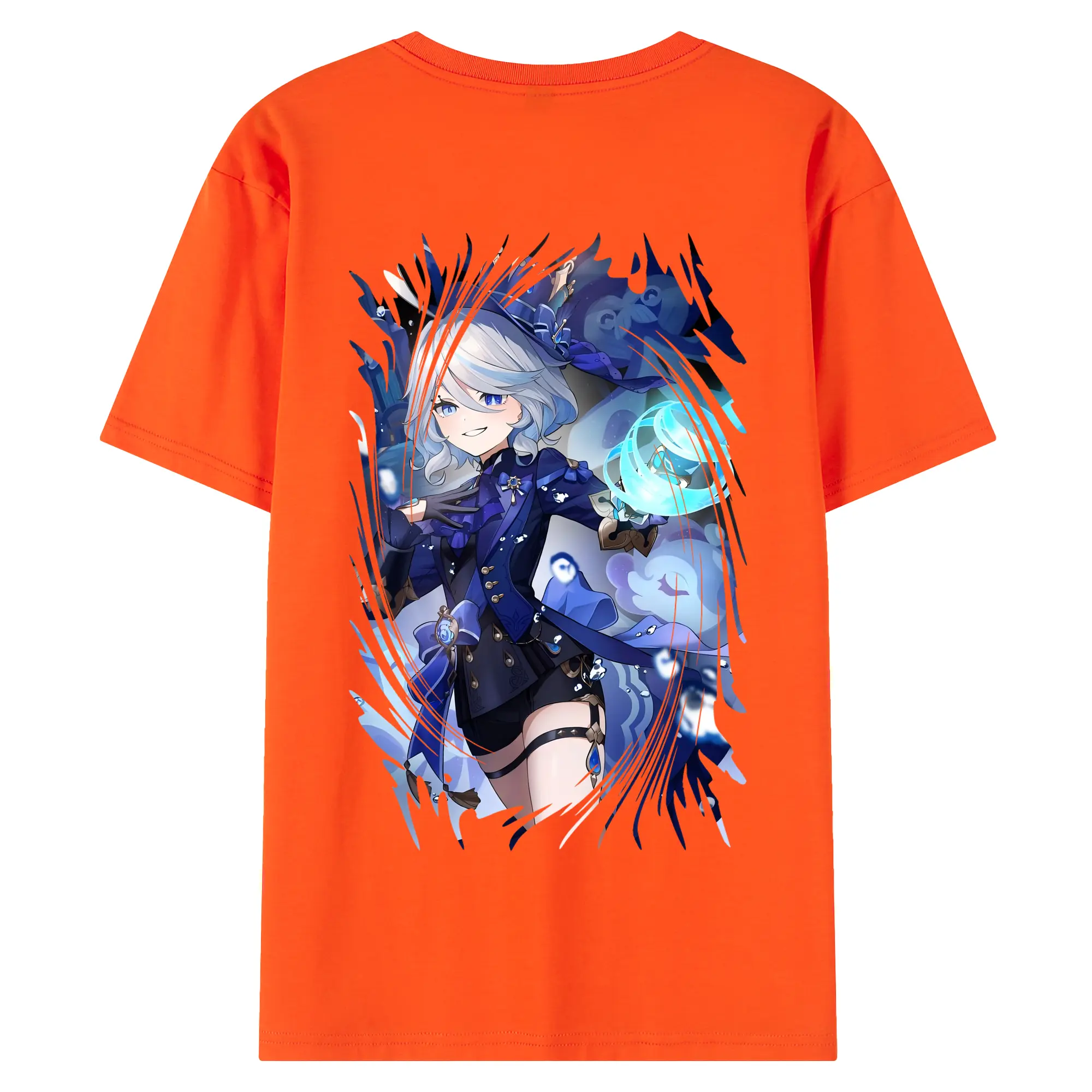 原 神 グッズ フリーナ - 綿100% ヴィンテージ風 半袖Tシャツ ・ 背面プリント ・ 柔らか肌触り ・ 通気性 快適 ・ スポーツ カジュアル 外出用