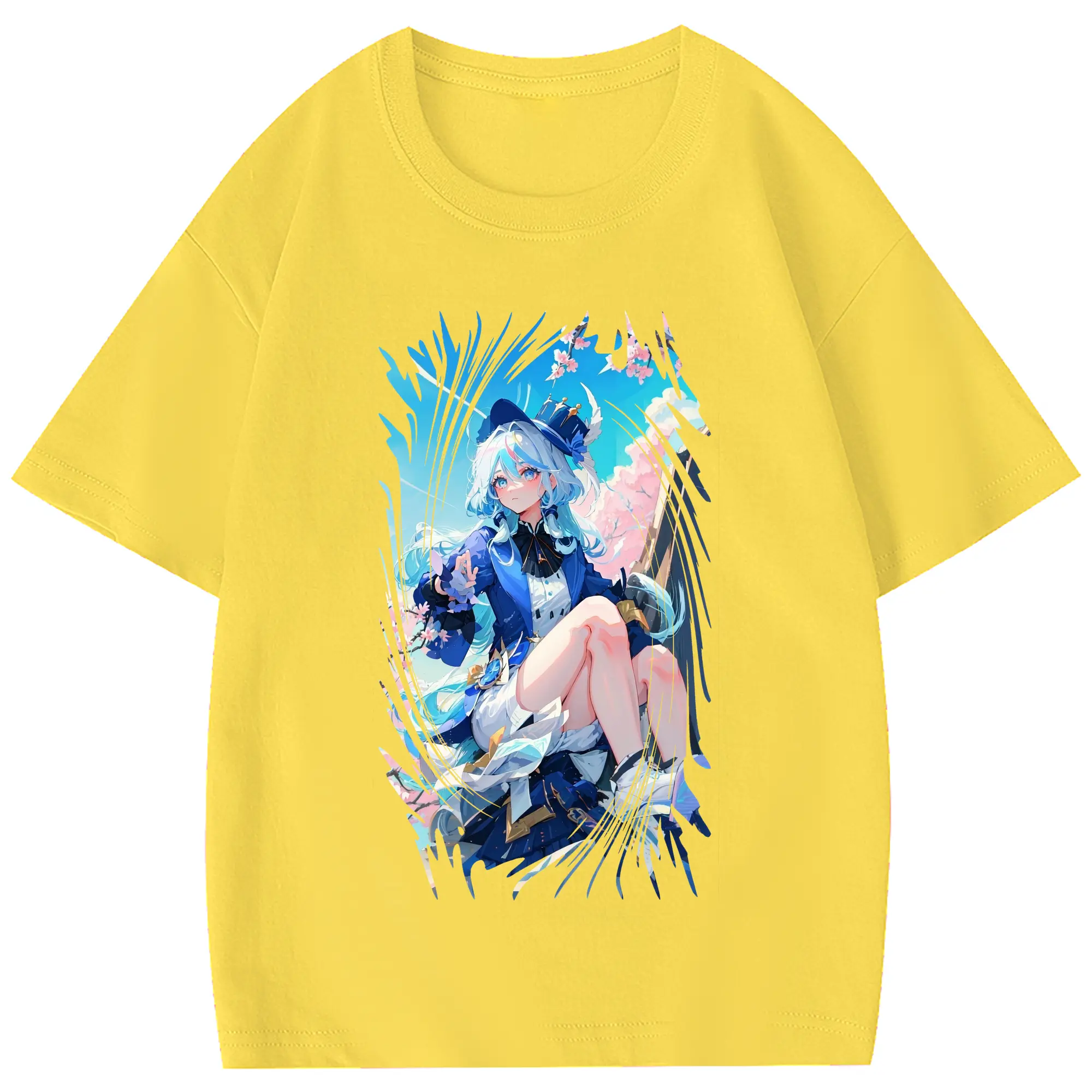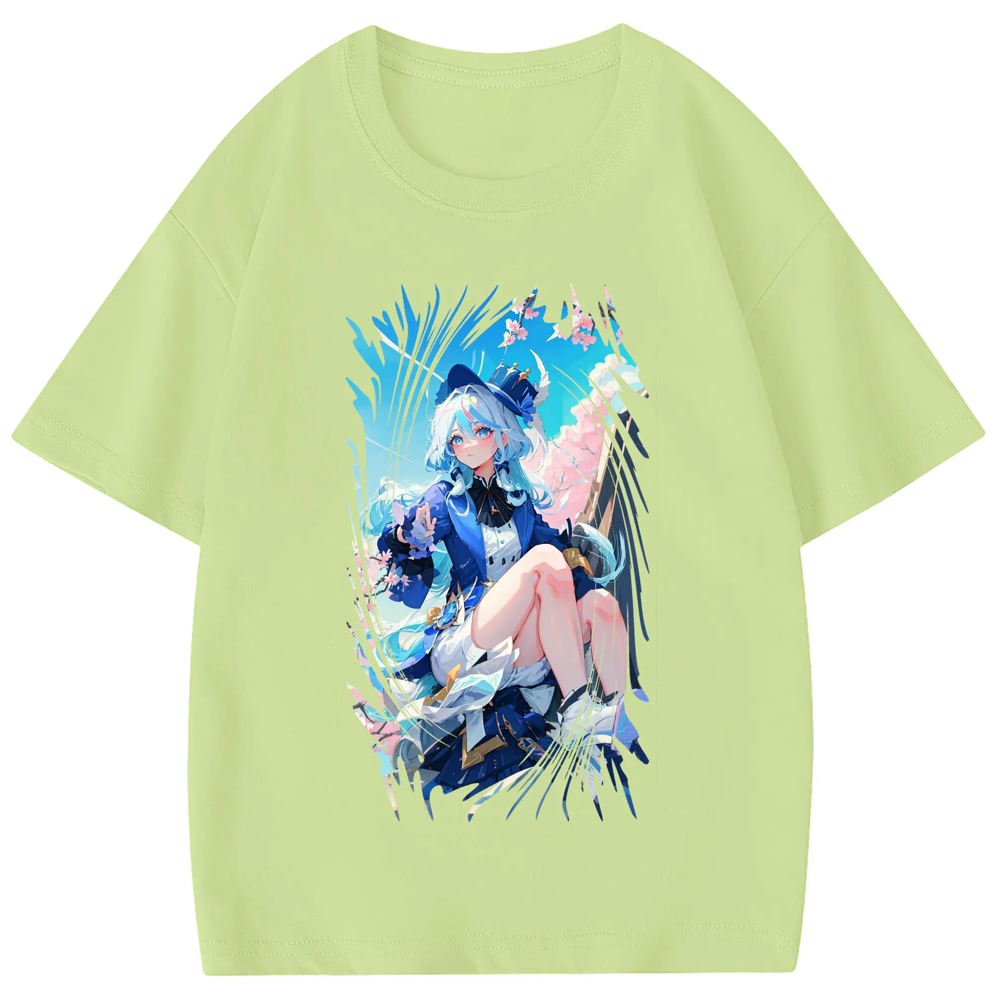 原 神 グッズ フリーナ - 綿100% 半袖Tシャツ ・ フロントプリント ・ 快適 通気性 ・ 日常使い 散歩 スポーツ用